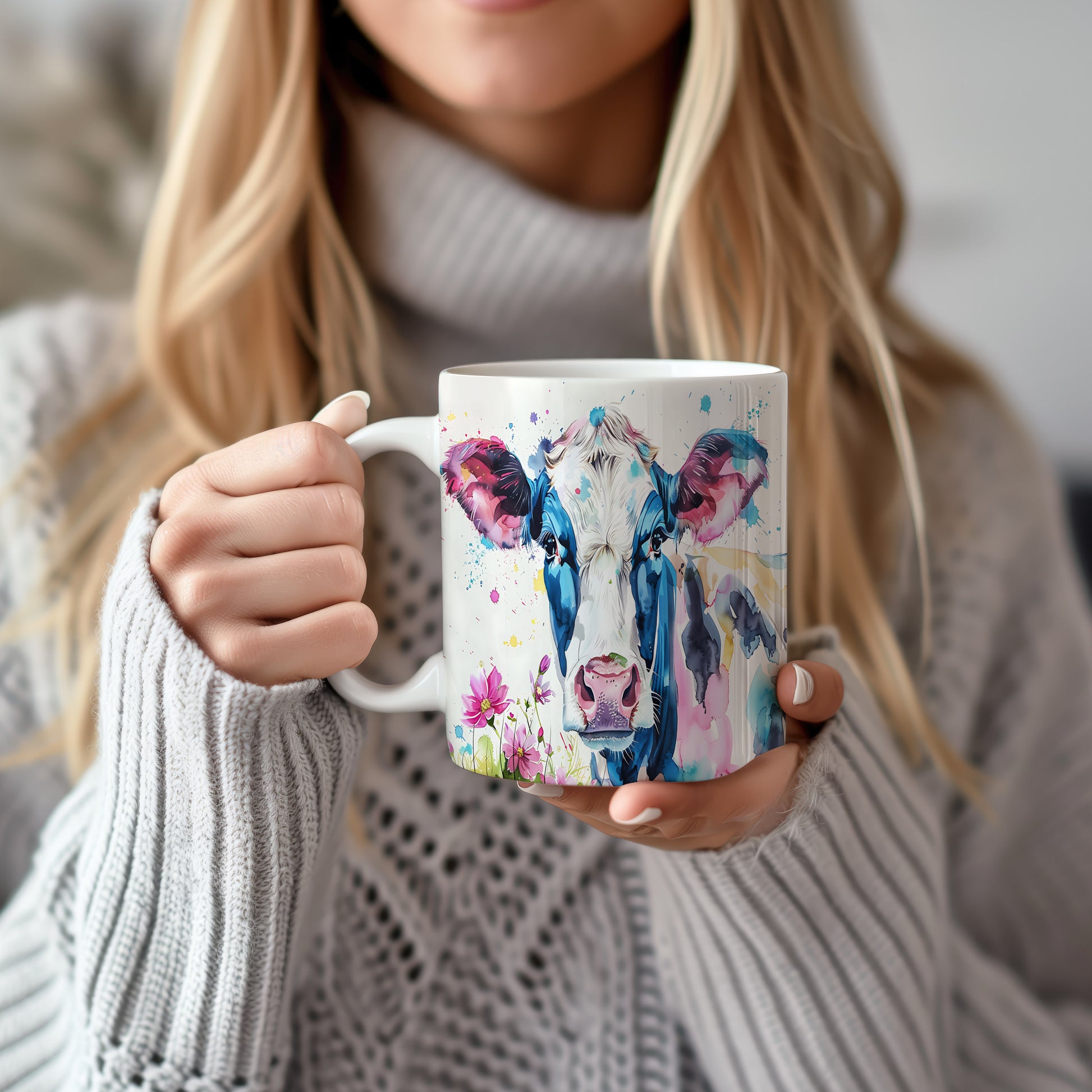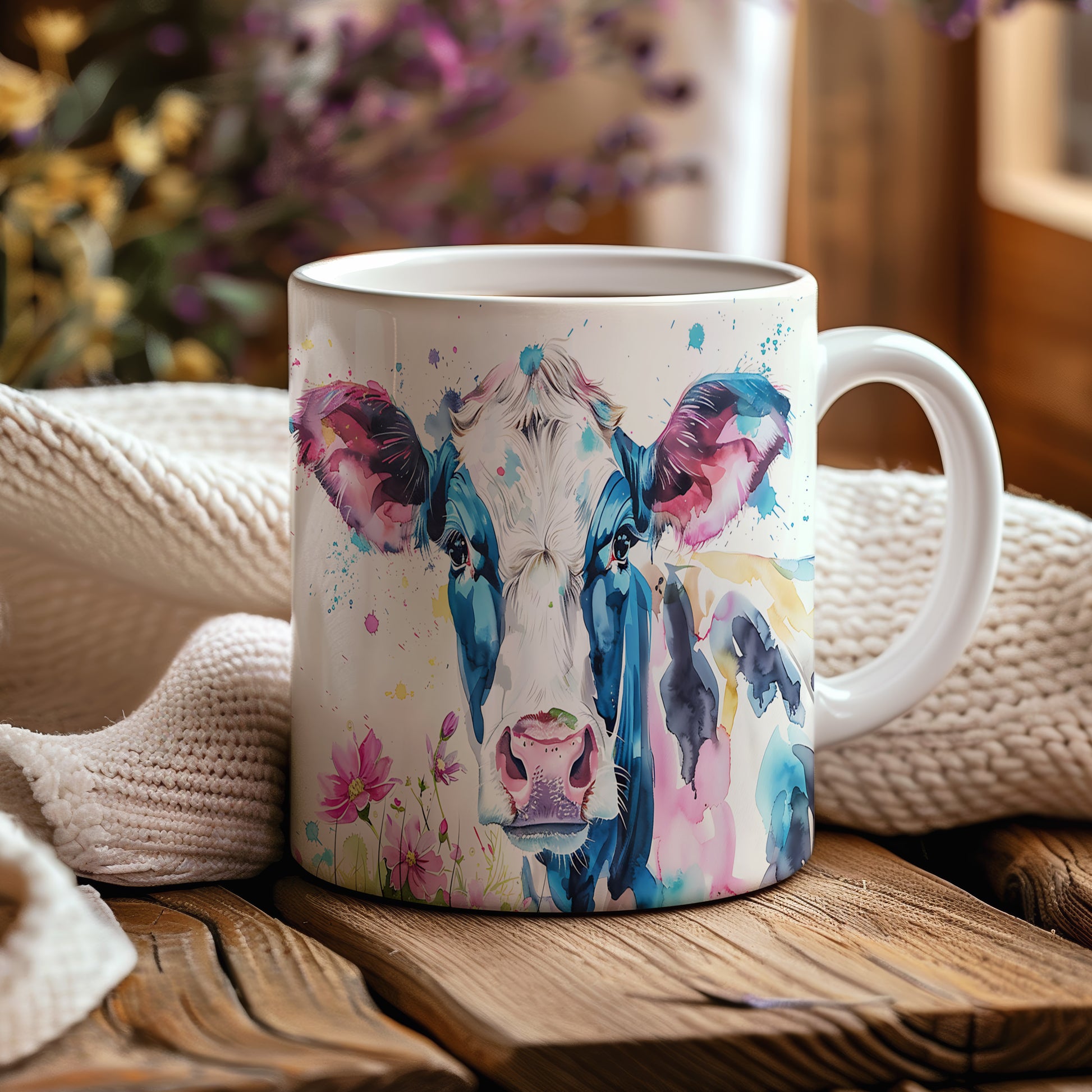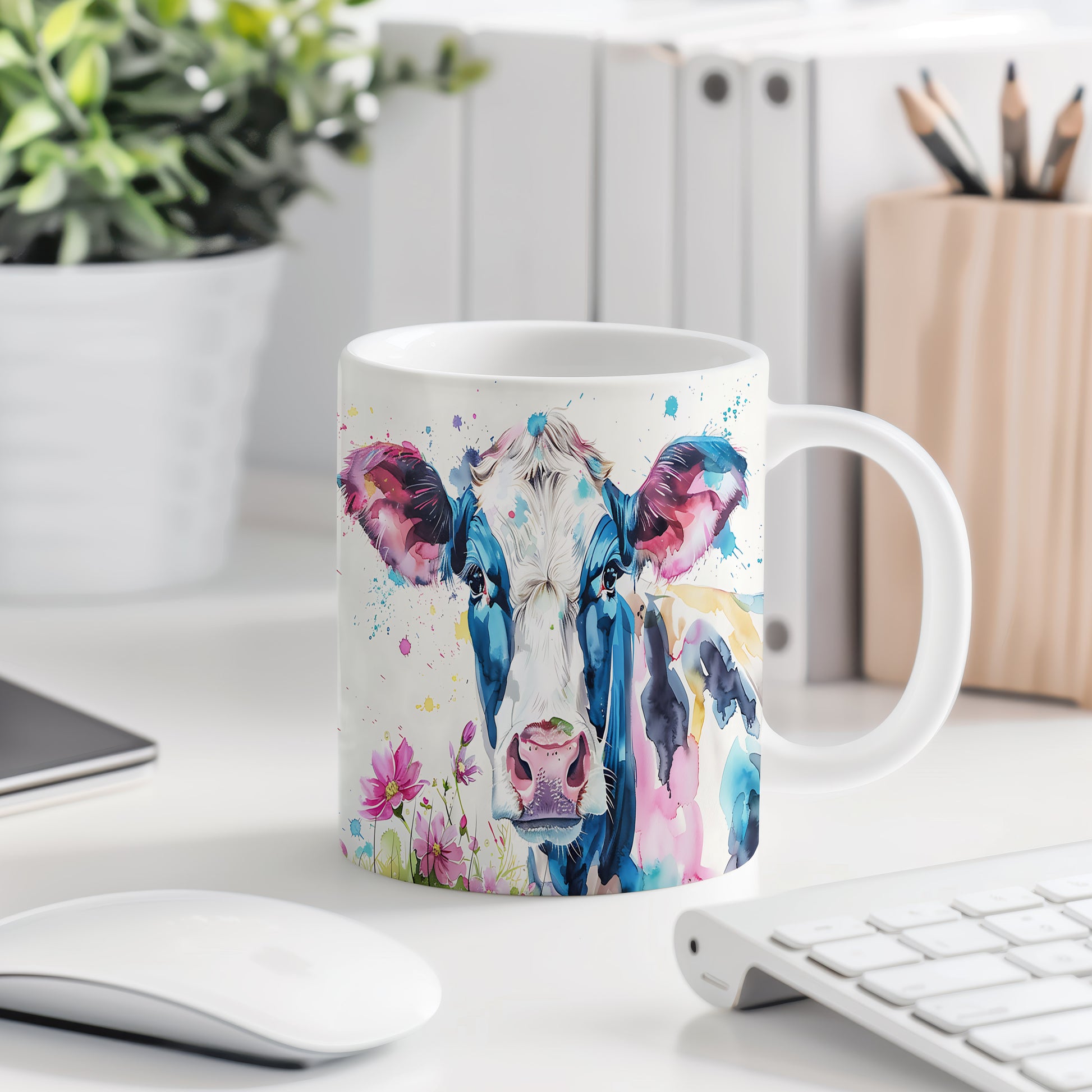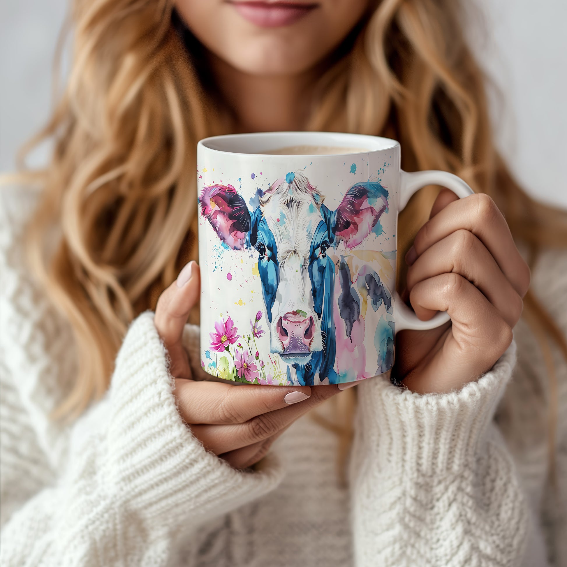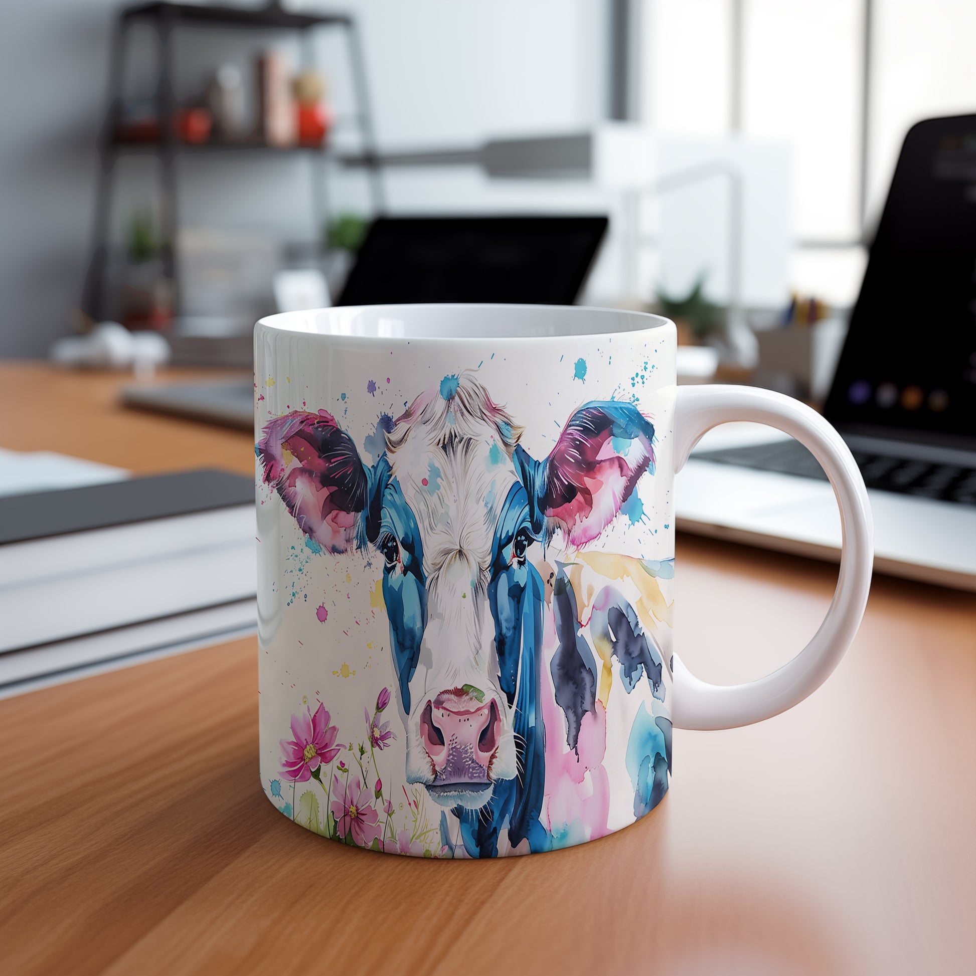 Vtipný hrnek s motivem barevné krávy a květin. Tento hrnek je ideální pro milovníky zvířat a originálních kousků, skvěle se hodí jako dárek pro přátele nebo rodinu. Materiál: keramika. Objem: 330 ml. Vhodné do myčky i mikrovlnky. Užijte si kávu nebo čaj s úsměvem díky jeho jedinečnému designu.