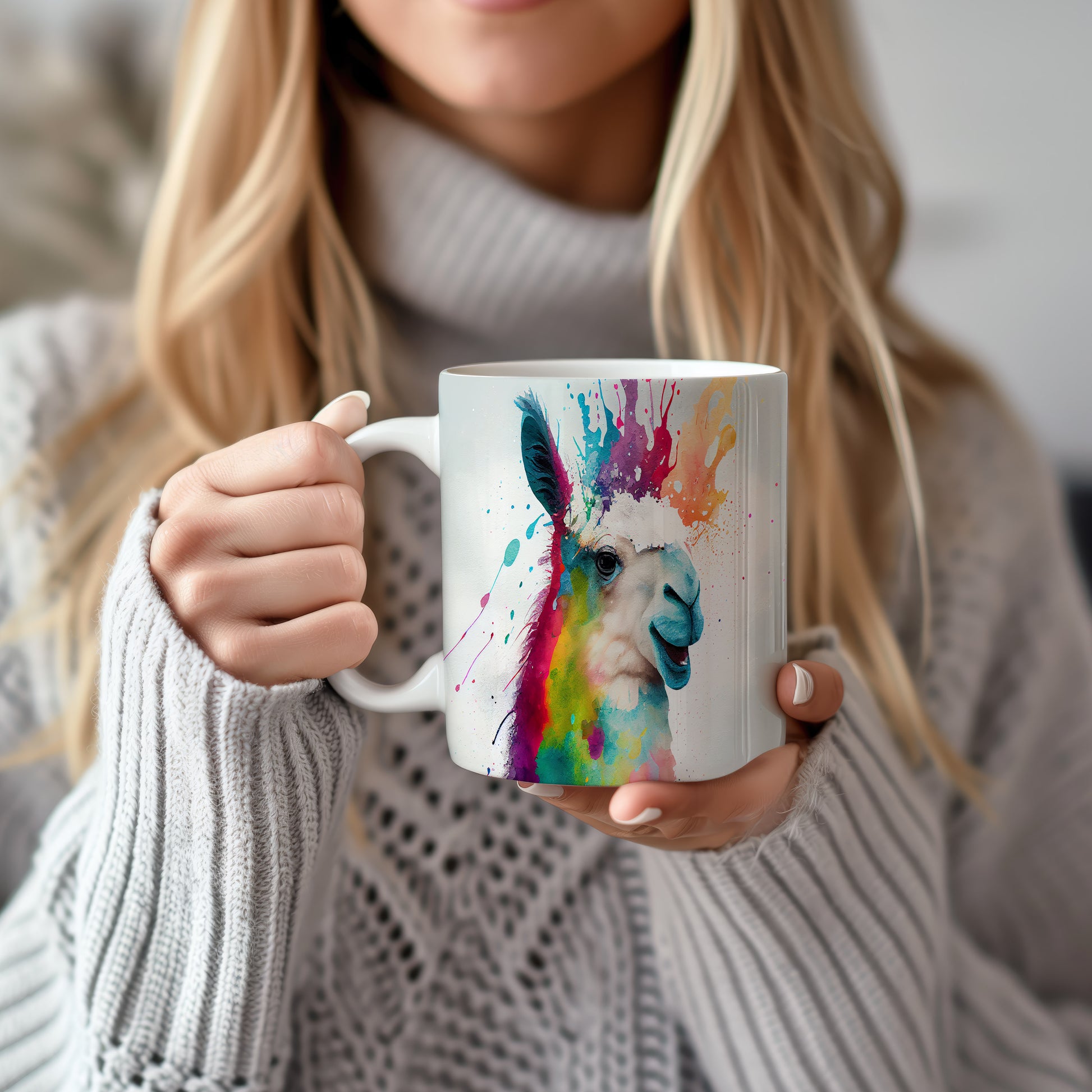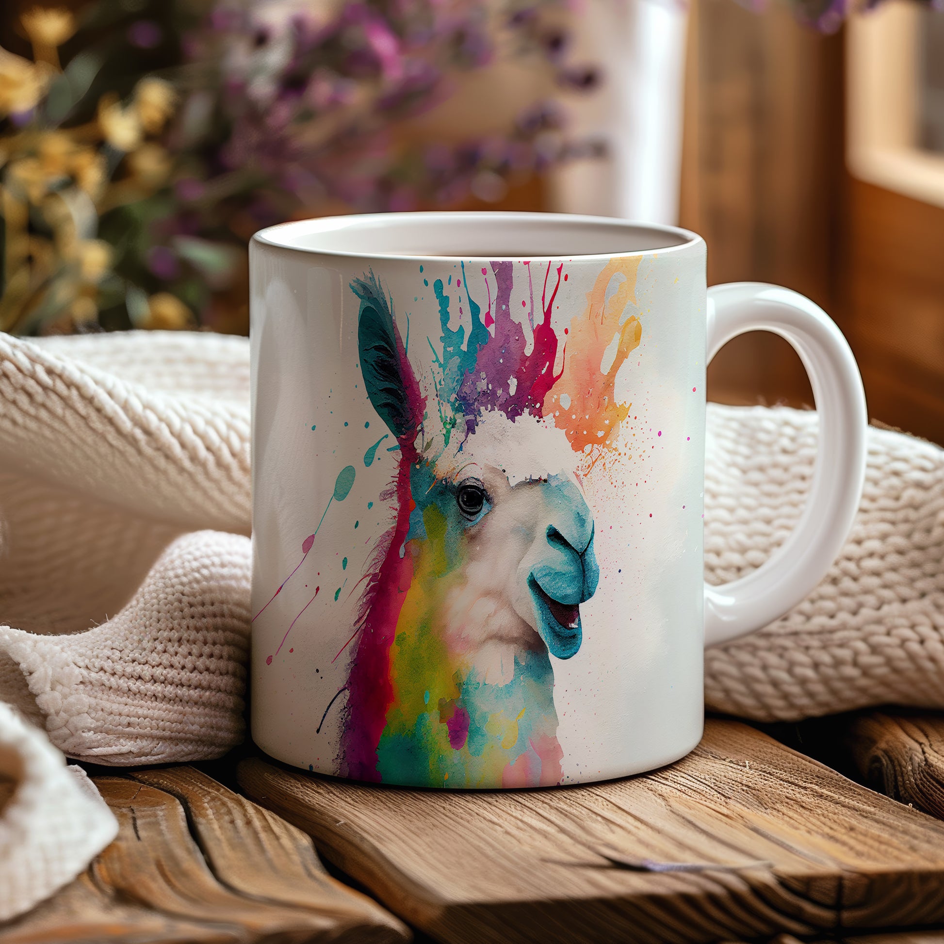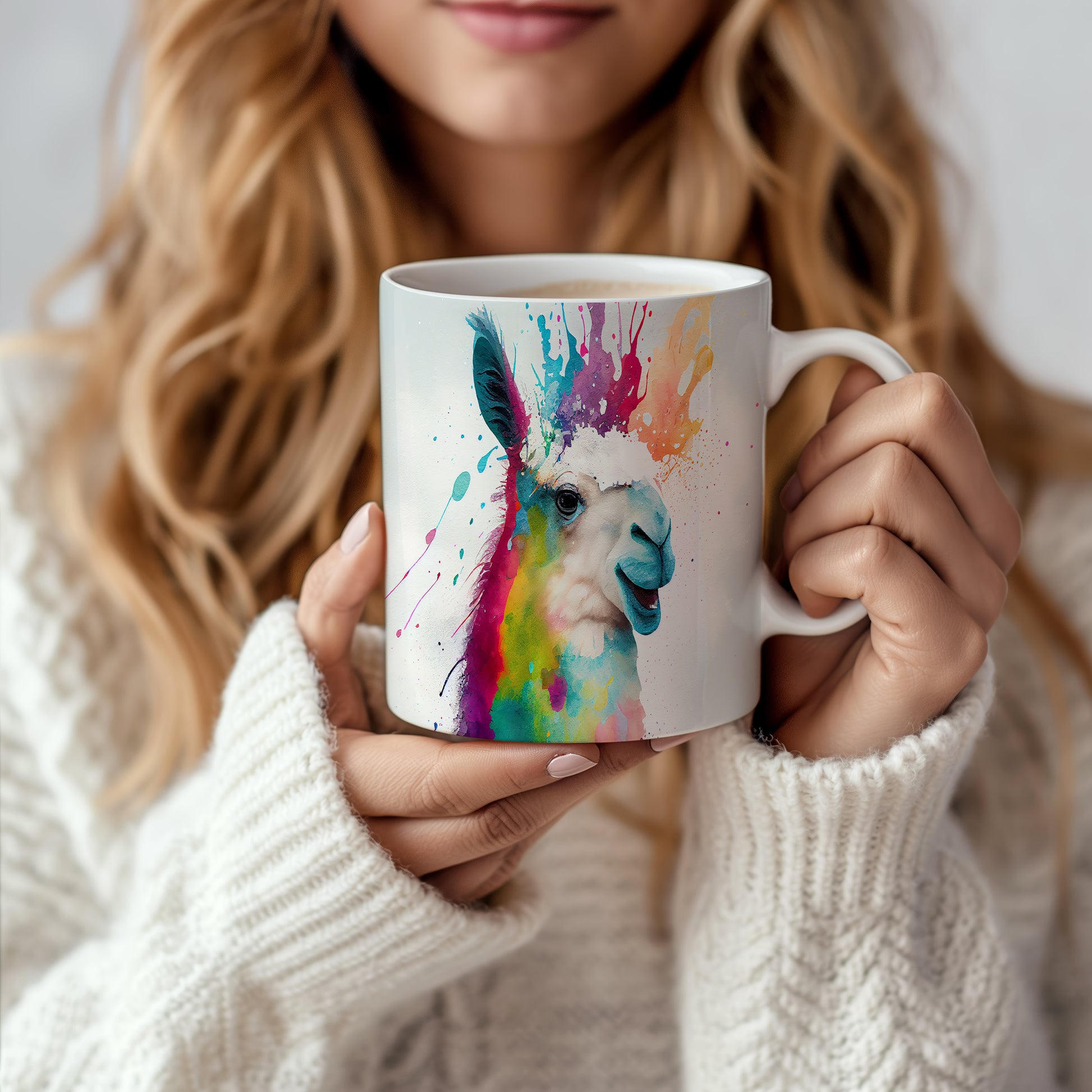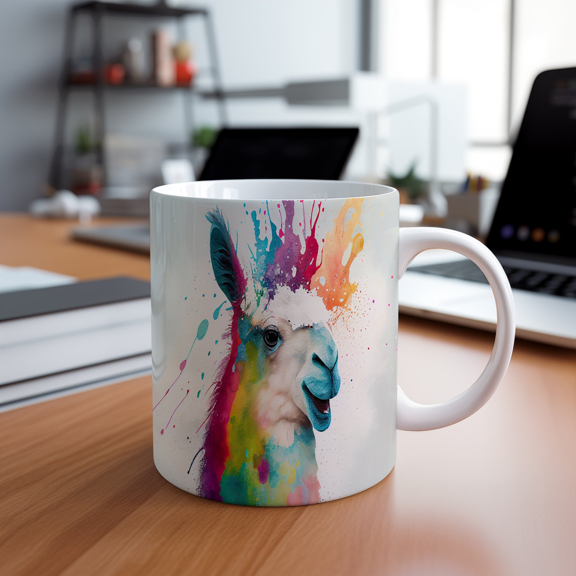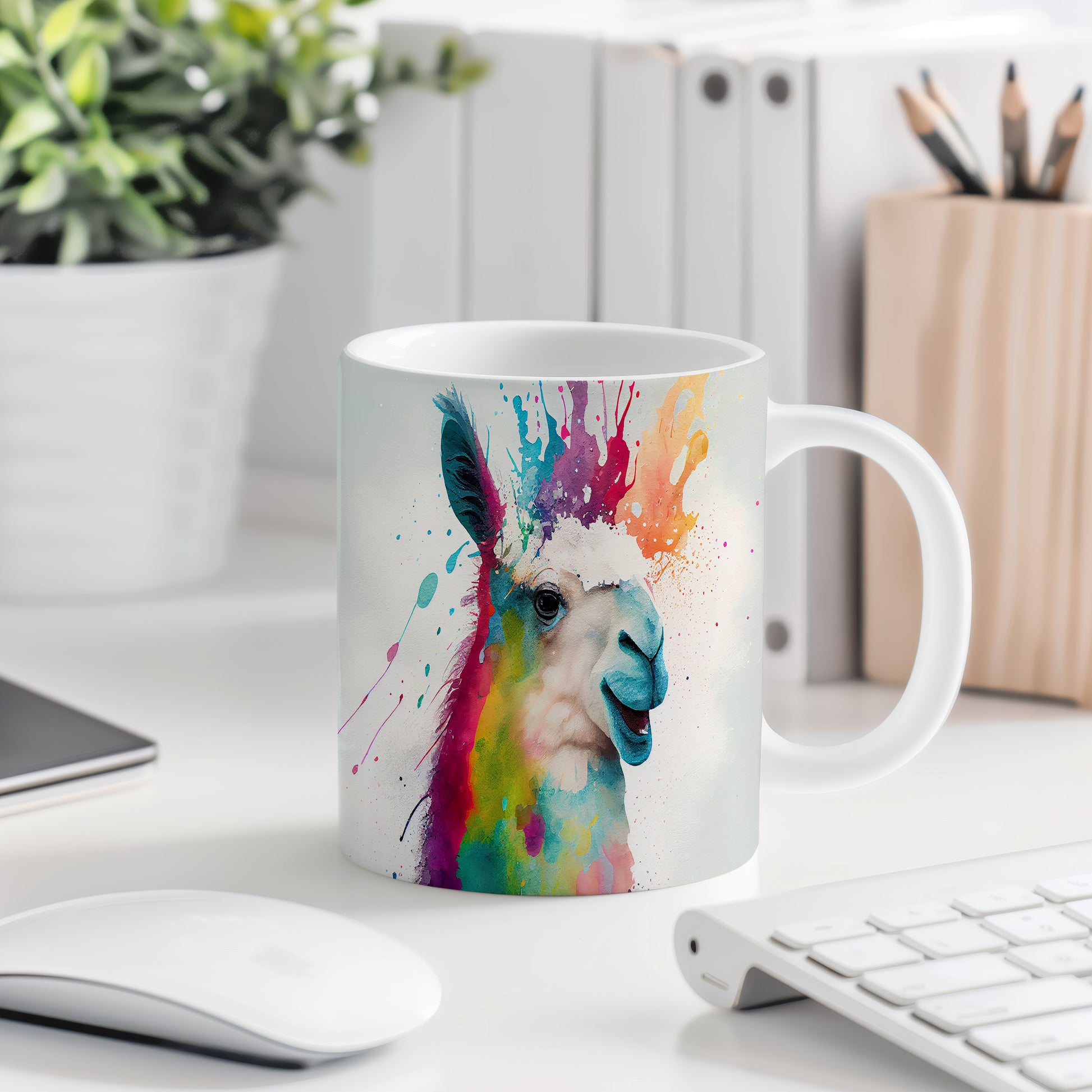 Hrnek s barevnou lamou v akvarelovém stylu je skvělým doplňkem pro milovníky originálního designu. Tento hrnek potěší každého, kdo si rád vychutnává ranní kávu nebo čaj. Materiál: keramika. Objem: 330 ml. Vhodné do myčky i mikrovlnky. Díky svému jedinečnému vzhledu přináší radost do každého dne.