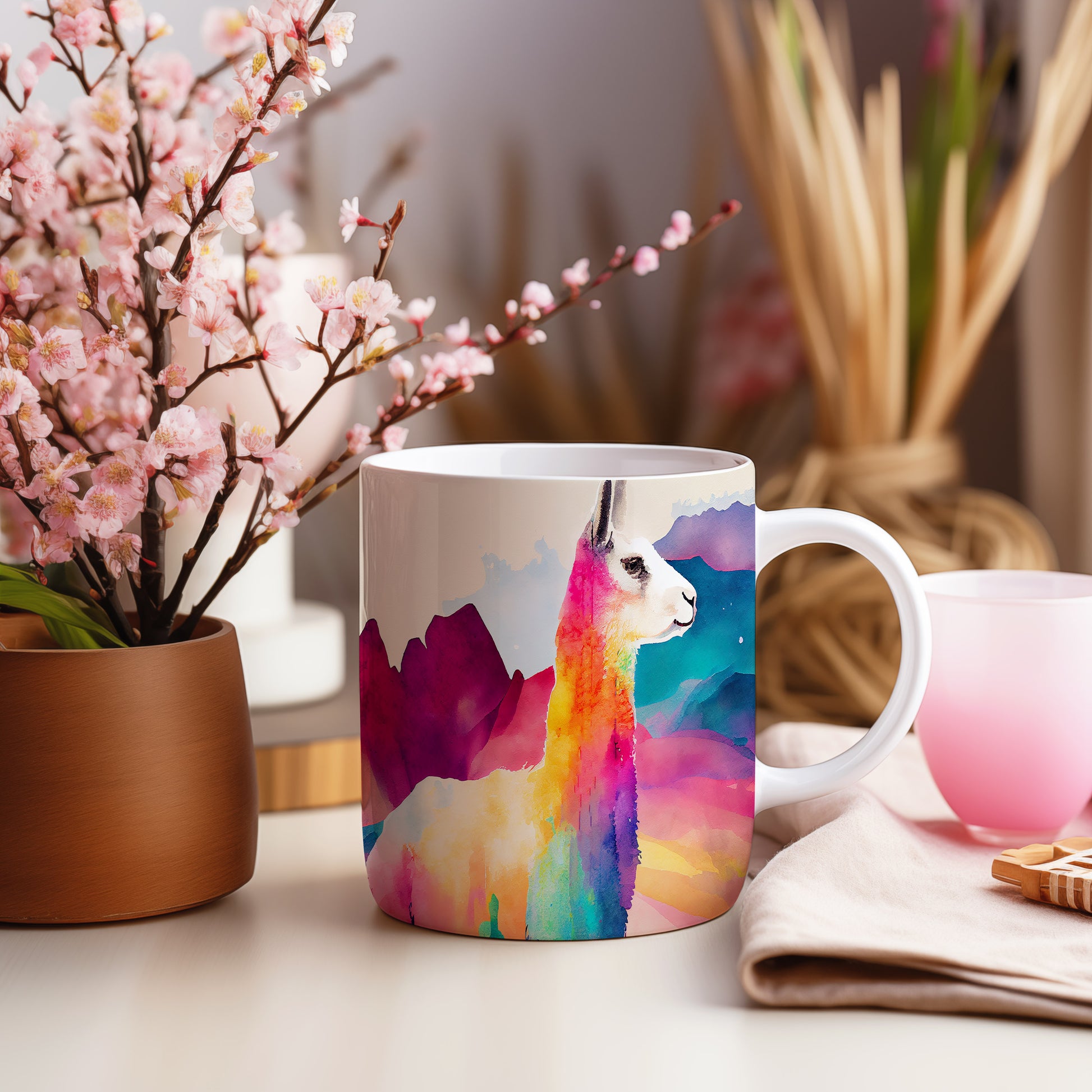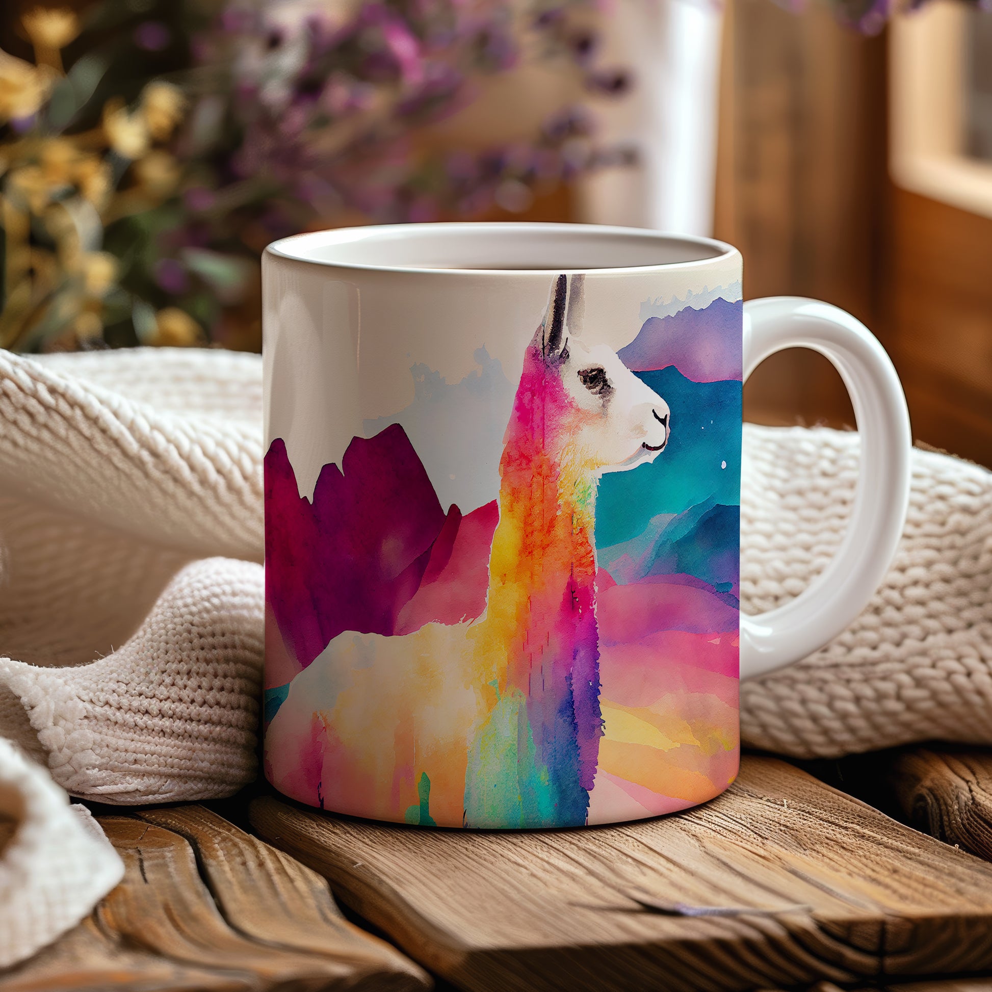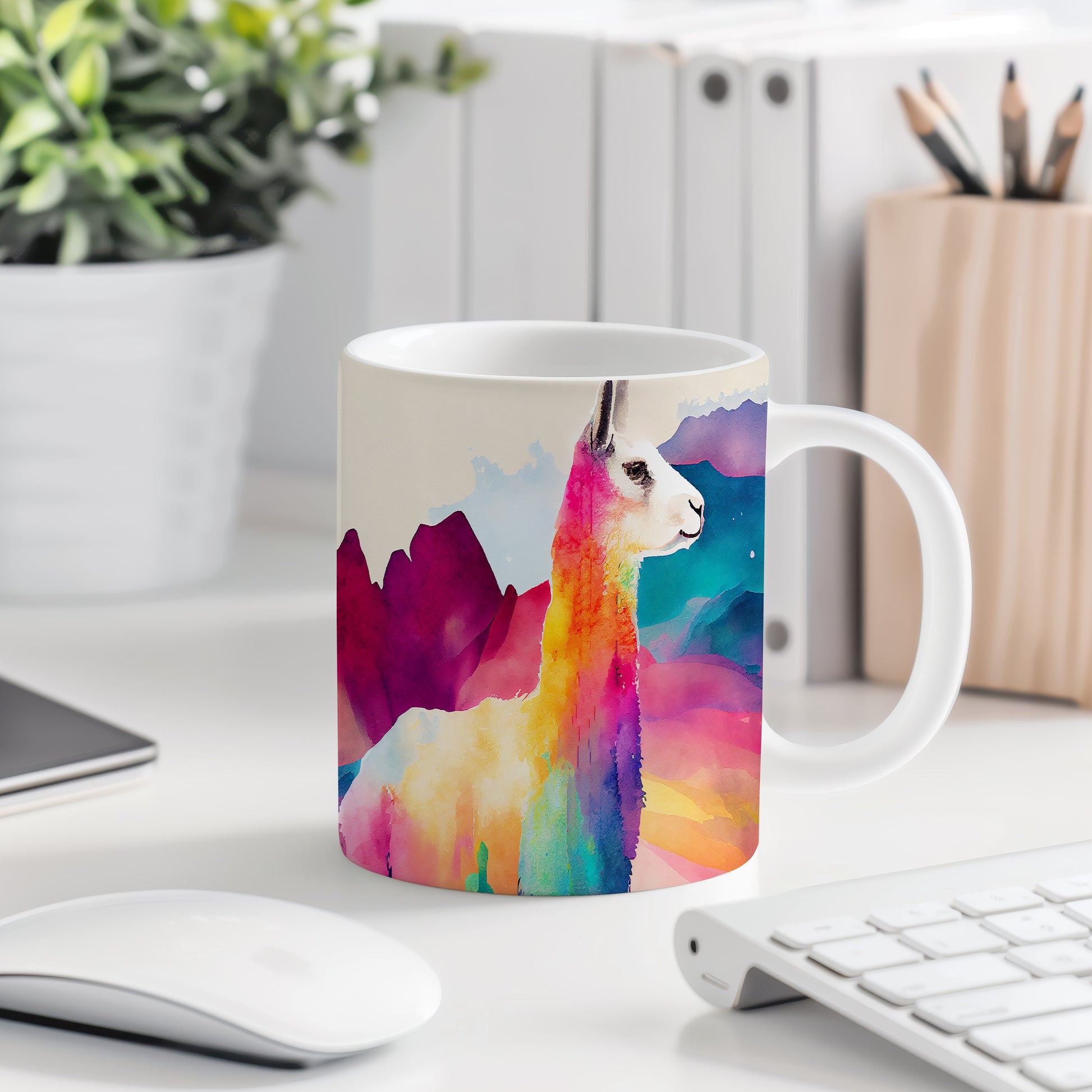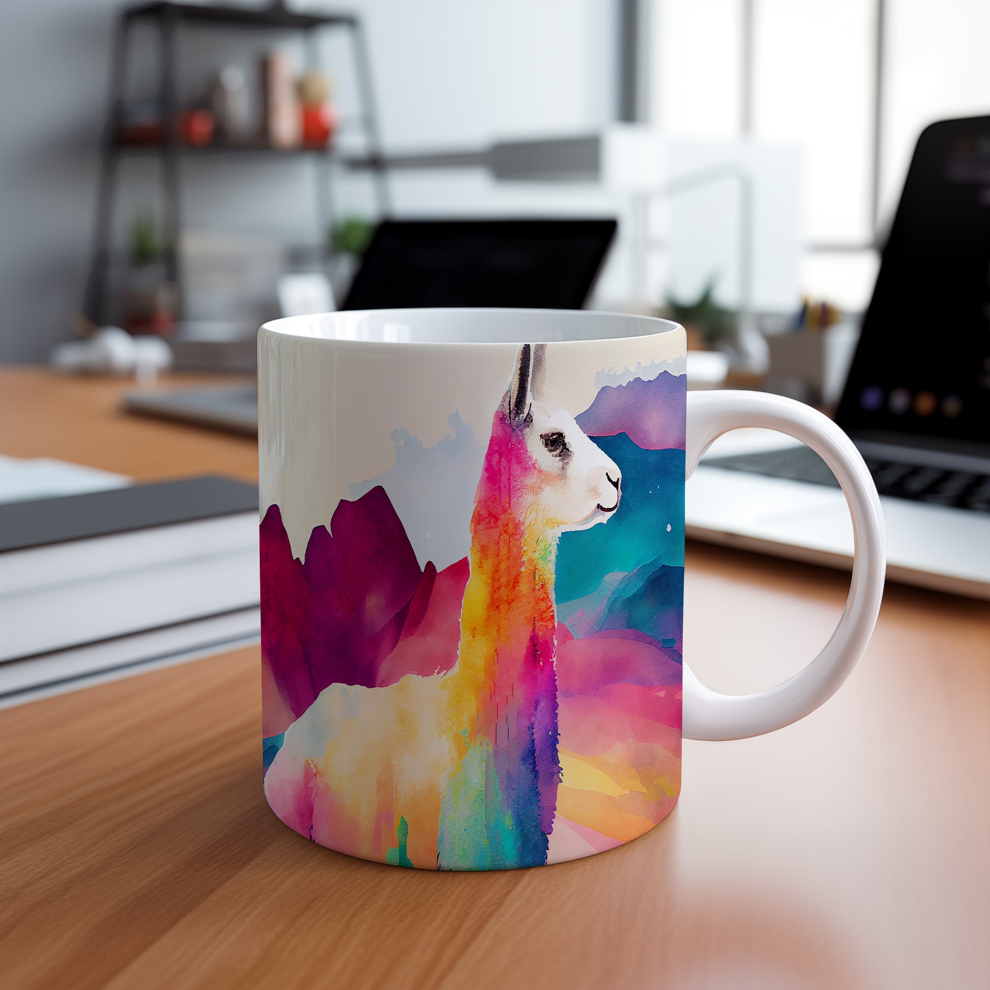 Hrnek s barevnou lamou ve stylu akvarelu přináší jedinečný design, který potěší každého milovníka přírody. Tento hrnek je skvělým dárkem pro přátele nebo rodinu, kteří ocení originální kousek do své domácnosti. Materiál: keramika. Objem: 330 ml. Vhodné do myčky i mikrovlnky. Používání tohoto hrnku přidá do vašeho dne špetku radosti a barev.