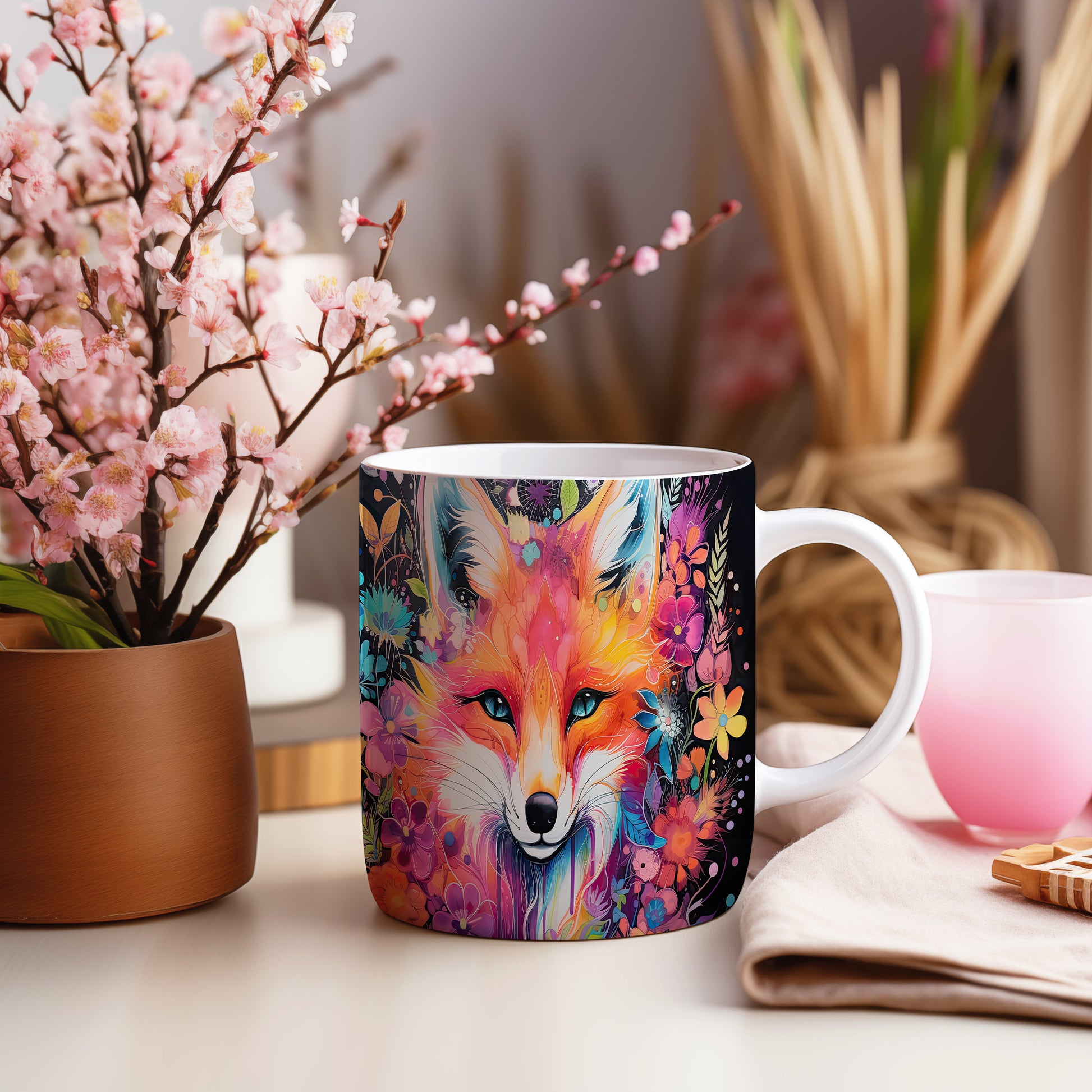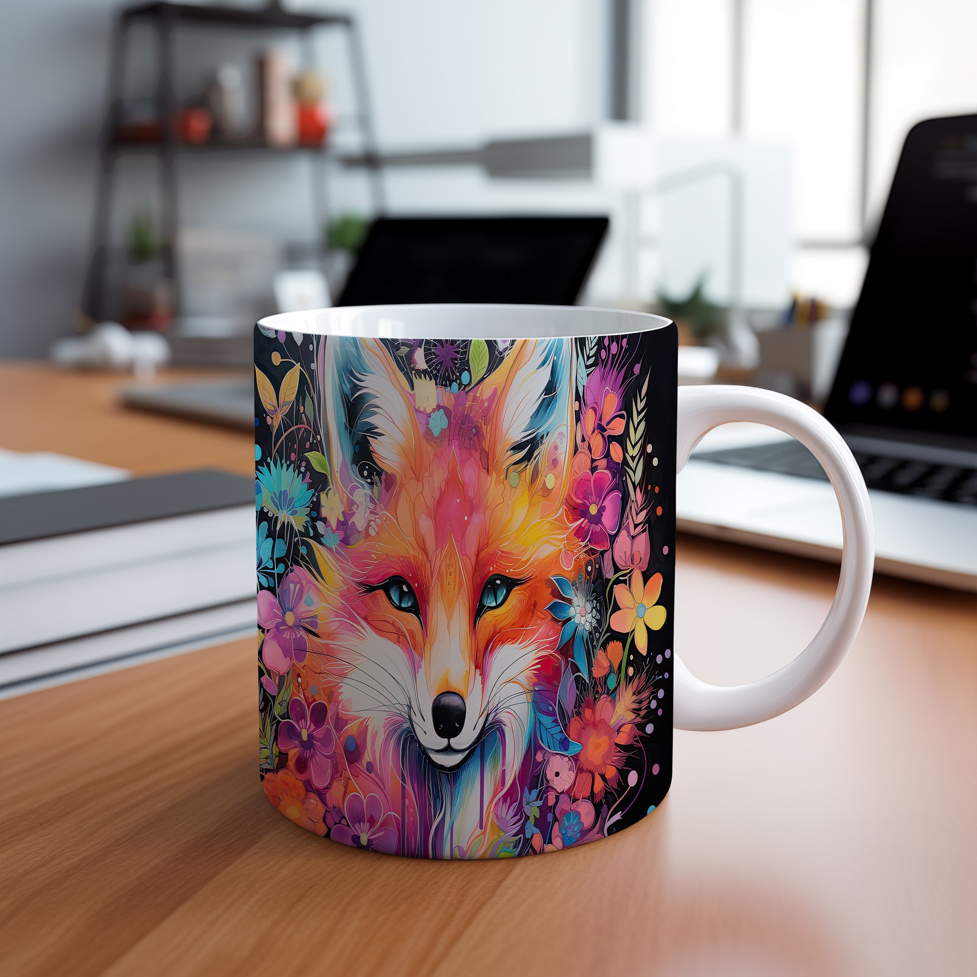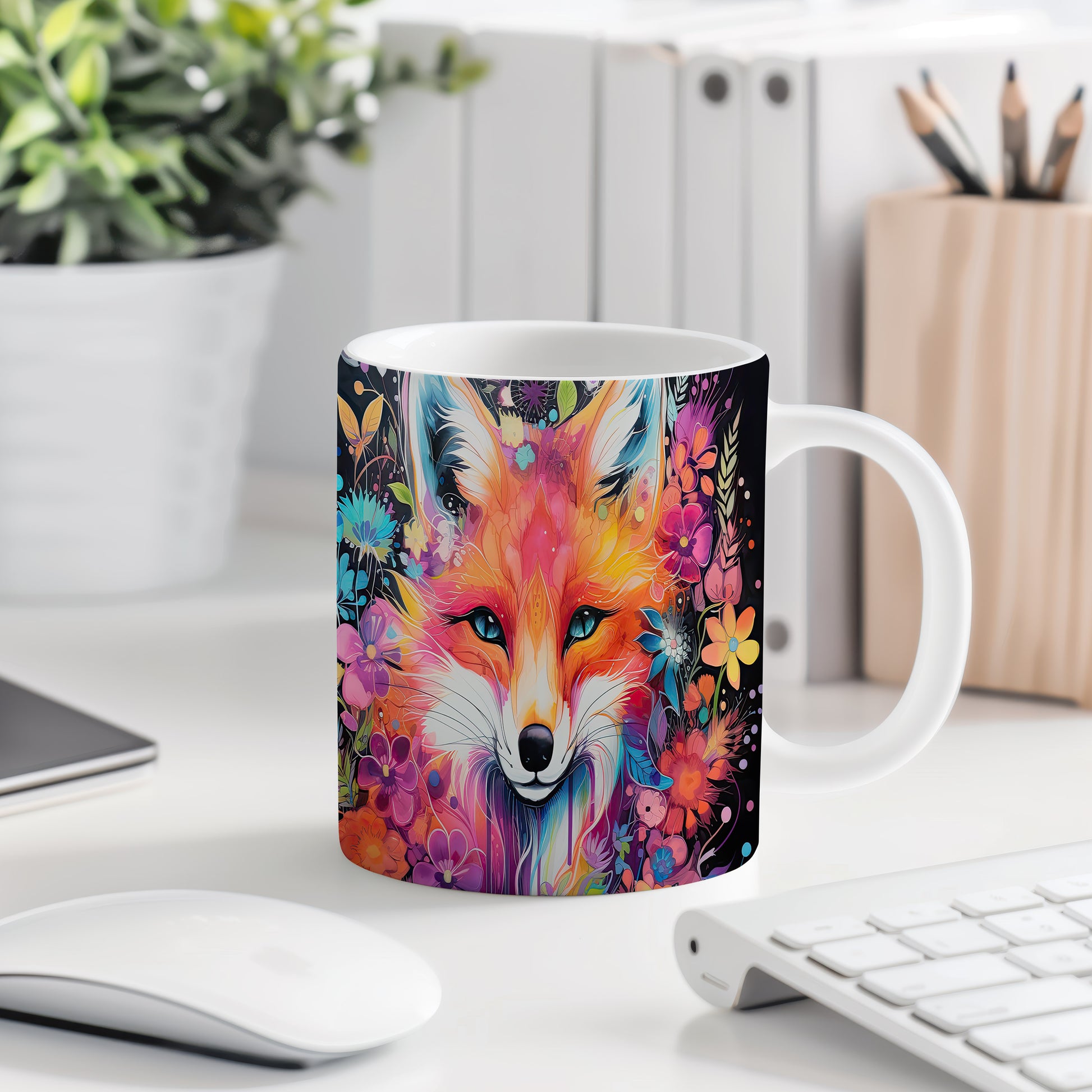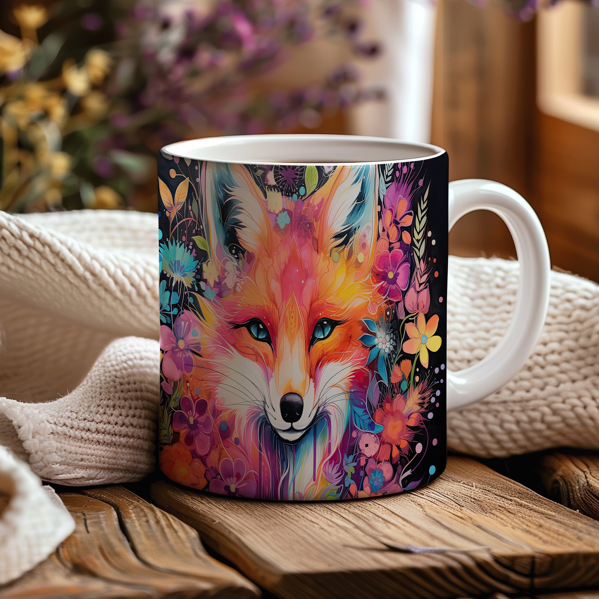 Keramický hrnek s krásným motivem barevné lišky. Tento hrnek je ideální pro milovníky přírody a zvířat, skvělý tip na dárek pro přátele nebo rodinu. Materiál: keramika. Objem: 330 ml. Vhodné do myčky i mikrovlnky. Používání tohoto hrnku přináší radost a oživí každé pití.