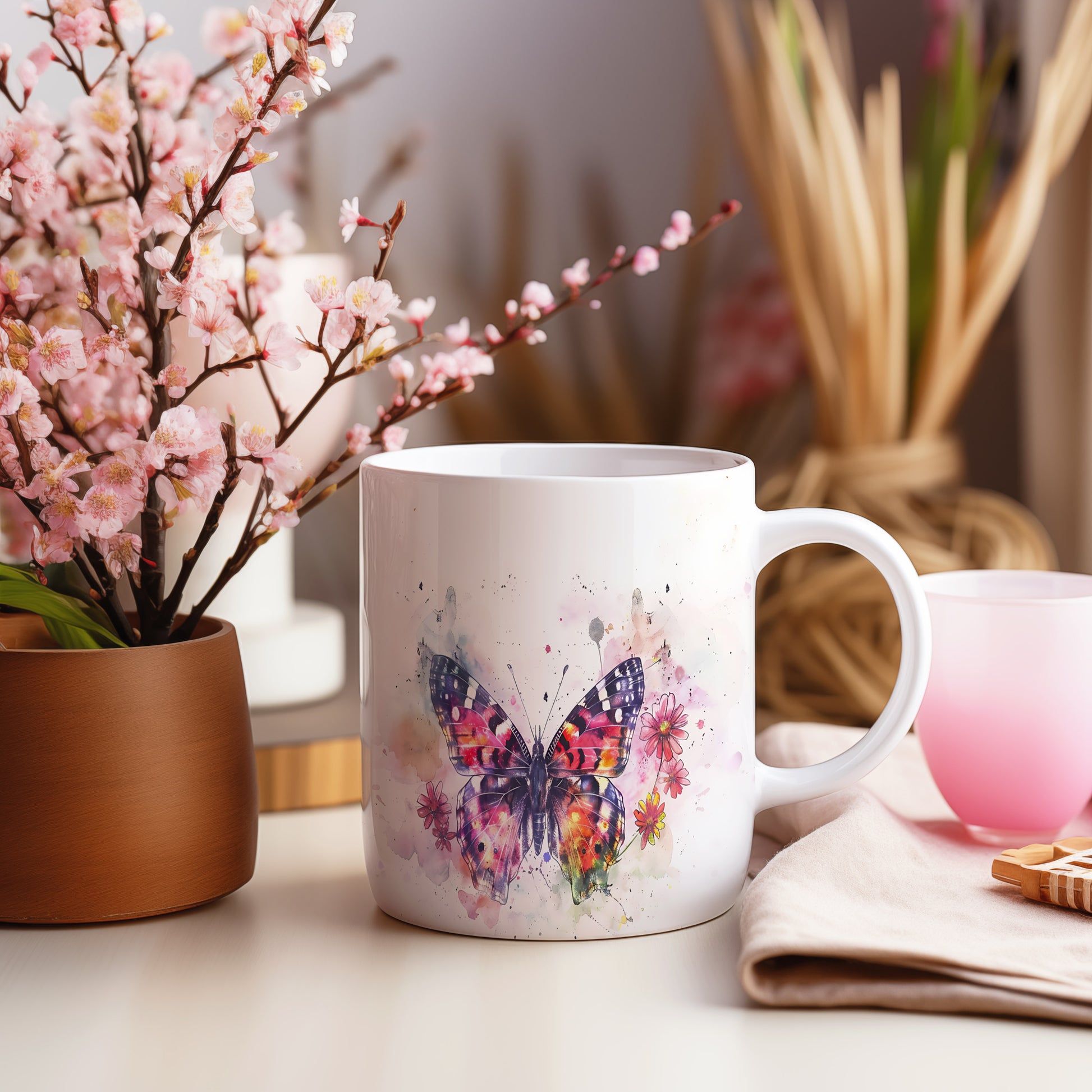 Hrnek s barevnou motýlí ilustrací