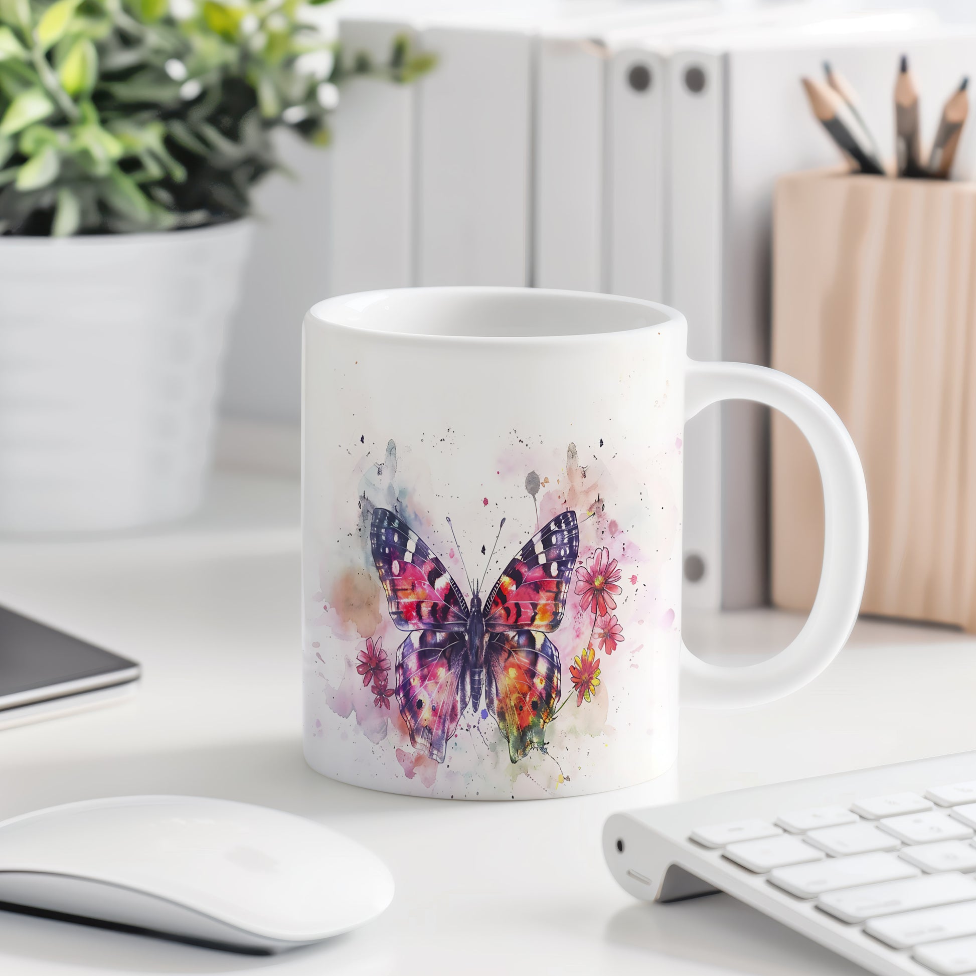 Hrnek s barevnou motýlí ilustrací je skvělým kouskem pro milovníky přírody a krásných detailů. Tento hrnek je ideální jako dárek pro přátele nebo rodinu, kteří ocení originální design. Materiál: keramika. Objem: 330 ml. Vhodné do myčky i mikrovlnky. Užívejte si svůj oblíbený nápoj s tímto stylovým hrnkem, který přináší radost do každého dne.