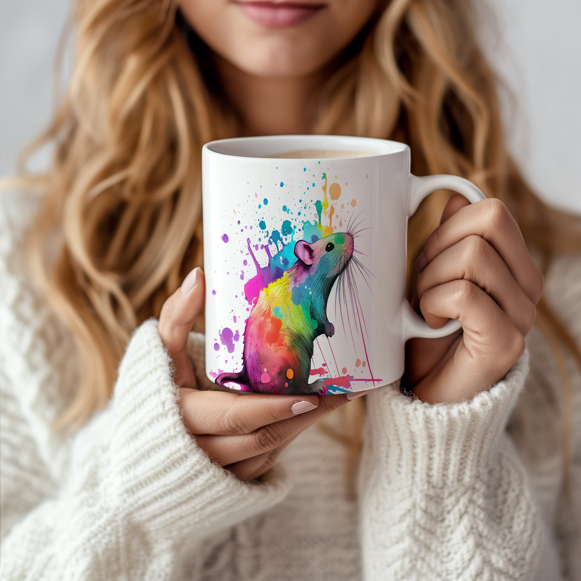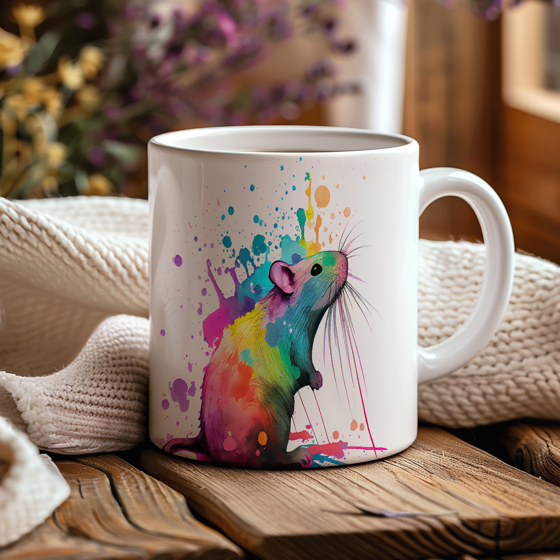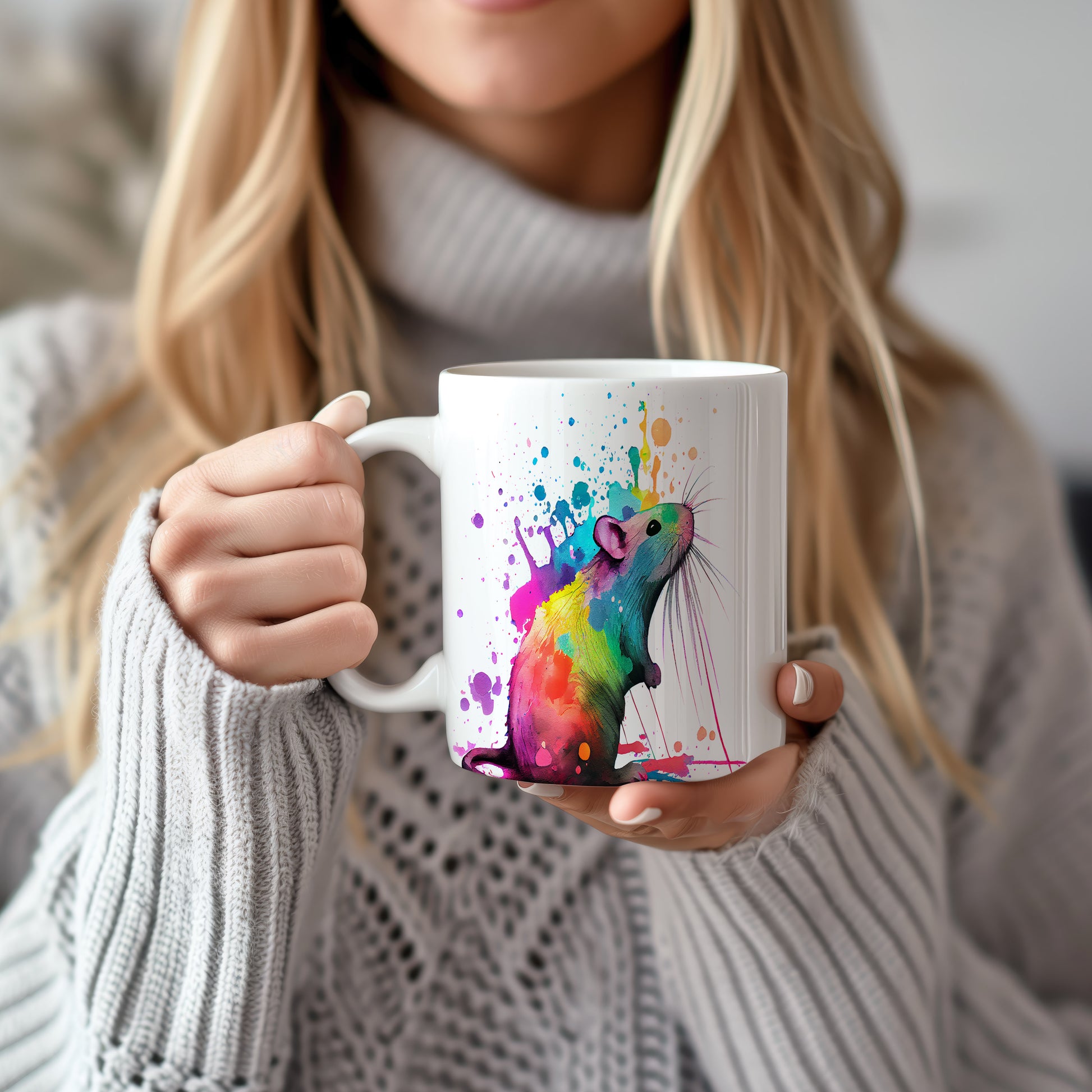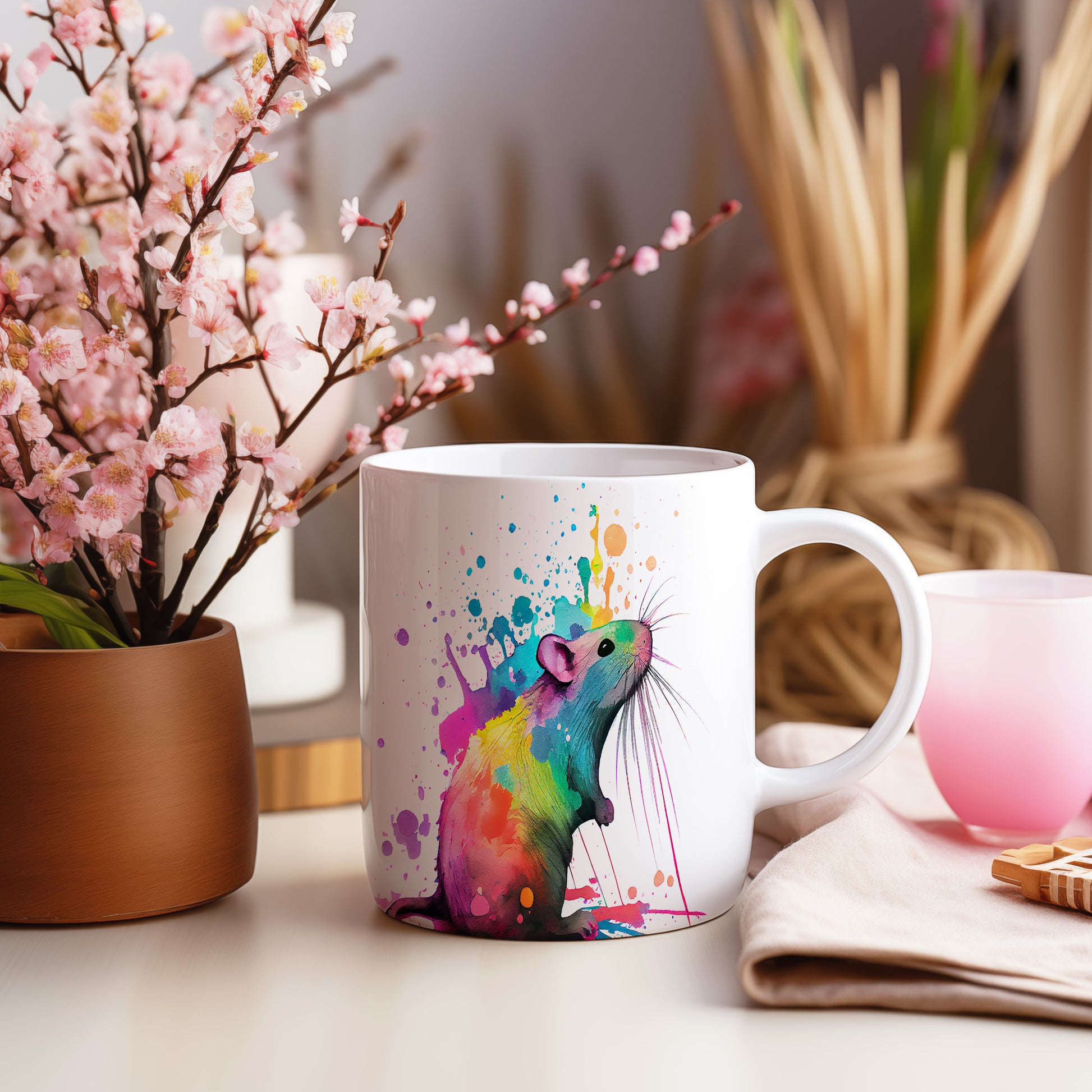 Tento hrnek s motivem barevné myši a abstraktními skvrnami je skvělým doplňkem pro každého milovníka zvířat. Je ideální jako dárek pro děti nebo pro přátele, kteří mají rádi originální design. Materiál: keramika. Objem: 330 ml. Vhodné do myčky i mikrovlnky. Díky svému jedinečnému vzhledu přináší radost do každodenního pití.