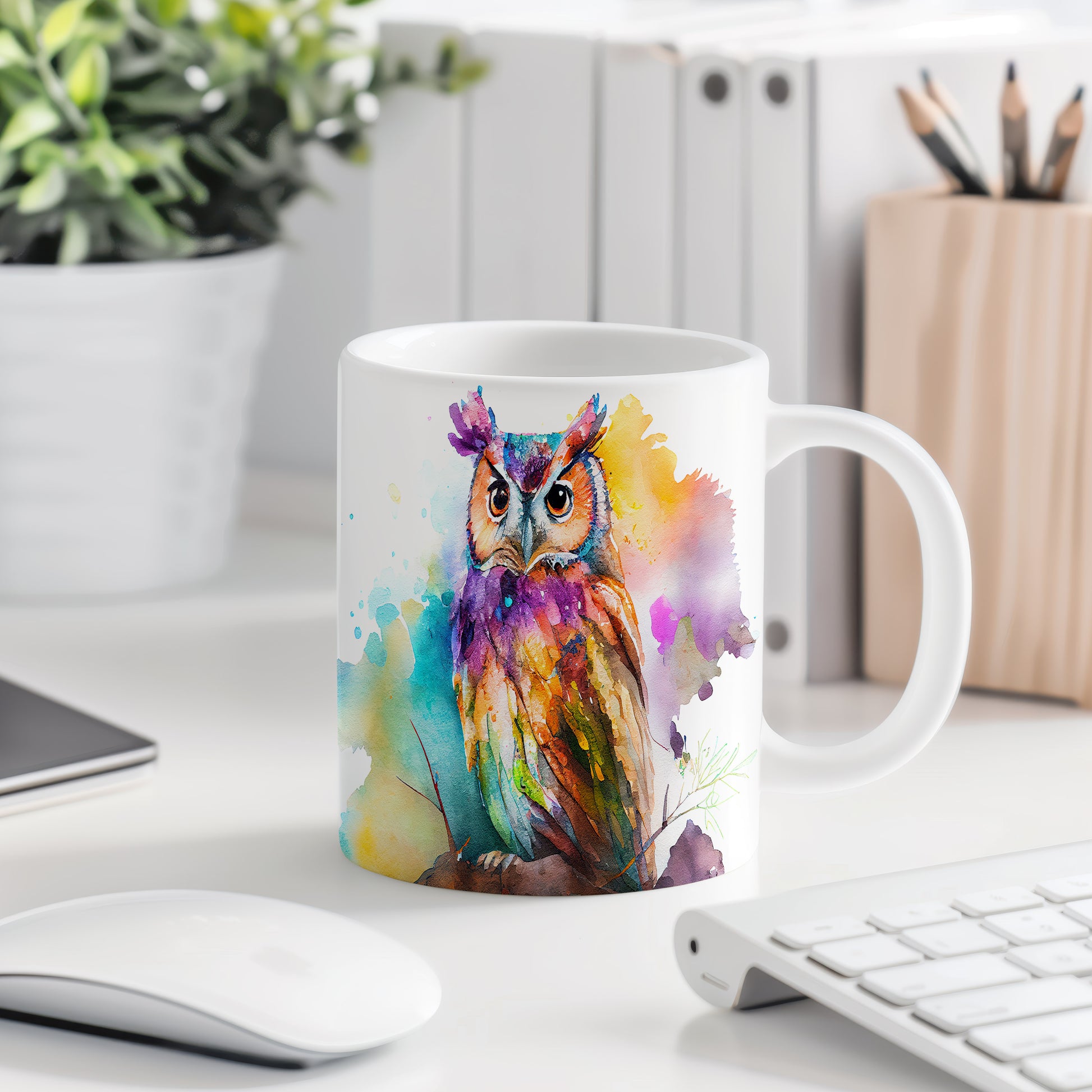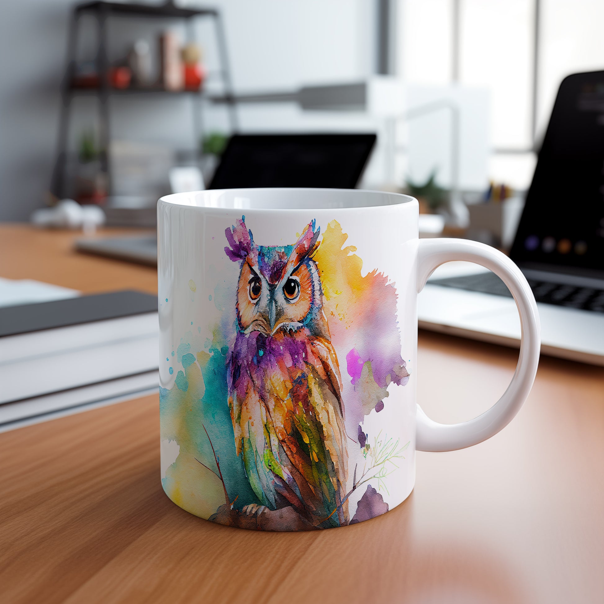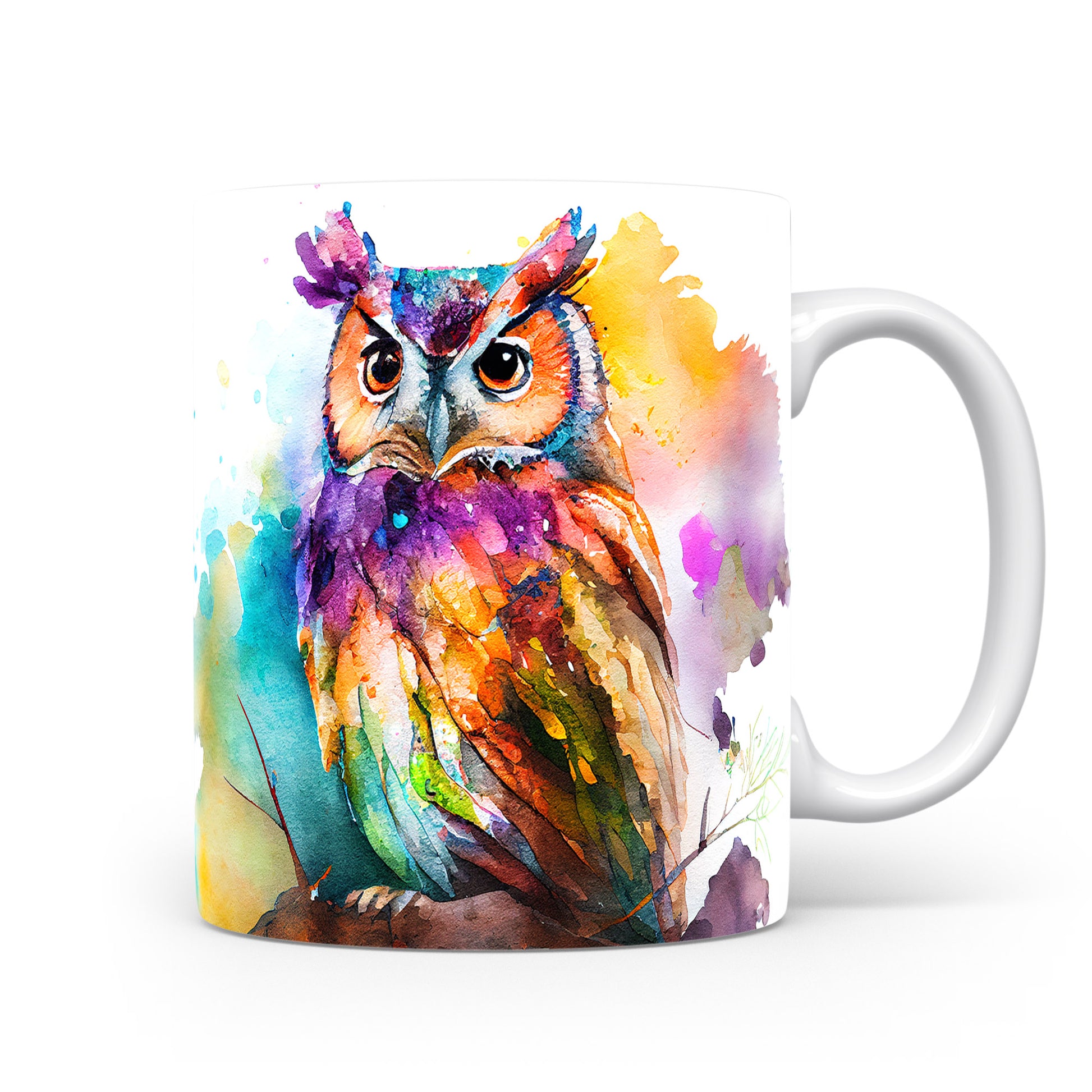 Hrnek s barevnou sovičkou – akvarelovým motivem