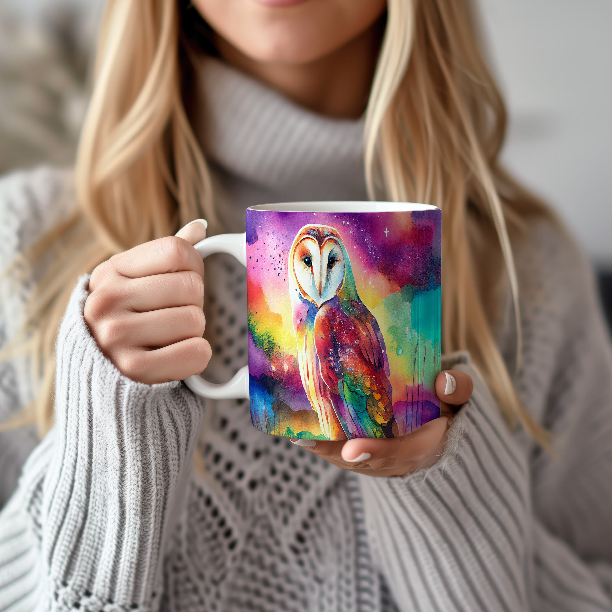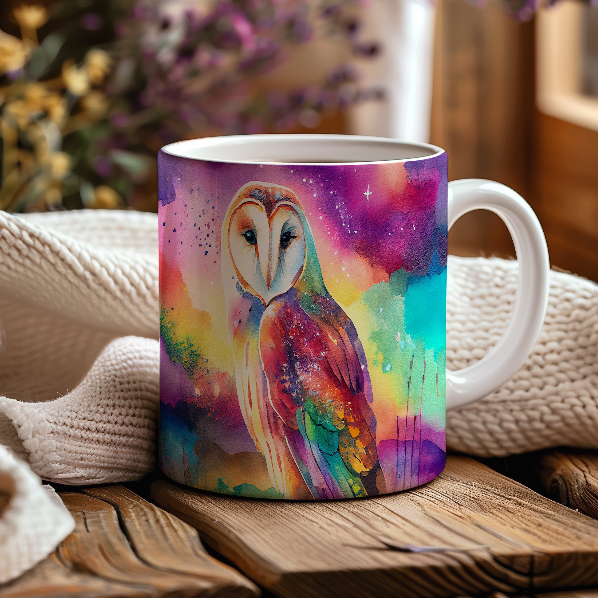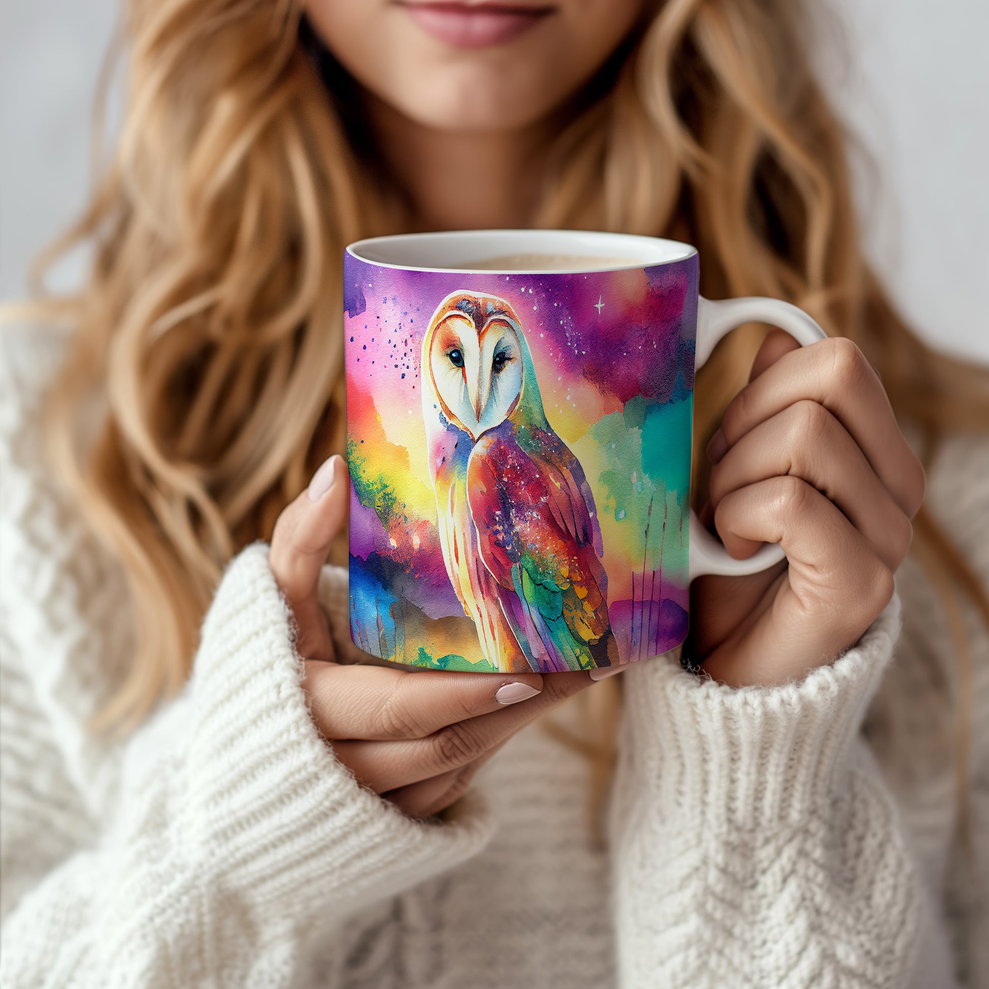Hrnek s motivem barevné sovy v akvarelovém stylu přináší do vašeho dne špetku magického kouzla. Je ideální pro milovníky přírody a skvělým dárkem pro přátele či rodinu. Materiál: keramika. Objem: 330 ml. Vhodné do myčky i mikrovlnky. Tento hrnek vám zpříjemní každé ráno a dodá vám inspiraci na celý den.