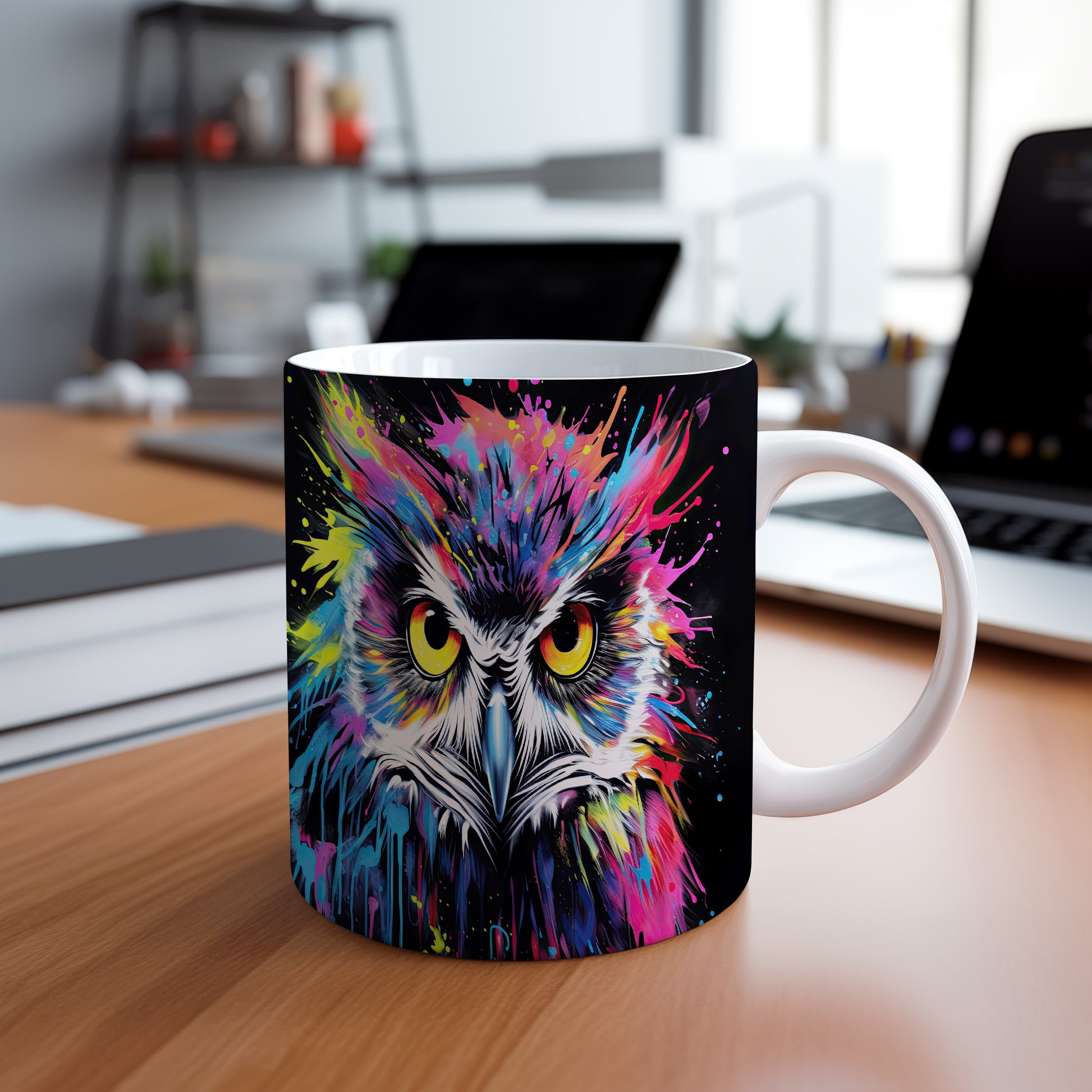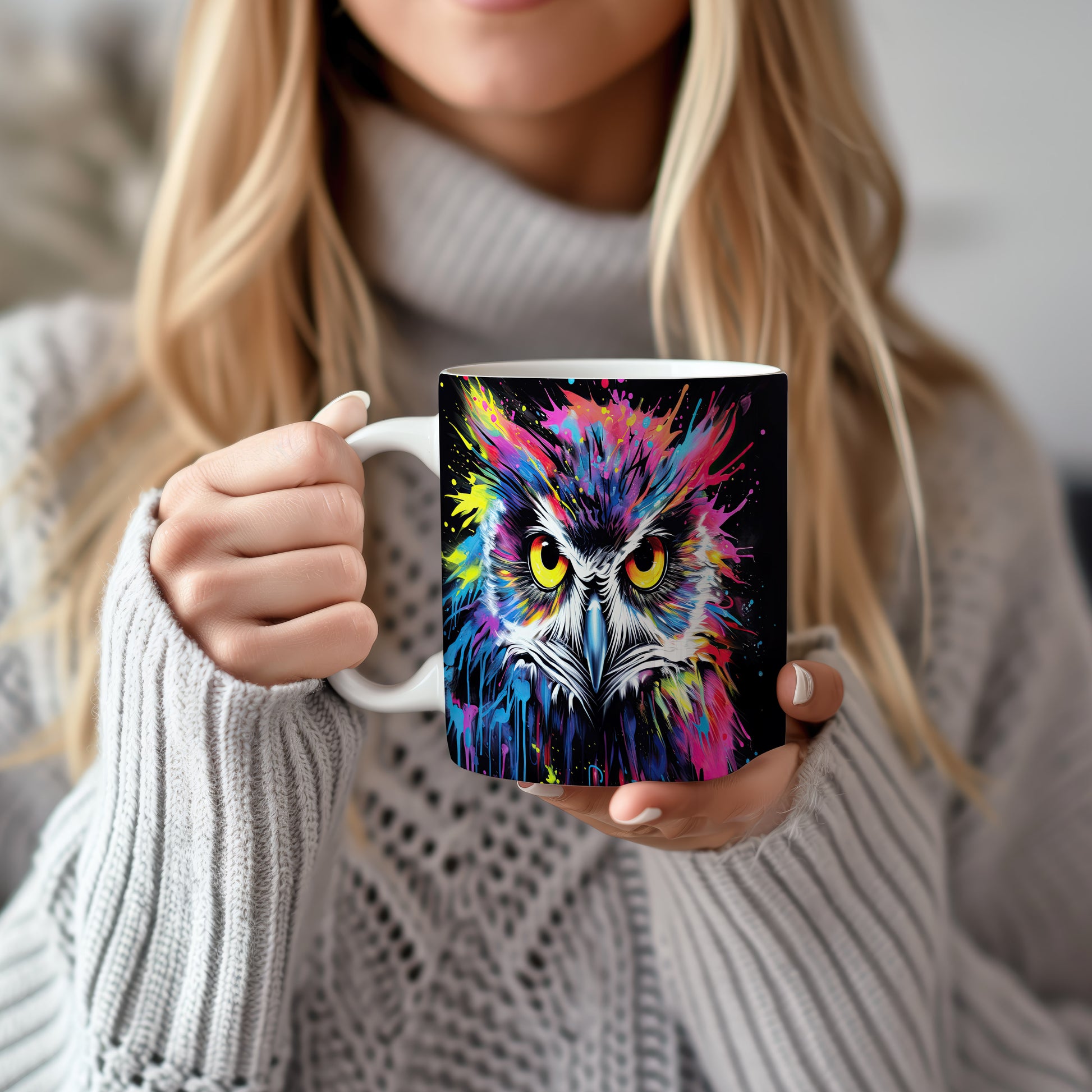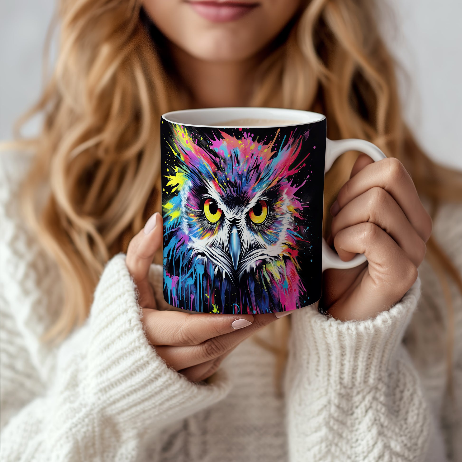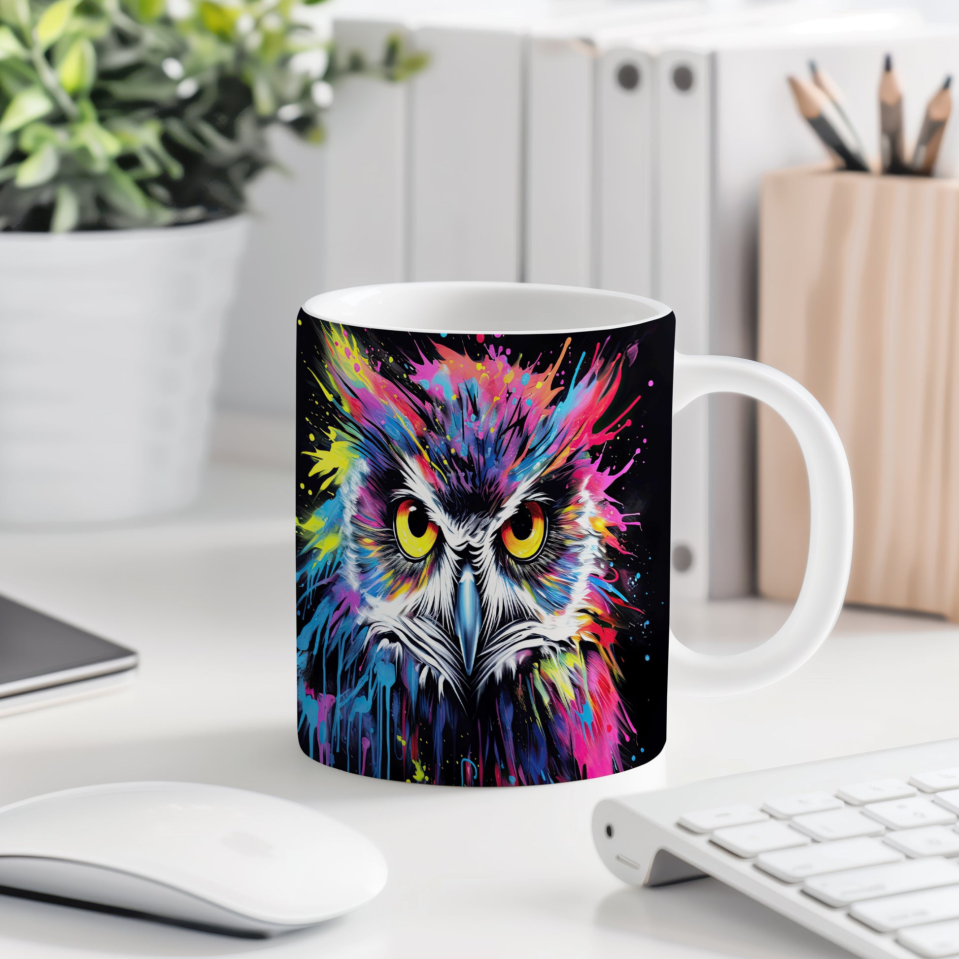 Hrnek s barevnou sovou představuje originální a veselý design, který potěší každého milovníka ptáků a umění. Tento hrnek je skvělým dárkem pro přátele nebo rodinu, kteří ocení jedinečné kousky. Materiál: keramika. Objem: 330 ml. Vhodné do myčky i mikrovlnky. Díky svému stylovému vzhledu přináší do každodenního pití radost a pozitivní energii.