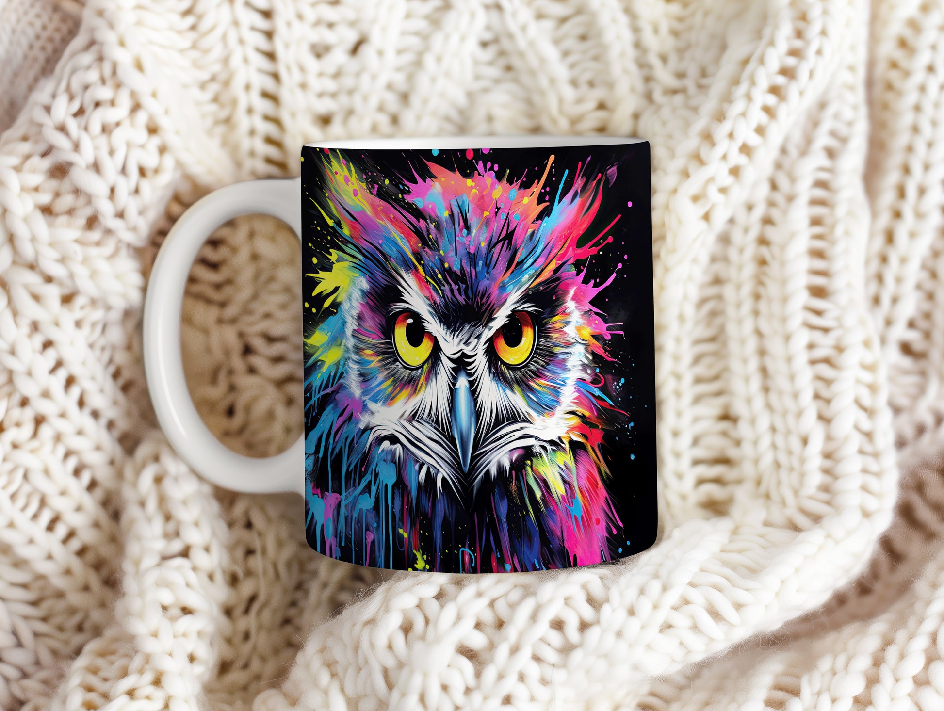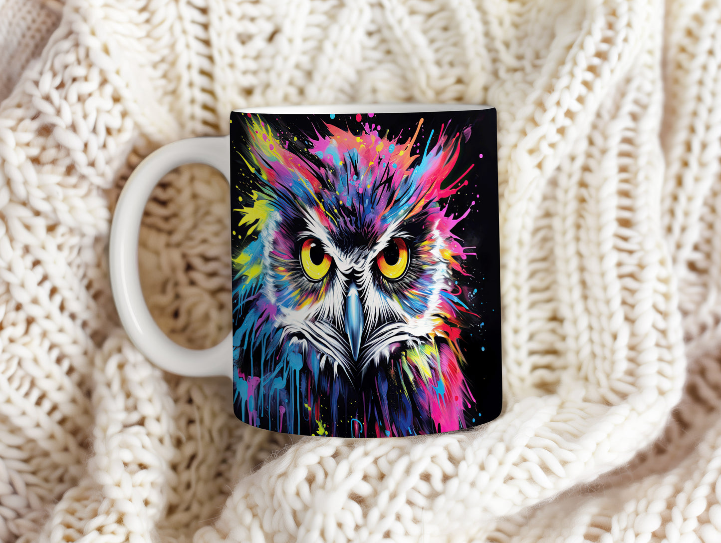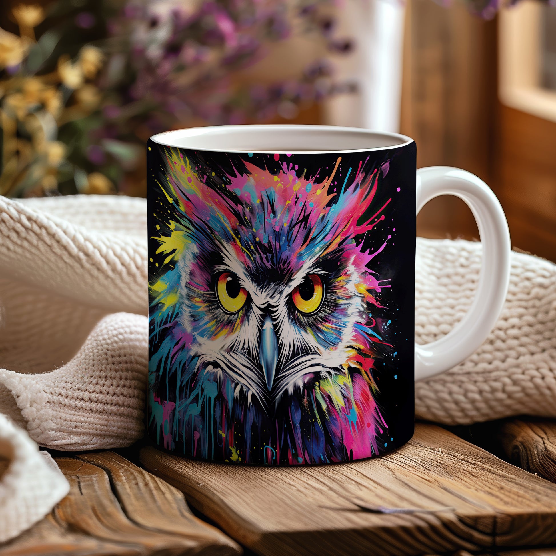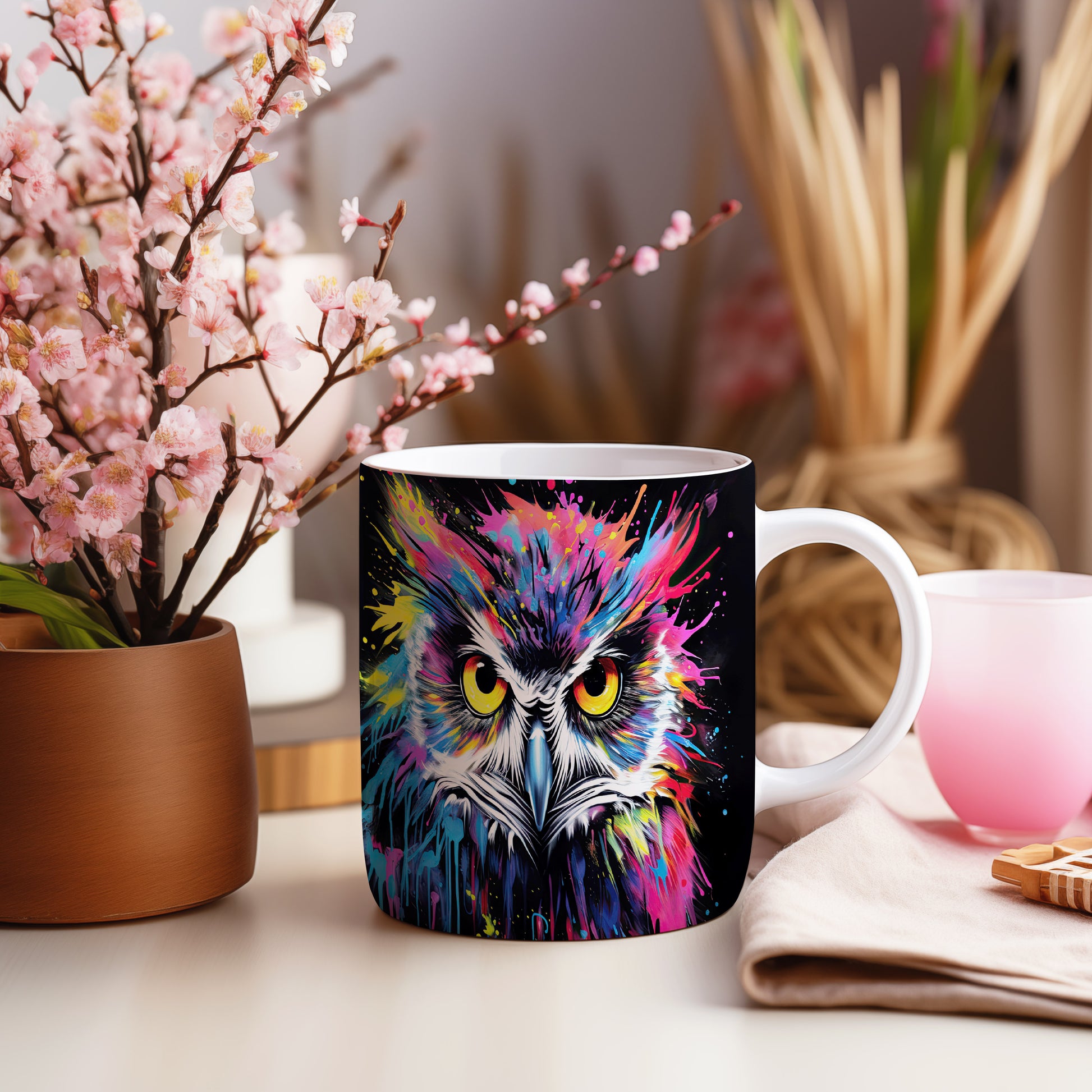 Hrnek s barevnou sovou představuje originální a veselý design, který potěší každého milovníka ptáků a umění. Tento hrnek je skvělým dárkem pro přátele nebo rodinu, kteří ocení jedinečné kousky. Materiál: keramika. Objem: 330 ml. Vhodné do myčky i mikrovlnky. Díky svému stylovému vzhledu přináší do každodenního pití radost a pozitivní energii.