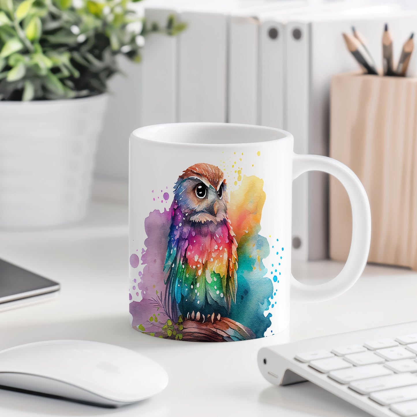 Stylový hrnek s motivem barevné sovy, který přináší do vašeho dne příjemnou atmosféru. Tento hrnek je ideální pro milovníky přírody a skvělý tip na dárek pro přátele či rodinu. Materiál: keramika. Objem: 330 ml. Vhodné do myčky i mikrovlnky. Používáním tohoto hrnku si zpříjemníte každé sousto a nápoj.