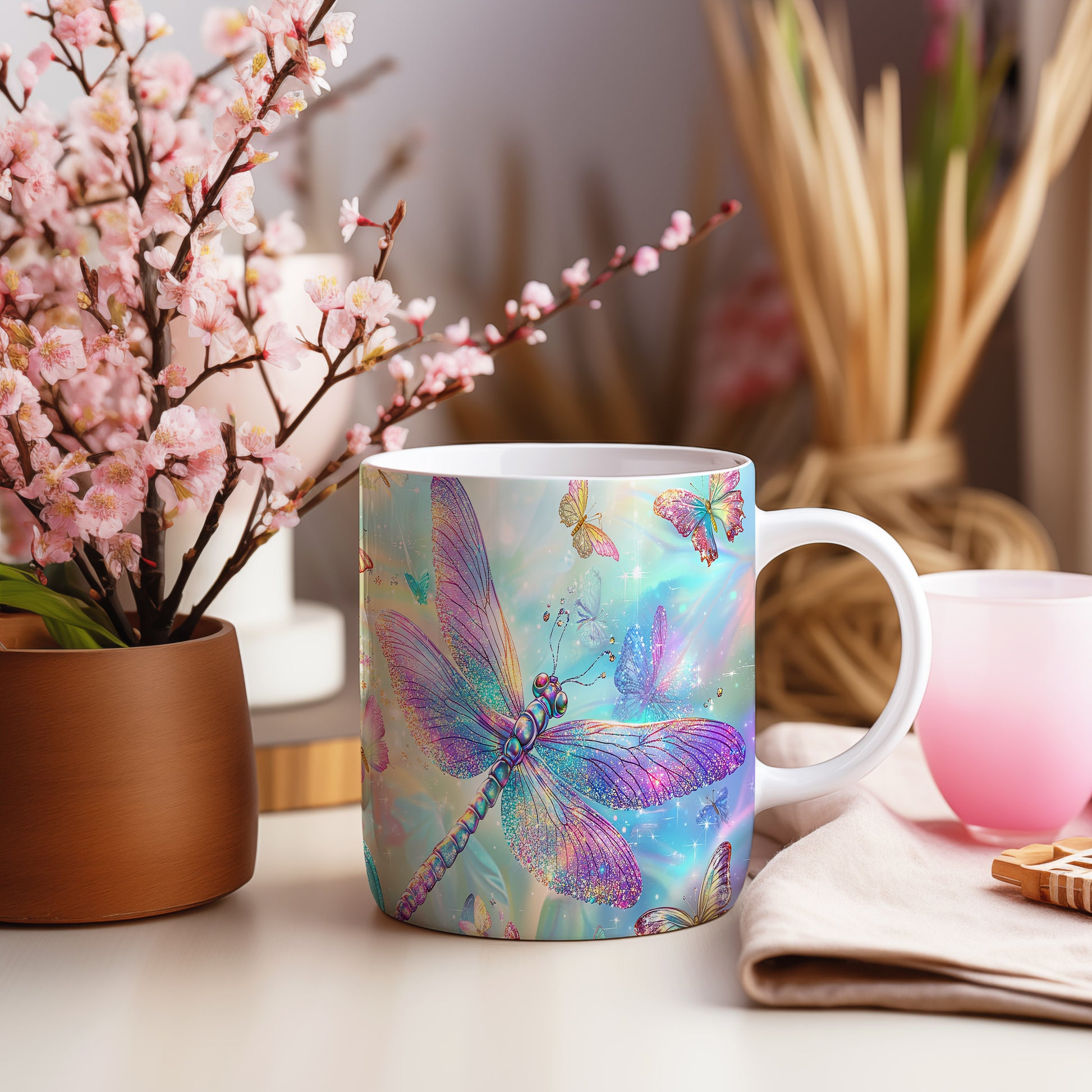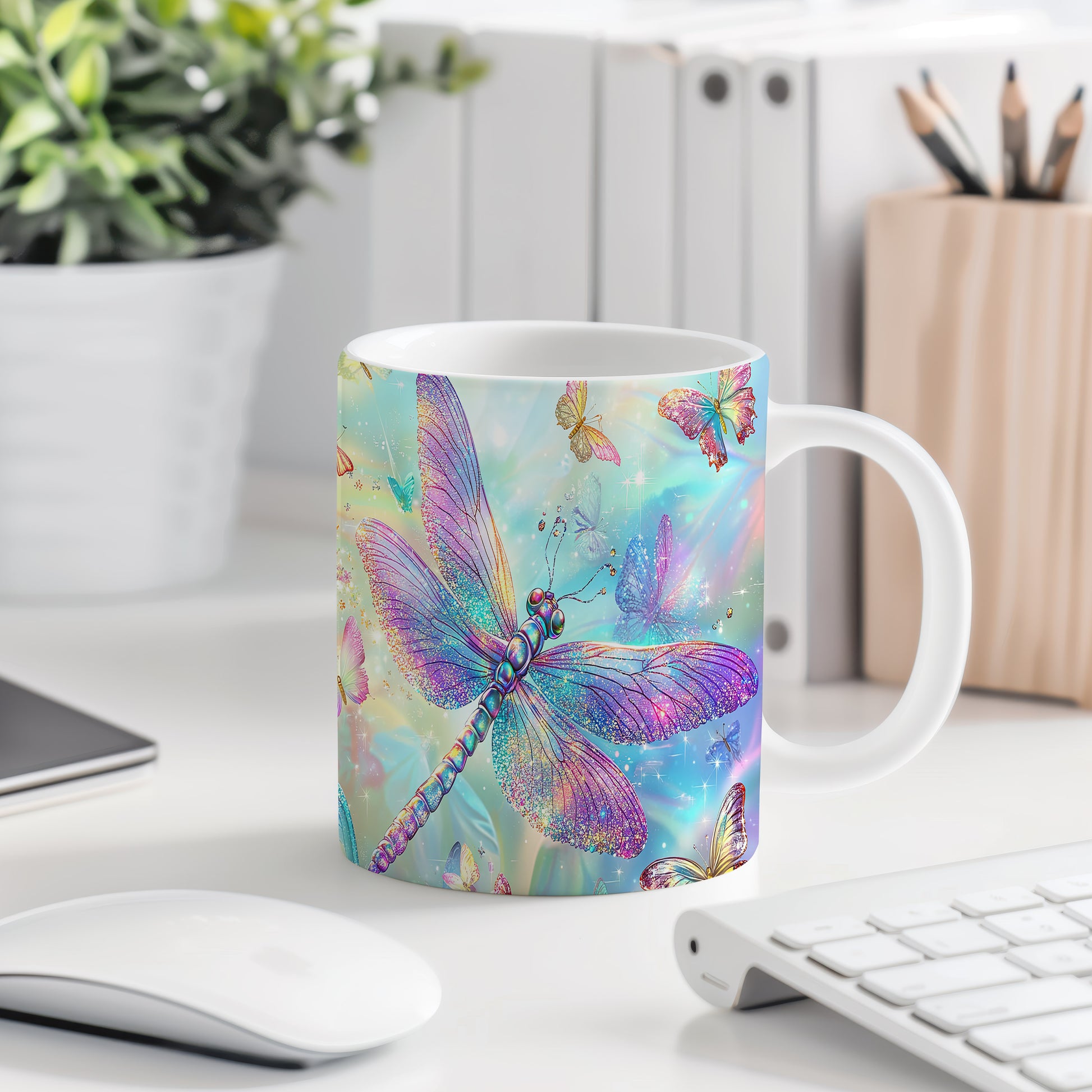 Tento hrnek s motivem barevné vážky přináší do vašeho života radost a svěžest. Je ideální pro milovníky přírody a skvělým dárkem pro přátele či rodinu. Materiál: keramika. Objem: 330 ml. Vhodné do myčky i mikrovlnky. Používání tohoto hrnku vám zpříjemní každé ráno a dodá vašemu pití osobitý styl.