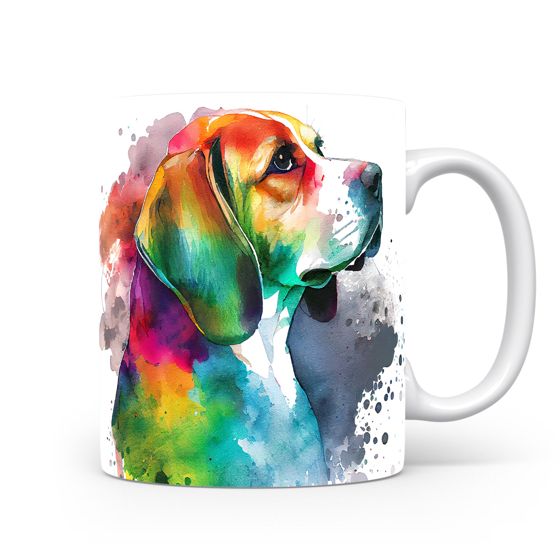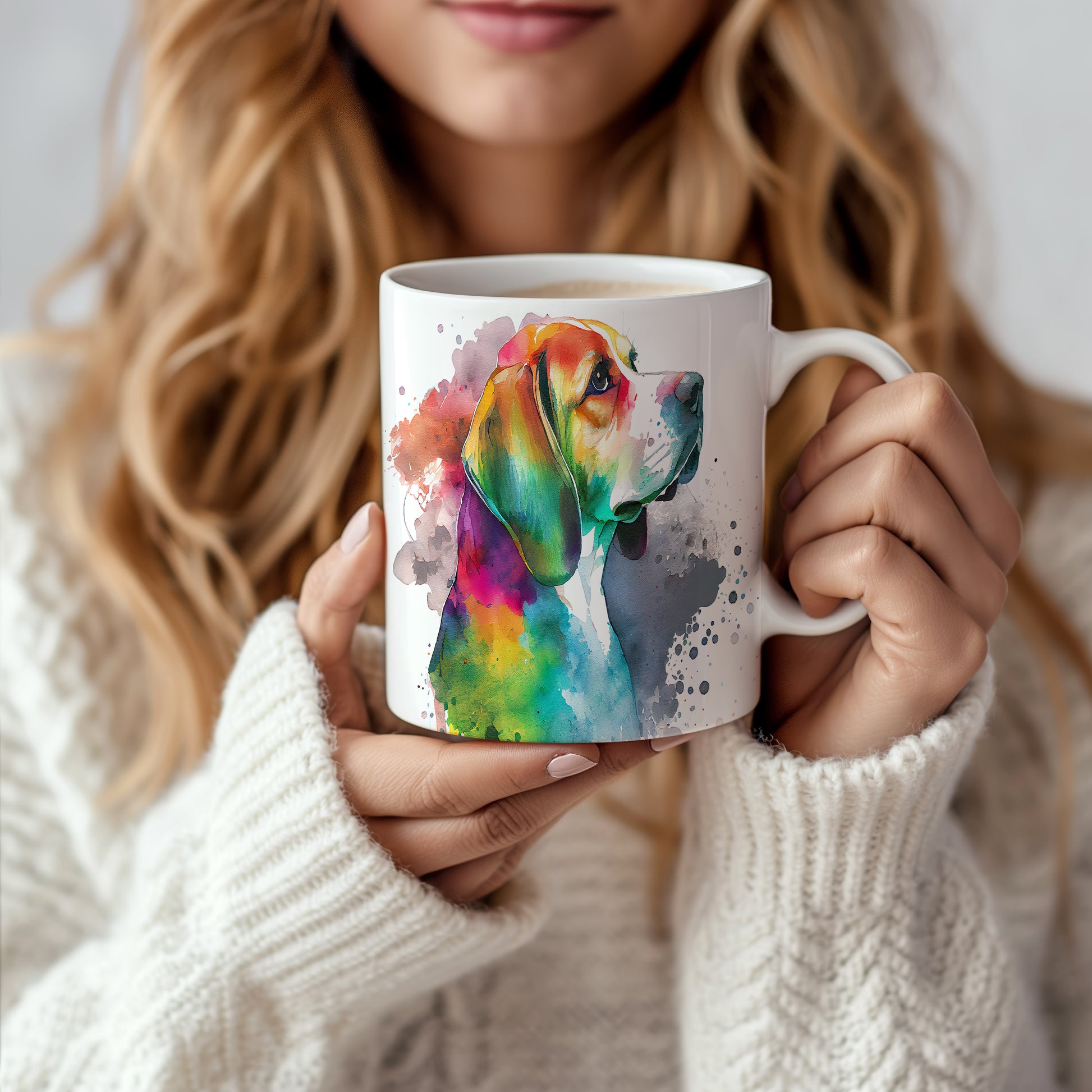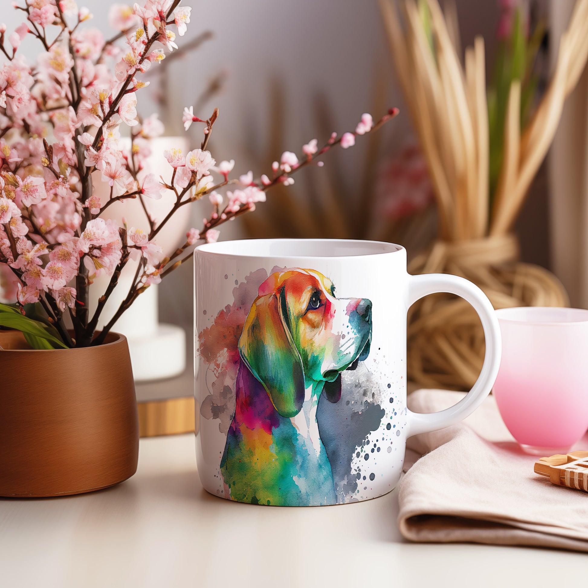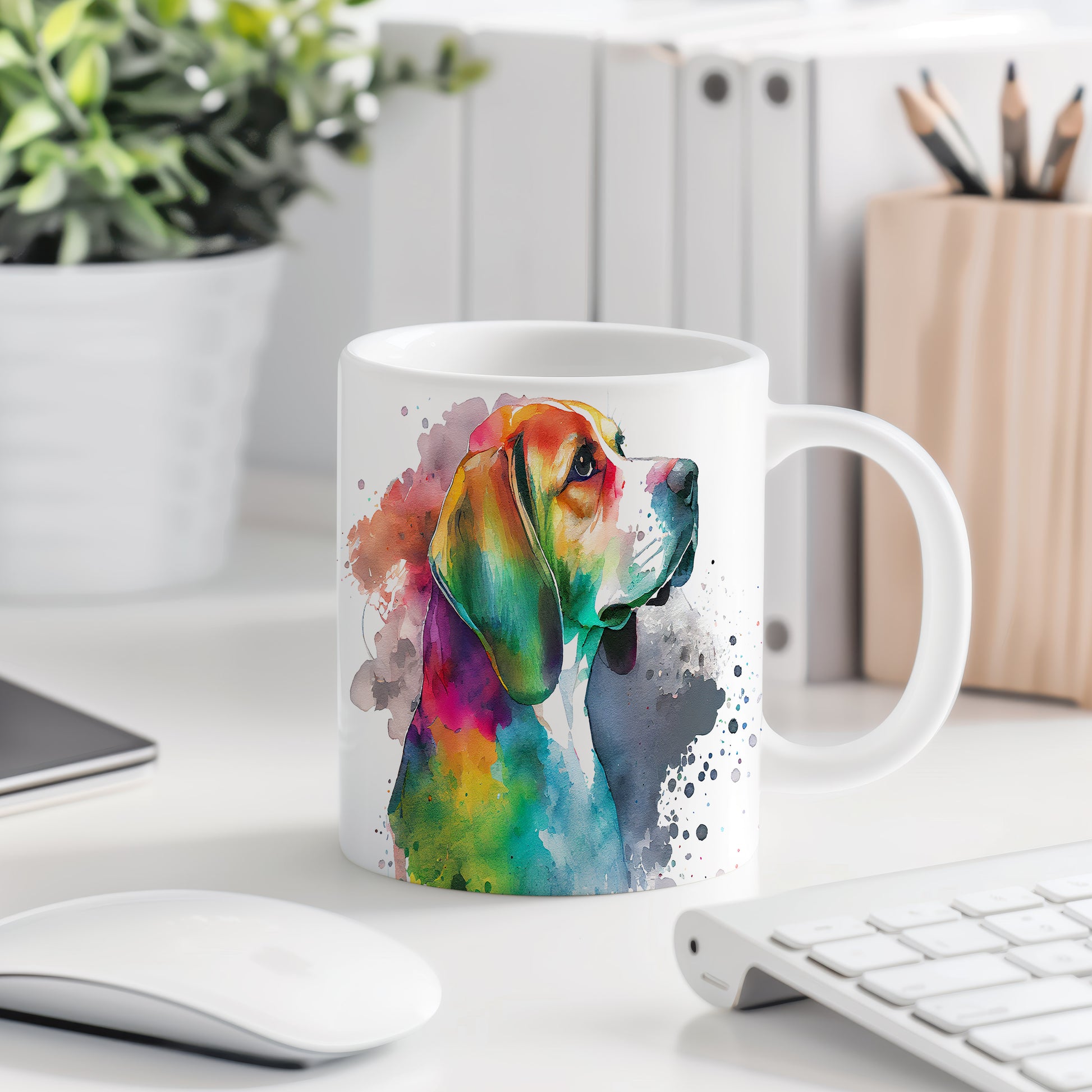 Hrnek s barevným beaglem v akvarelovém stylu