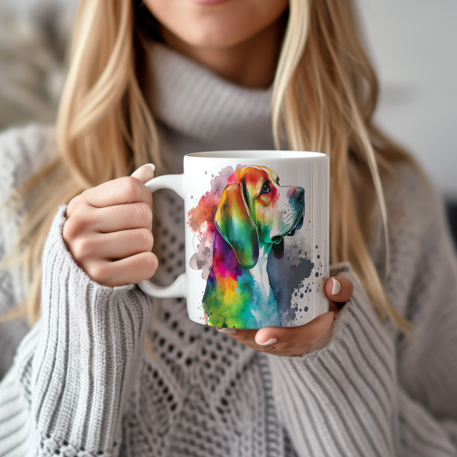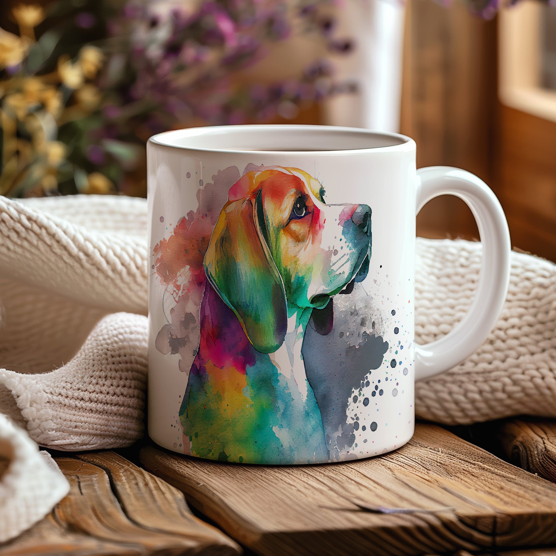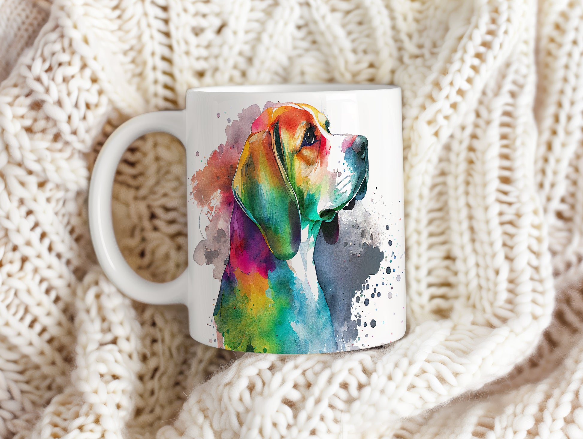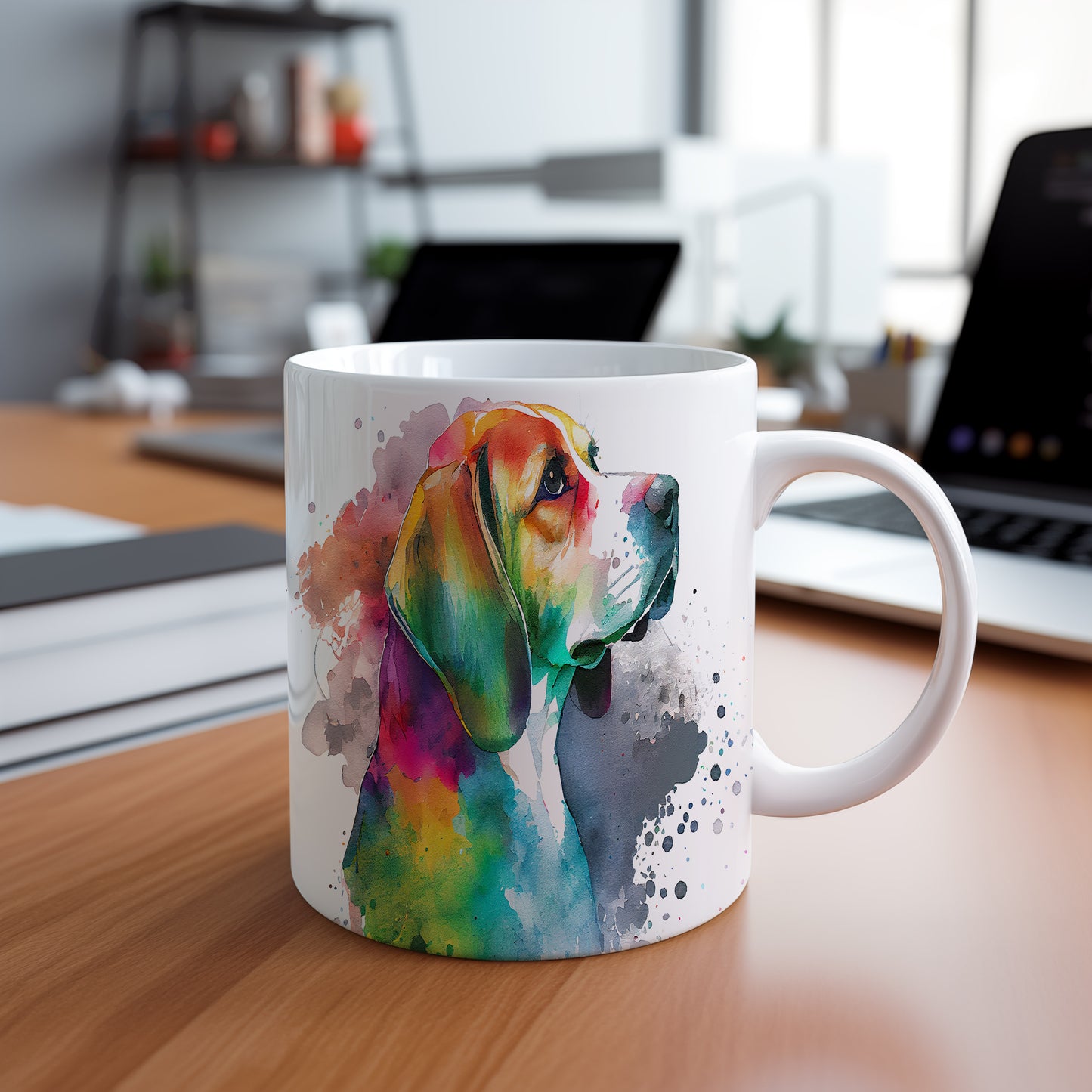 Hrnek s barevným beaglem v akvarelovém stylu