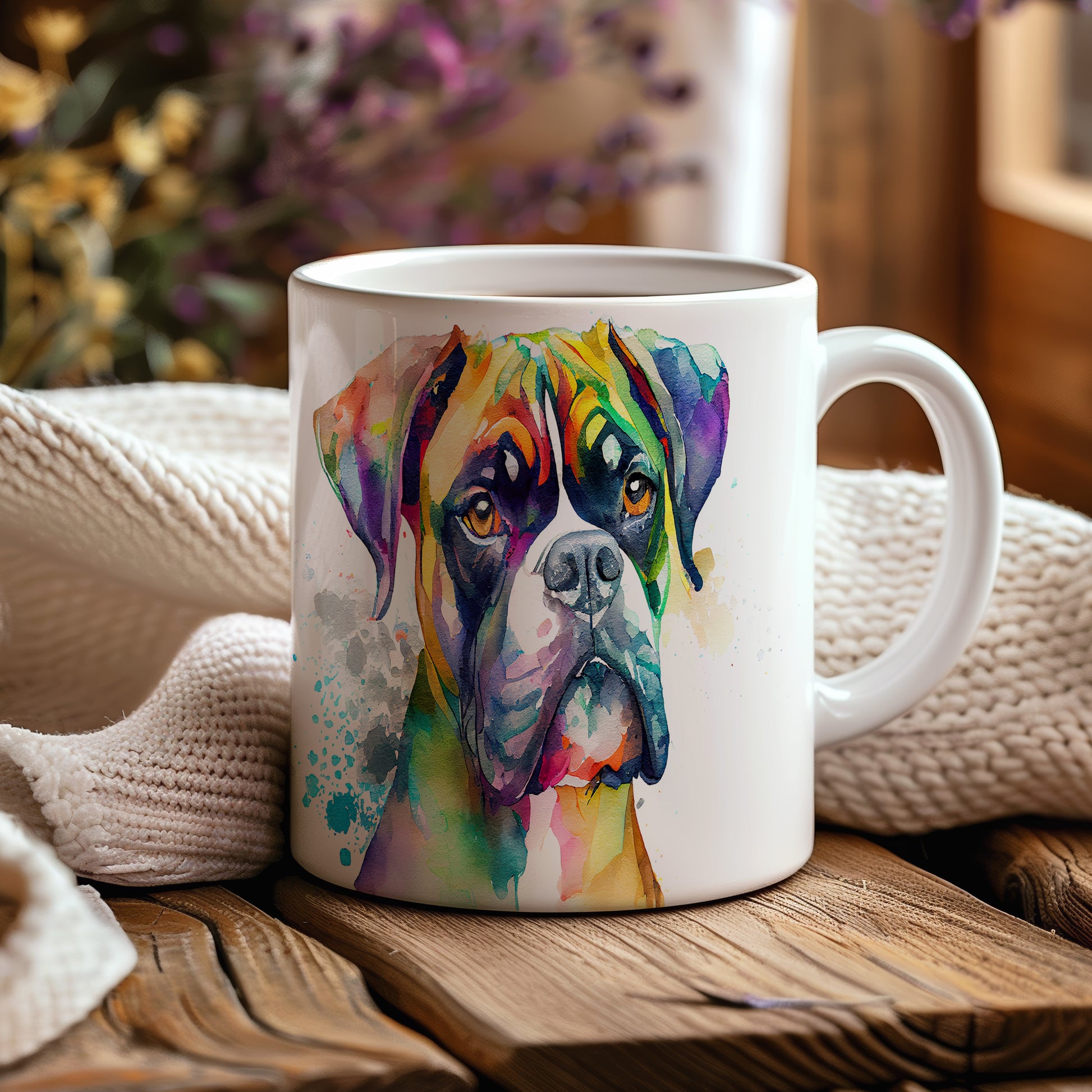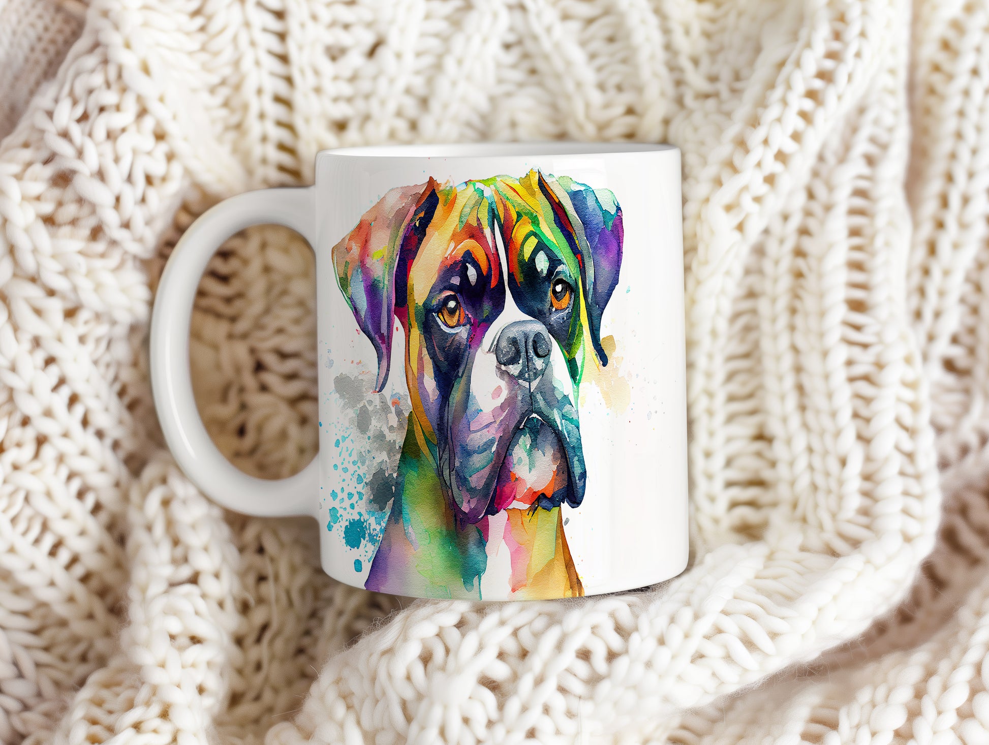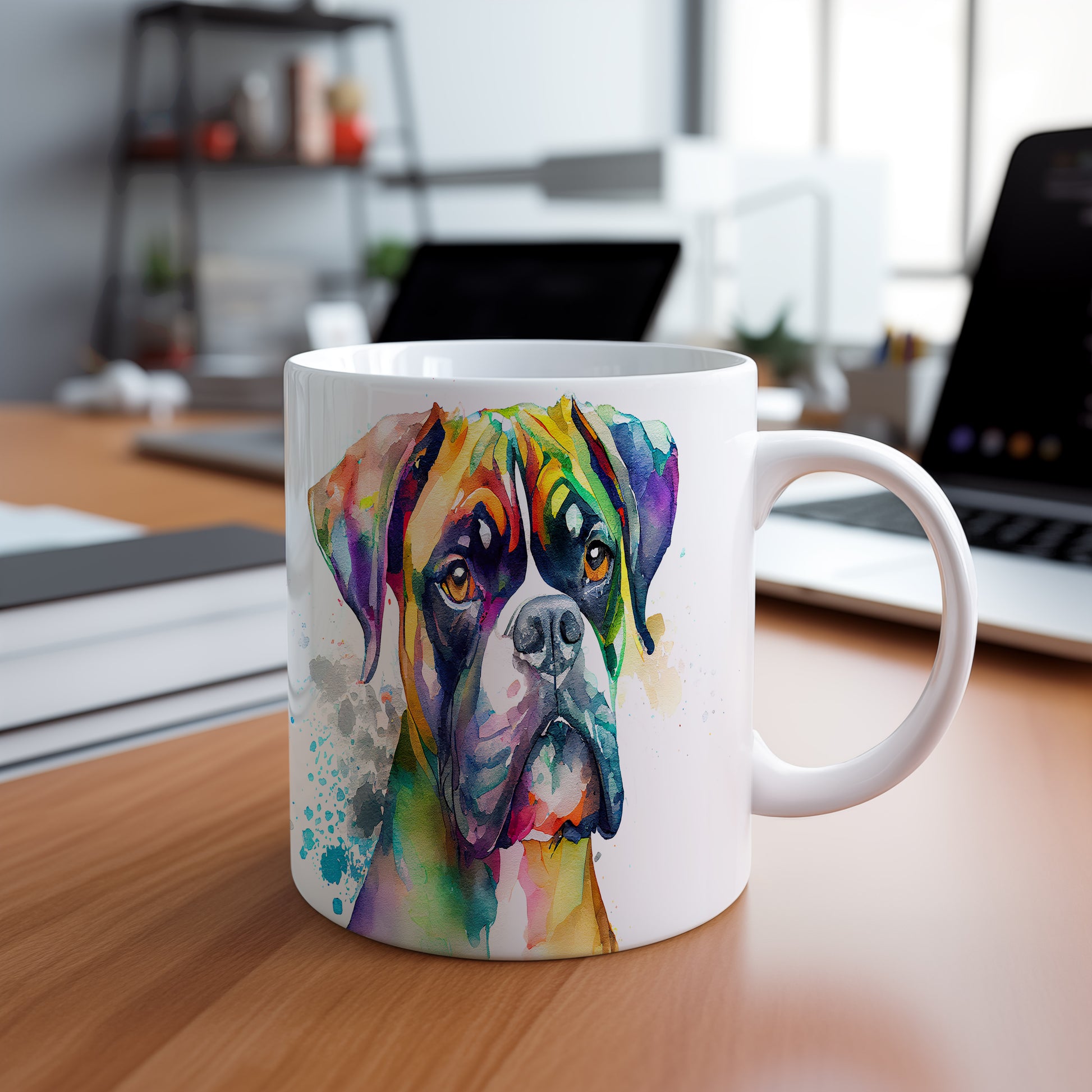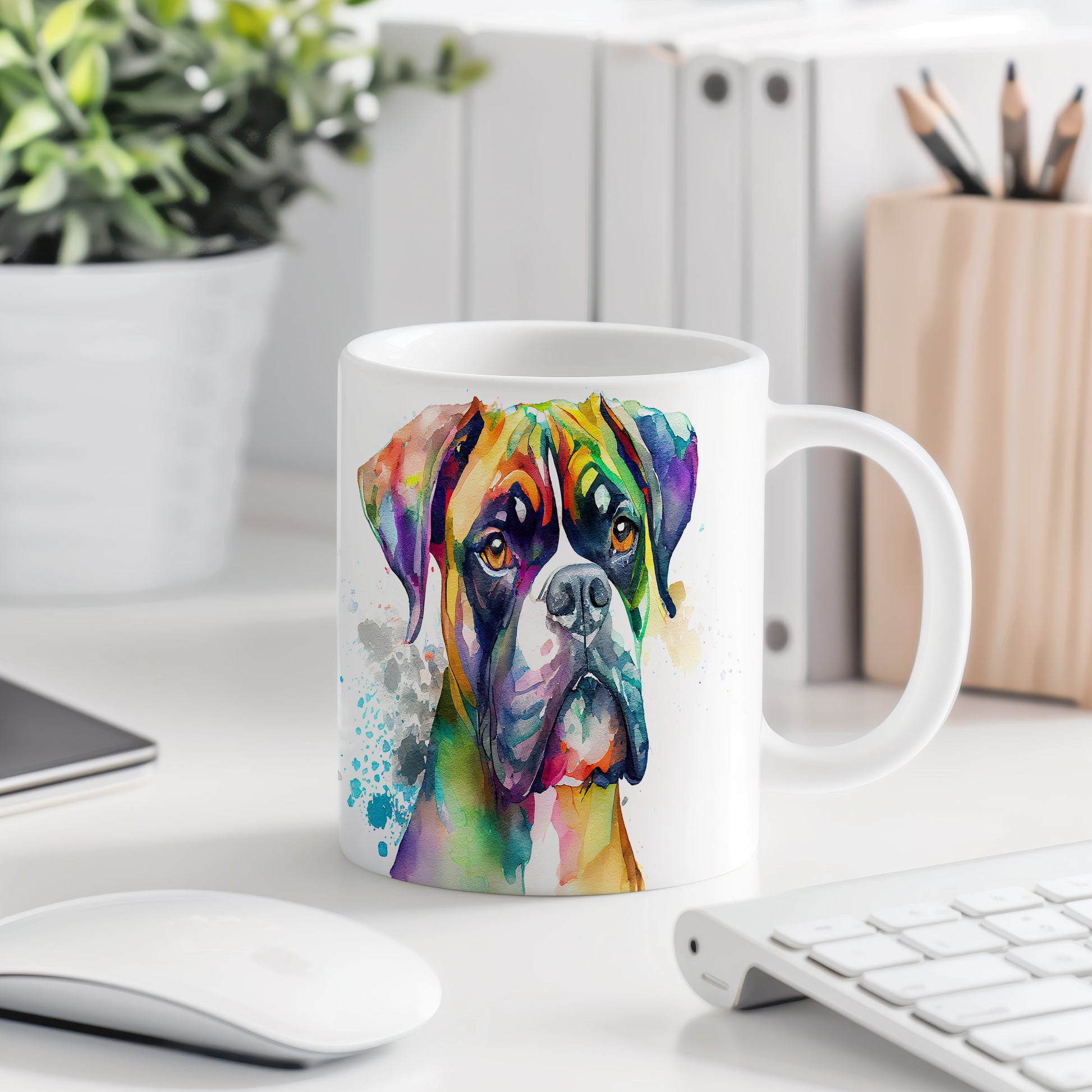 Hrnek s barevným boxerem je ideální pro všechny milovníky psů. Tento stylový kousek potěší každého, kdo má rád zvířata a hledá originální dárek. Materiál: keramika. Objem: 330 ml. Vhodné do myčky i mikrovlnky. Díky svému designu přináší radost a oživí každé pití.