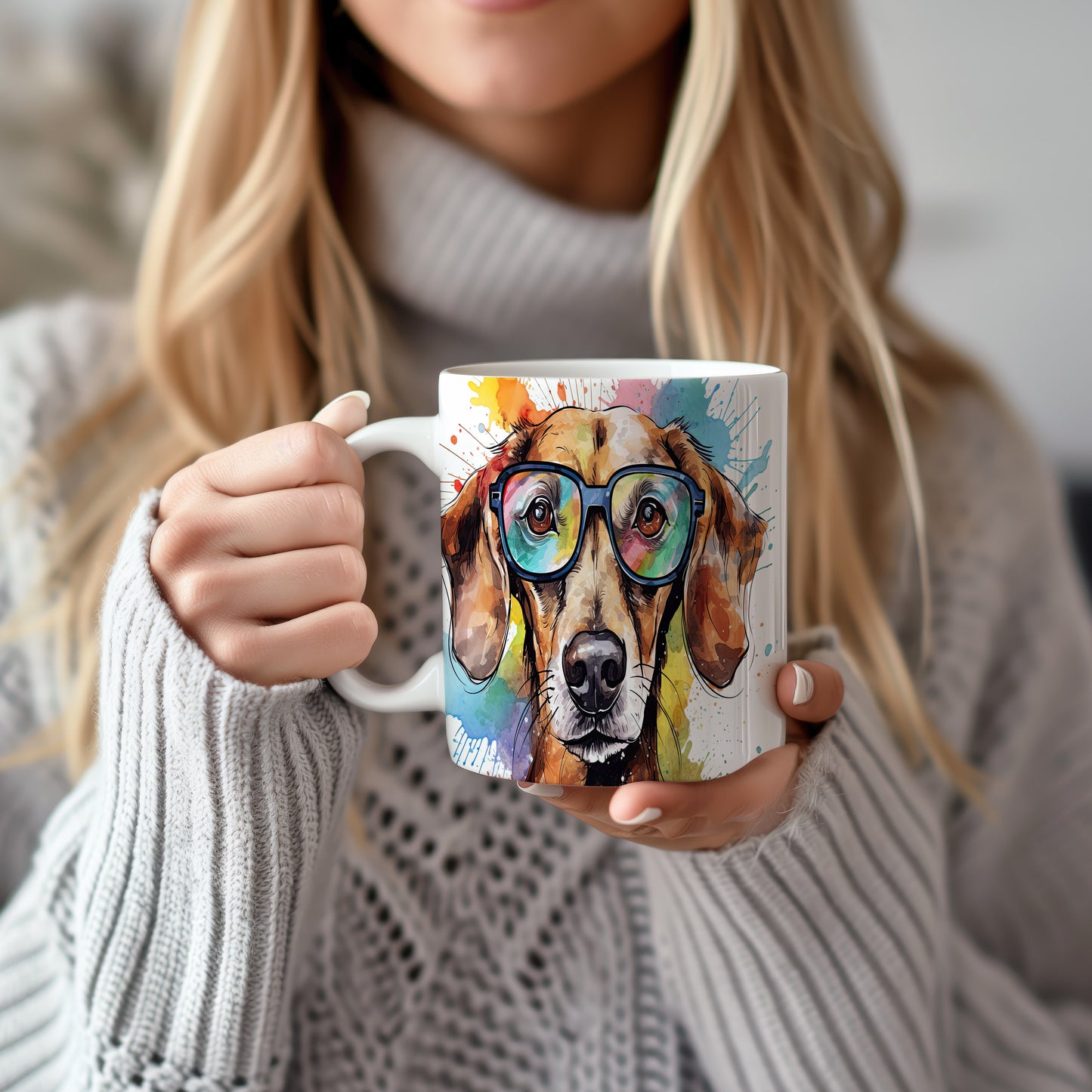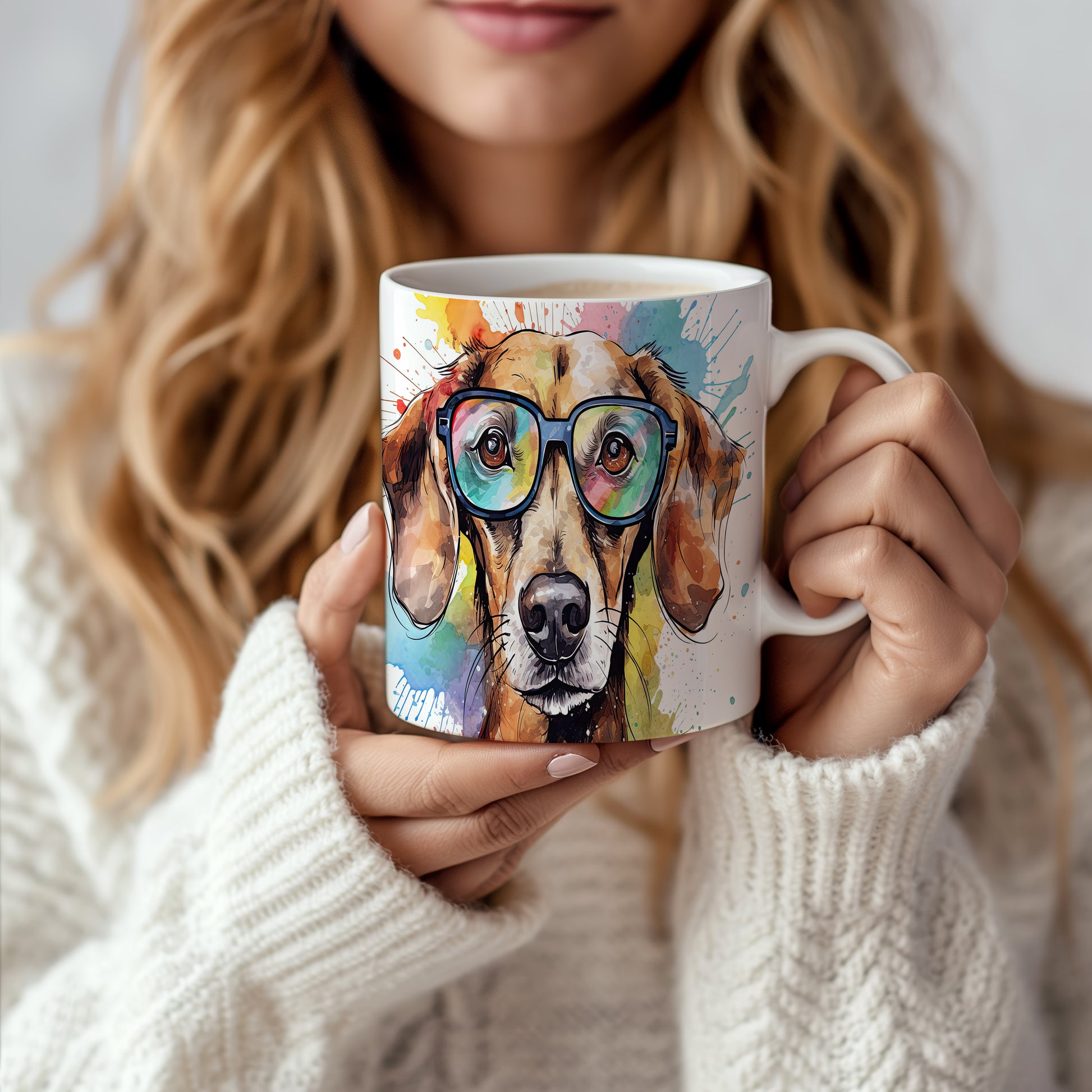 Hrnek s roztomilým psem v brýlích je skvělým kouskem pro milovníky zvířat a originálních designů. Tento hrnek je ideální jako dárek pro přátele nebo rodinu, kteří ocení hravé motivy. Materiál: keramika. Objem: 330 ml. Vhodné do myčky i mikrovlnky. Používání tohoto hrnku přináší radost a oživí každé pití.