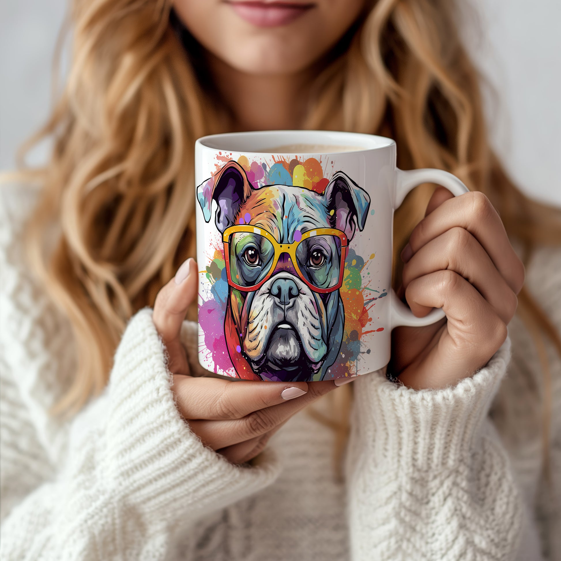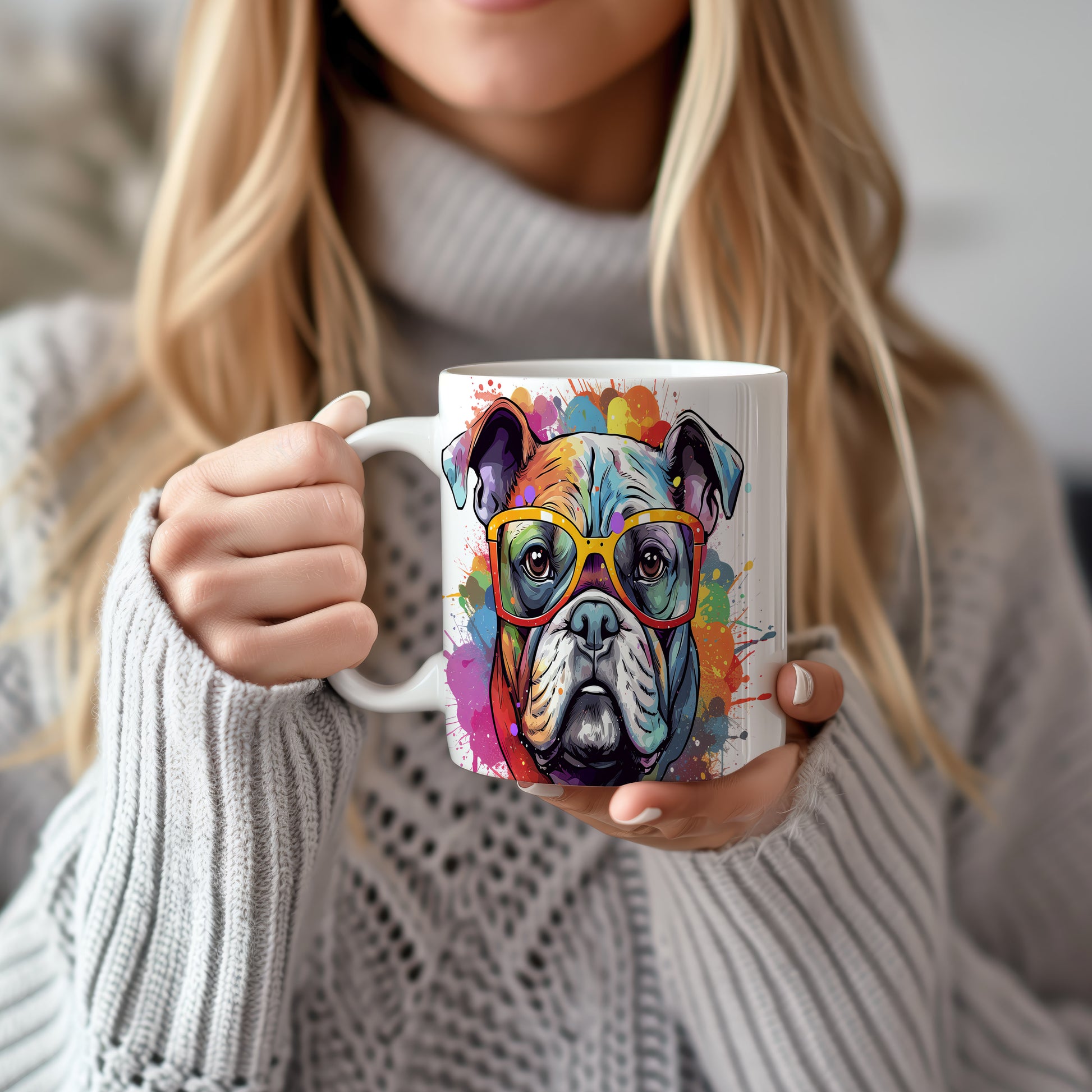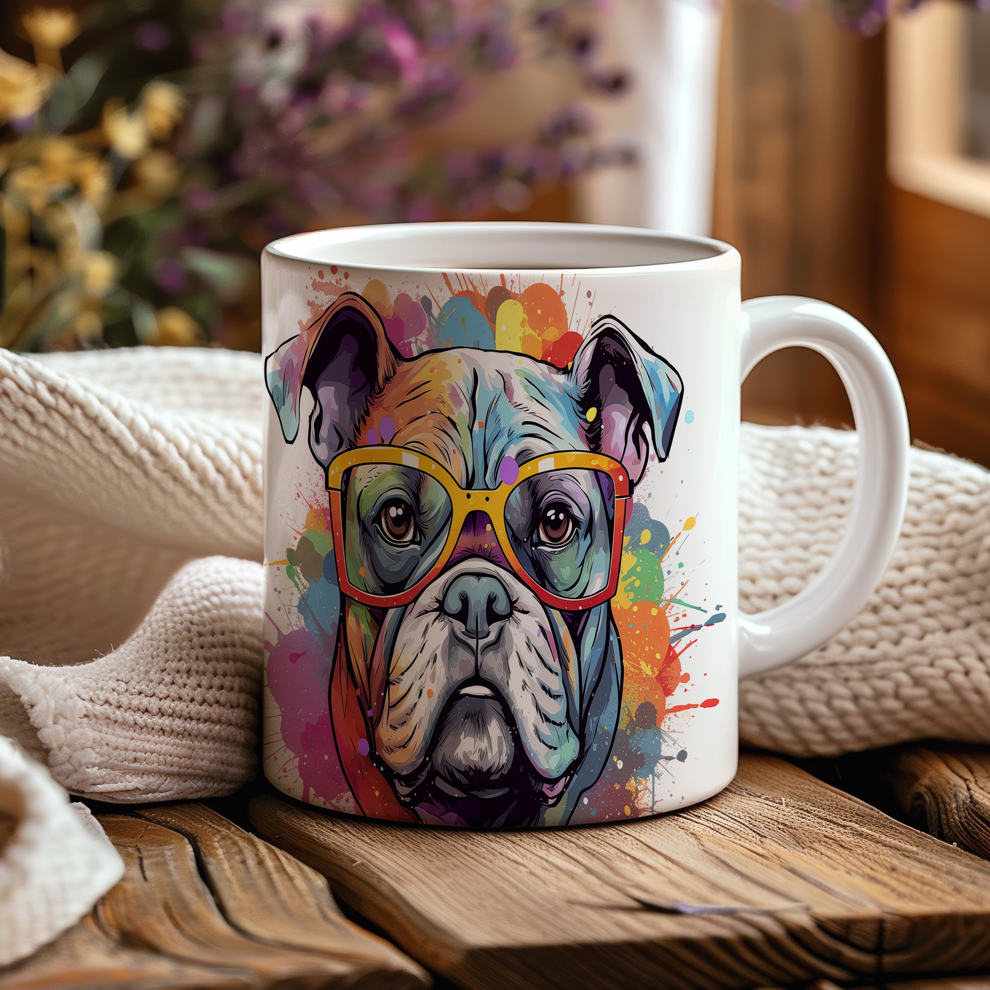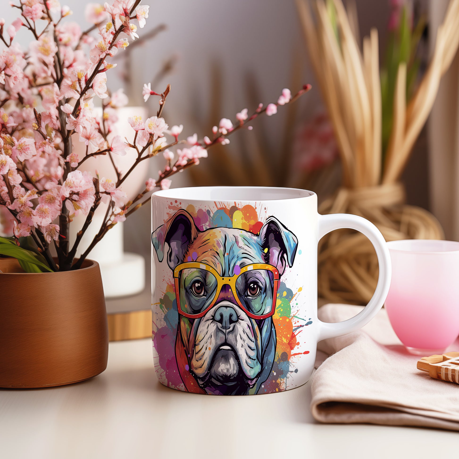Tento keramický hrnek zobrazuje barevného bulldoga s brýlemi, což mu dodává hravý a stylový vzhled. Je ideální pro milovníky psů a kreativní jedince, kteří ocení originální design. Materiál: keramika. Objem: 330 ml. Vhodné do myčky i mikrovlnky. Tento hrnek přináší radost při každém doušku a stane se skvělým společníkem na vašem stole.