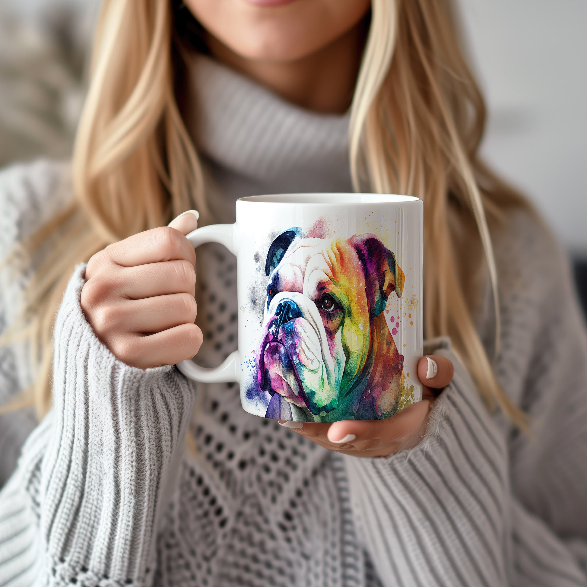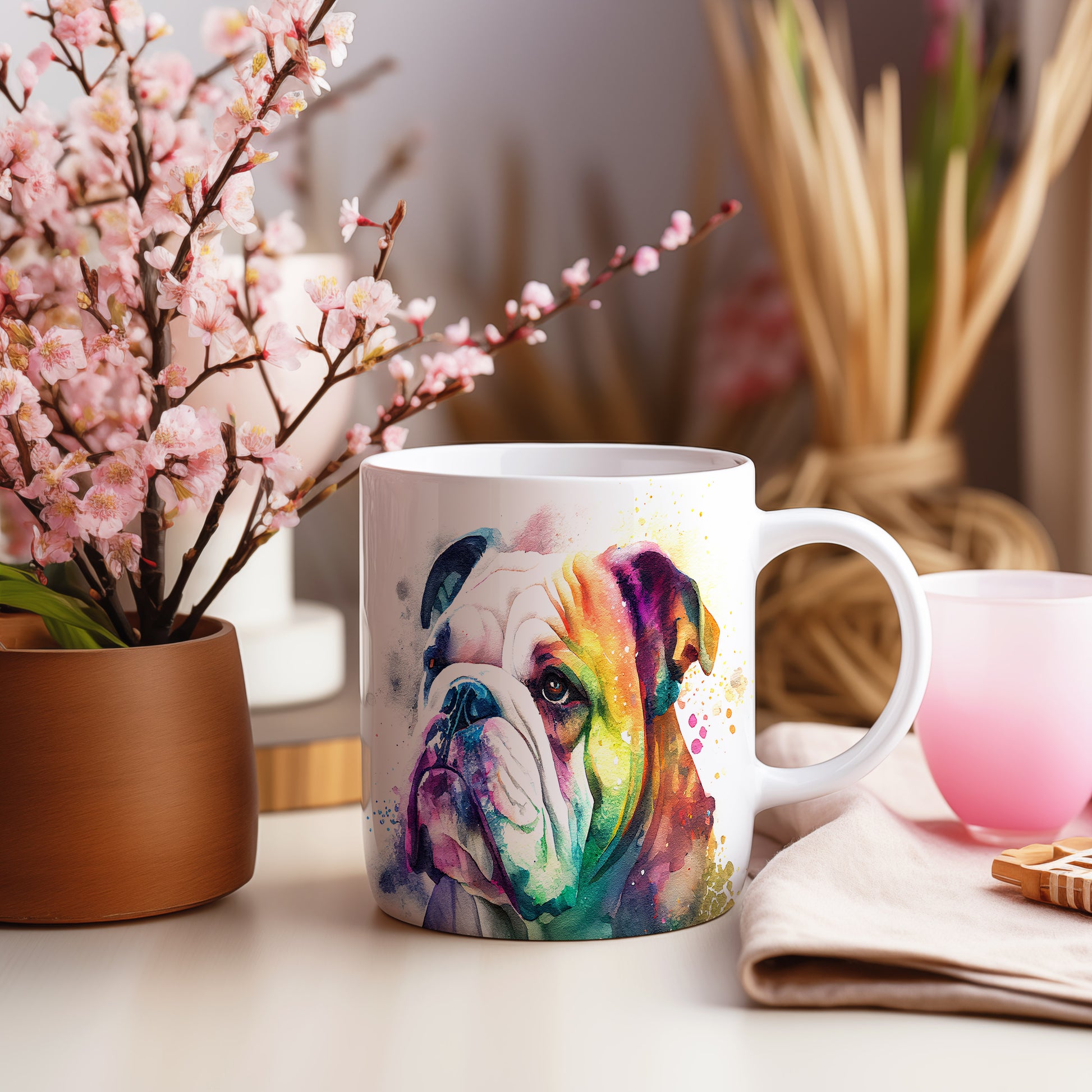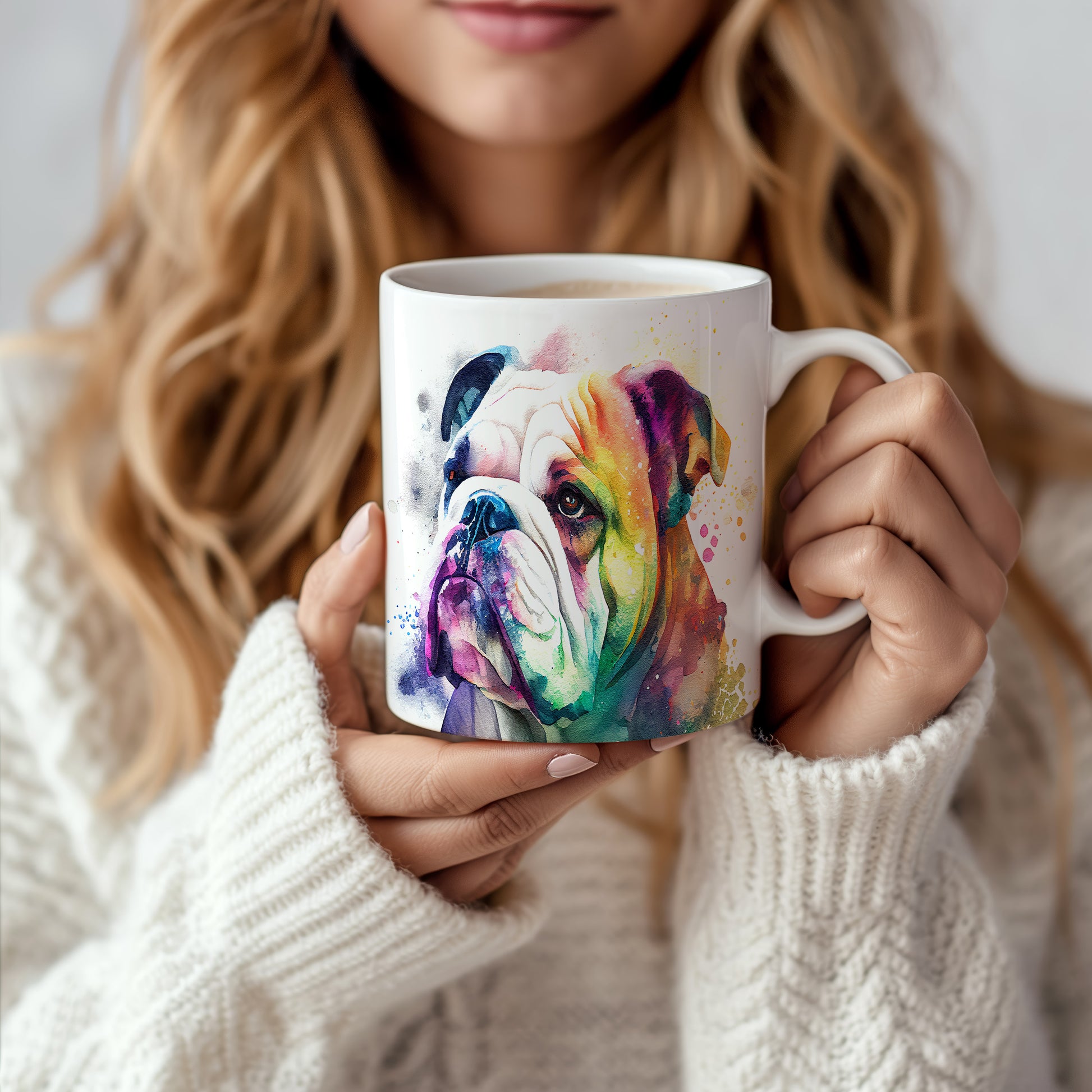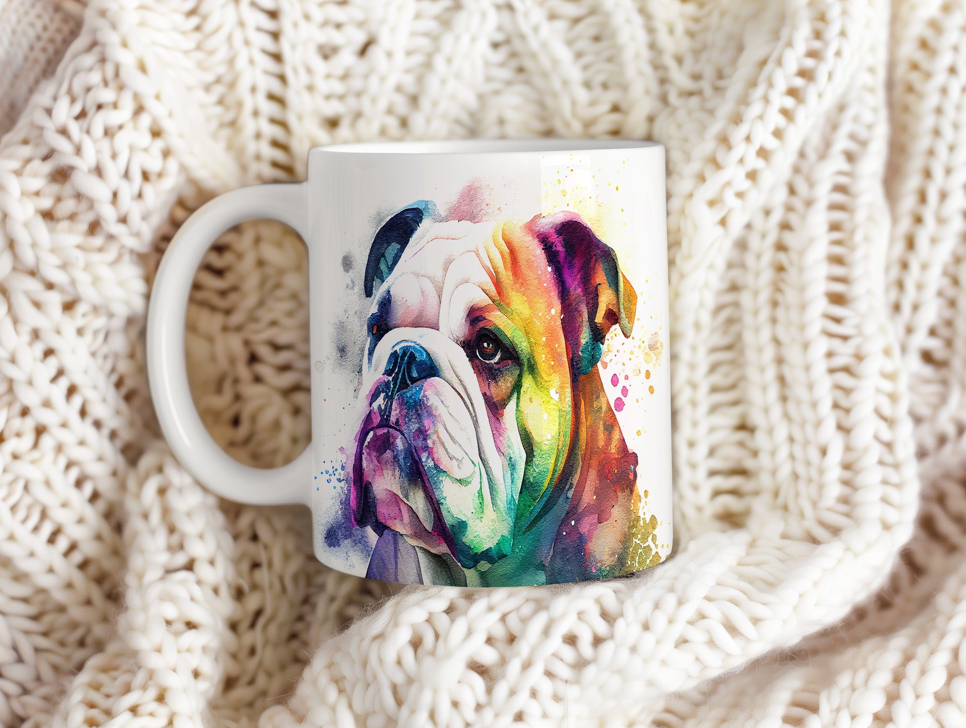 Hrnek s barevným bulldogem – bílým provedením