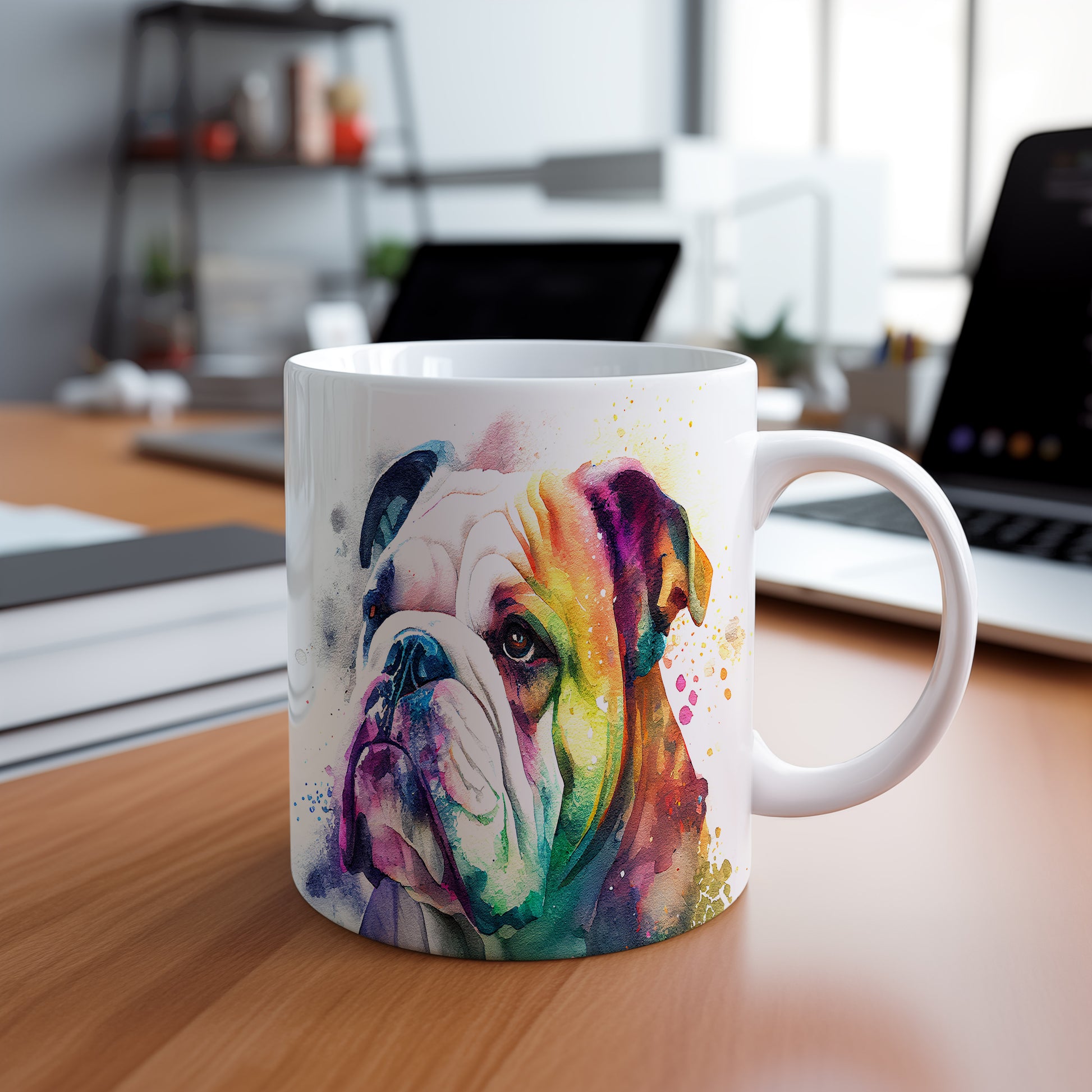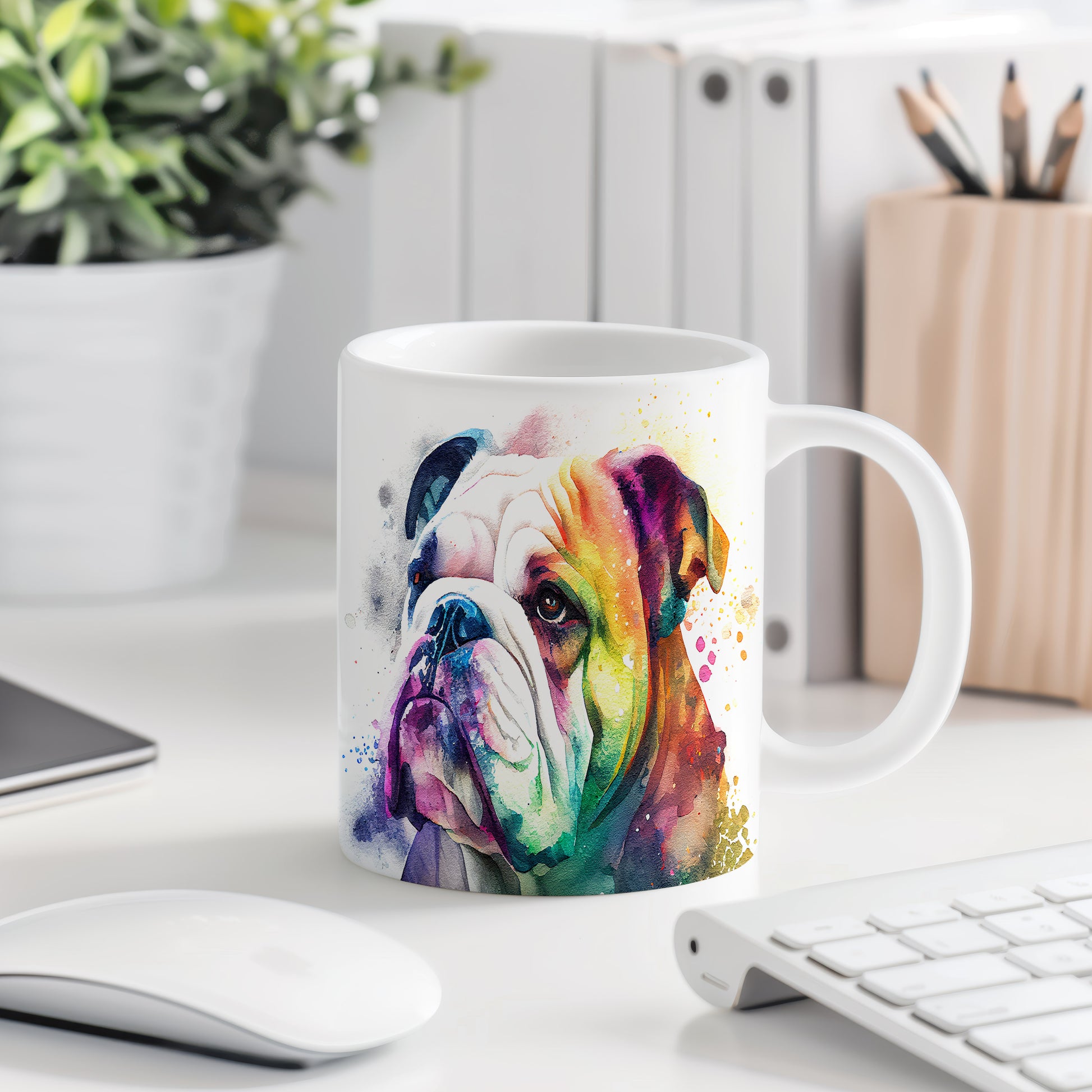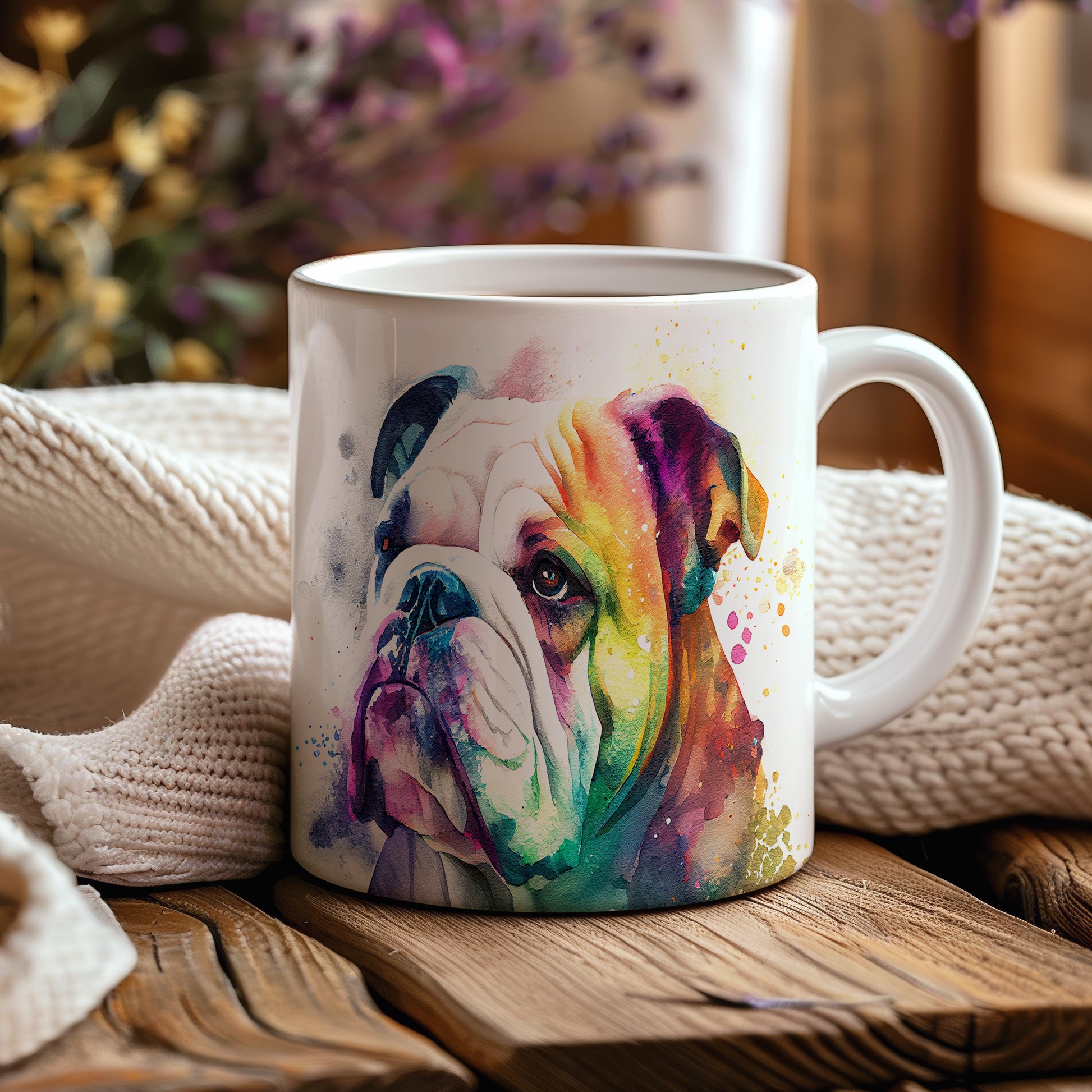 Hrnek s barevným bulldogem je skvělým kouskem pro milovníky psů a domácích mazlíčků. Tento hrnek je ideální jako dárek pro přátele, kteří si potrpí na originální design. Materiál: keramika. Objem: 330 ml. Vhodné do myčky i mikrovlnky. Díky svému jedinečnému vzhledu přinese do každodenního pití radost a styl.