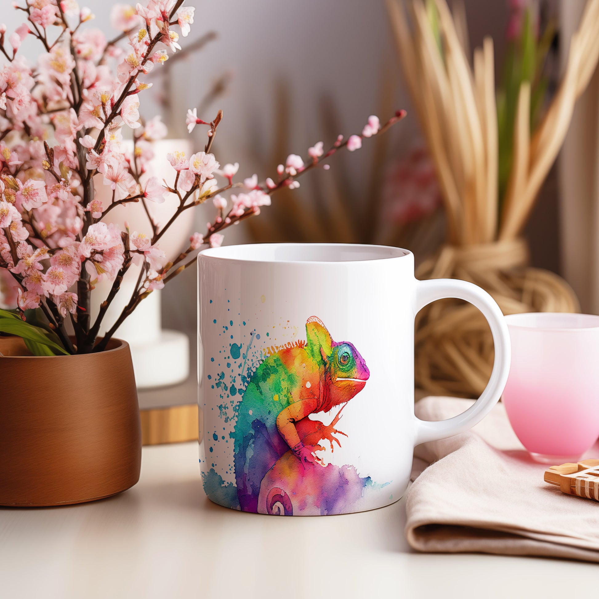 Hrnek s barevným chameleónem v akvarelovém stylu je skvělým doplňkem pro milovníky přírody a originálního designu. Tento keramický hrnek o objemu 330 ml je ideální jako dárek pro přátele nebo rodinu. Materiál: keramika. Objem: 330 ml. Vhodné do myčky i mikrovlnky. Užijte si každé sousto s tímto jedinečným hrnkem, který přináší radost do každodenního pití.