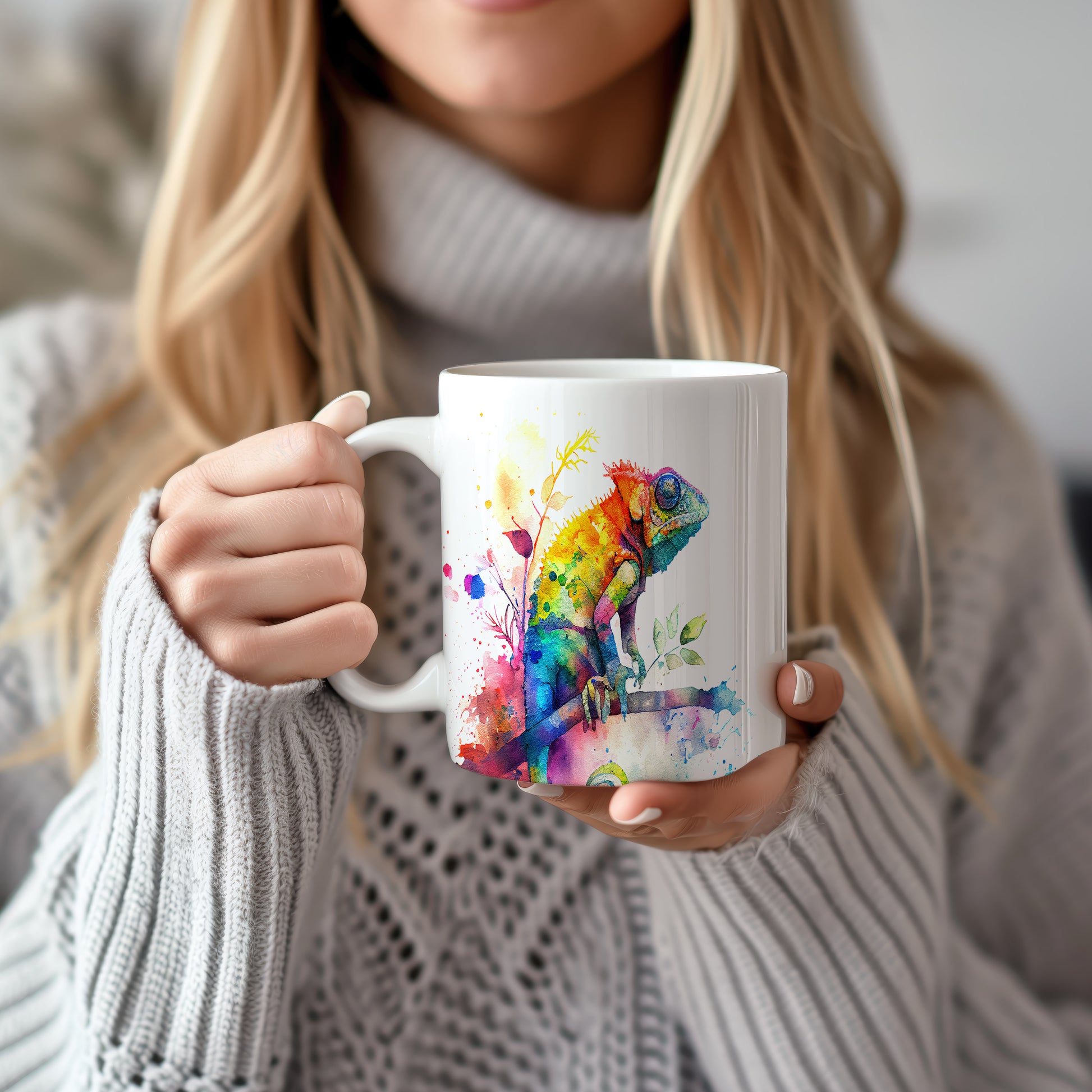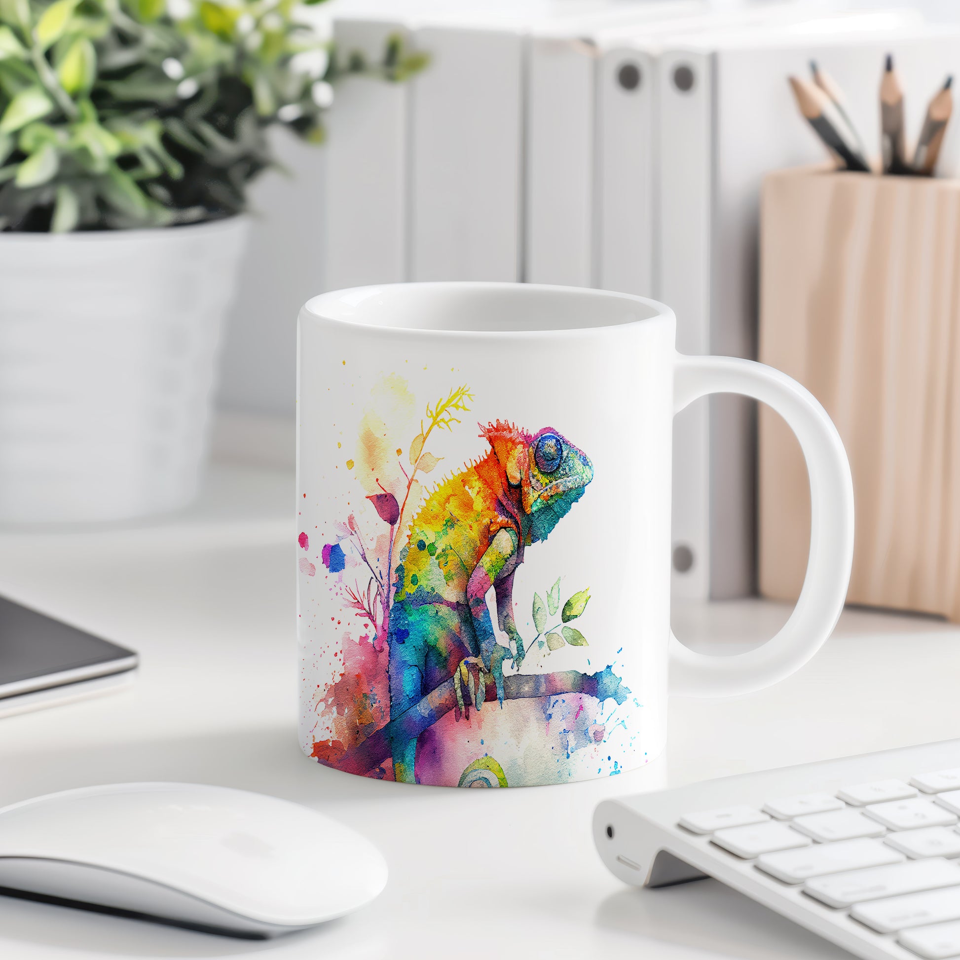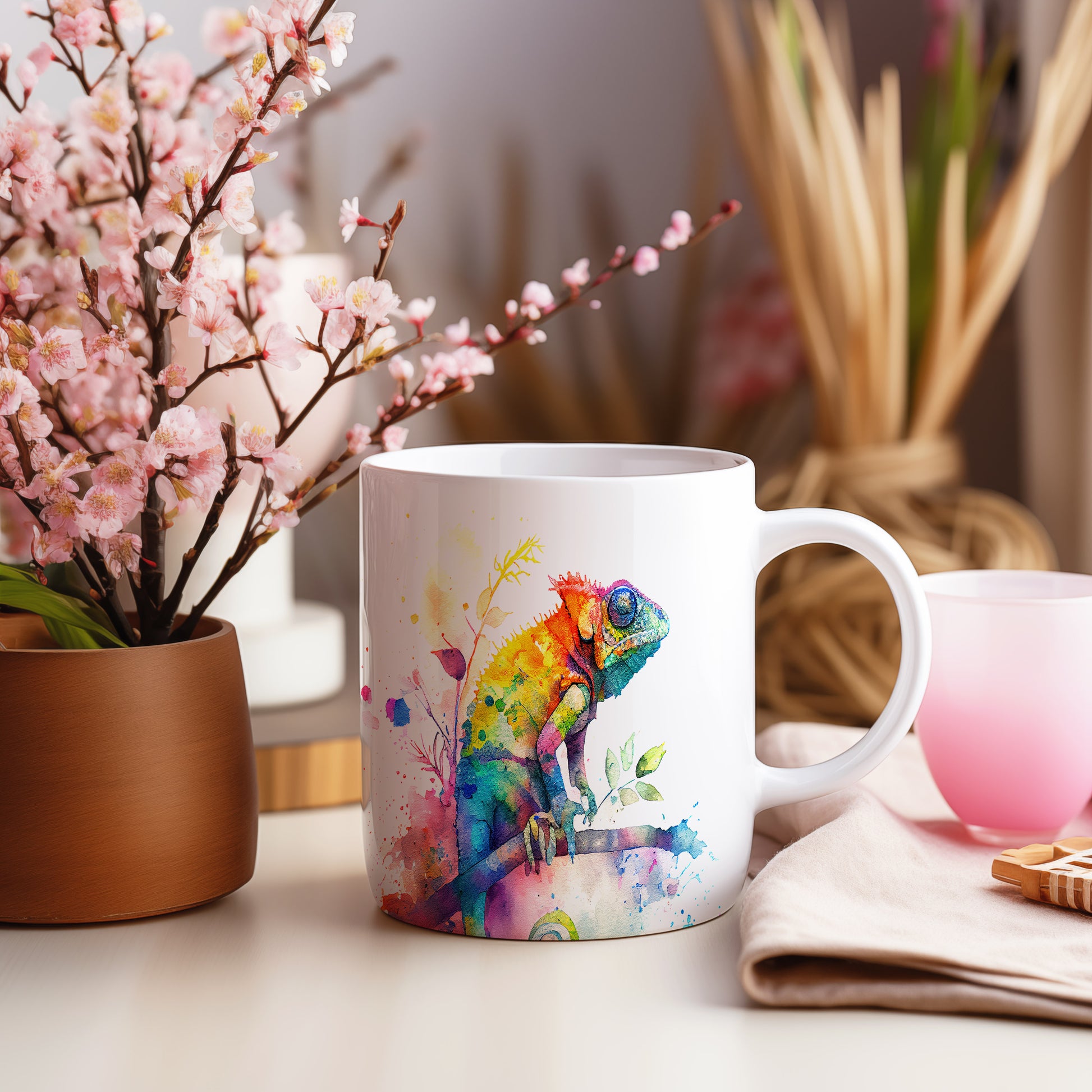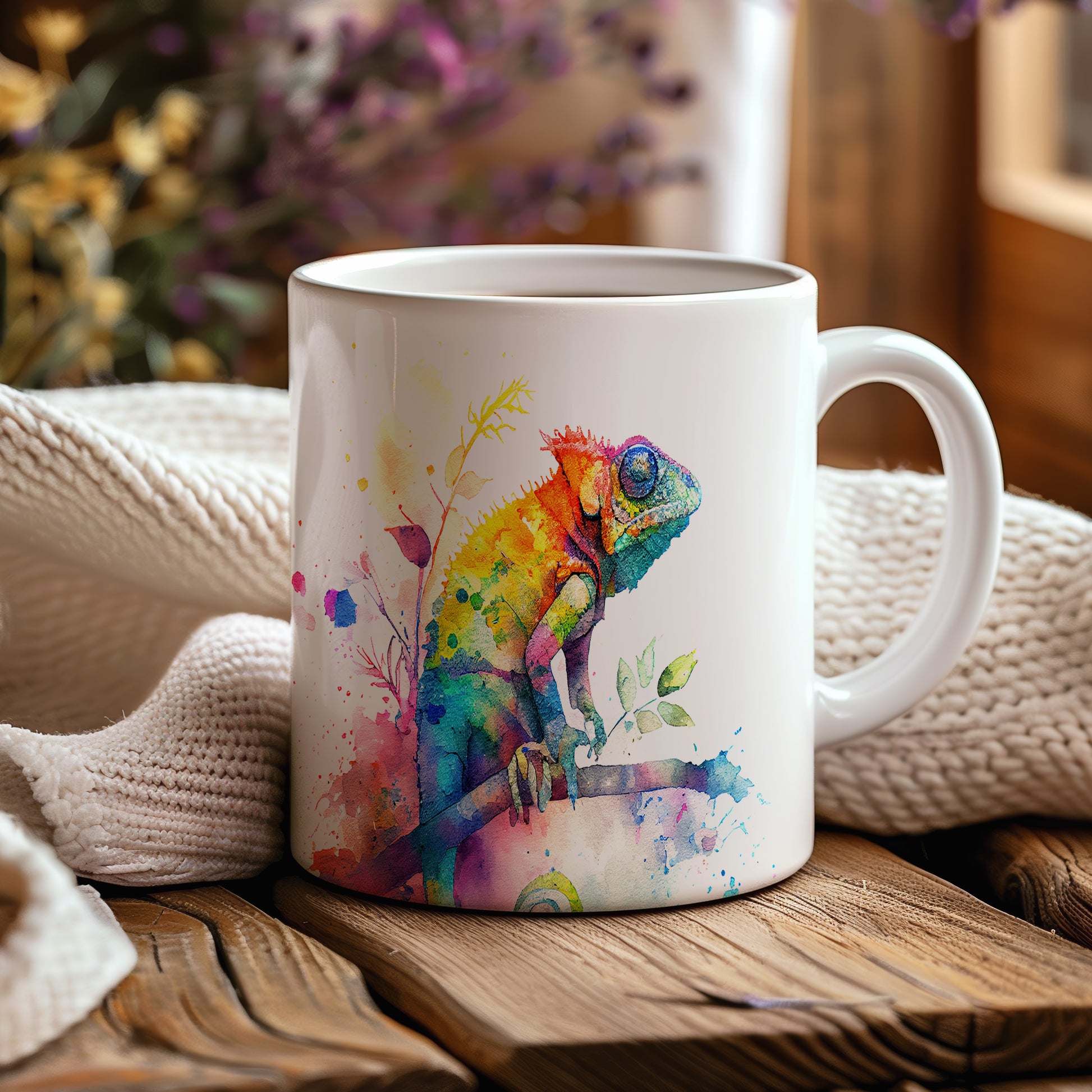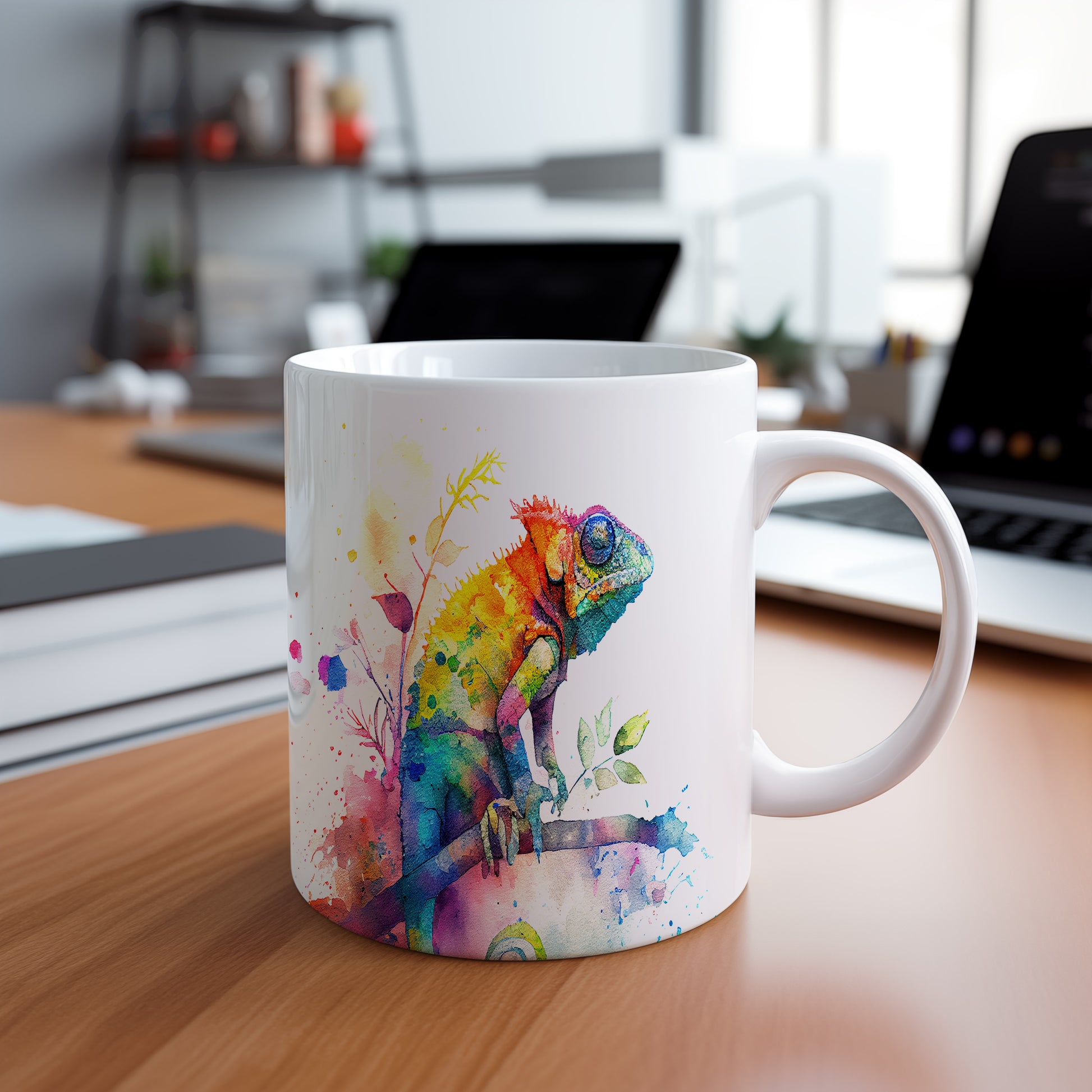 Keramický hrnek s krásným motivem chameleóna na větvi. Tento hrnek je ideální pro milovníky přírody a zvířat, skvělý tip na dárek pro přátele nebo rodinu. Materiál: keramika. Objem: 330 ml. Vhodné do myčky i mikrovlnky. Díky svému designu přináší do každodenního pití radost a oživí váš stůl.
