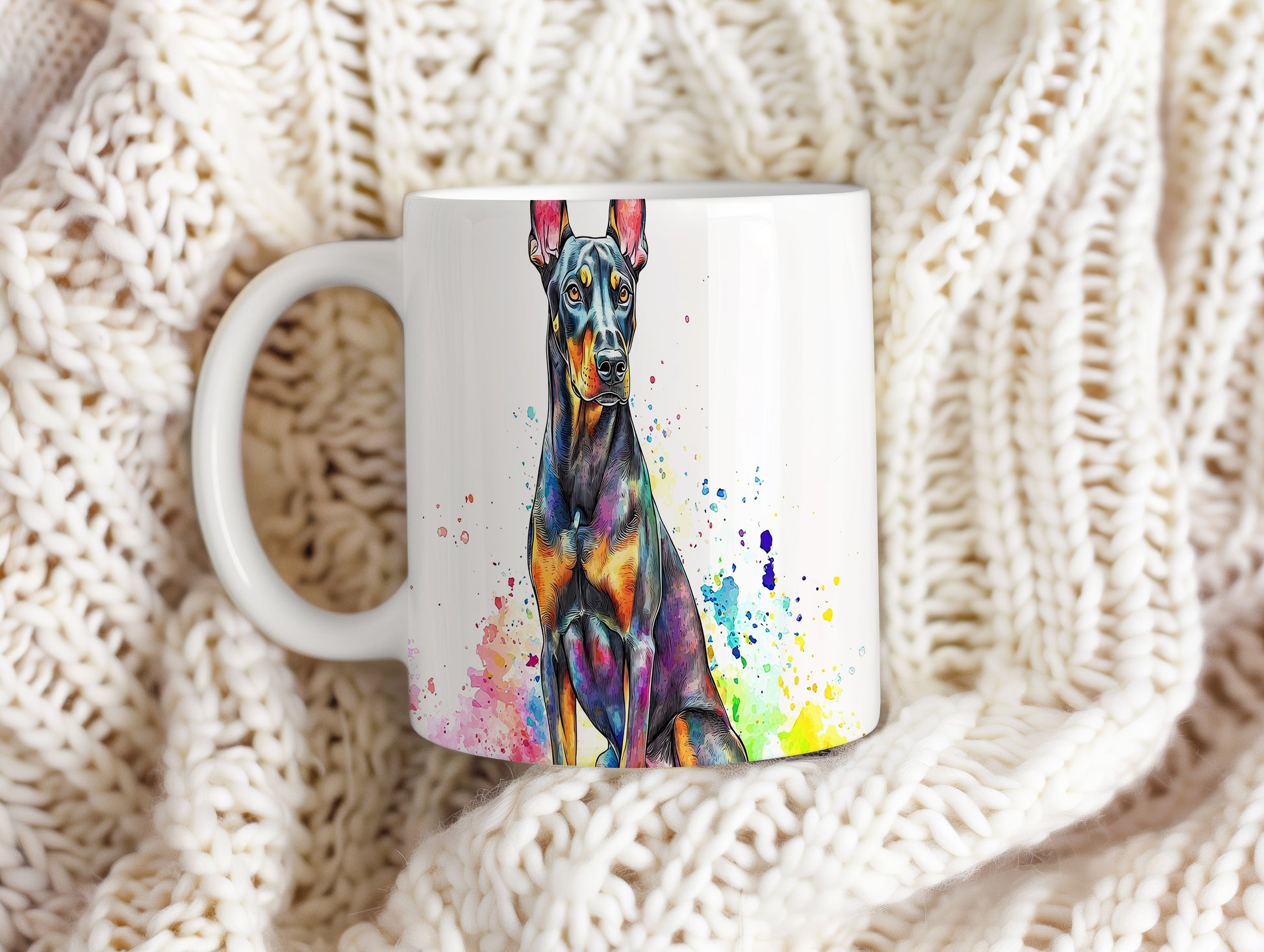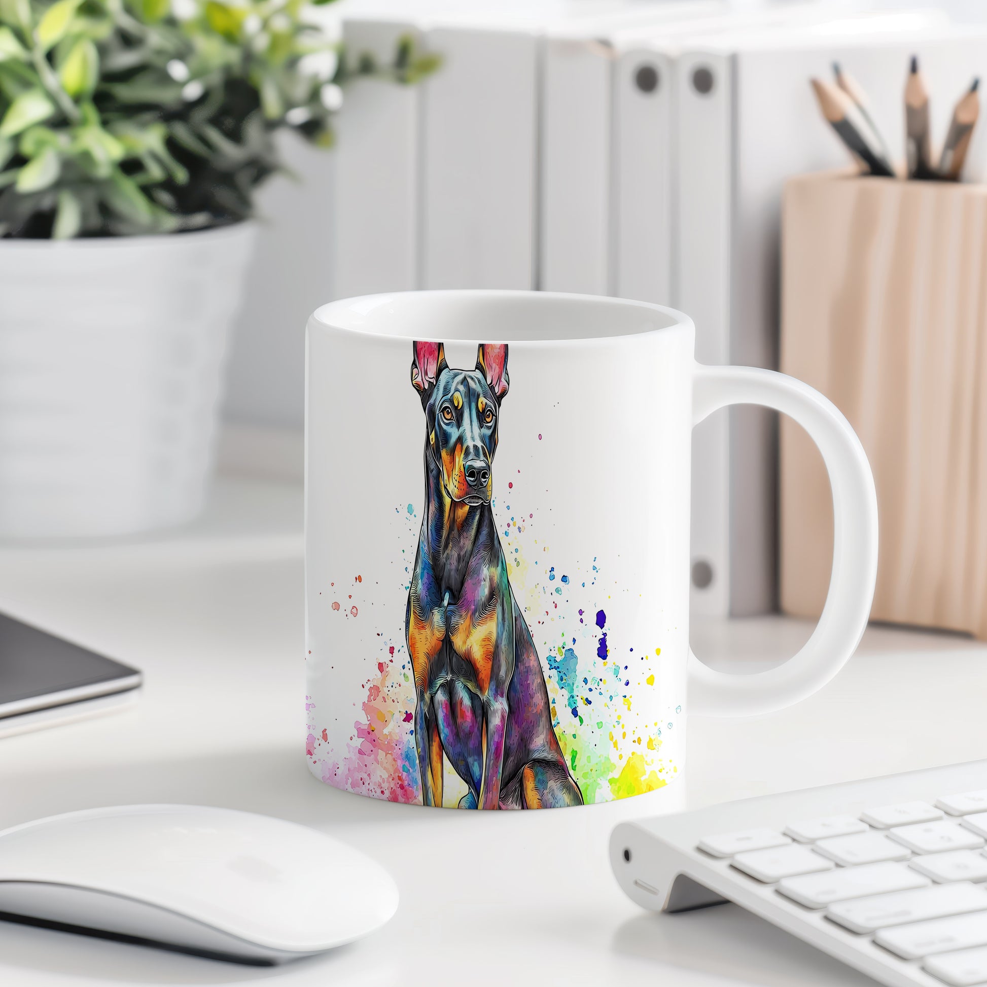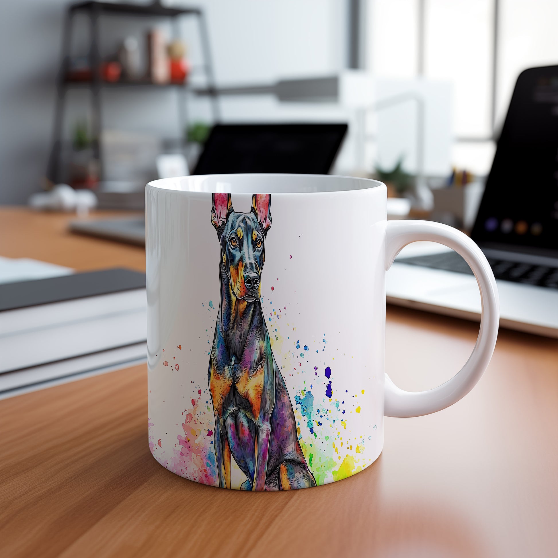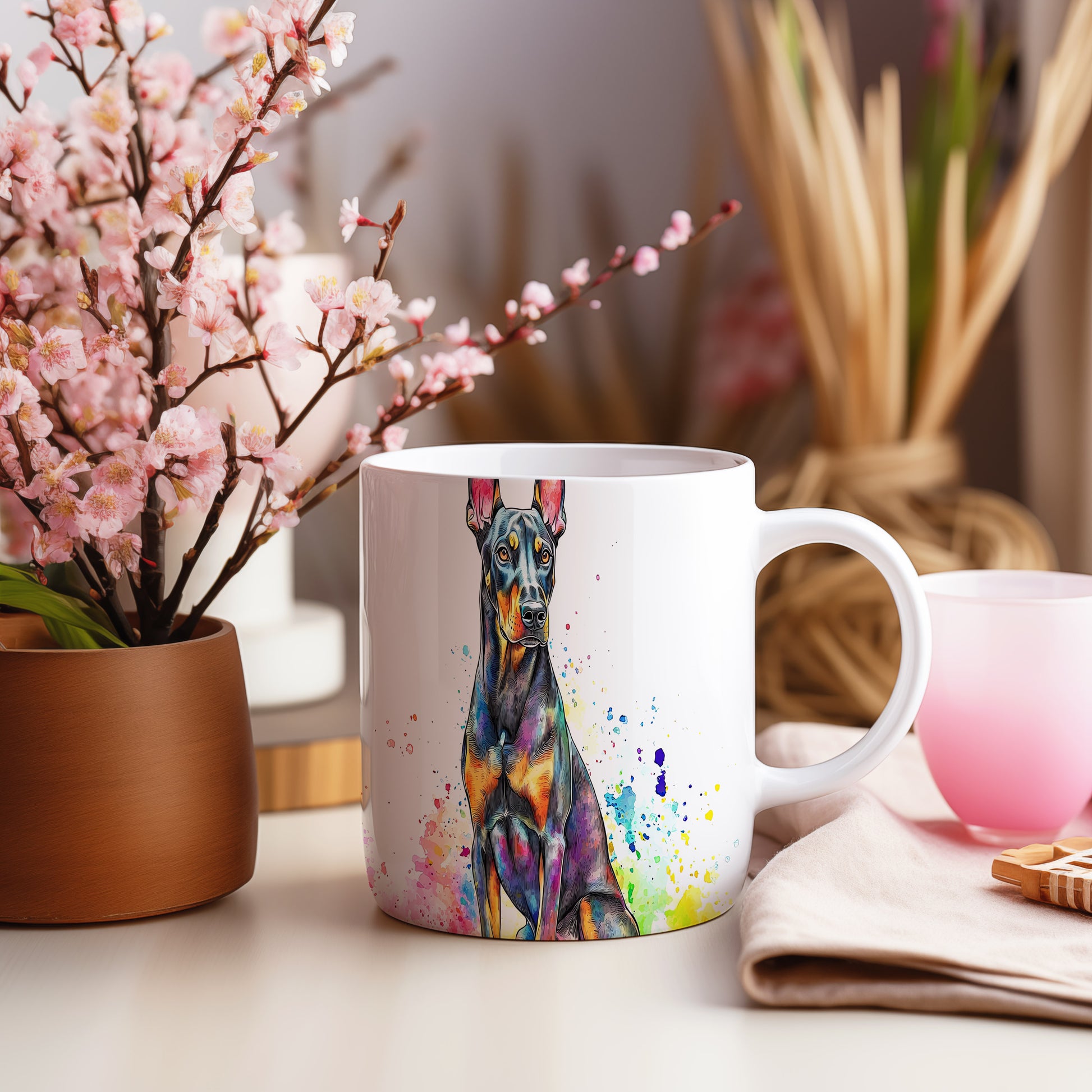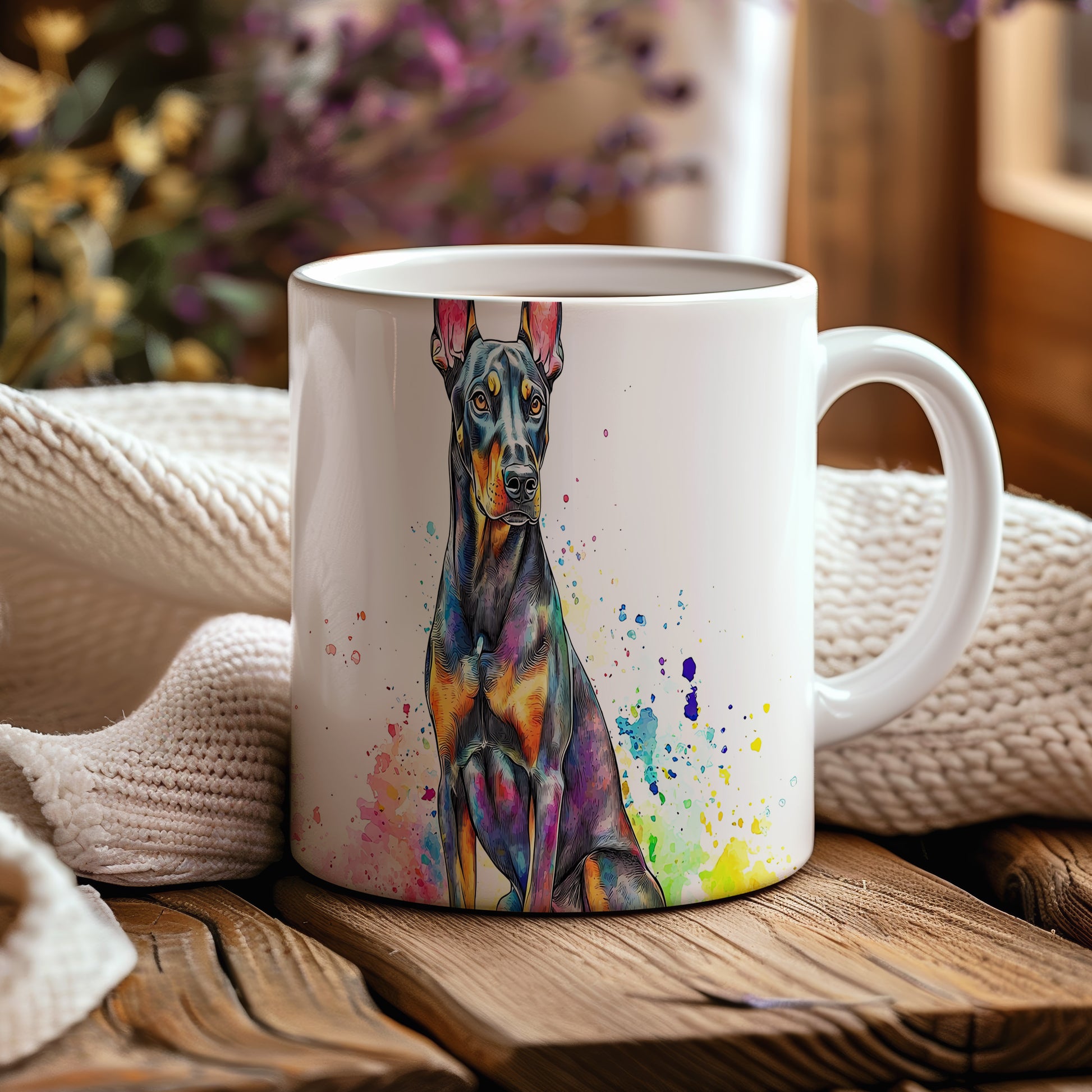 Tento hrnek z keramického materiálu zobrazuje dobermana v živých barvách. Je ideální pro milovníky psů a skvělým dárkem pro každého, kdo má rád originální kousky. Materiál: keramika. Objem: 330 ml. Vhodné do myčky i mikrovlnky. Užijte si svou oblíbenou kávu nebo čaj s tímto stylovým hrnkem.