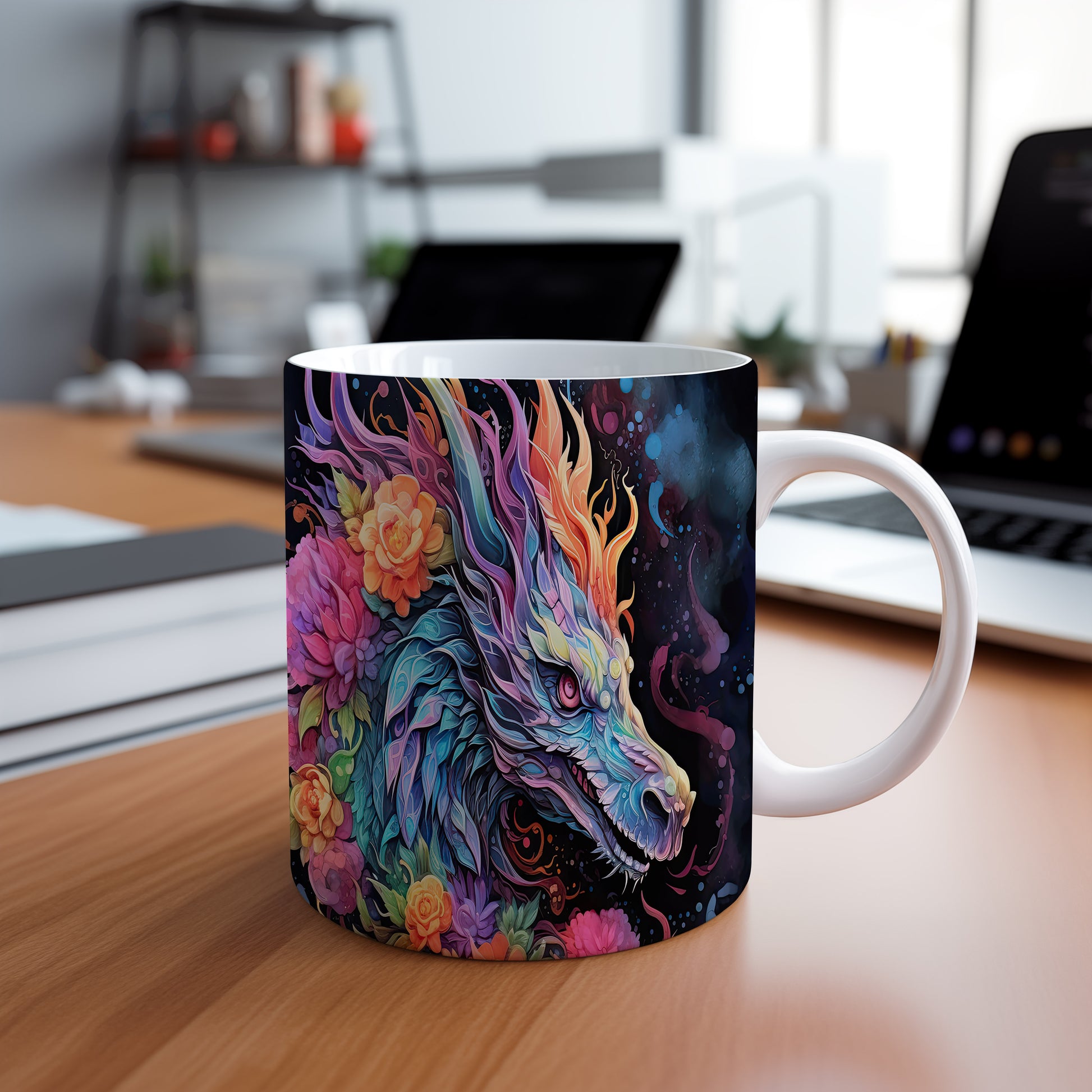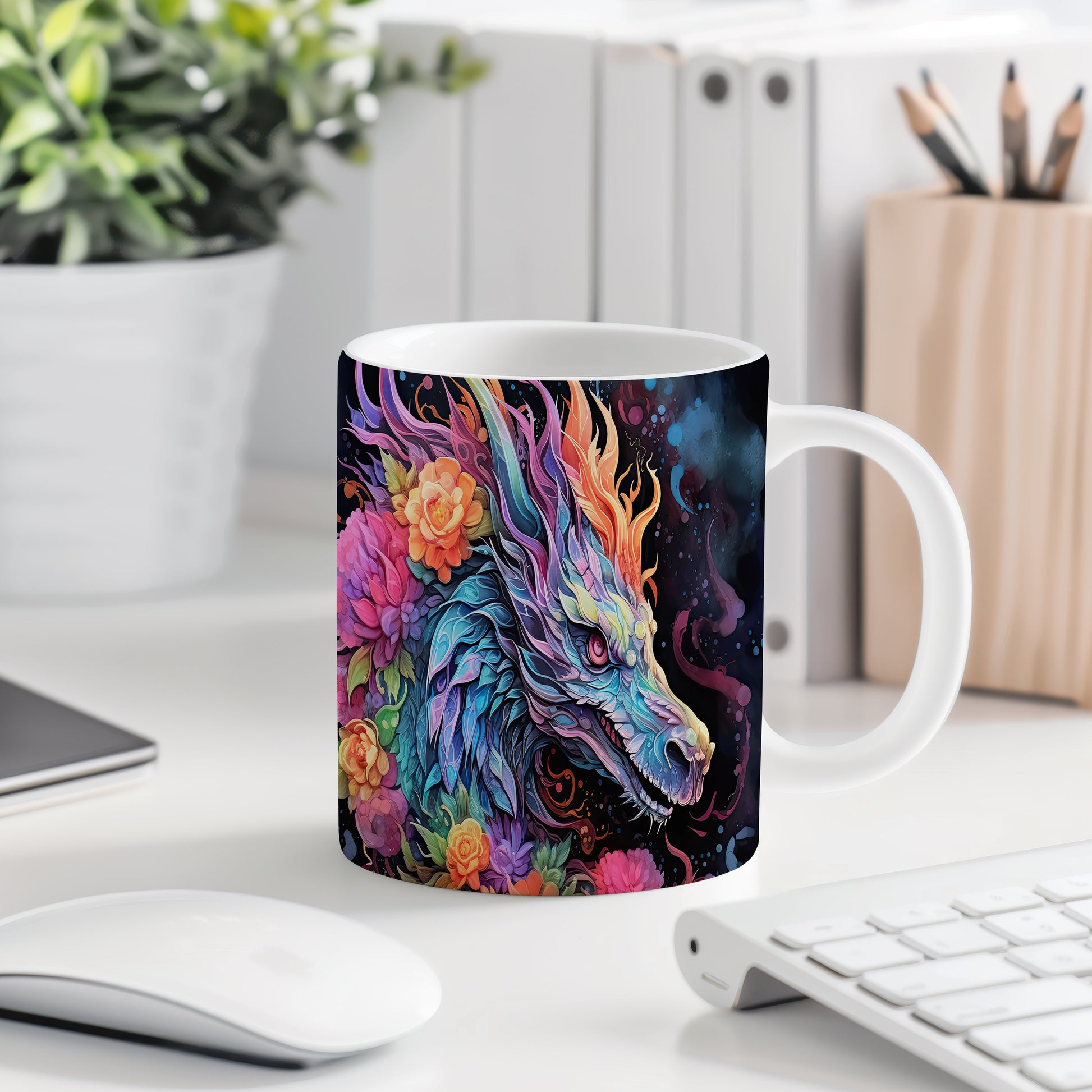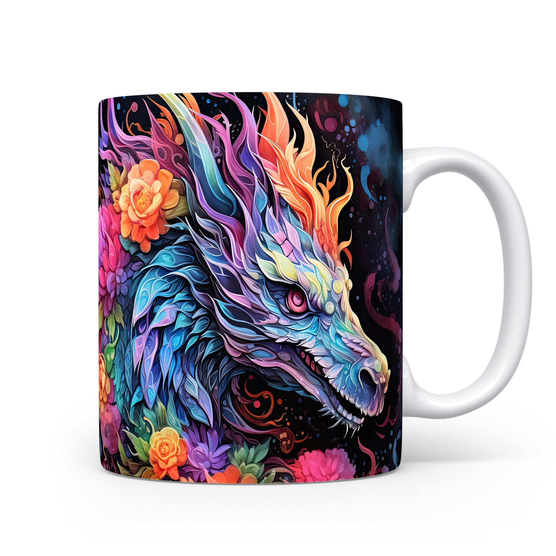 Tento nádherný hrnek s motivem barevného draka je ideální pro milovníky fantasy a originálních designů. Skvělý tip na dárek pro přátele nebo rodinu, kteří ocení jedinečné kousky. Materiál: keramika. Objem: 330 ml. Vhodné do myčky i mikrovlnky. Používání tohoto hrnku přináší radost z každého doušku.