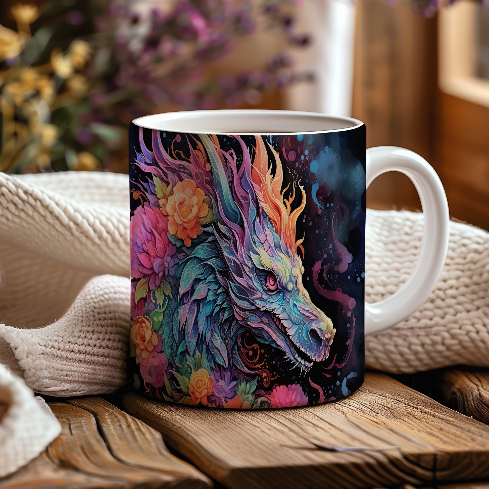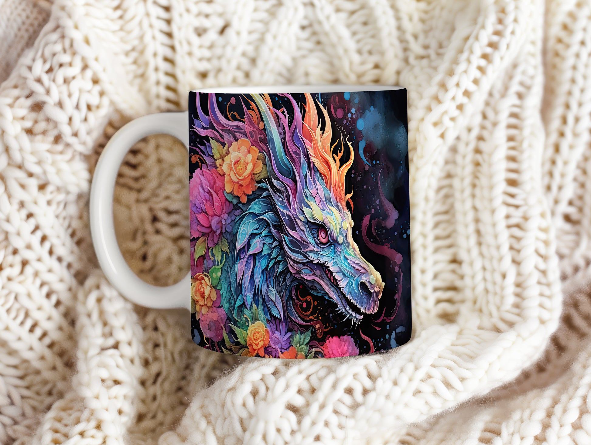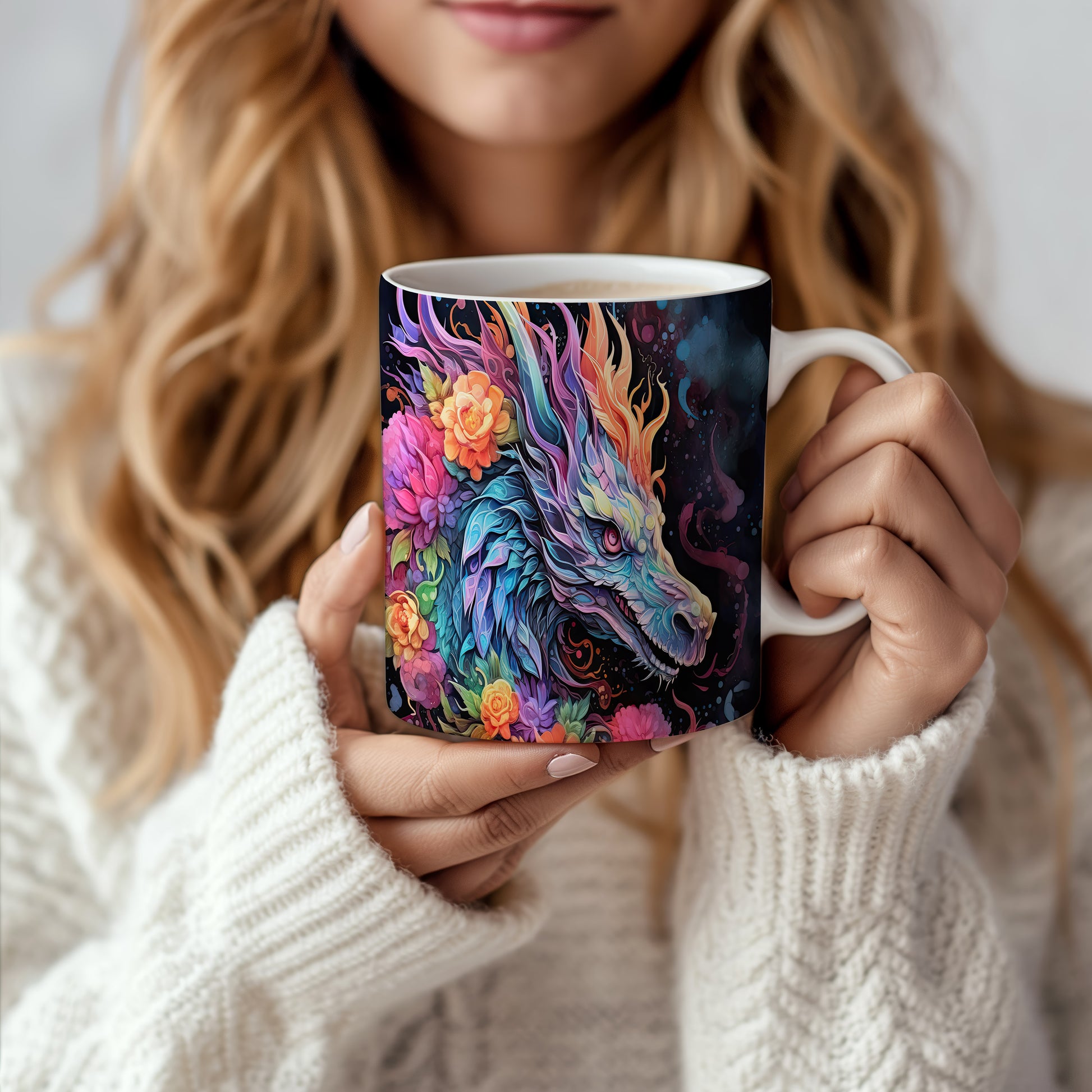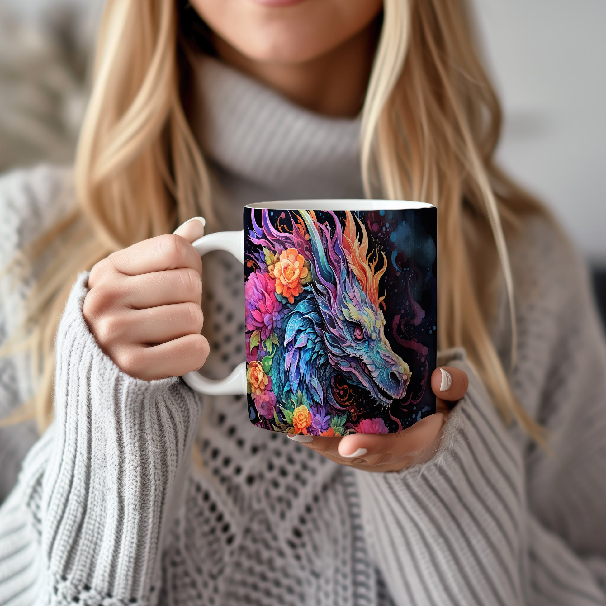 Tento nádherný hrnek s motivem barevného draka je ideální pro milovníky fantasy a originálních designů. Skvělý tip na dárek pro přátele nebo rodinu, kteří ocení jedinečné kousky. Materiál: keramika. Objem: 330 ml. Vhodné do myčky i mikrovlnky. Používání tohoto hrnku přináší radost z každého doušku.
