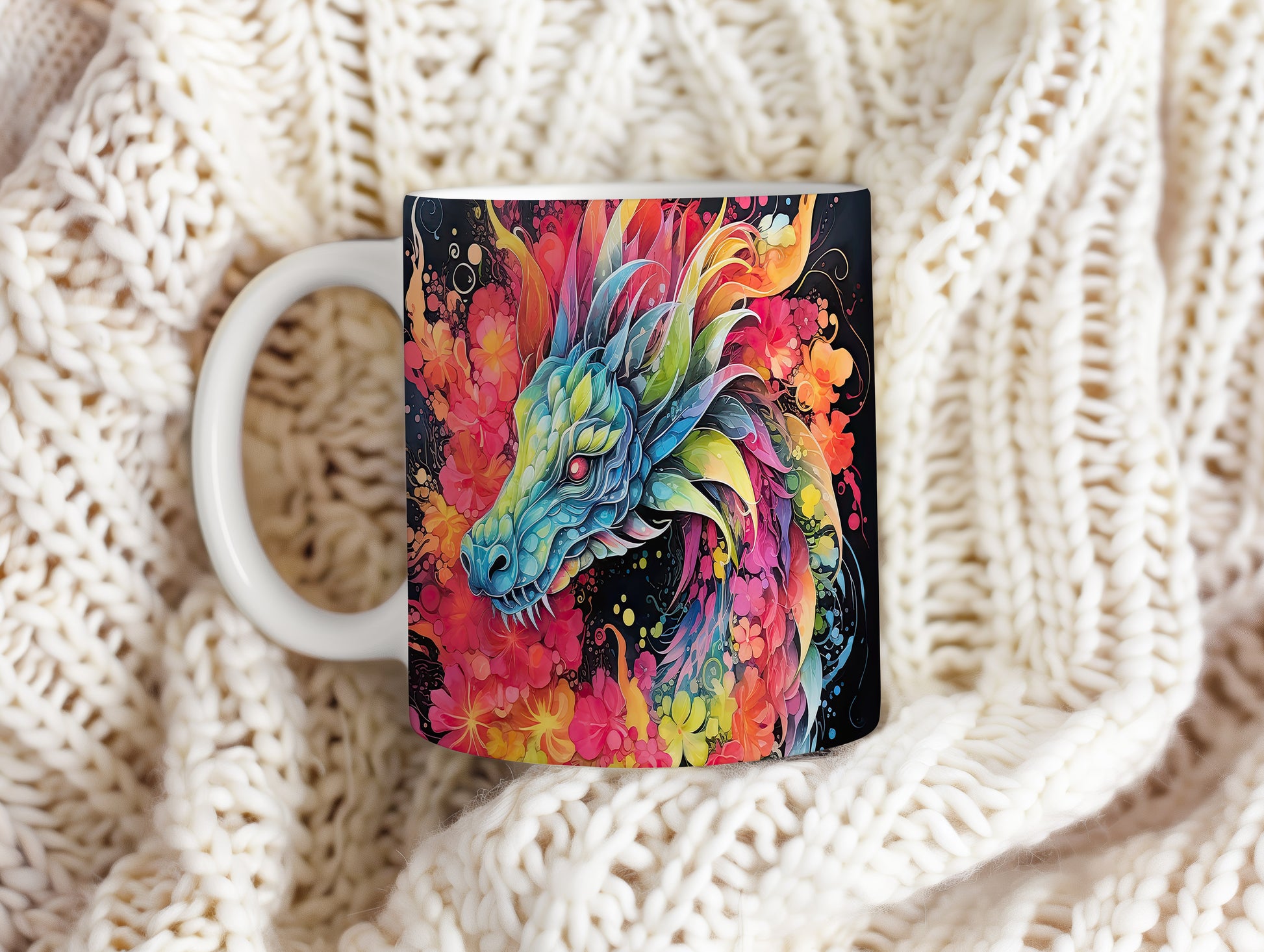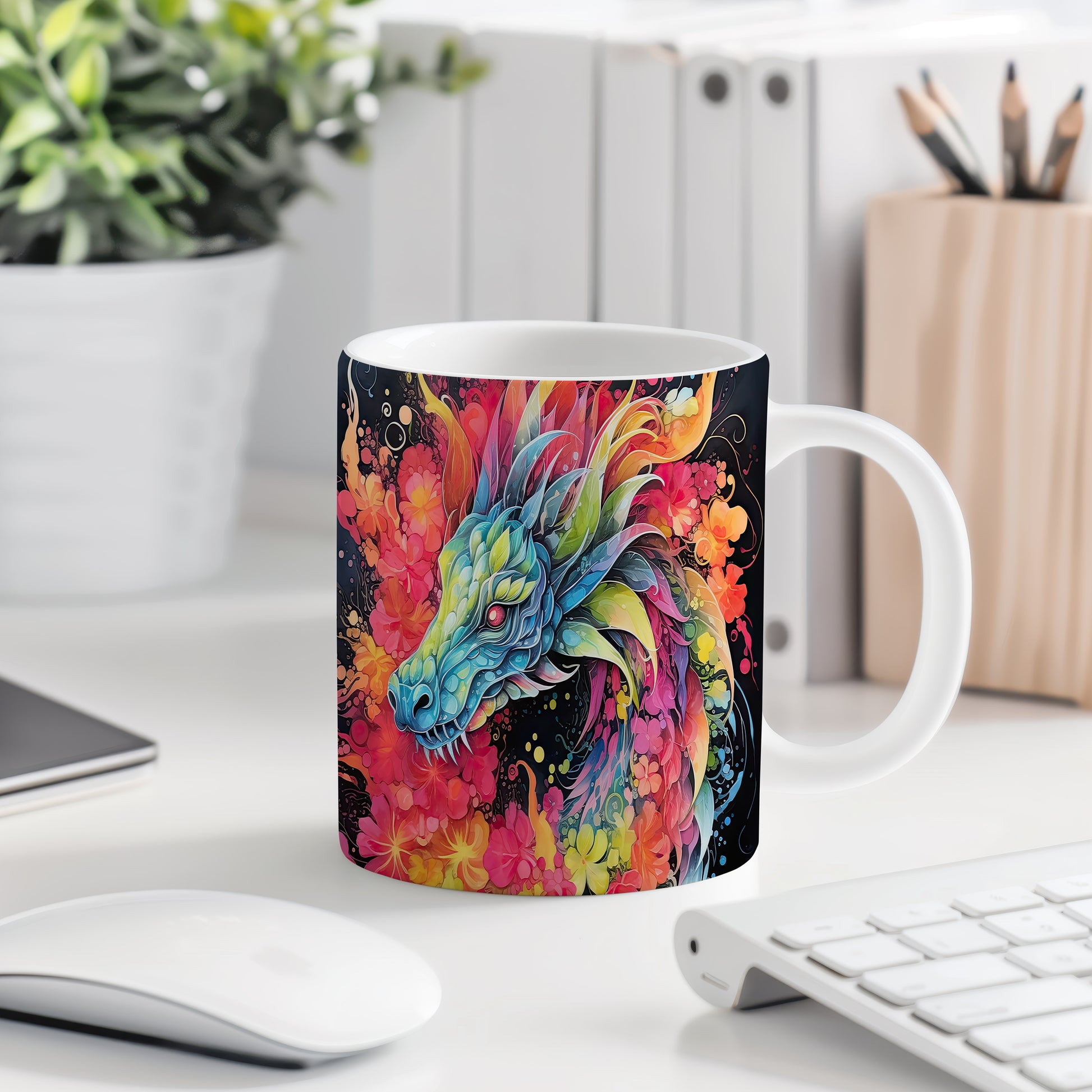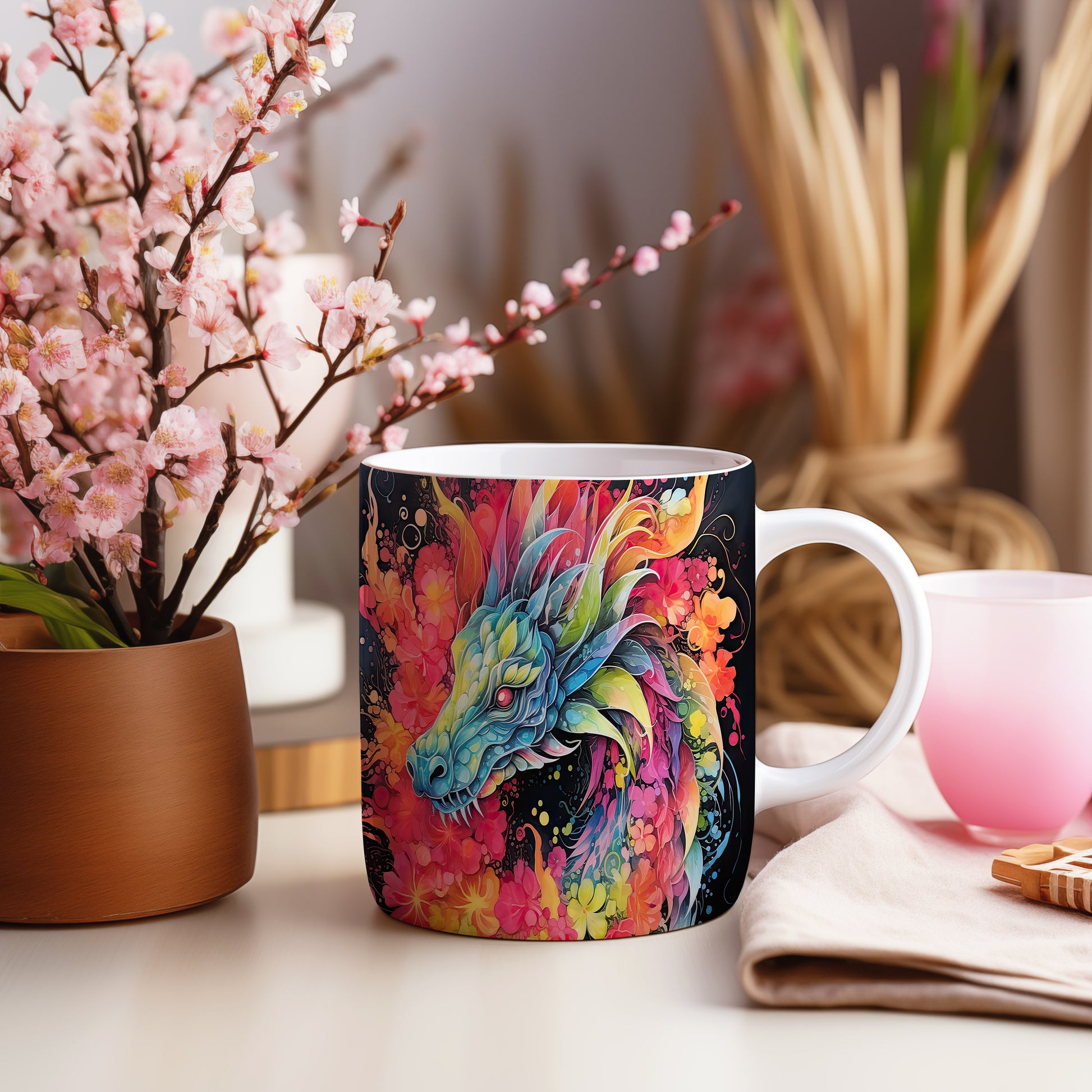 Originální hrnek s magickým drakem a barevnými květinami. Tento hrnek je ideální pro milovníky fantasy a skvělý tip na dárek pro děti i dospělé. Materiál: keramika. Objem: 330 ml. Vhodné do myčky i mikrovlnky. Používání tohoto hrnku přináší radost a oživí každé pití.