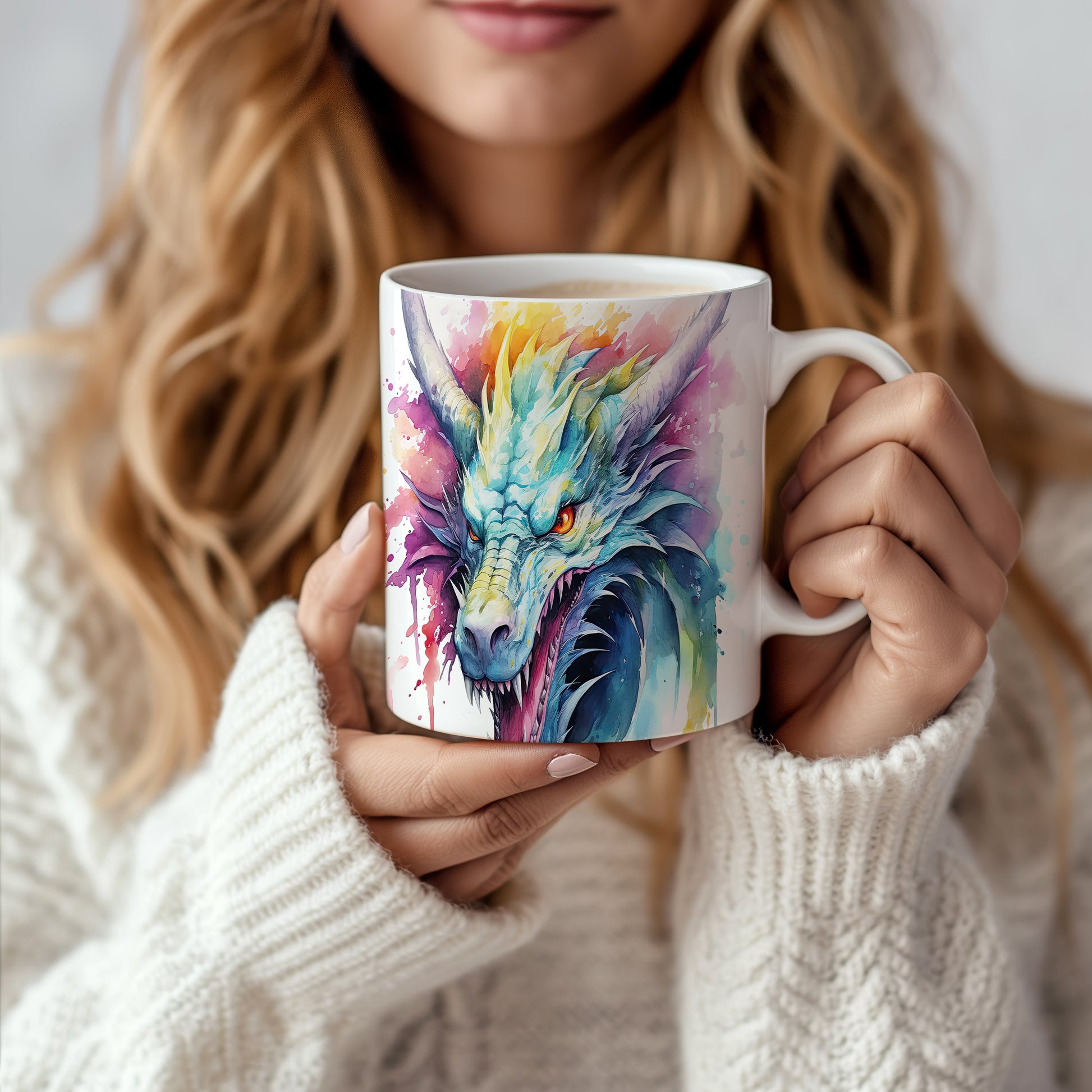 Tento keramický hrnek zobrazuje barevného draka s výraznýma očima. Je ideální pro milovníky fantasy a skvělým dárkem pro každého, kdo ocení originální design. Materiál: keramika. Objem: 330 ml. Vhodné do myčky i mikrovlnky. Používání tohoto hrnku přináší radost a oživí každé pití.