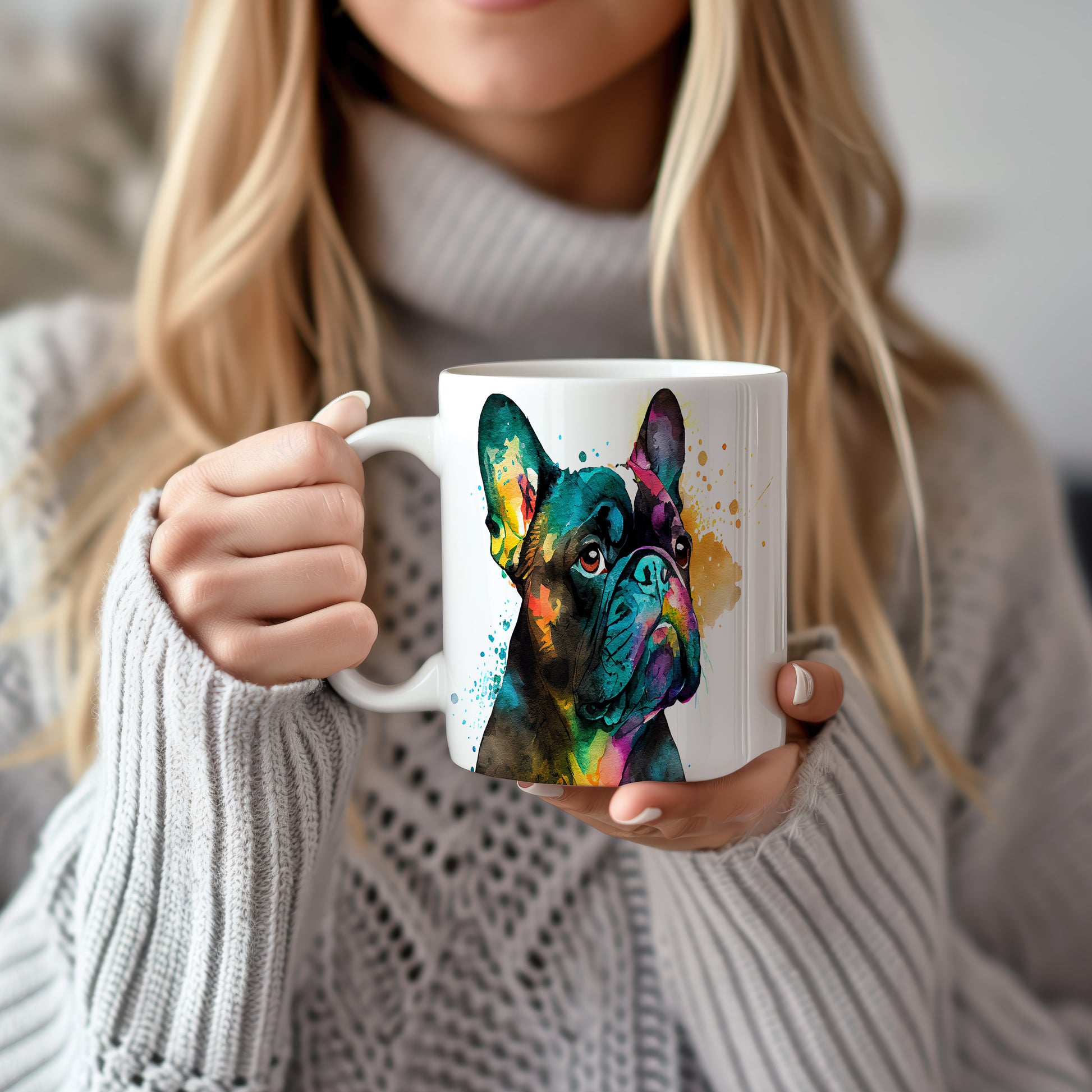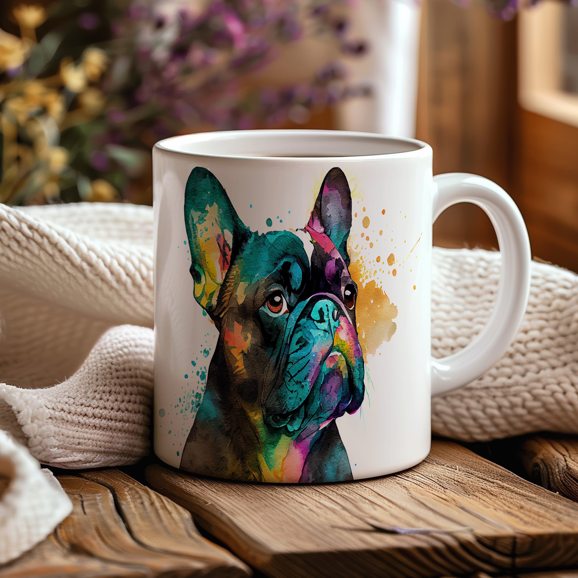Hrnek s barevným francouzským buldočkem – roztomilým motivem