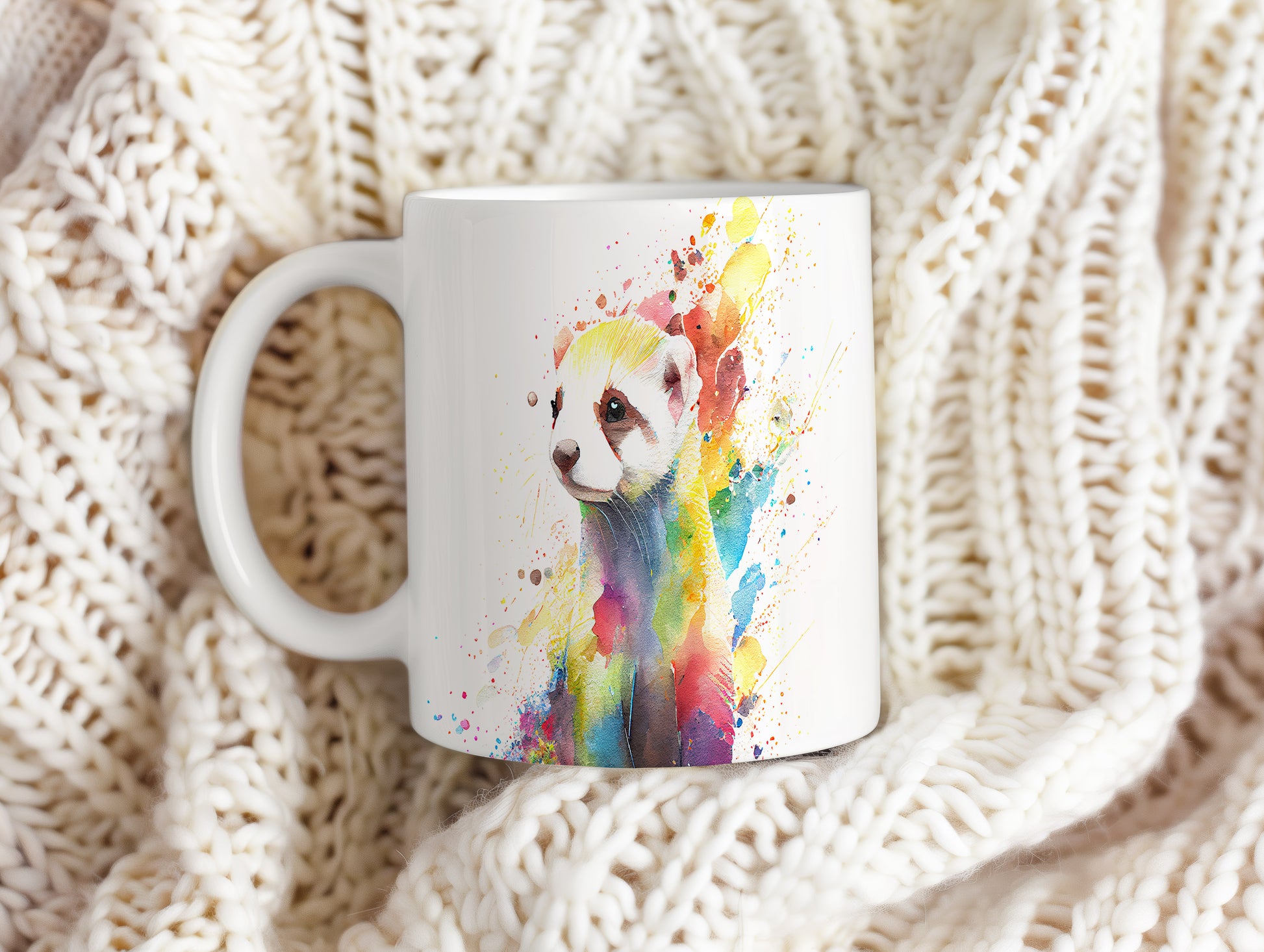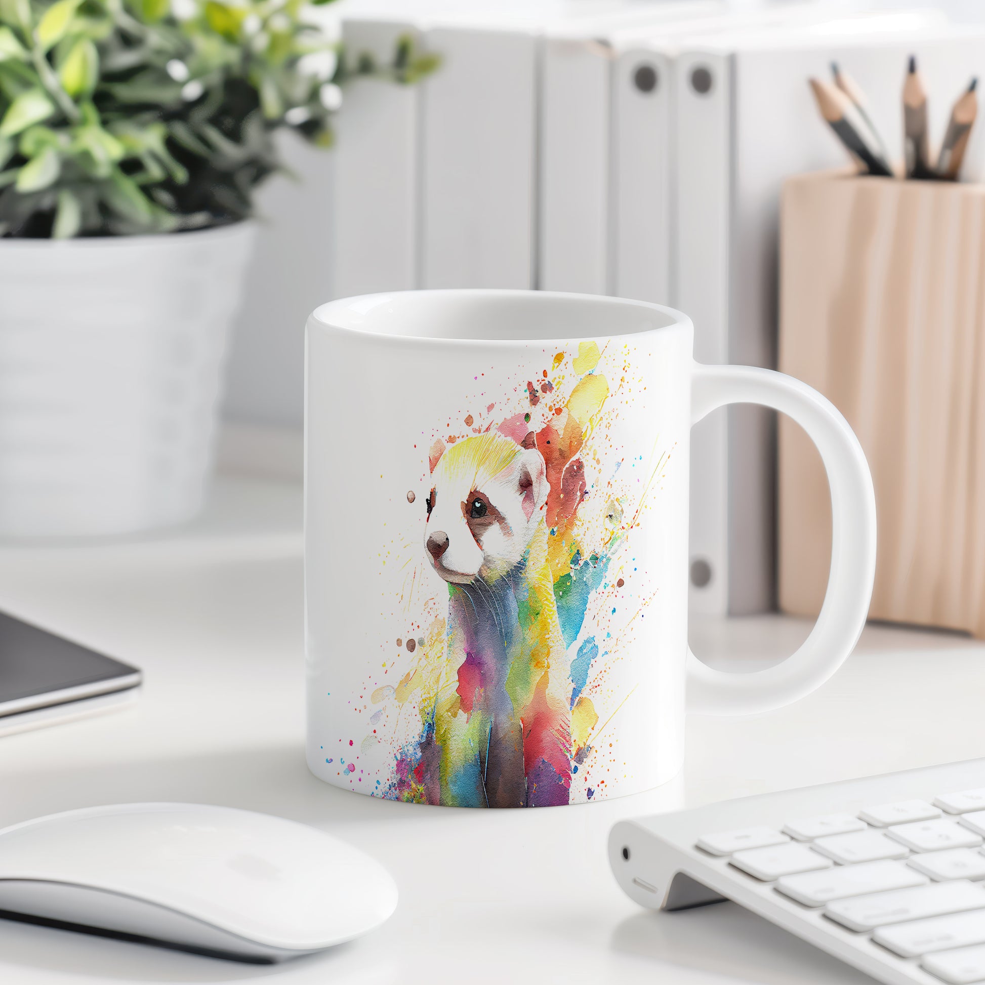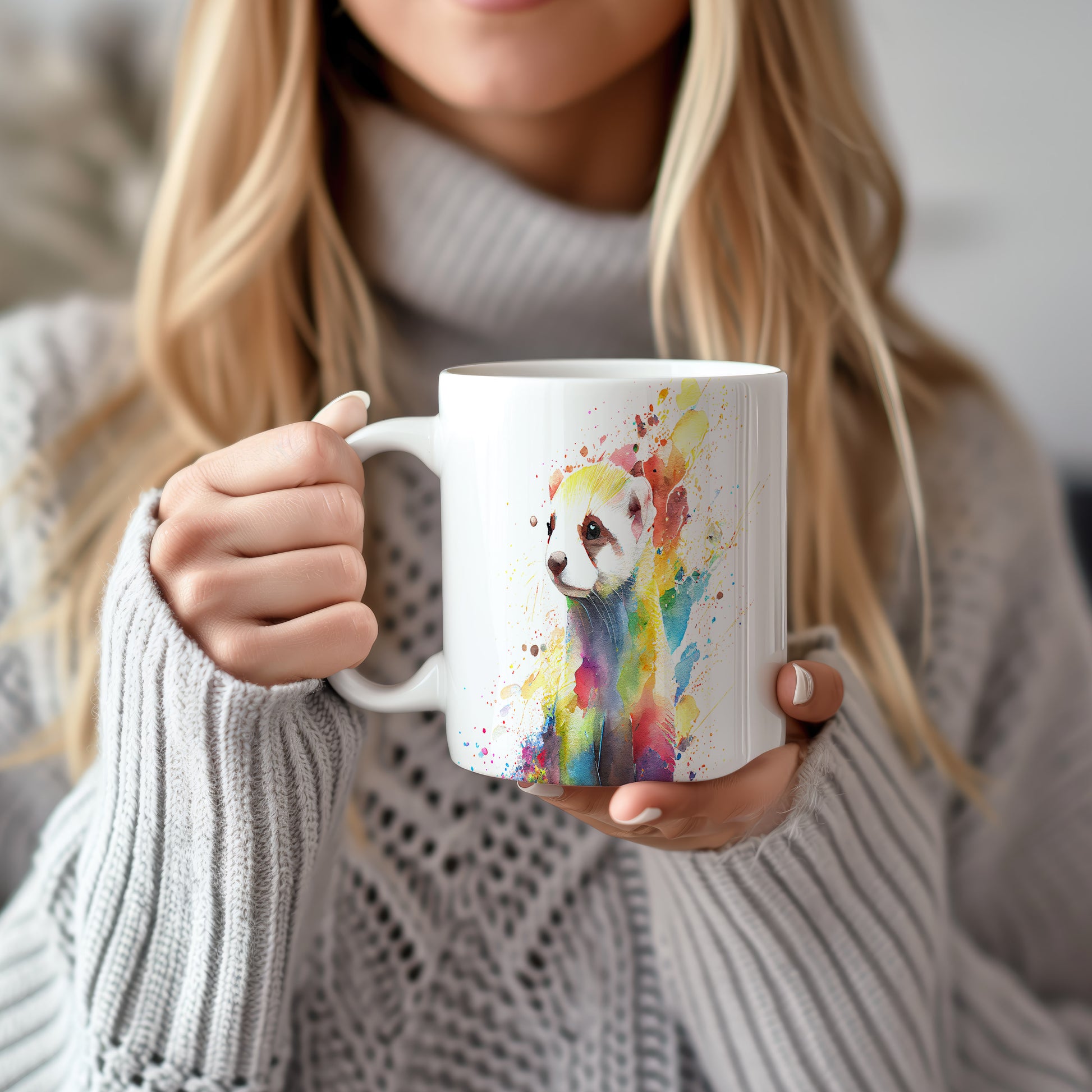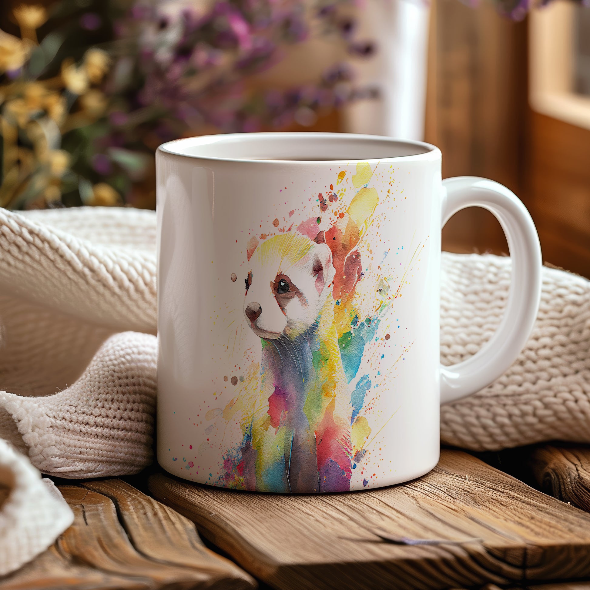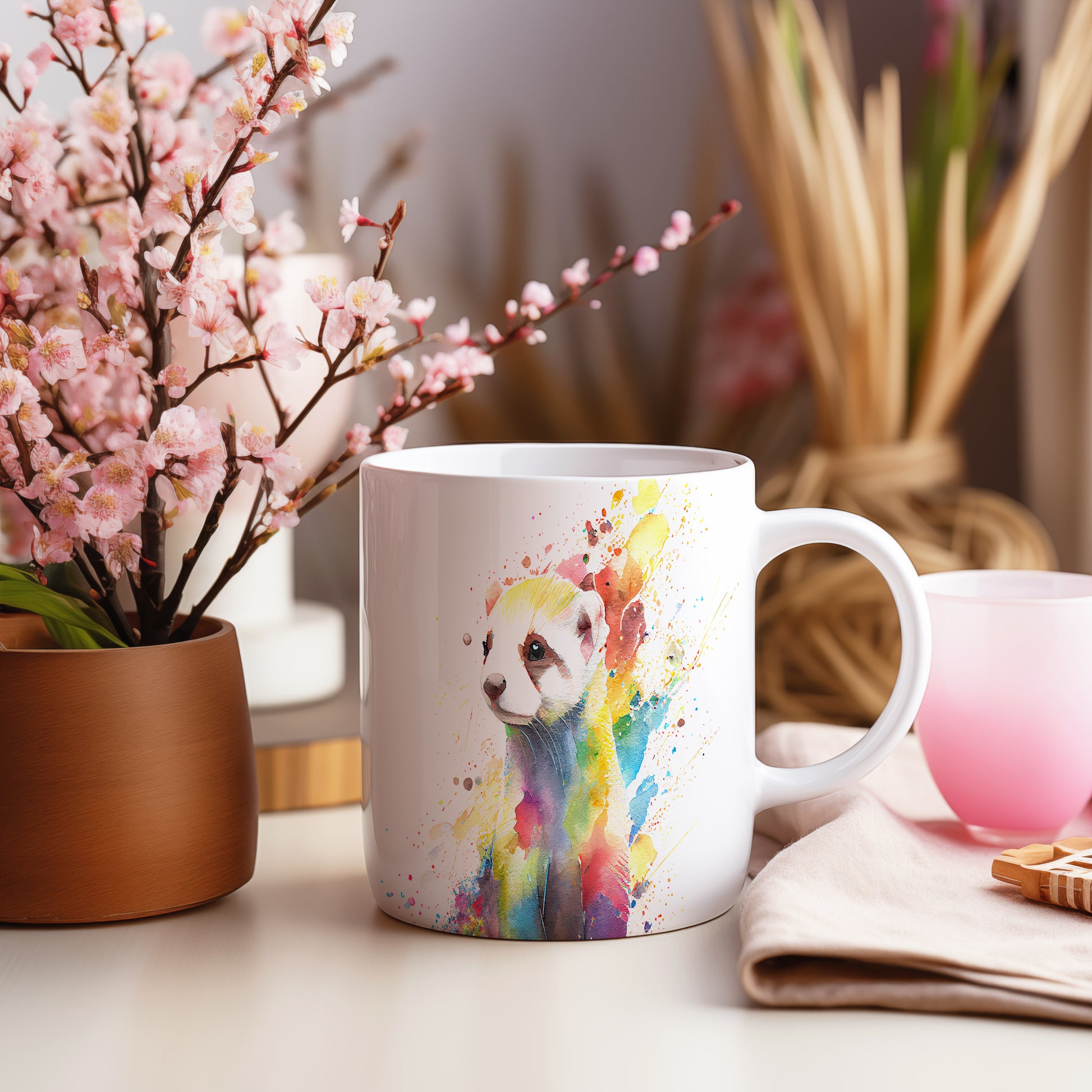 Keramický hrnek s designem barevné fretky, ideální pro milovníky zvířat a přírody. Skvělý tip na dárek pro přátele nebo rodinu, kteří ocení originální kousek. Materiál: keramika. Objem: 330 ml. Vhodné do myčky i mikrovlnky. Tento hrnek přináší radost při každém doušku a dodává osobitý styl vaší kuchyni.