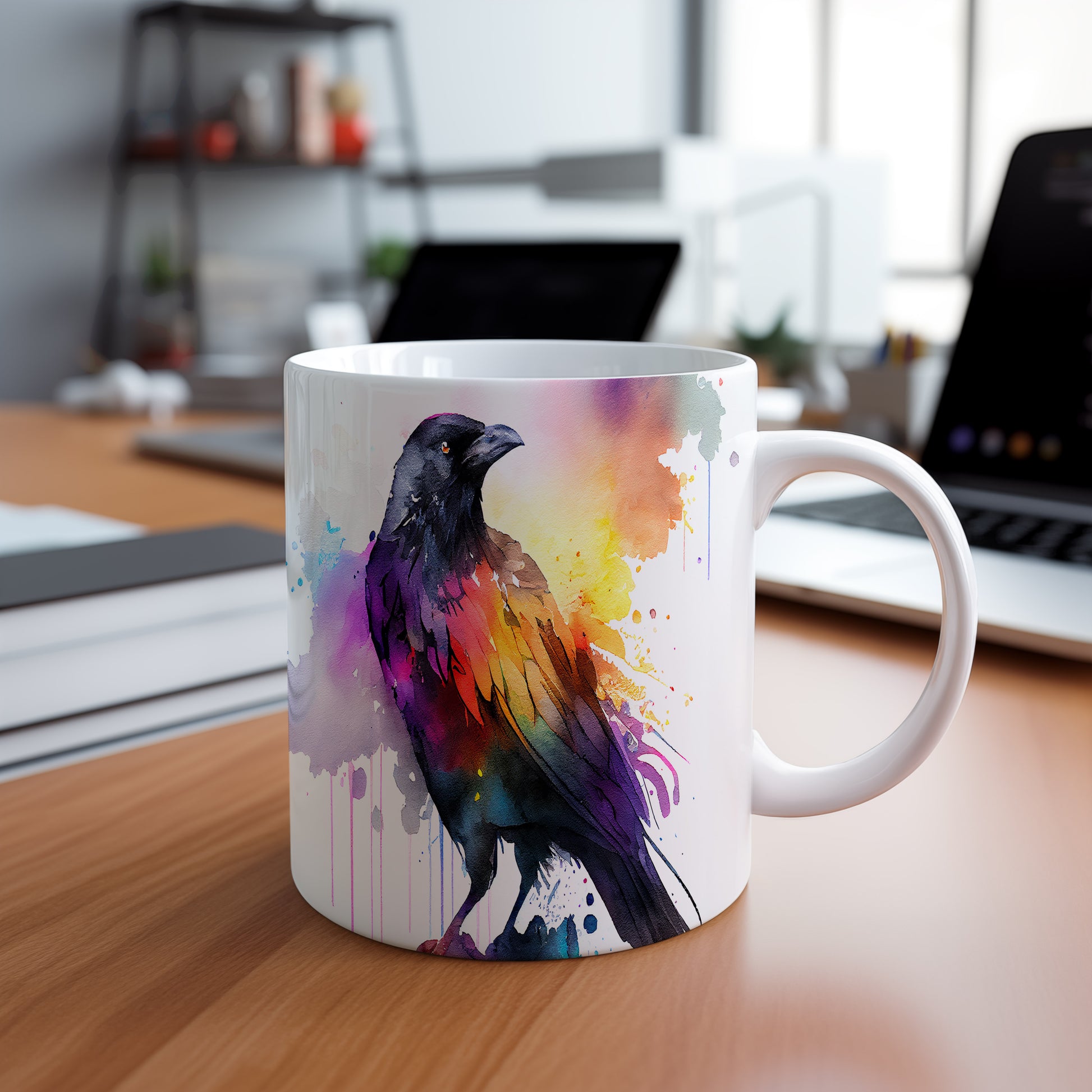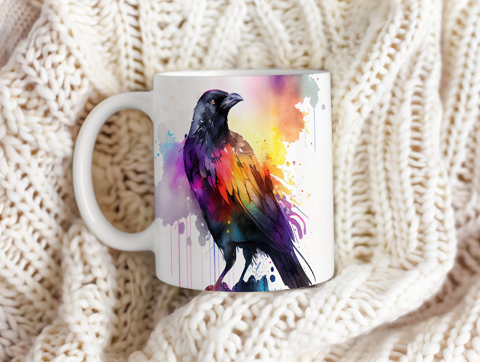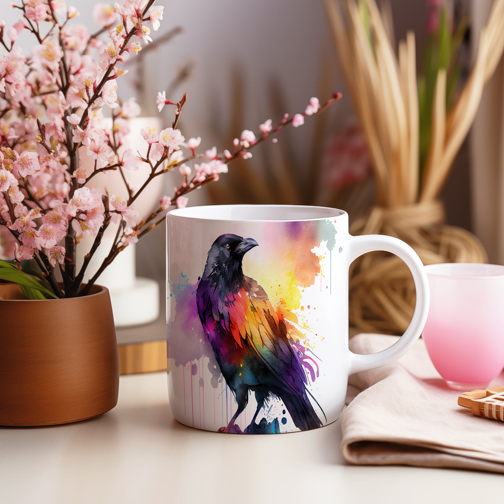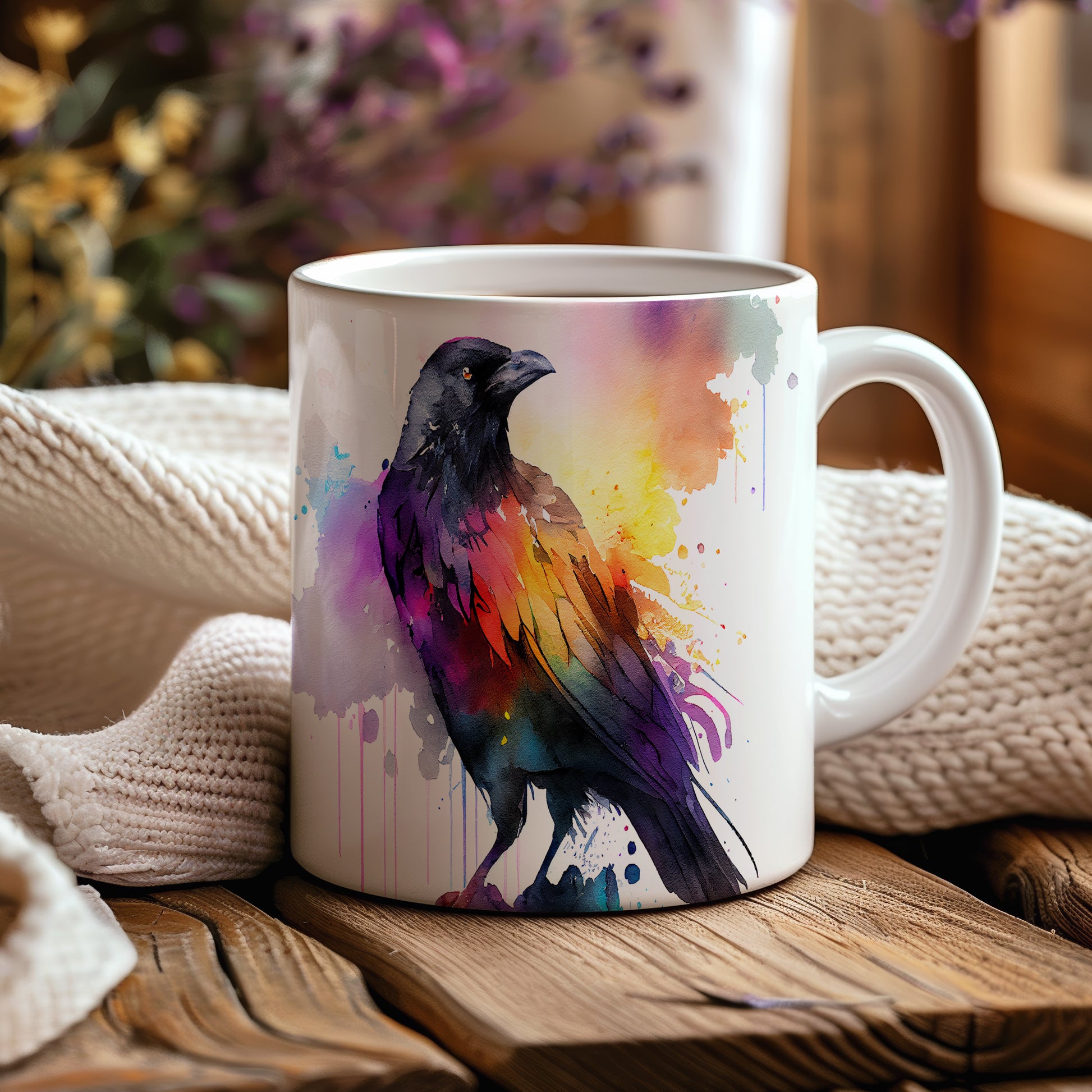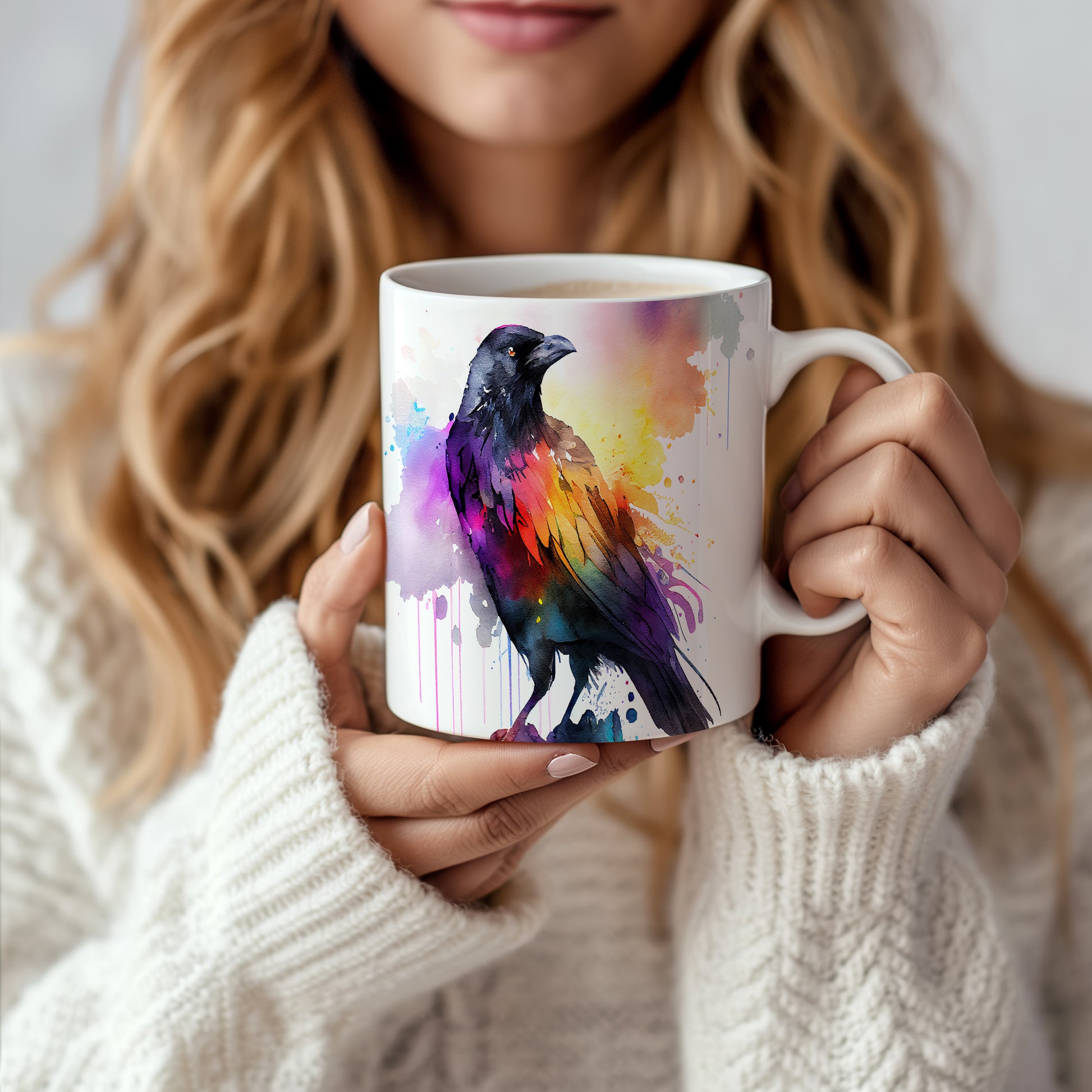 Hrnek s barevným havranem a akvarelovým efektem pro milovníky teriérů