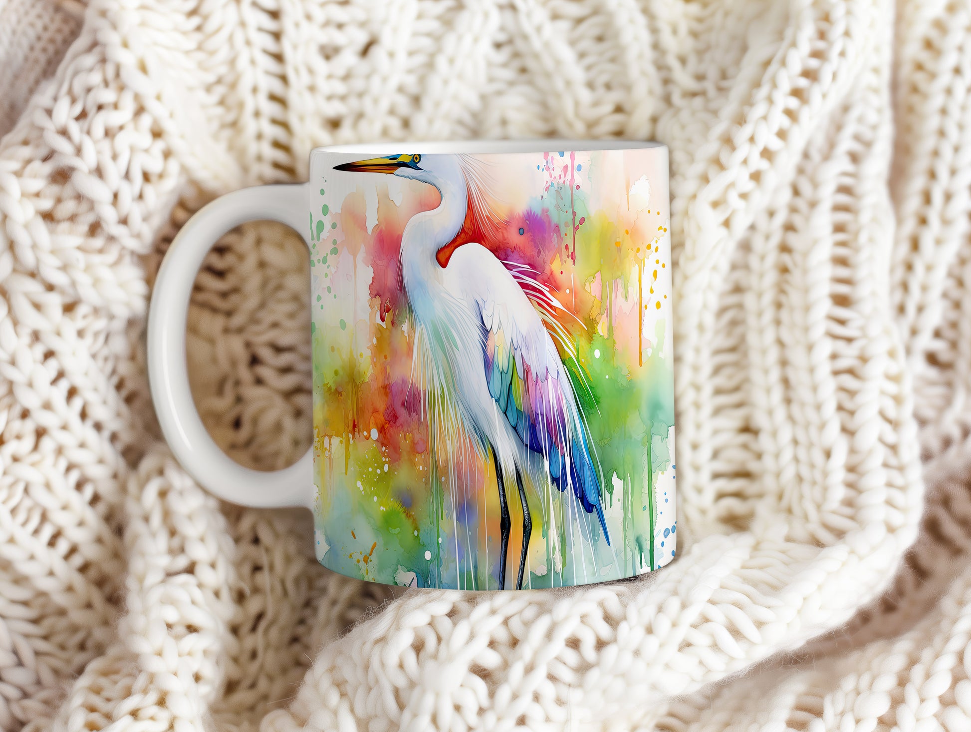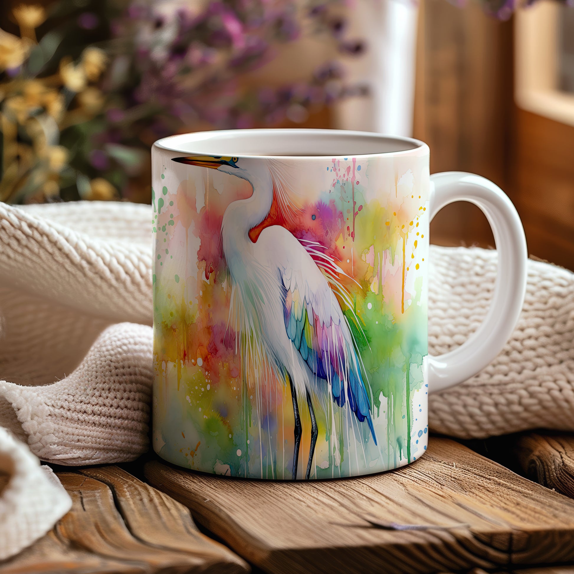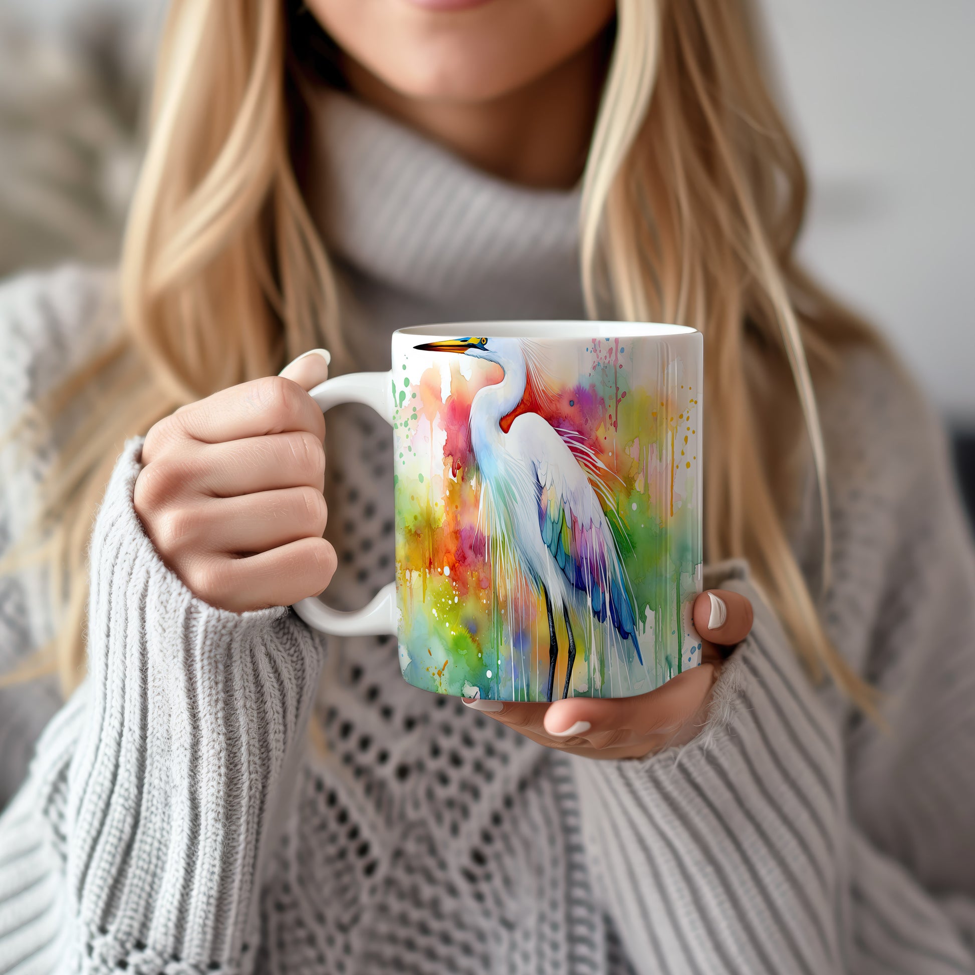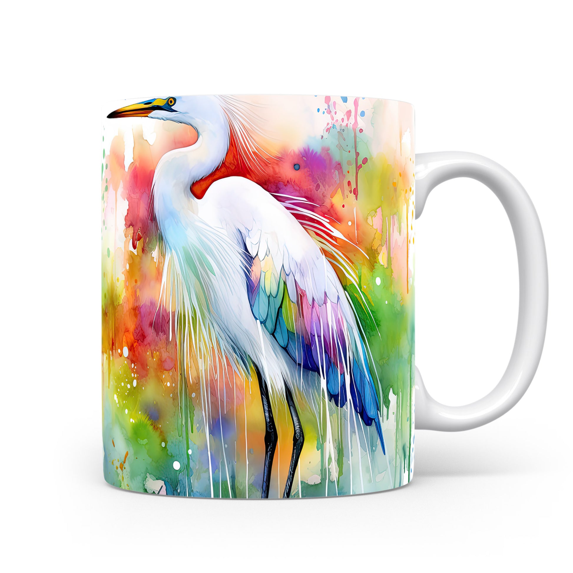 Hrnek s barevným heronem – akvarelovým motivem