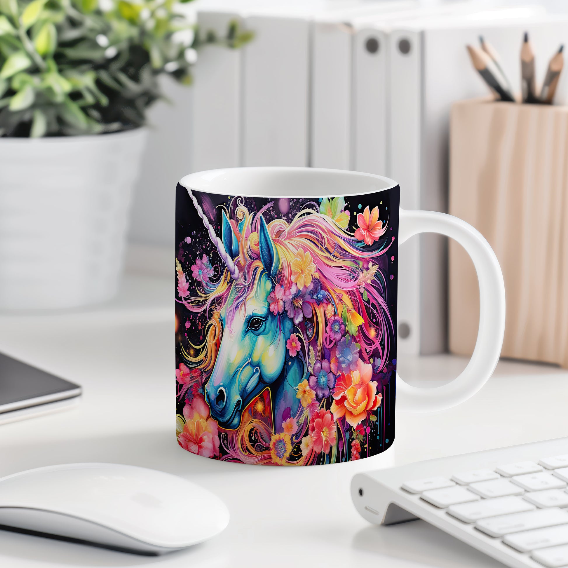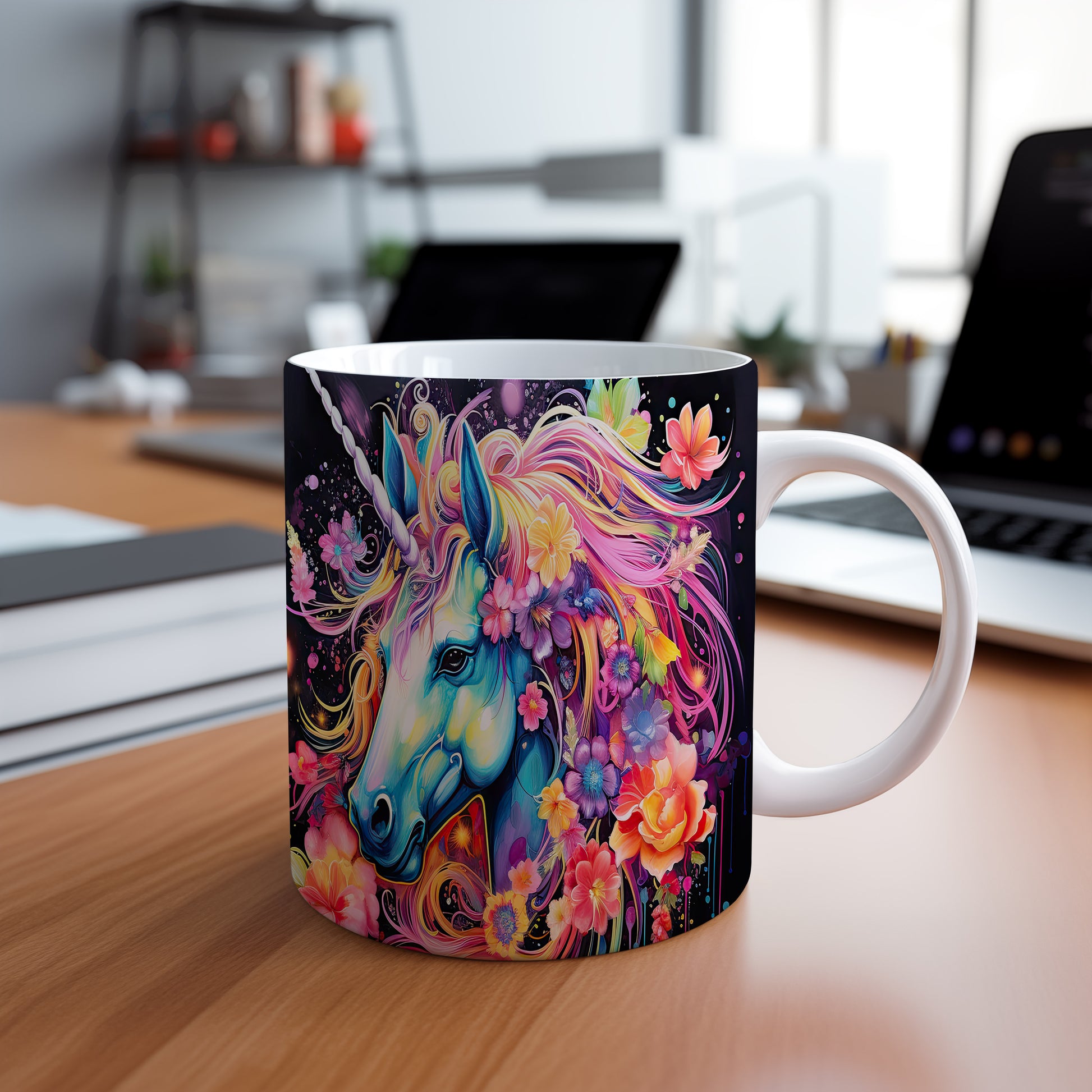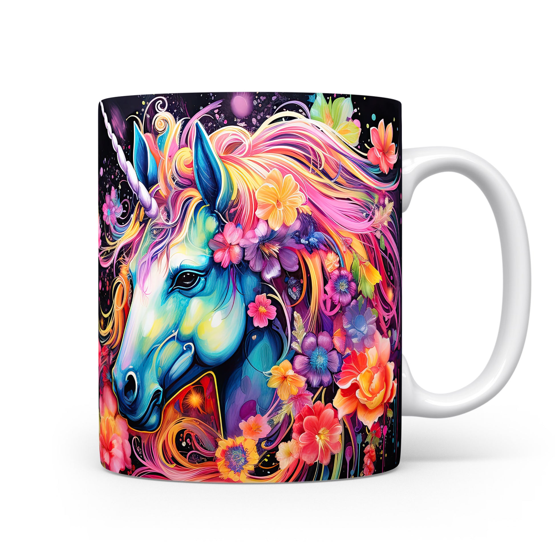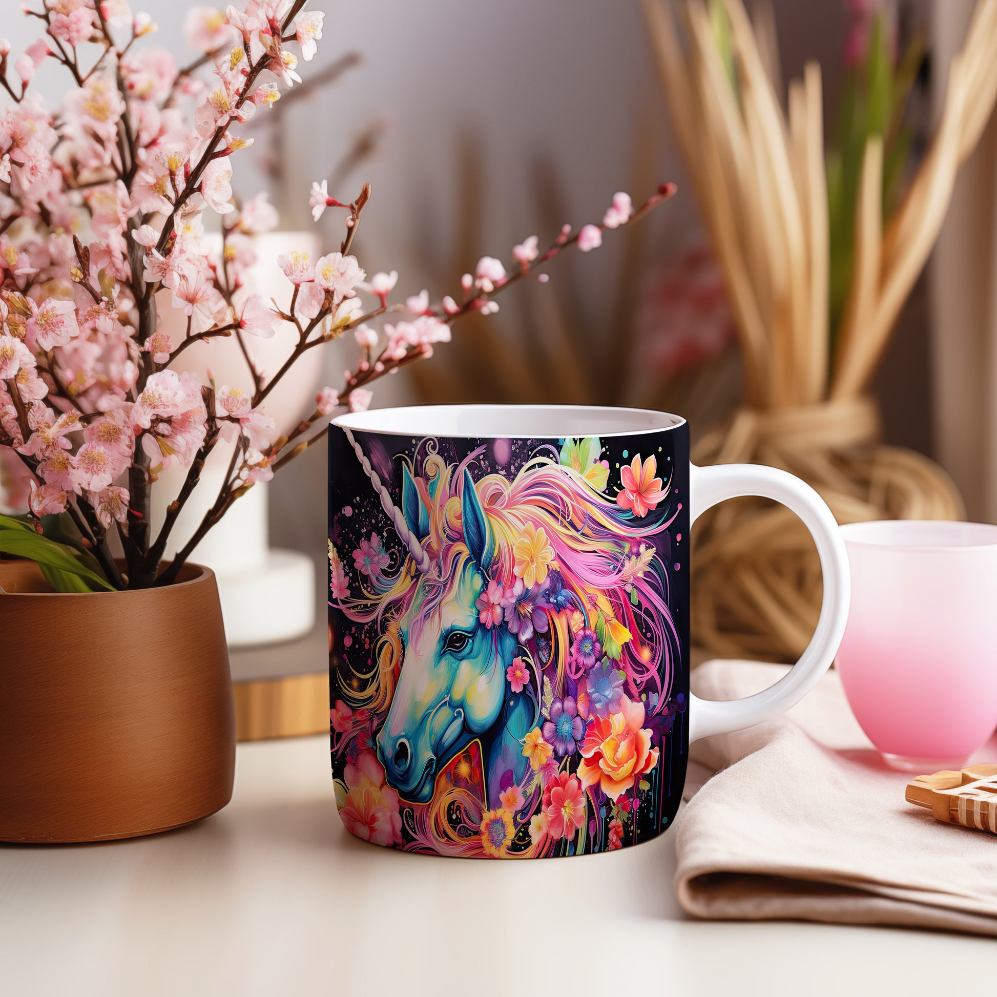 Tento krásný hrnek s motivem jednorožce a pestrými květinami potěší všechny milovníky fantazie a zvířat. Je skvělým dárkem pro děti i dospělé, kteří ocení kouzlo pohádkového světa. Materiál: keramika. Objem: 330 ml. Vhodné do myčky i mikrovlnky. Používání tohoto hrnku přináší radost a barevnost do každodenního pití.
