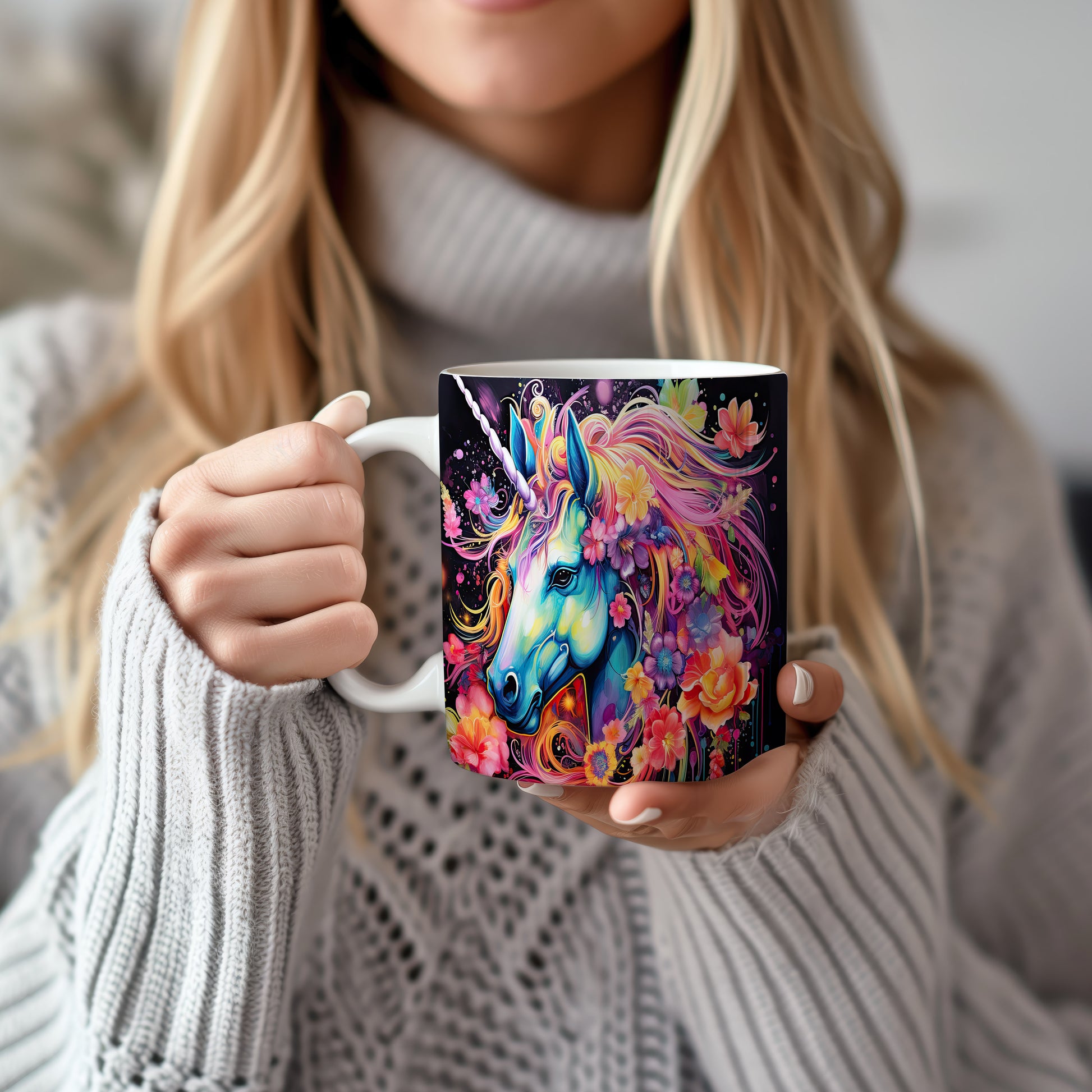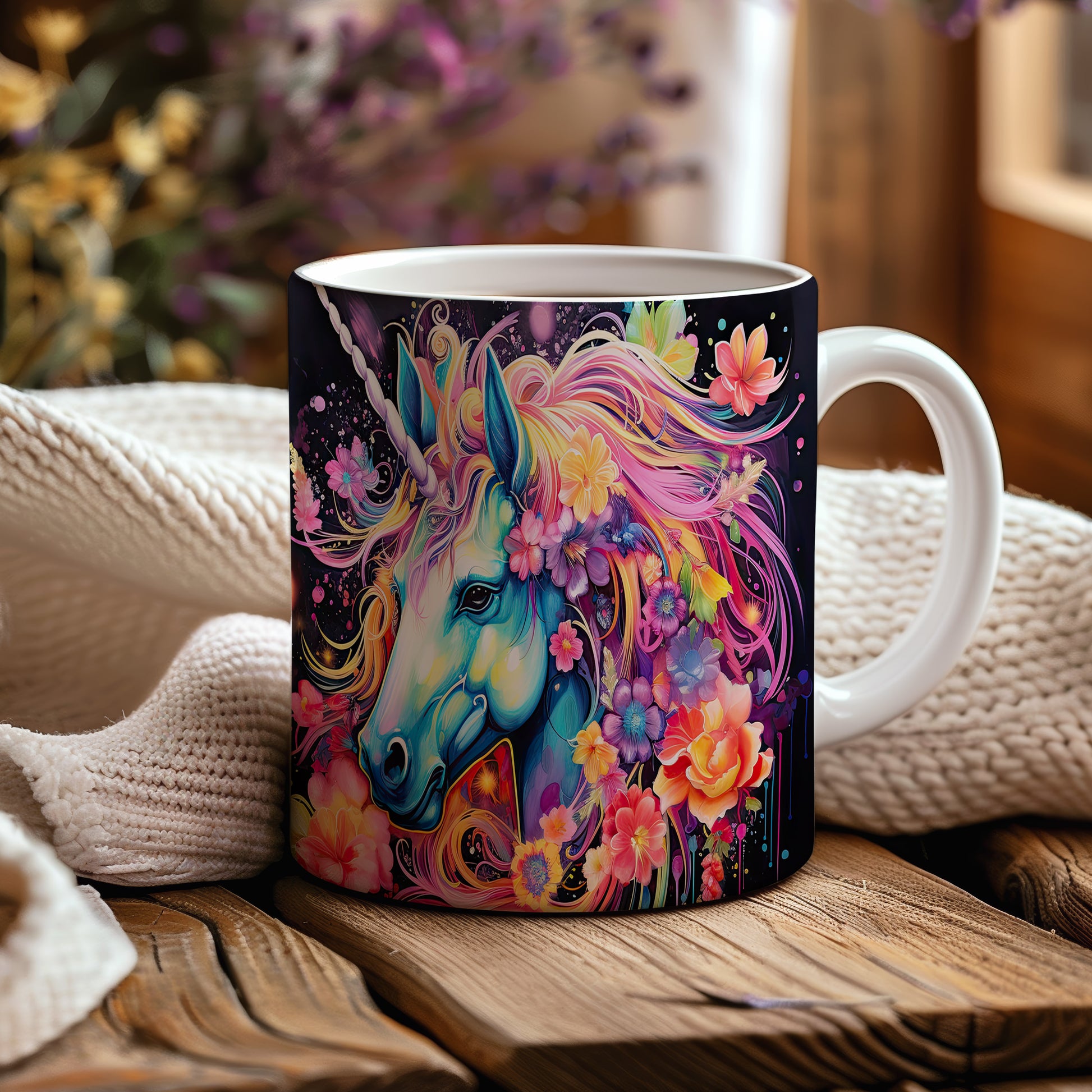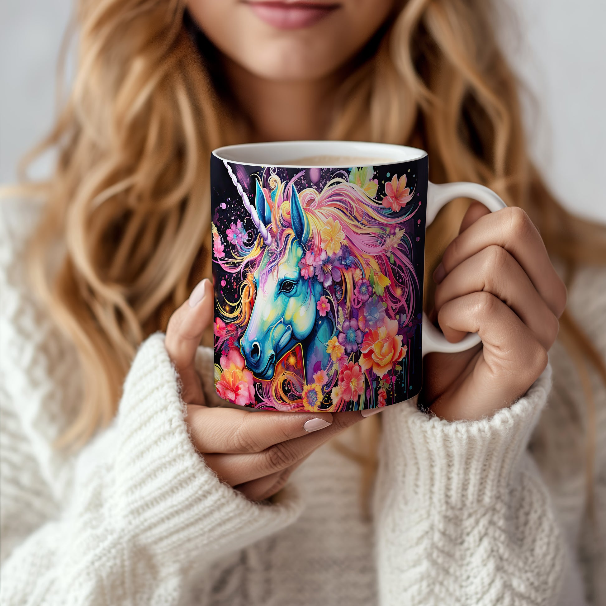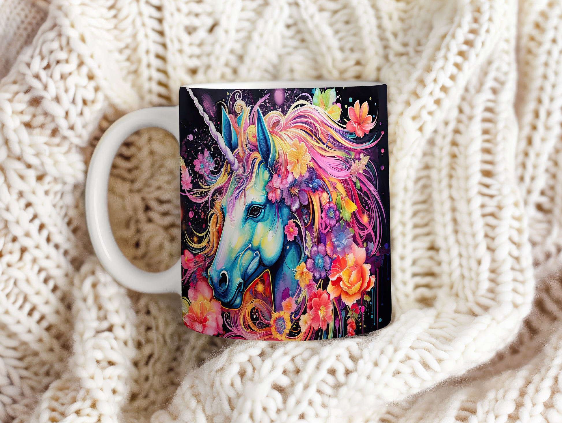 Tento krásný hrnek s motivem jednorožce a pestrými květinami potěší všechny milovníky fantazie a zvířat. Je skvělým dárkem pro děti i dospělé, kteří ocení kouzlo pohádkového světa. Materiál: keramika. Objem: 330 ml. Vhodné do myčky i mikrovlnky. Používání tohoto hrnku přináší radost a barevnost do každodenního pití.
