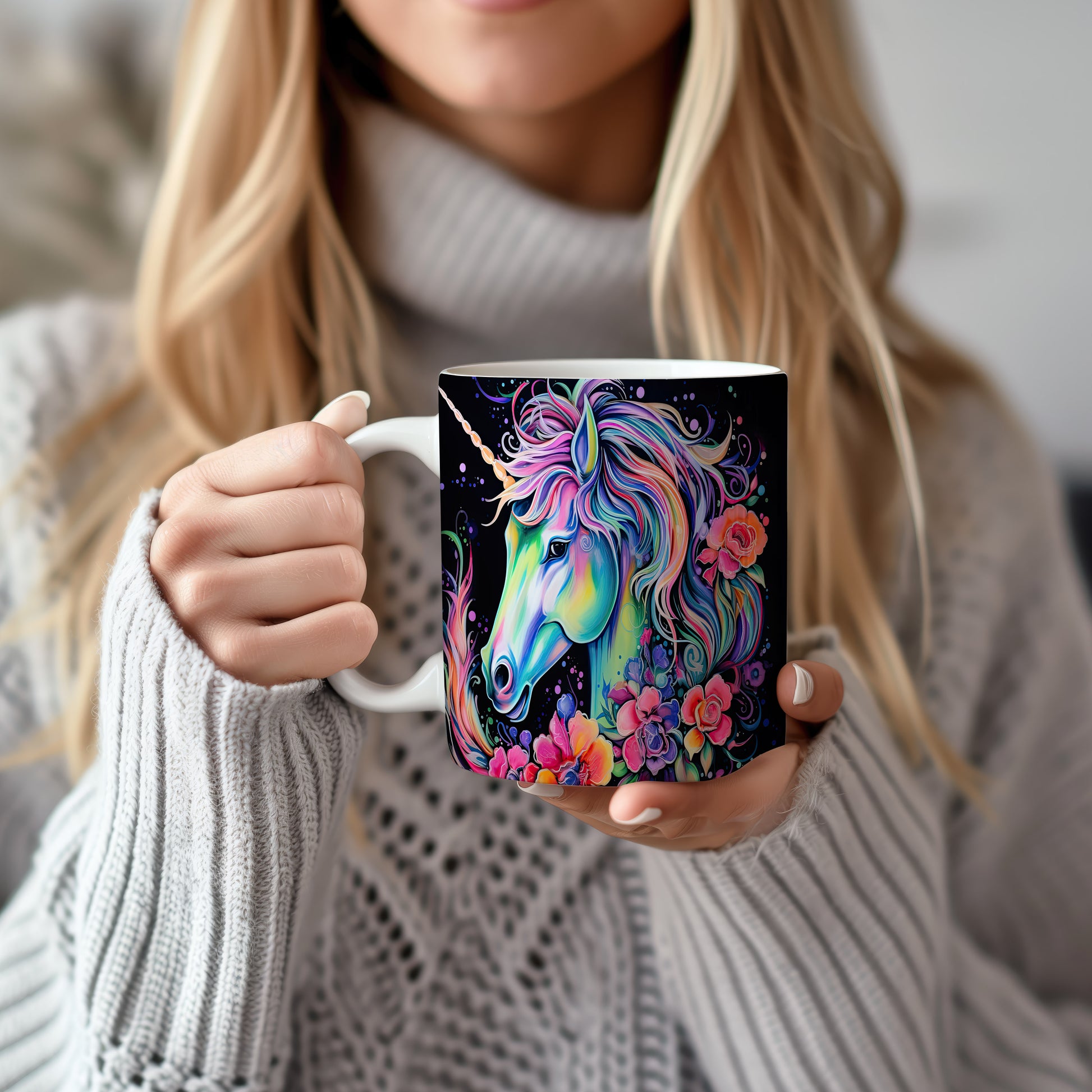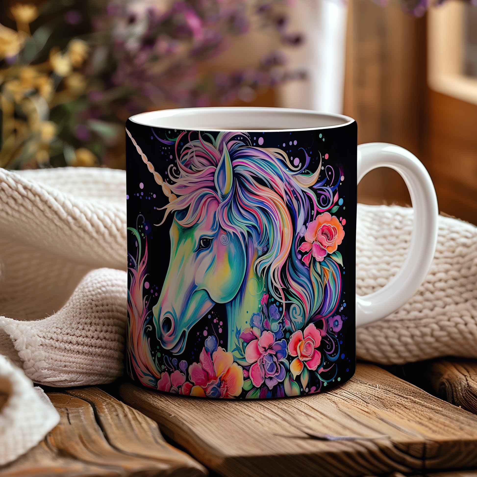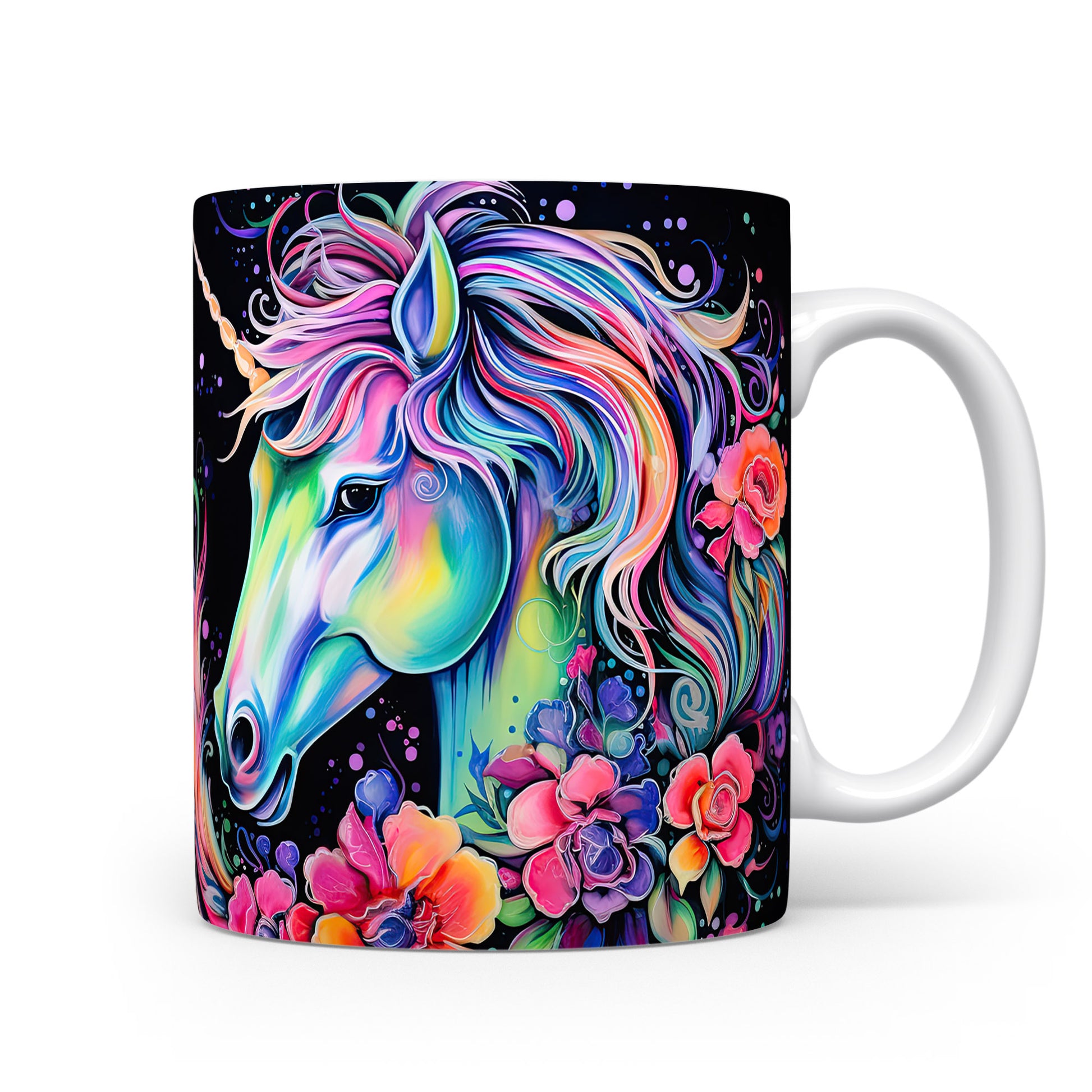 Tento hrnek zobrazuje barevného jednorožce v květinovém stylu. Je ideální pro milovníky pohádkových bytostí a skvělým dárkem pro děti i dospělé. Materiál: keramika. Objem: 330 ml. Vhodné do myčky i mikrovlnky. Užívejte si svůj oblíbený nápoj s tímto hrnkem, který přináší radost a kouzlo do každého dne.