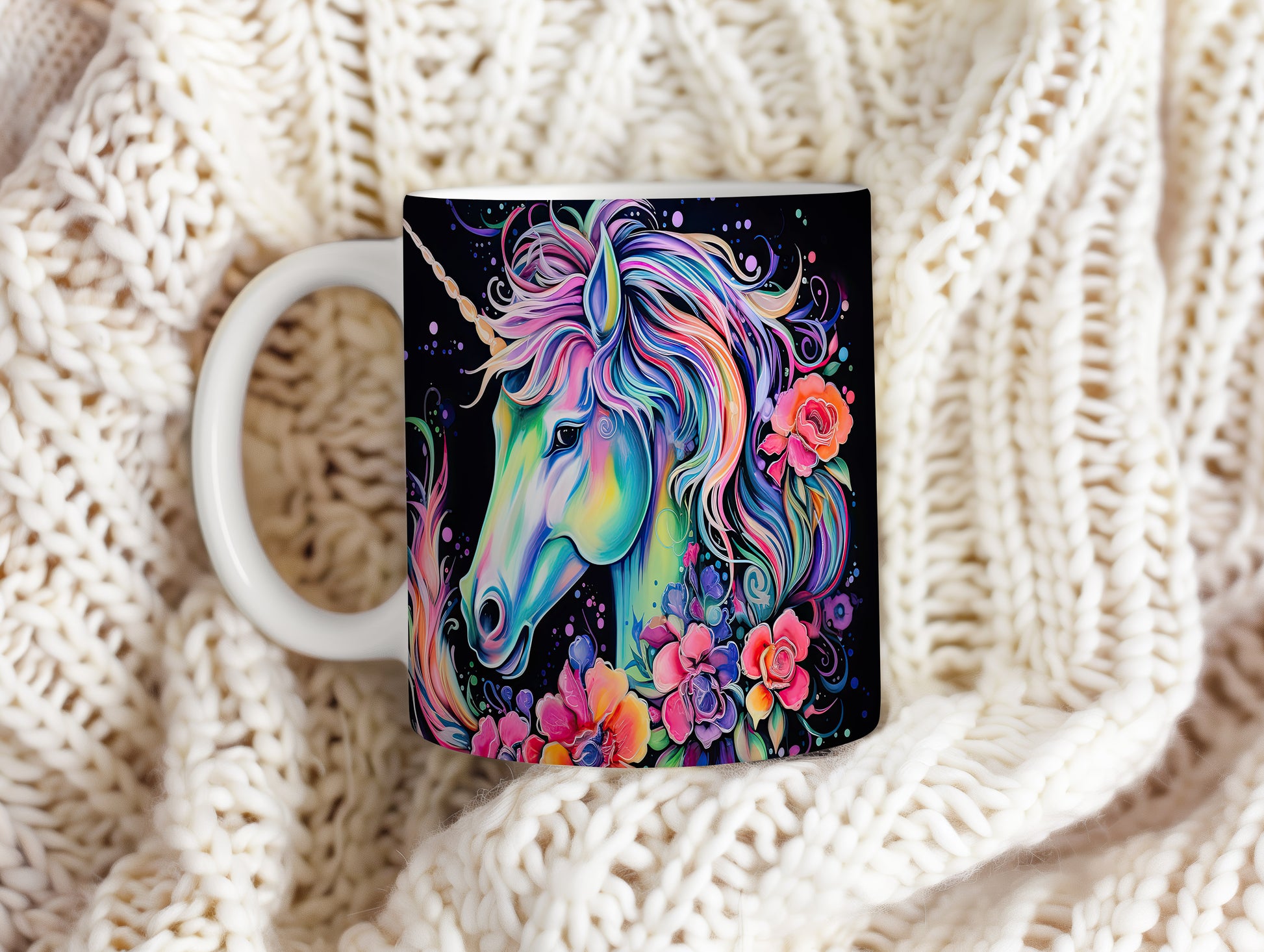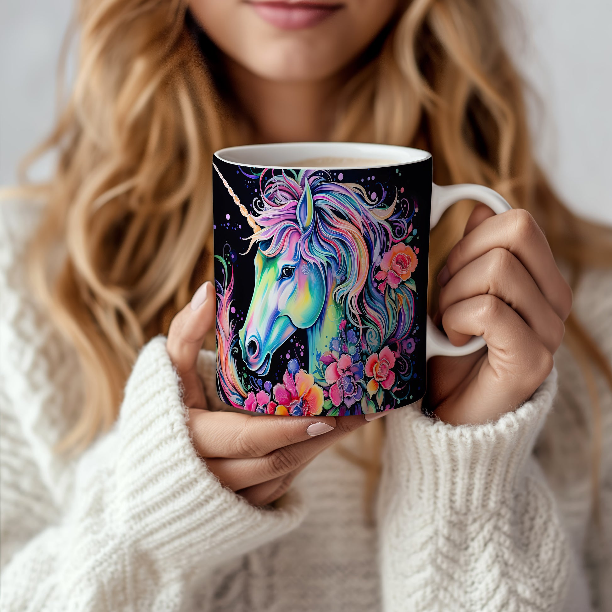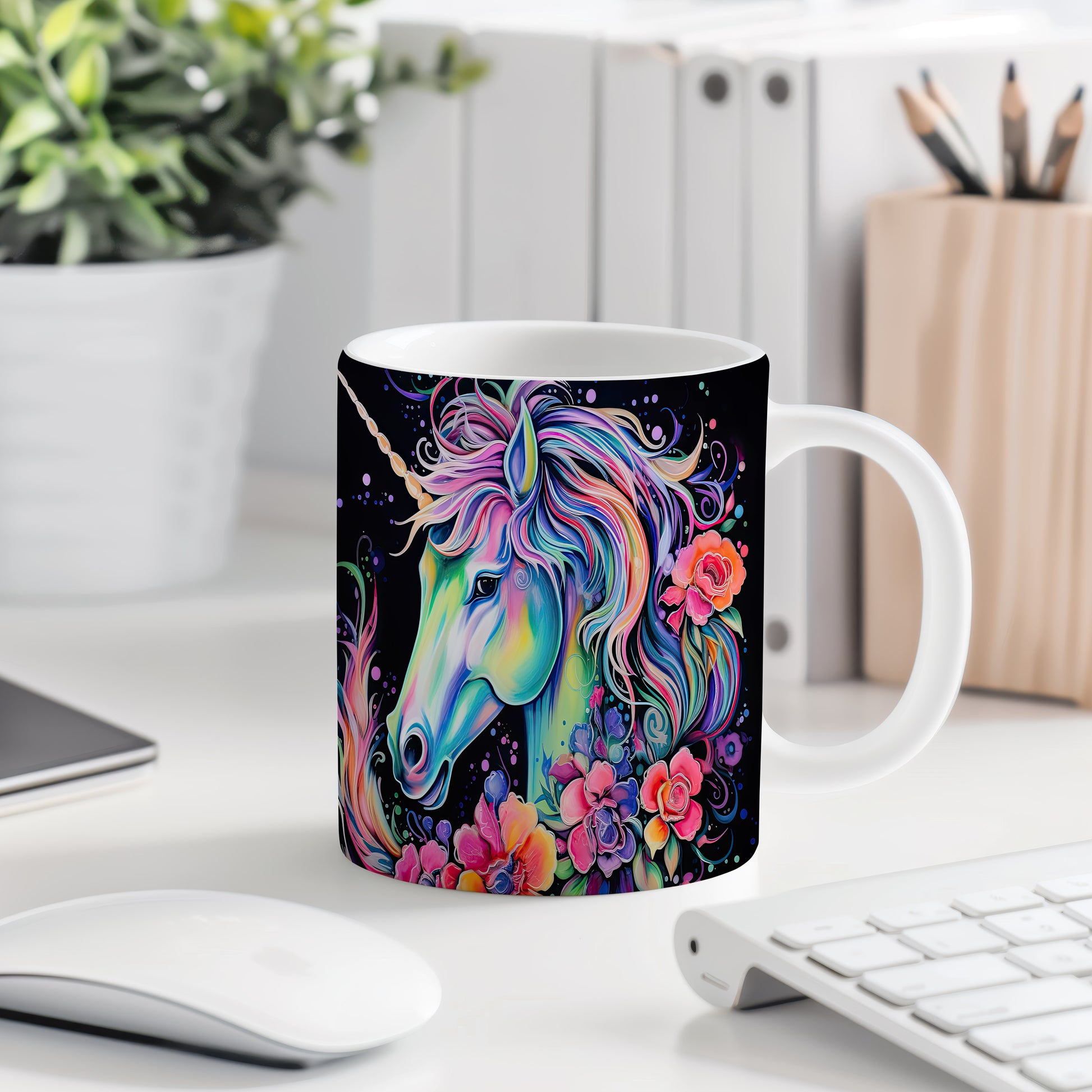 Tento hrnek zobrazuje barevného jednorožce v květinovém stylu. Je ideální pro milovníky pohádkových bytostí a skvělým dárkem pro děti i dospělé. Materiál: keramika. Objem: 330 ml. Vhodné do myčky i mikrovlnky. Užívejte si svůj oblíbený nápoj s tímto hrnkem, který přináší radost a kouzlo do každého dne.