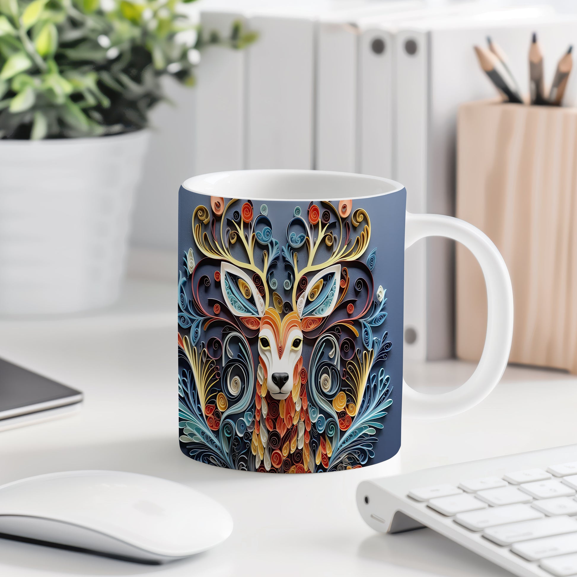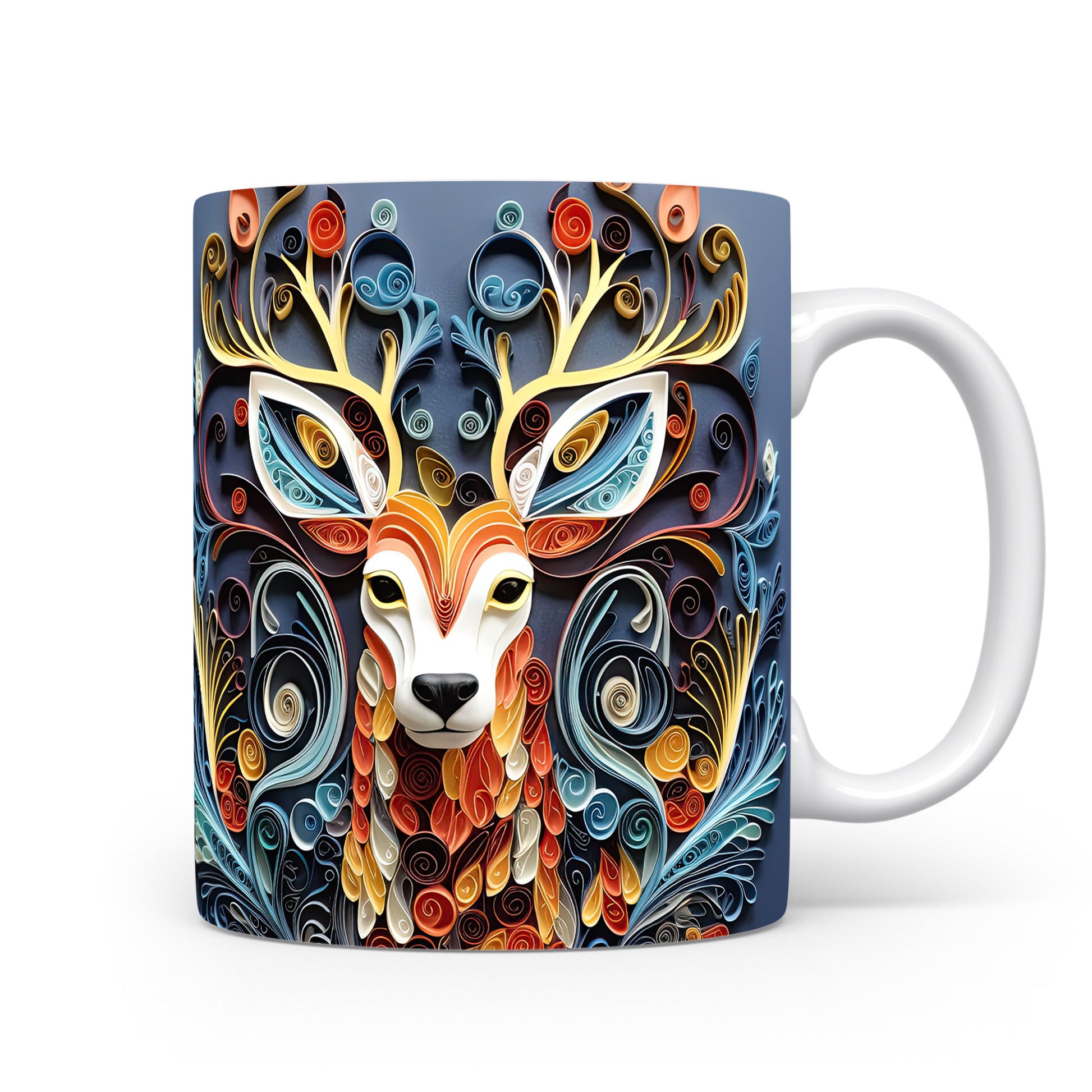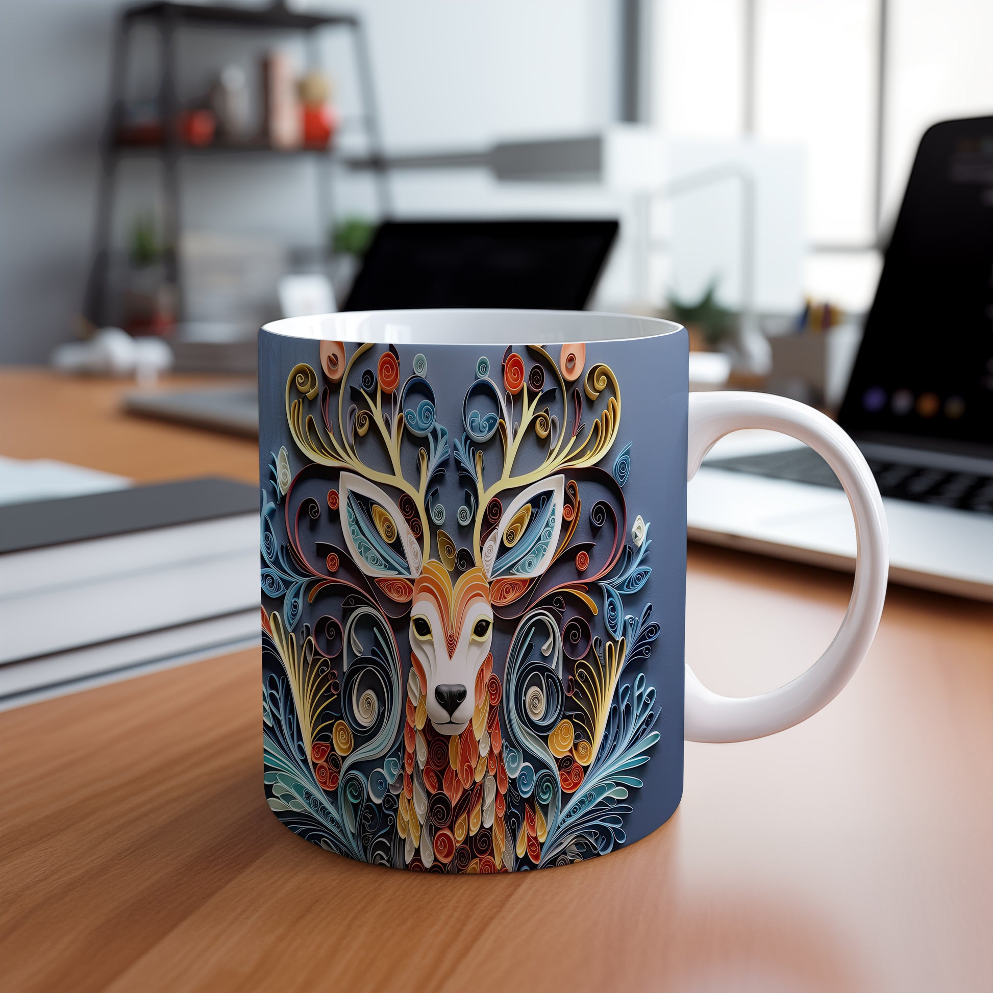 Hrnek s barevným jelenem v ornamentálním stylu je skvělým doplňkem pro milovníky přírody a originálního designu. Tento hrnek je ideální jako dárek pro přátele nebo rodinu, kteří ocení jedinečné kousky. Materiál: keramika. Objem: 330 ml. Vhodné do myčky i mikrovlnky. Díky svému stylovému vzhledu přináší do každodenního pití radost a pohodu.