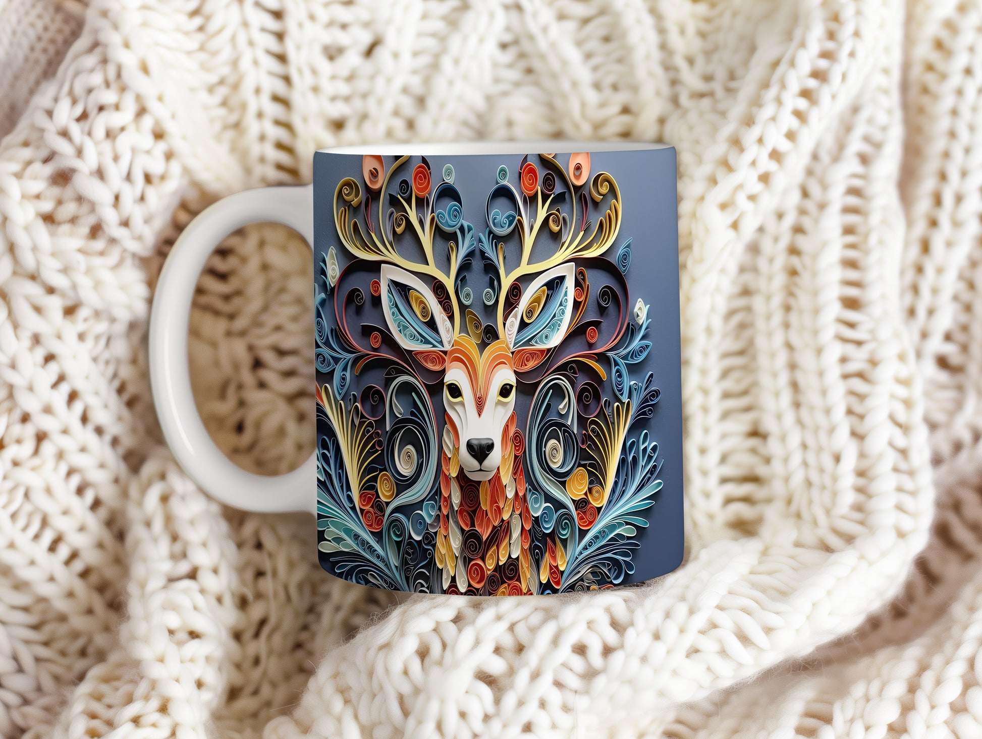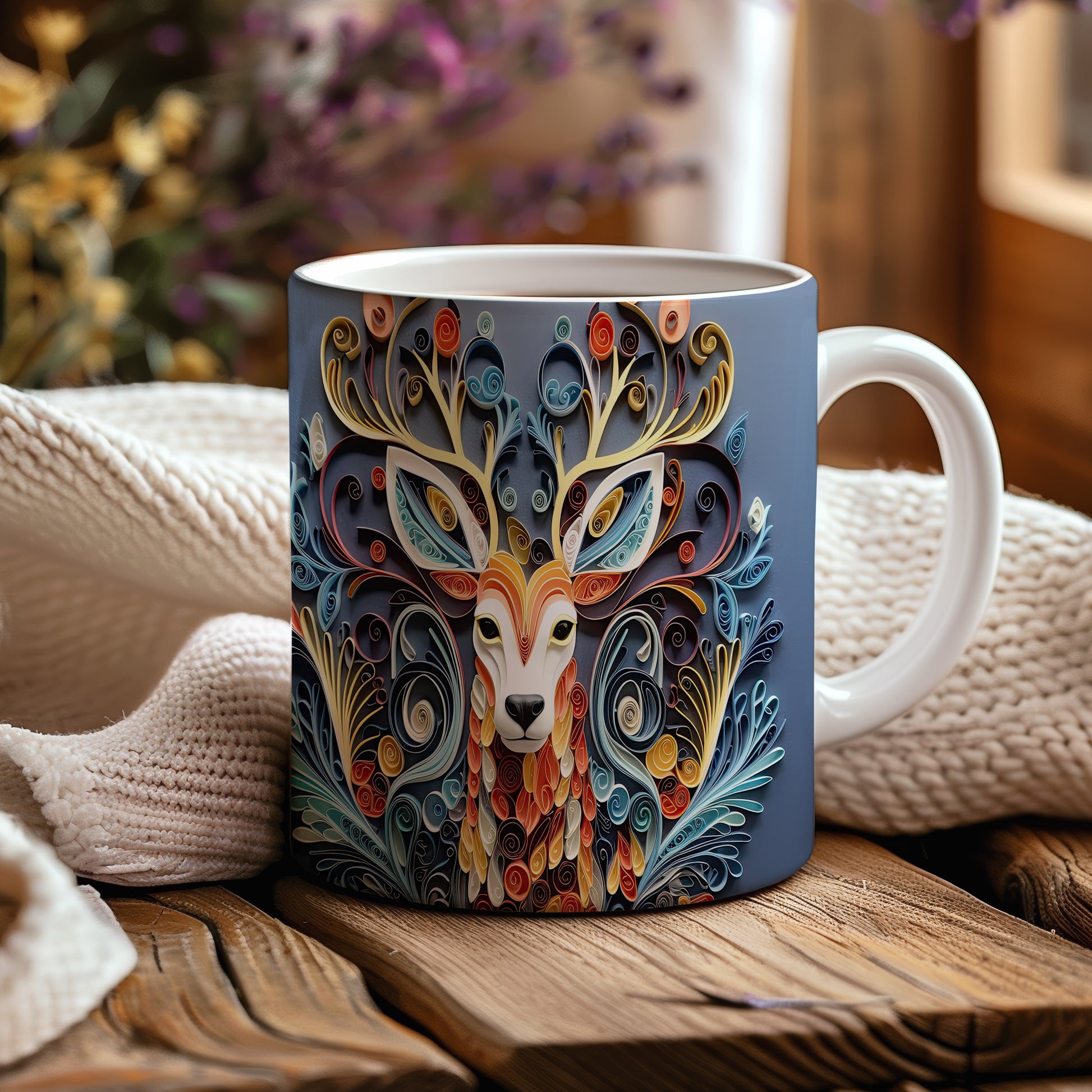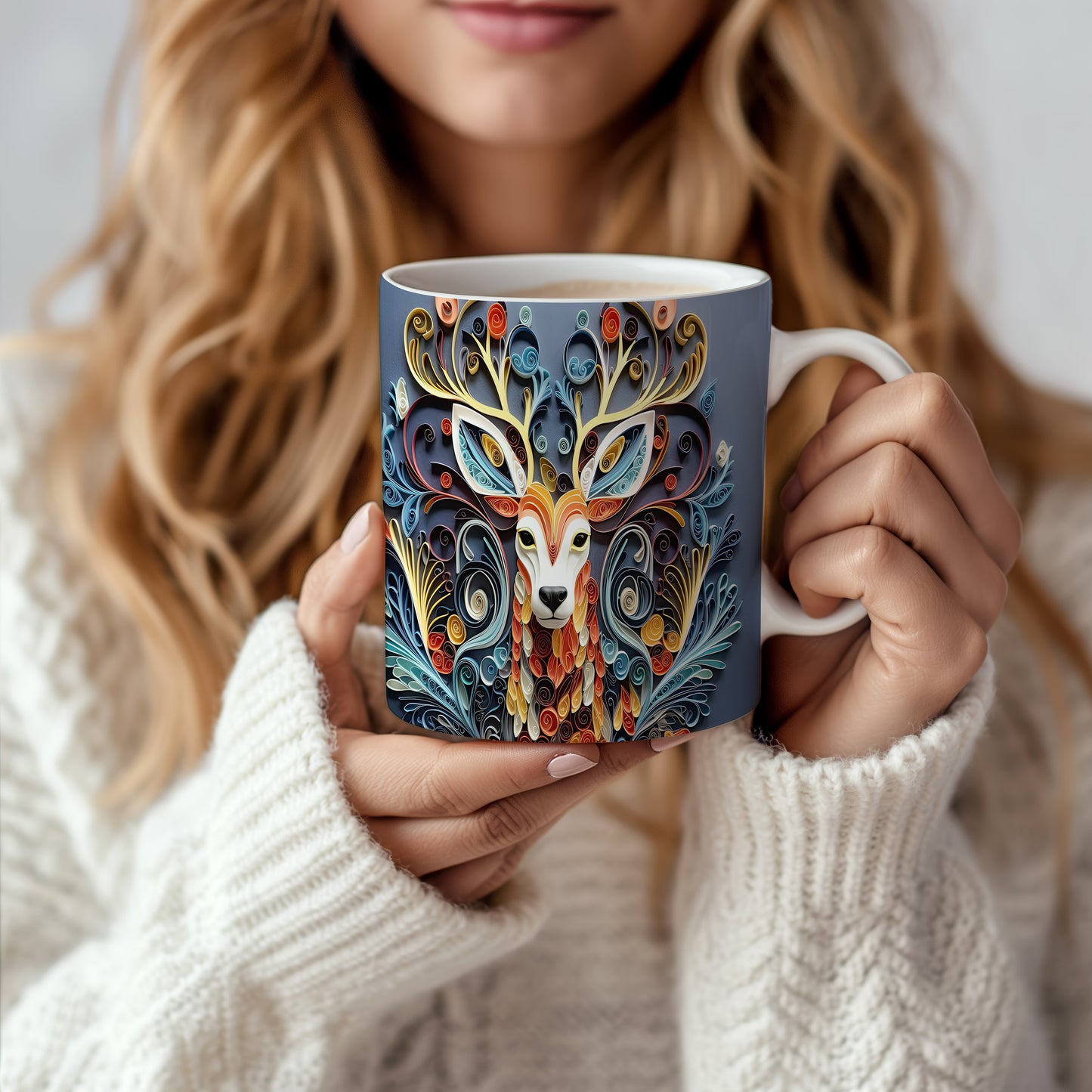 Hrnek s barevným jelenem v ornamentálním stylu je skvělým doplňkem pro milovníky přírody a originálního designu. Tento hrnek je ideální jako dárek pro přátele nebo rodinu, kteří ocení jedinečné kousky. Materiál: keramika. Objem: 330 ml. Vhodné do myčky i mikrovlnky. Díky svému stylovému vzhledu přináší do každodenního pití radost a pohodu.