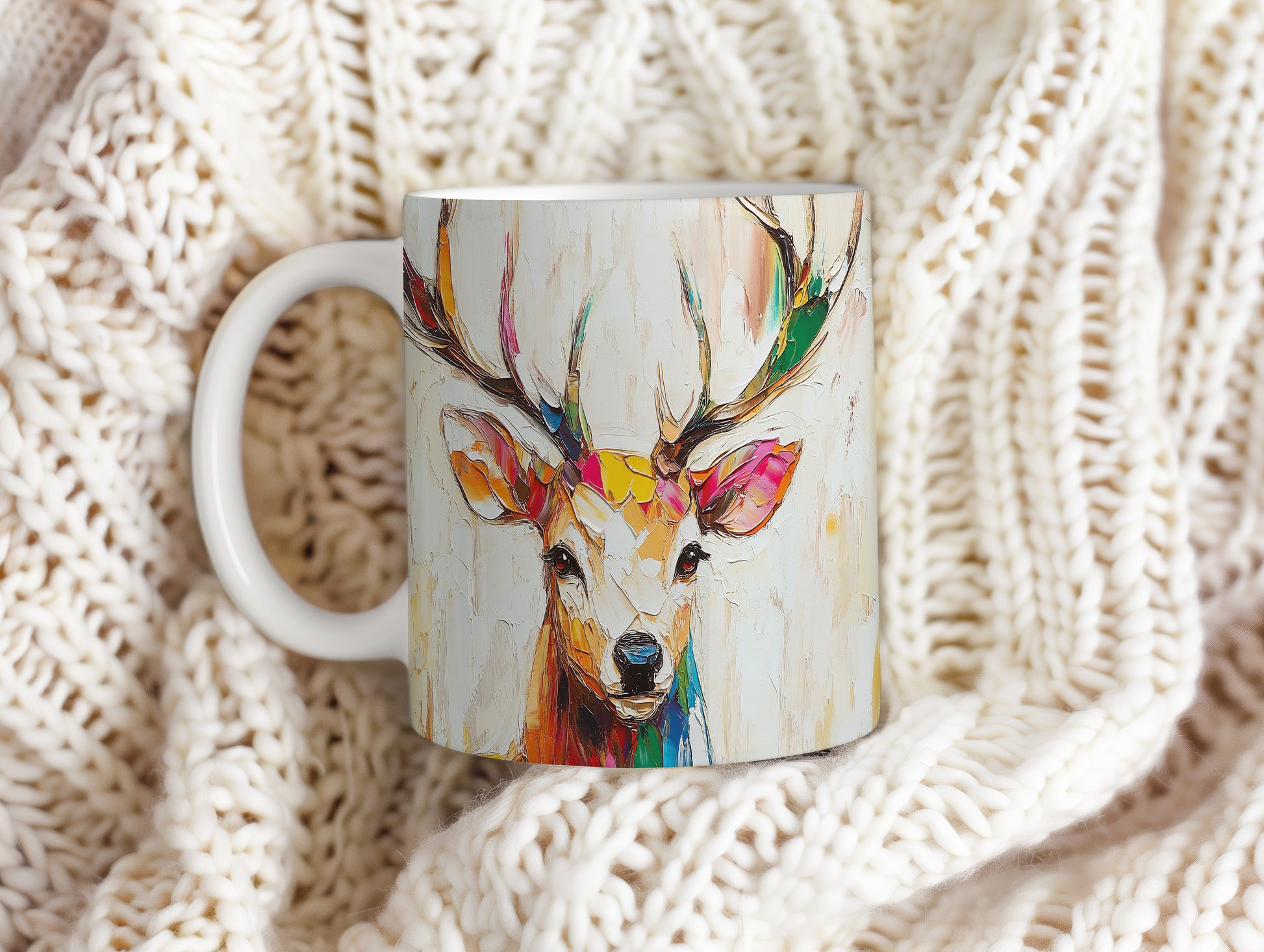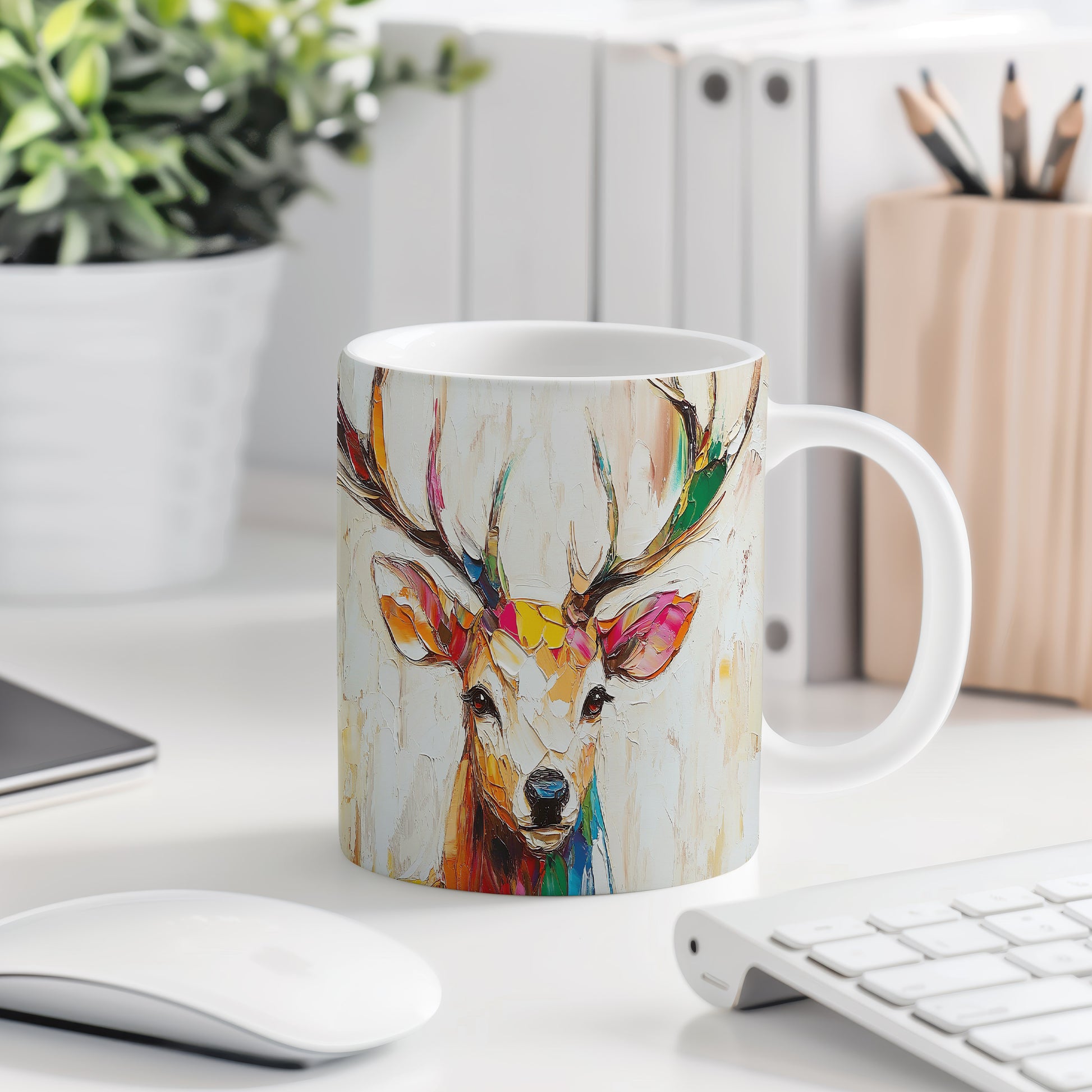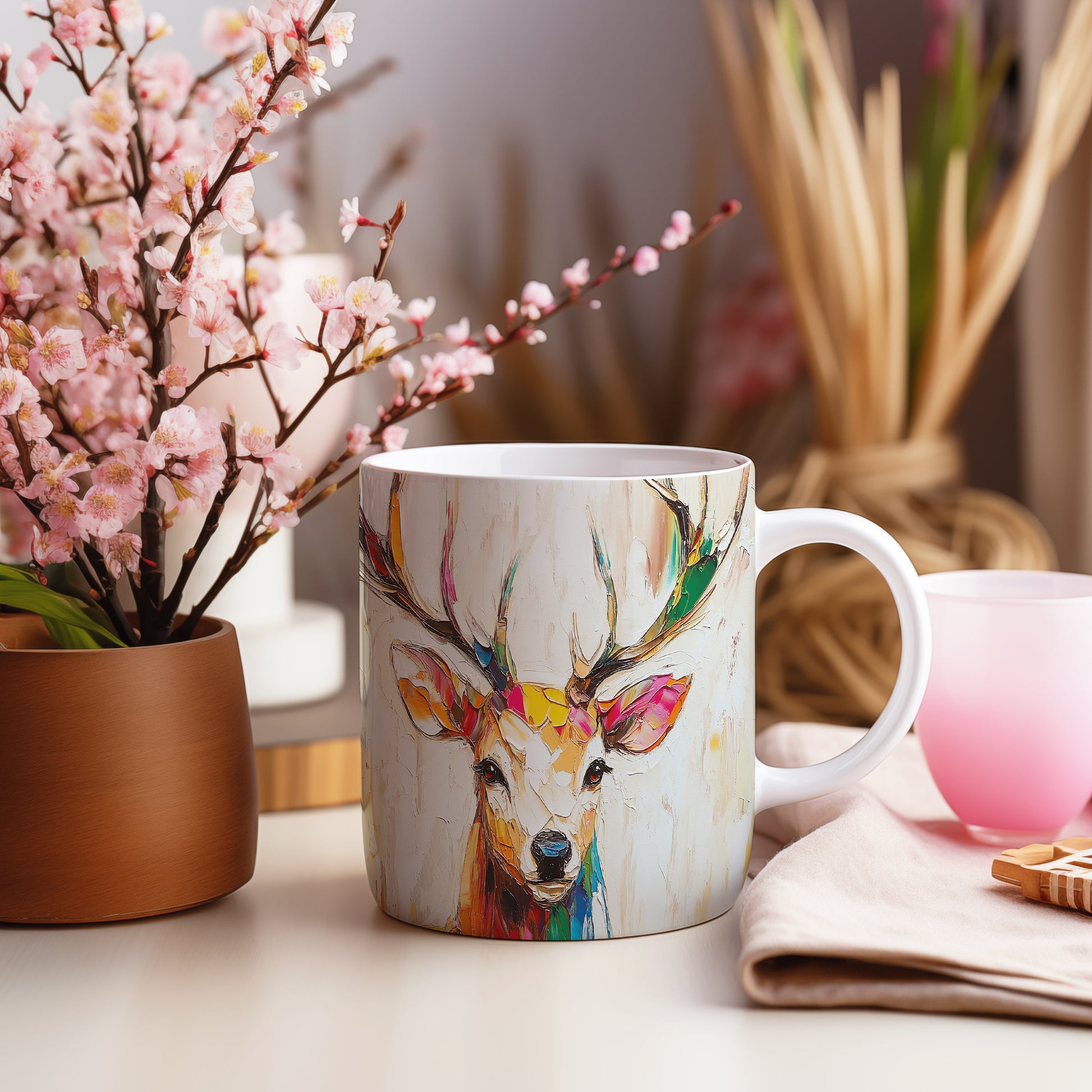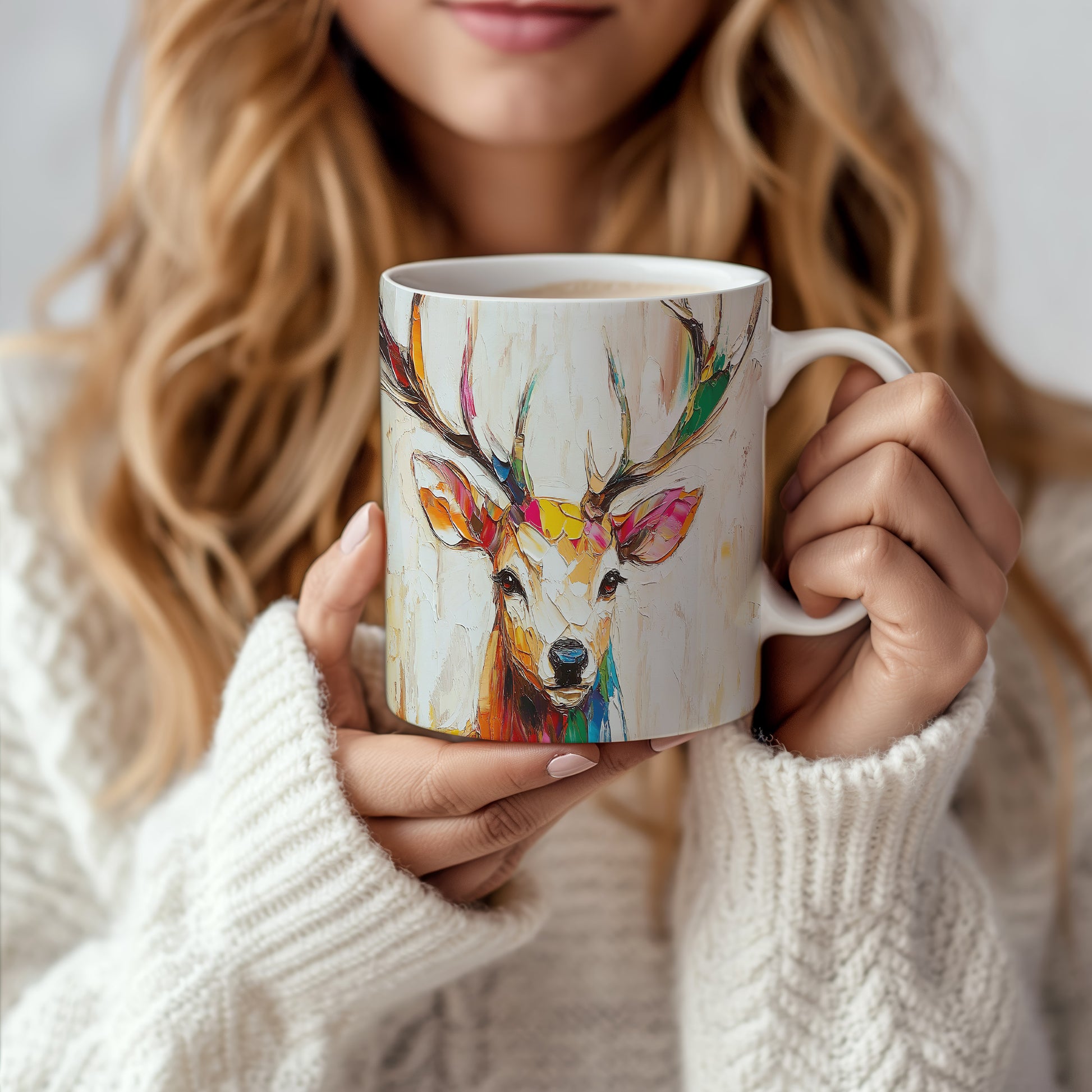 Tento krásný hrnek s motivem barevného jelena zaujme svým jasným designem. Je ideální pro milovníky přírody a umění, skvělý tip na dárek pro každého, kdo ocení originální kousky. Materiál: keramika. Objem: 330 ml. Vhodné do myčky i mikrovlnky. Používáním tohoto hrnku si užijete nejen skvělý vzhled, ale i pohodlné pití vašich oblíbených nápojů.