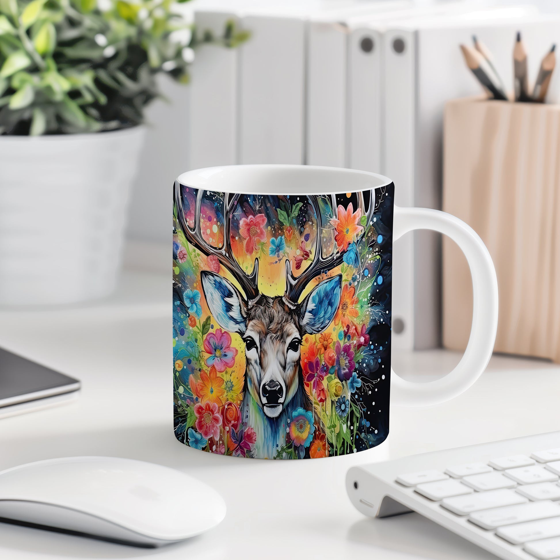 Tento hrnek s motivem jelena a květin přináší do každého dne kousek přírody. Je ideální pro milovníky přírody a skvělým dárkem pro přátele či rodinu. Materiál: keramika. Objem: 330 ml. Vhodné do myčky i mikrovlnky. Díky svému designu dodá každému šálku kávy nebo čaje jedinečný nádech.