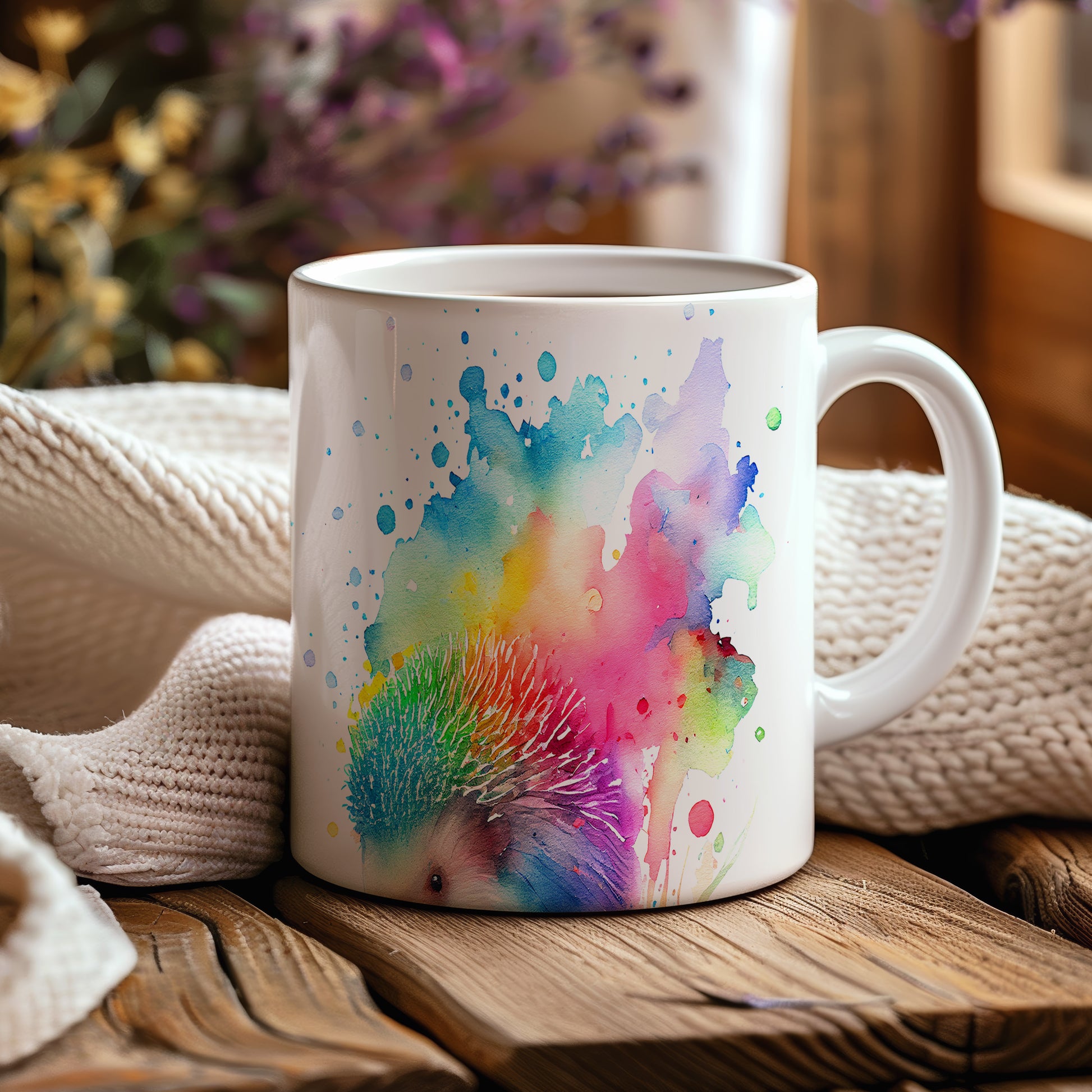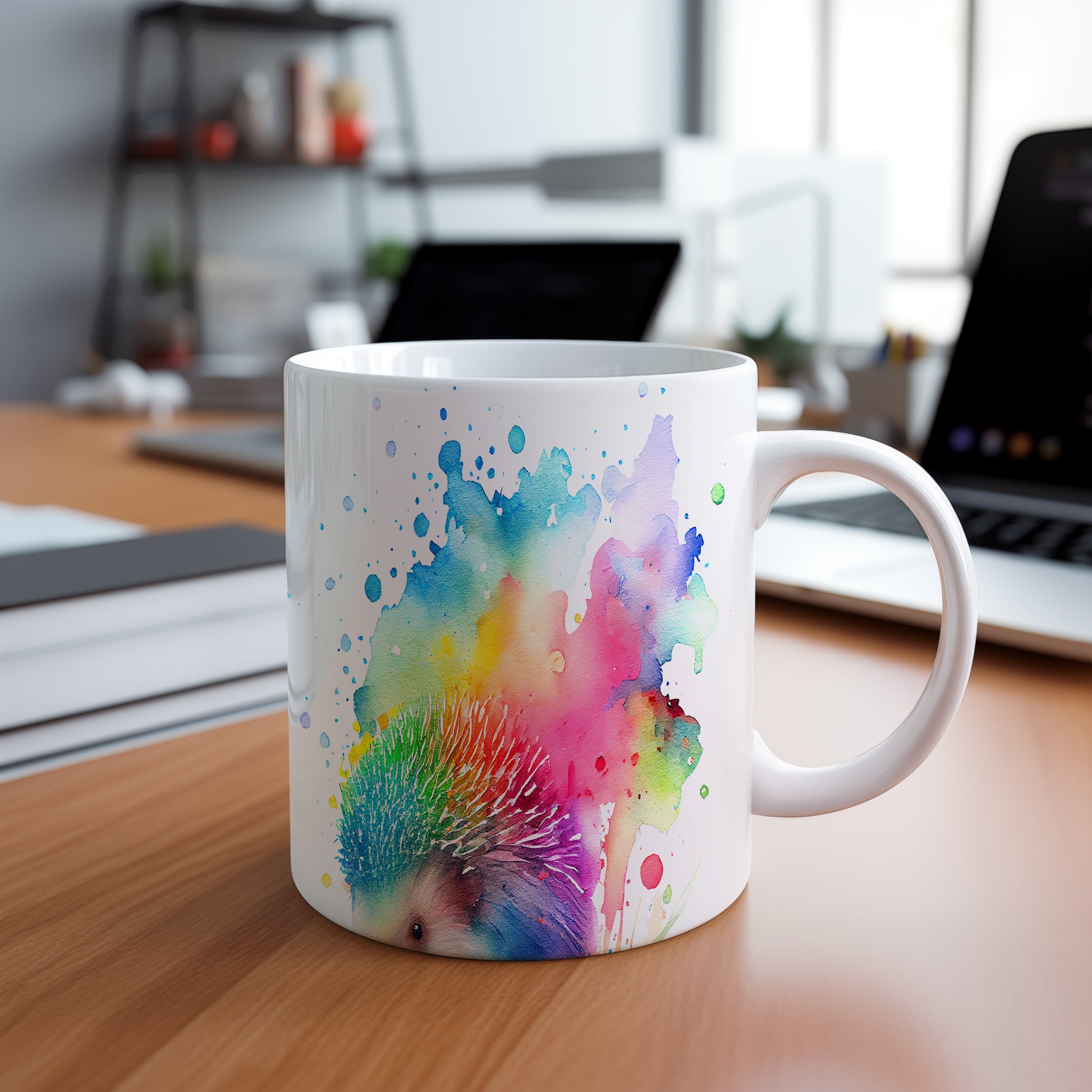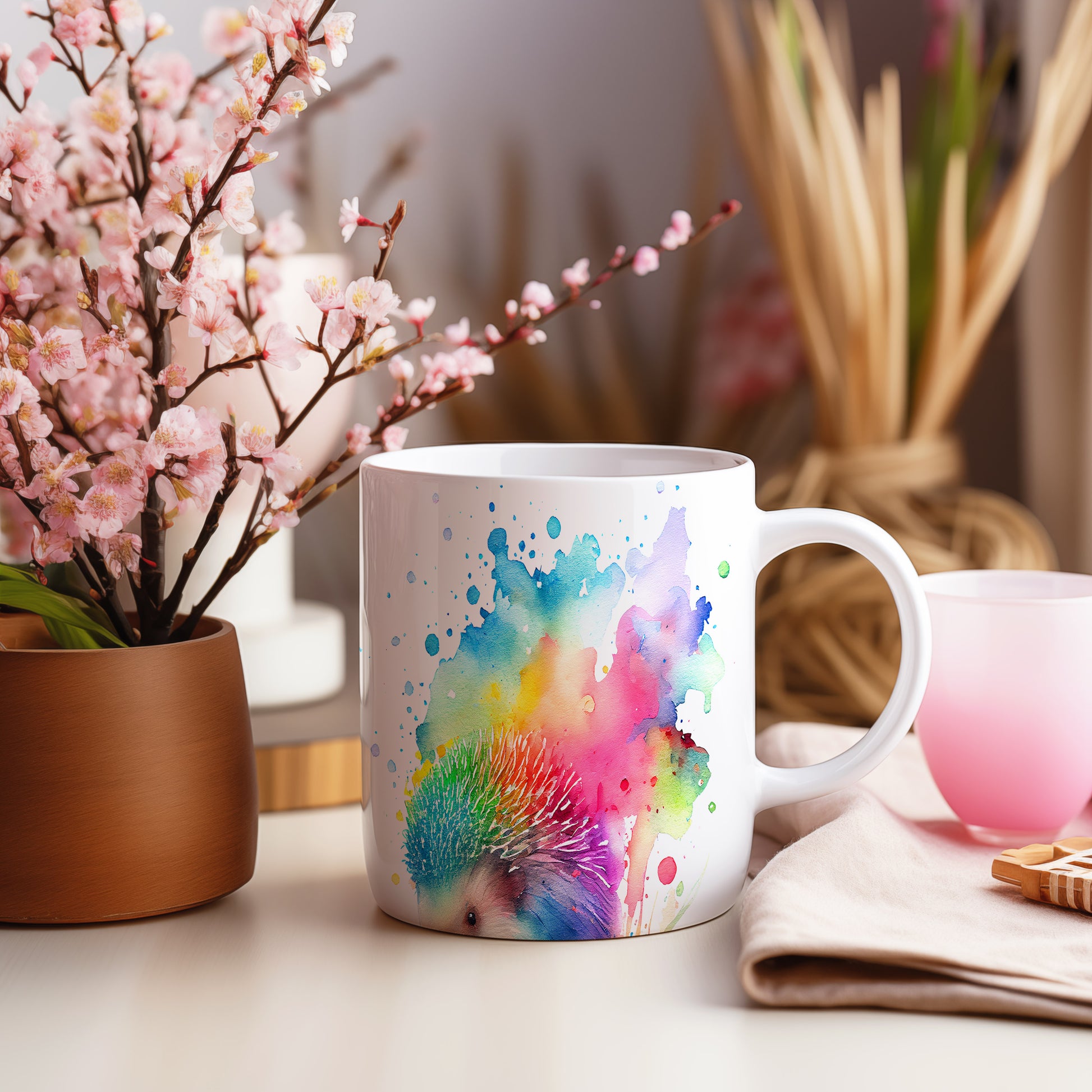 Tento akvarelový hrnek s motivem ježka na barevném pozadí je ideální pro milovníky přírody a zvířat. Skvělý tip na dárek pro děti i dospělé, kteří ocení originální design. Materiál: keramika. Objem: 330 ml. Vhodné do myčky i mikrovlnky. Díky svému stylovému vzhledu přinese do každodenního pití radost a barevnost.