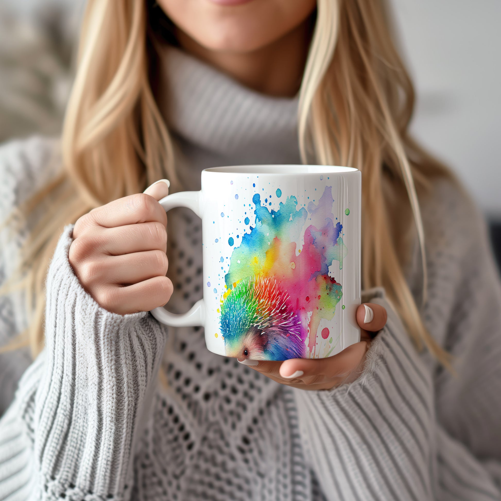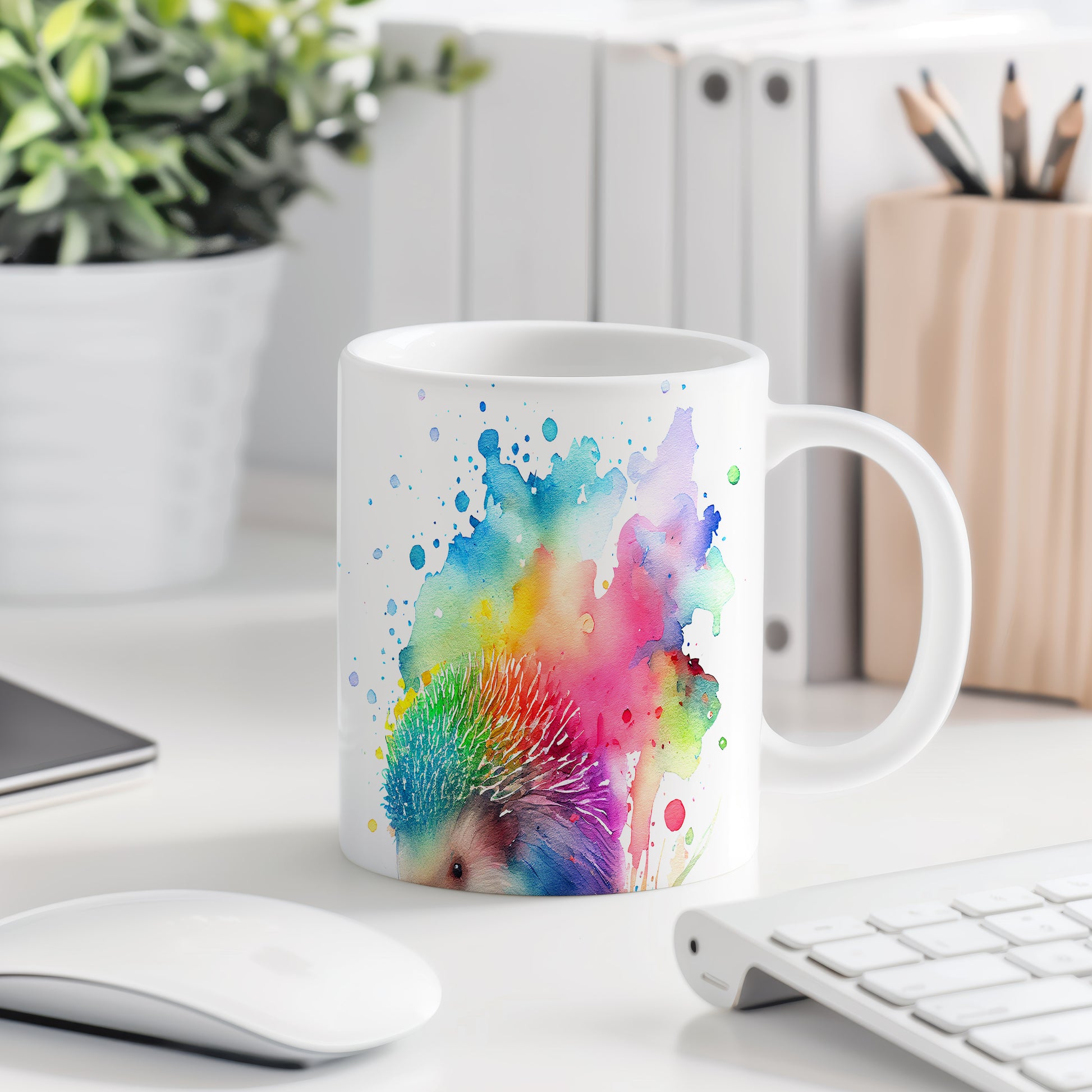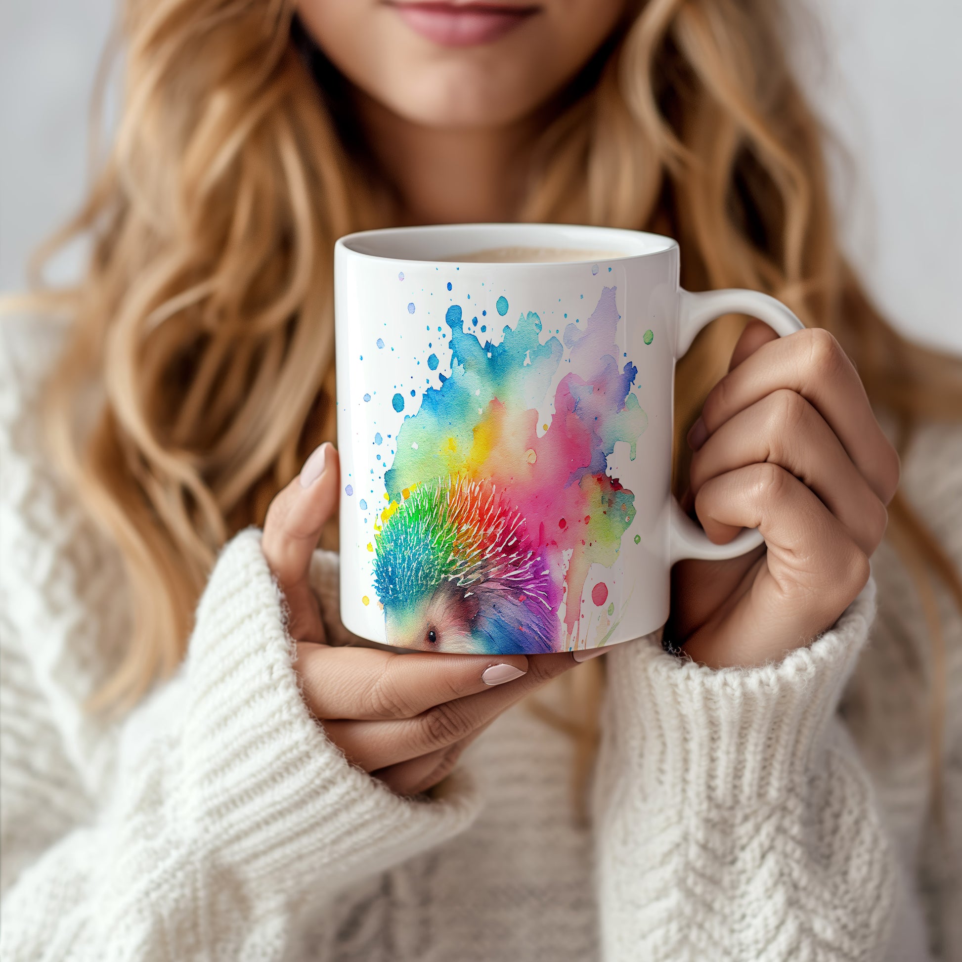 Tento akvarelový hrnek s motivem ježka na barevném pozadí je ideální pro milovníky přírody a zvířat. Skvělý tip na dárek pro děti i dospělé, kteří ocení originální design. Materiál: keramika. Objem: 330 ml. Vhodné do myčky i mikrovlnky. Díky svému stylovému vzhledu přinese do každodenního pití radost a barevnost.