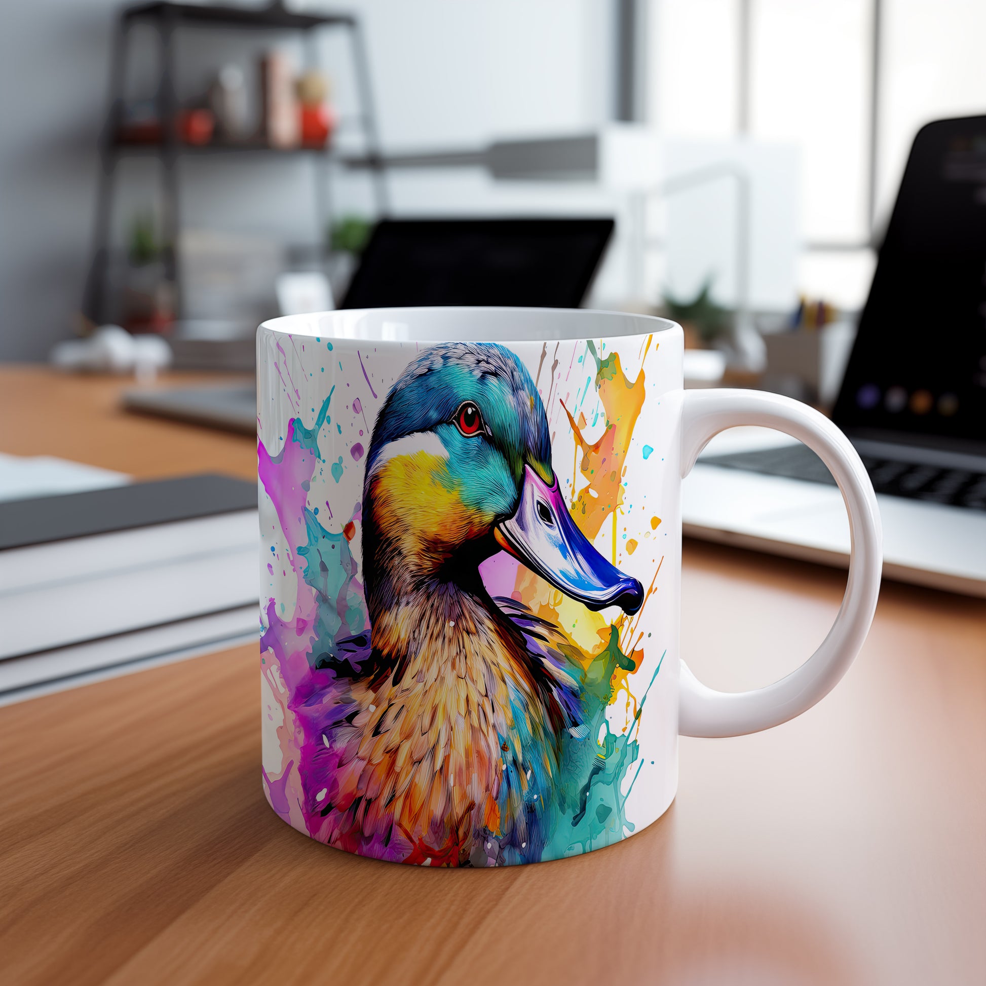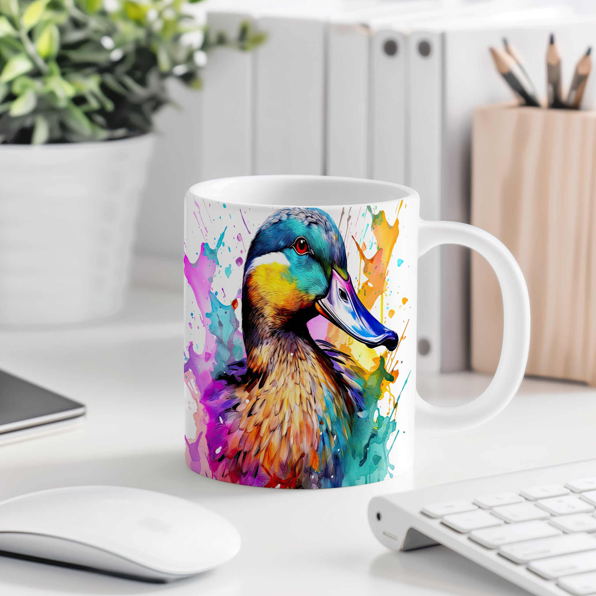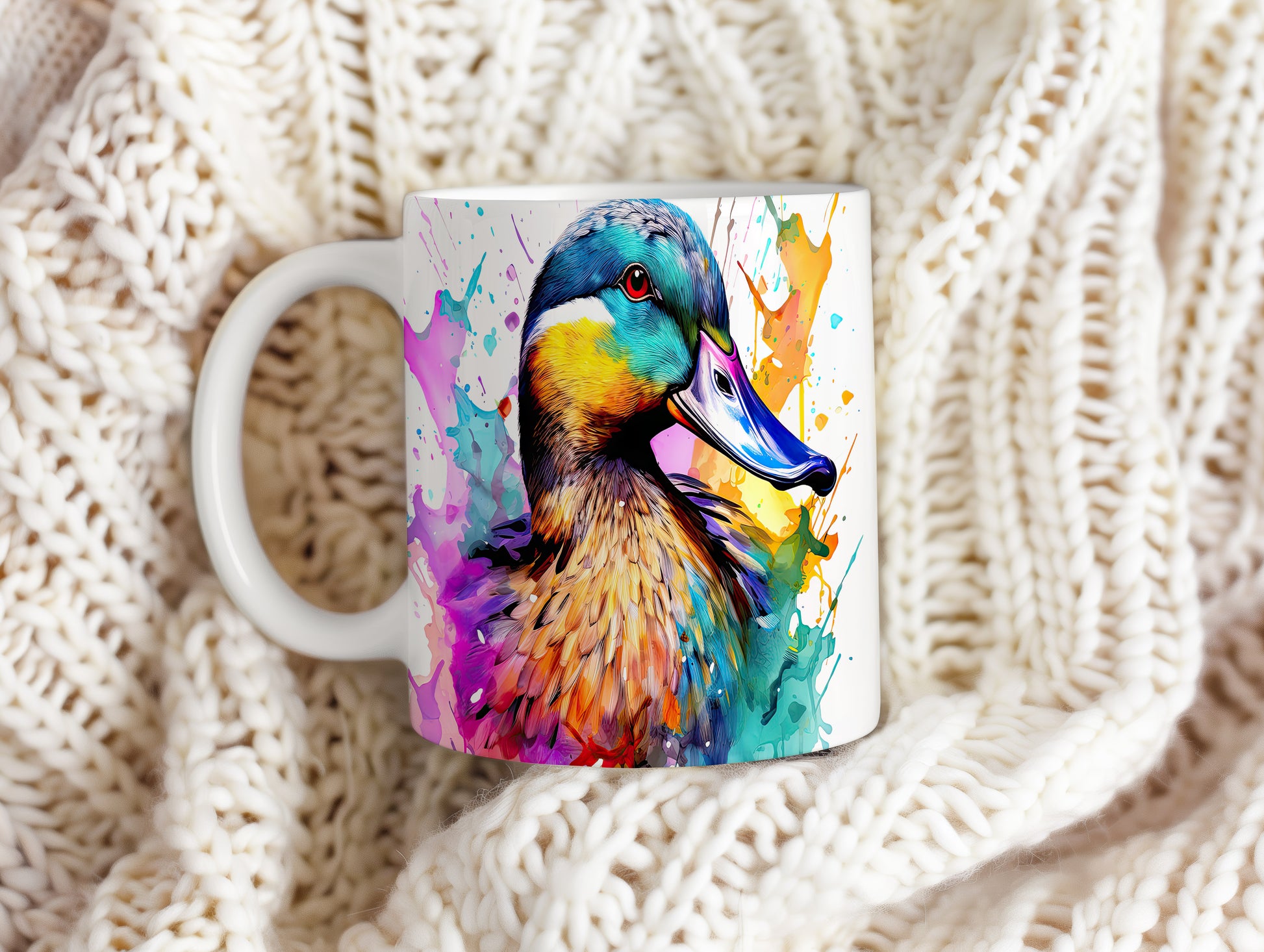 Tento keramický hrnek zobrazuje barevného kačera v živém stylu. Je ideální pro milovníky originálních designů a skvělým dárkem pro přátele nebo rodinu. Materiál: keramika. Objem: 330 ml. Vhodné do myčky i mikrovlnky. Používání tohoto hrnku přináší radost z každého doušku kávy nebo čaje.
