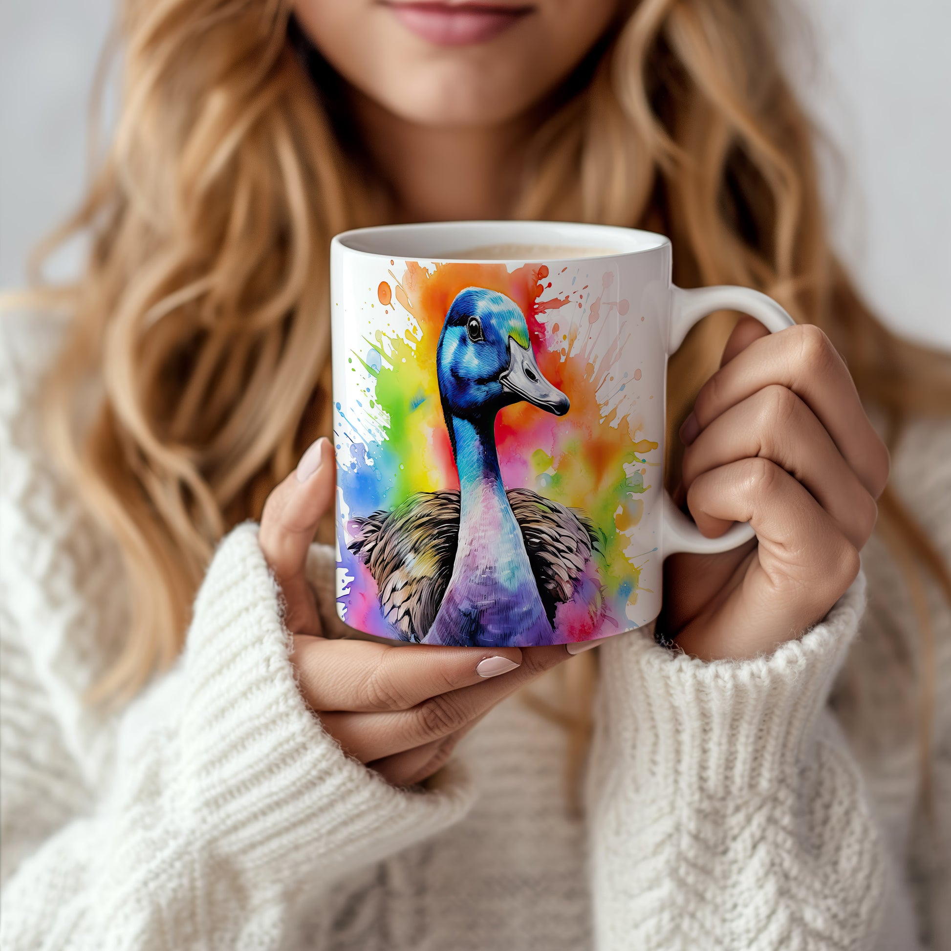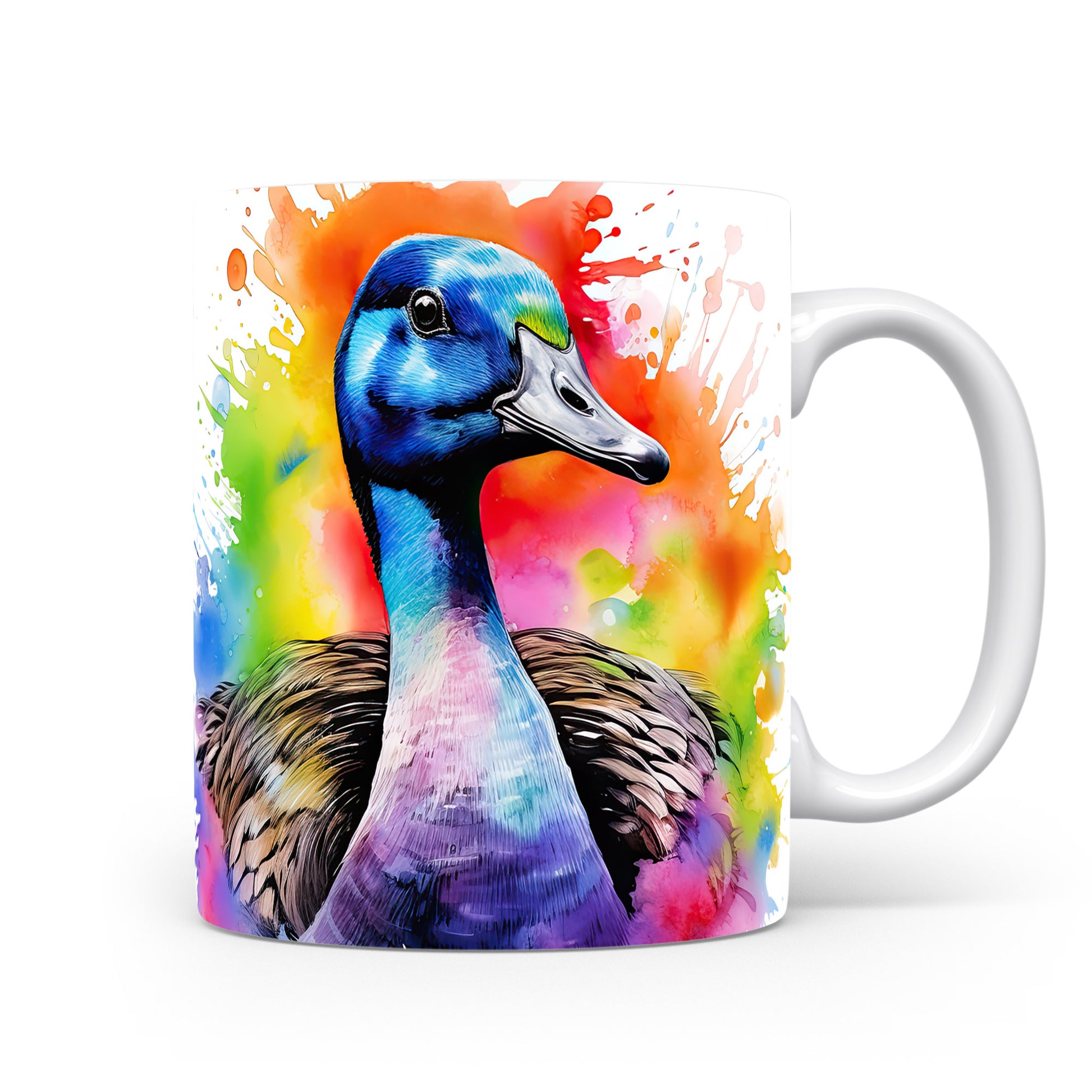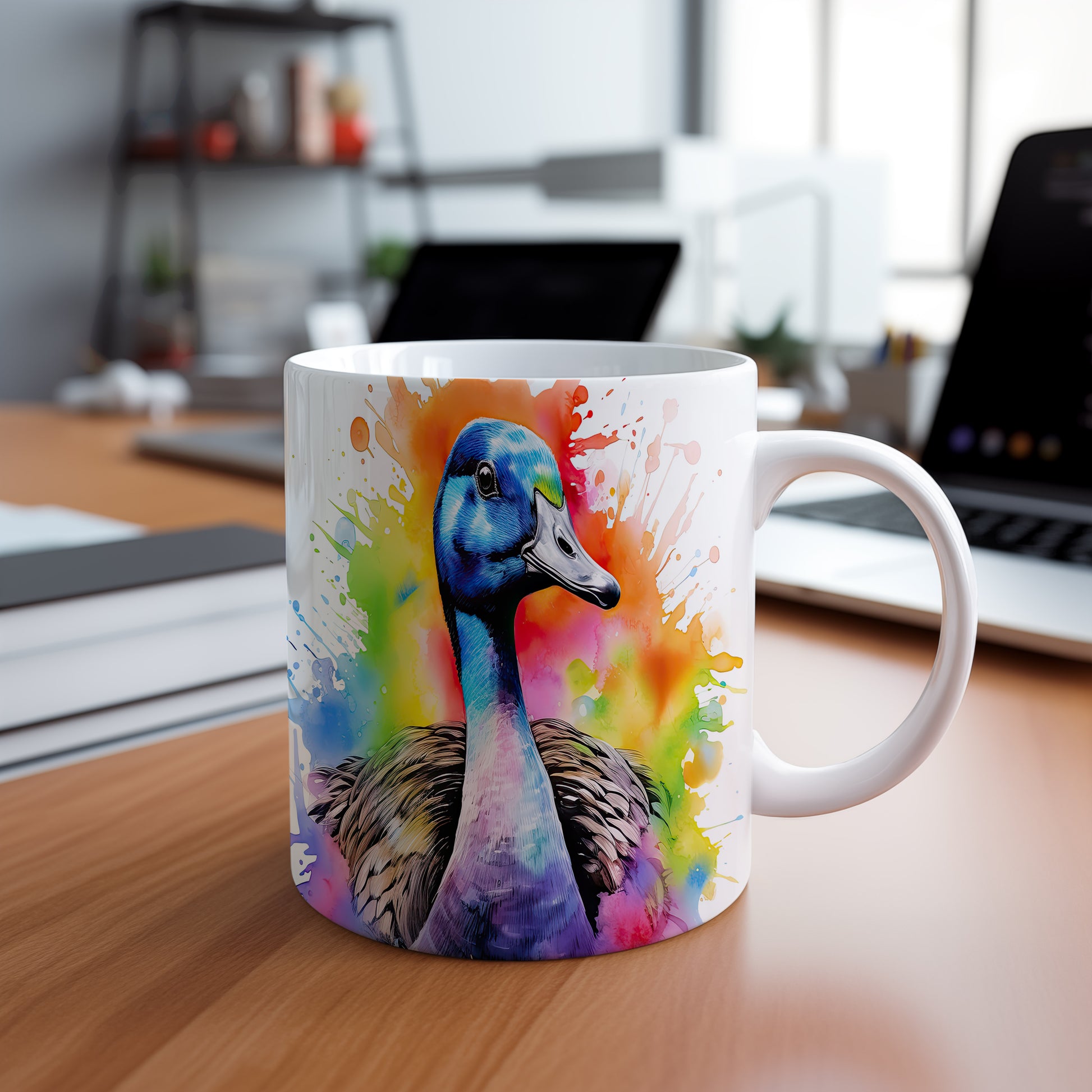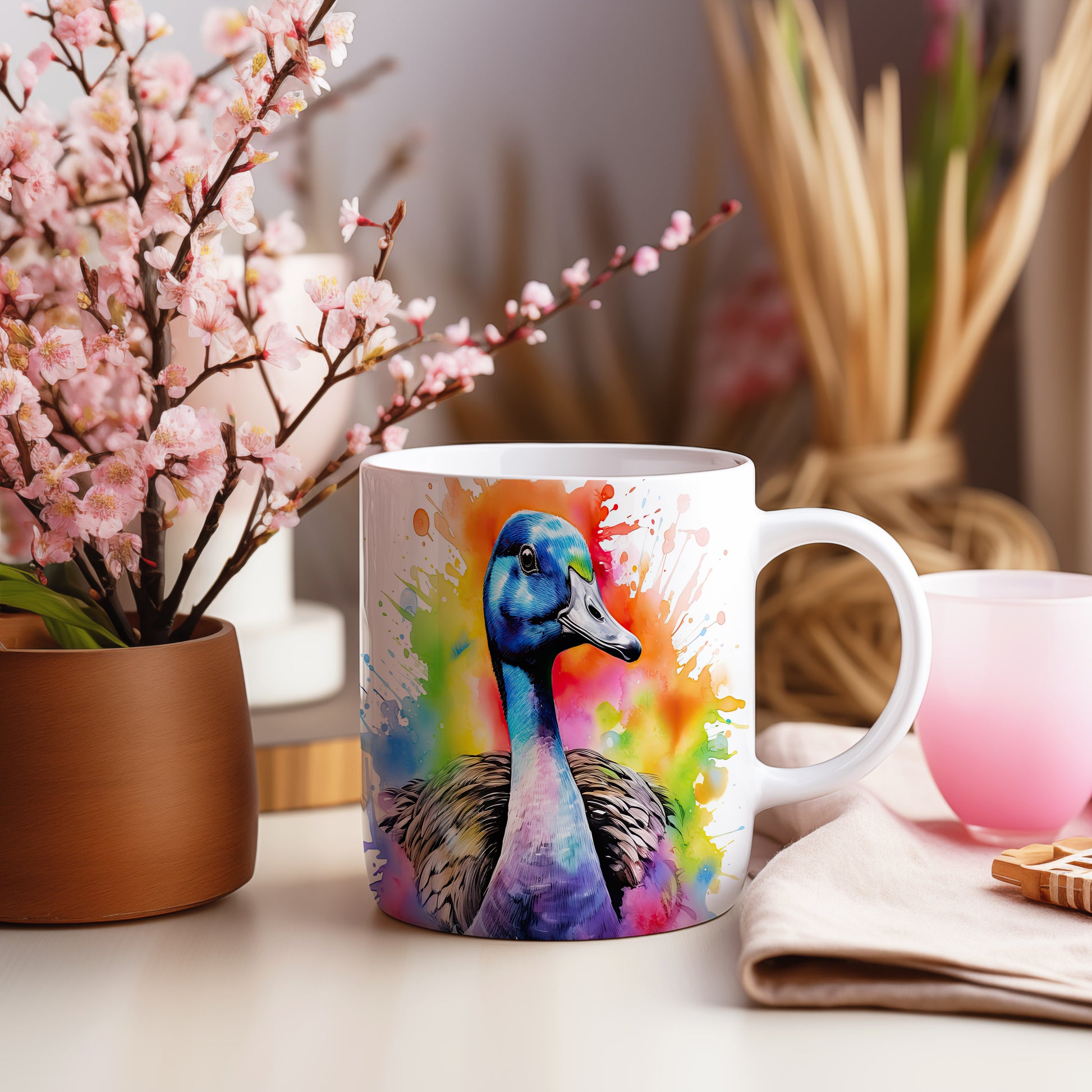Hrnek s ilustrací kachny na barevném pozadí je stylovým kouskem pro každého milovníka přírody. Tento hrnek je ideální jako dárek pro přátele nebo rodinu, kteří ocení originální design. Materiál: keramika. Objem: 330 ml. Vhodné do myčky i mikrovlnky. Užijte si každé sousto s tímto veselým hrnkem, který dodá vašemu pití šmrnc.
