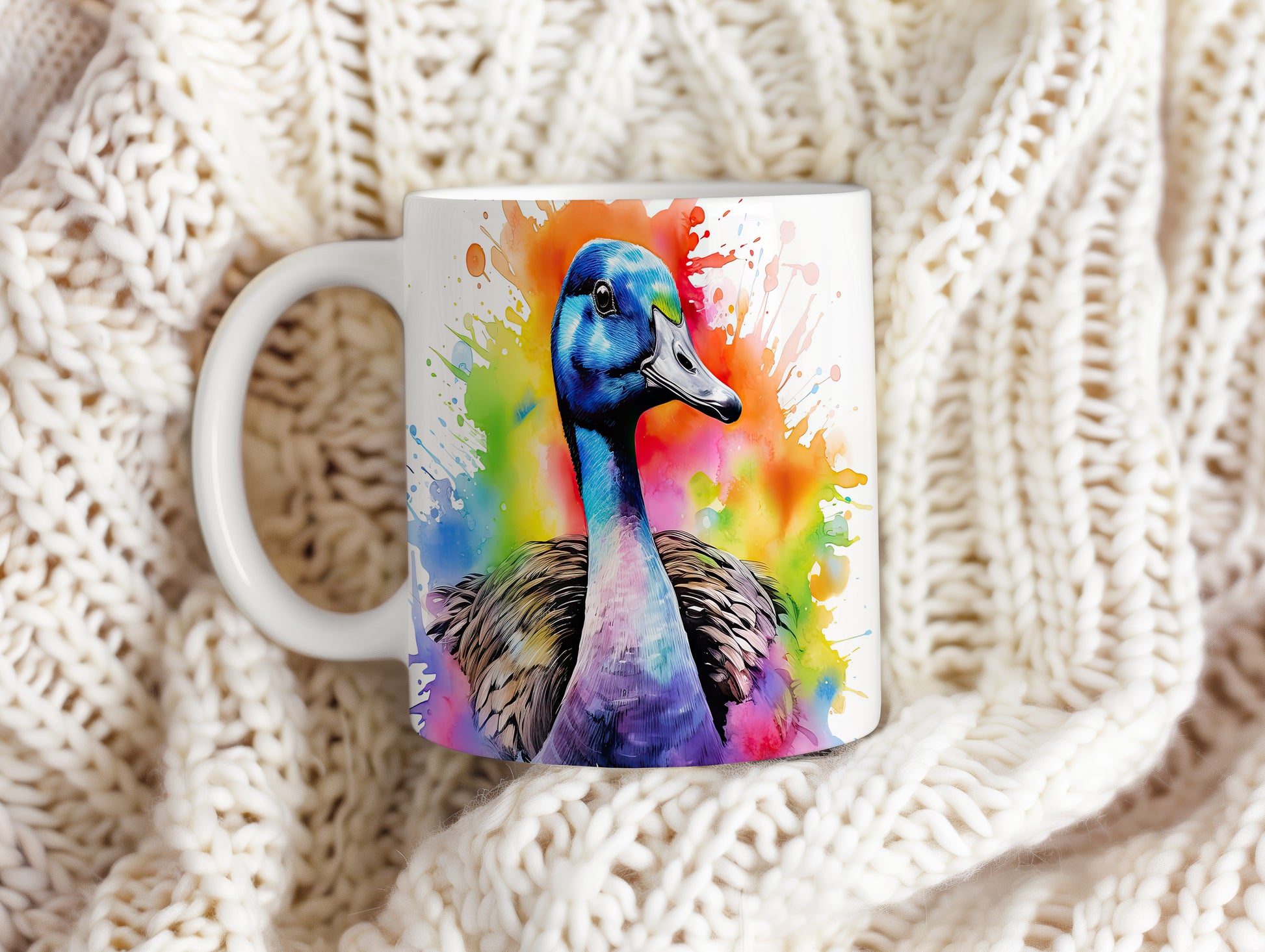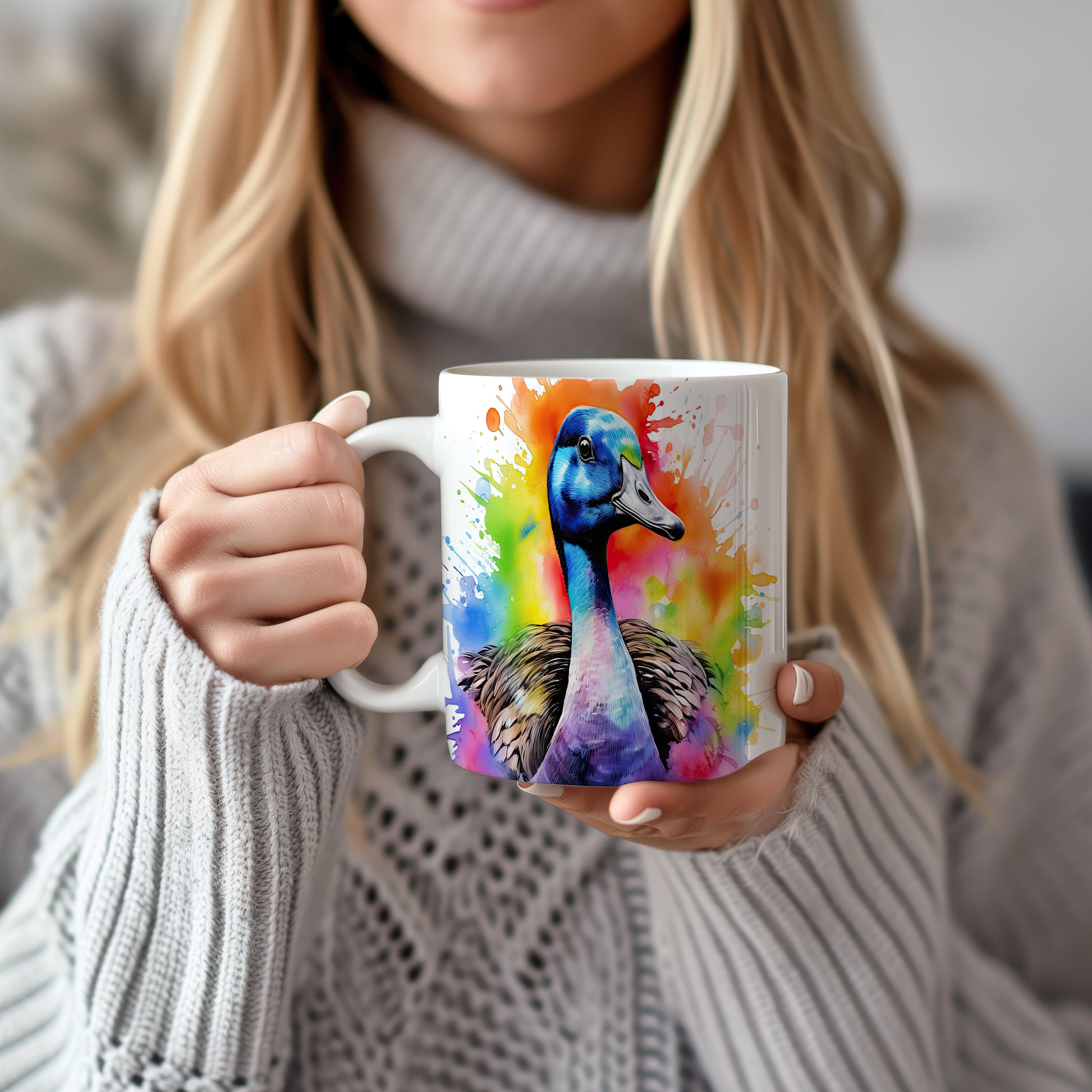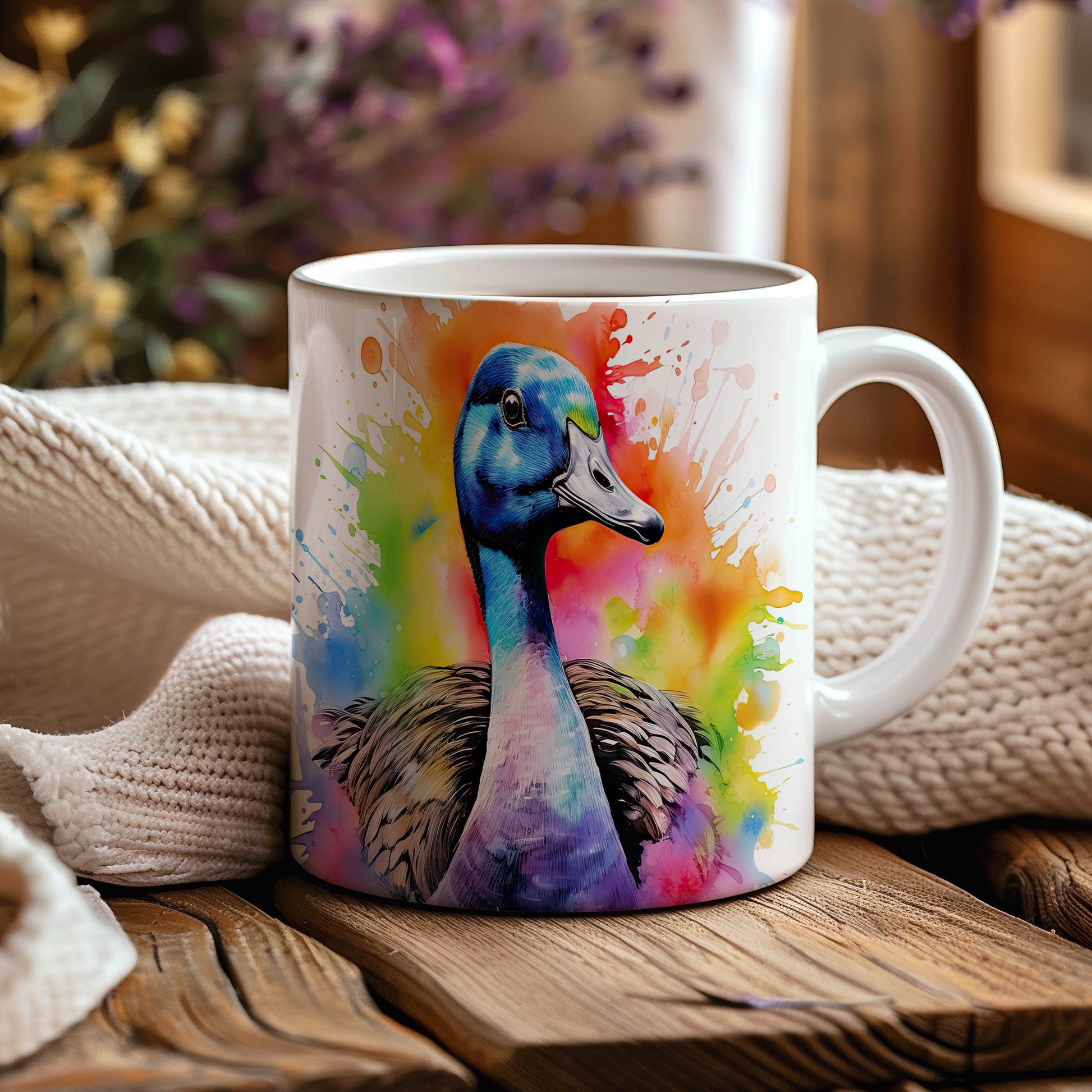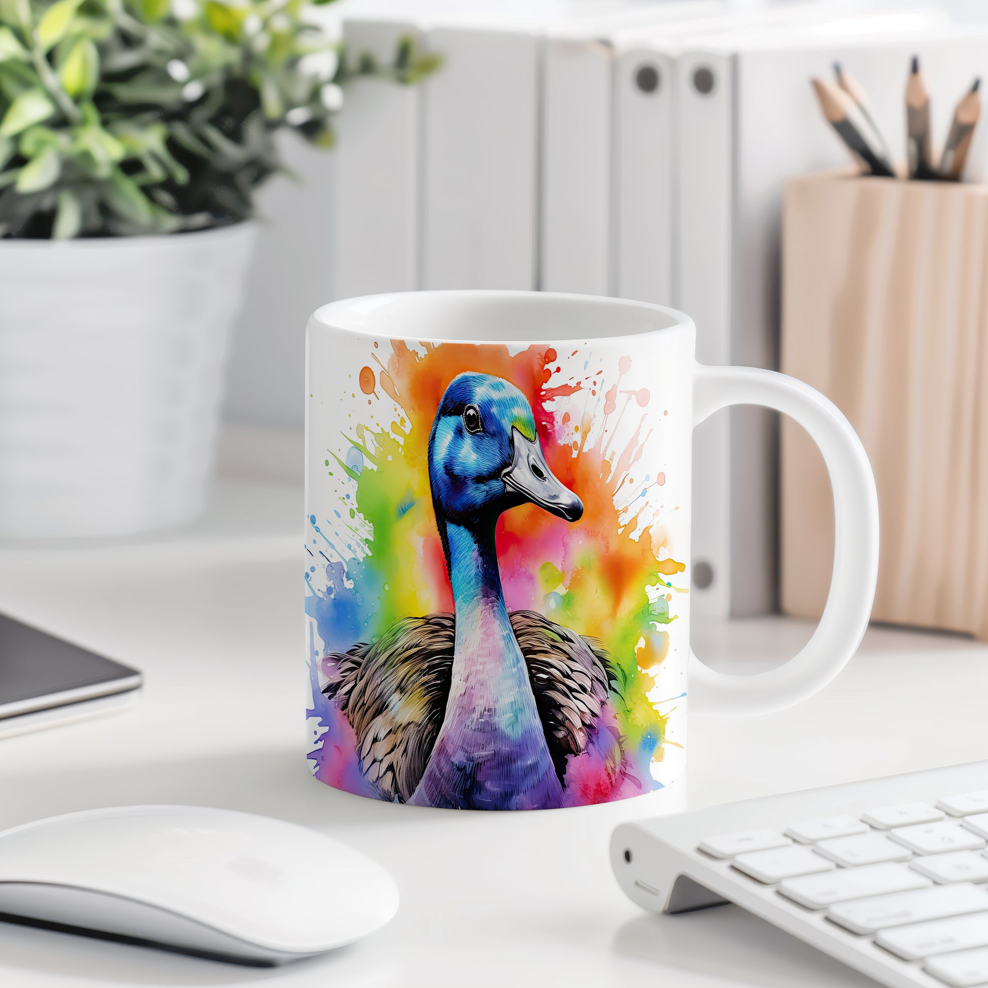Hrnek s ilustrací kachny na barevném pozadí je stylovým kouskem pro každého milovníka přírody. Tento hrnek je ideální jako dárek pro přátele nebo rodinu, kteří ocení originální design. Materiál: keramika. Objem: 330 ml. Vhodné do myčky i mikrovlnky. Užijte si každé sousto s tímto veselým hrnkem, který dodá vašemu pití šmrnc.