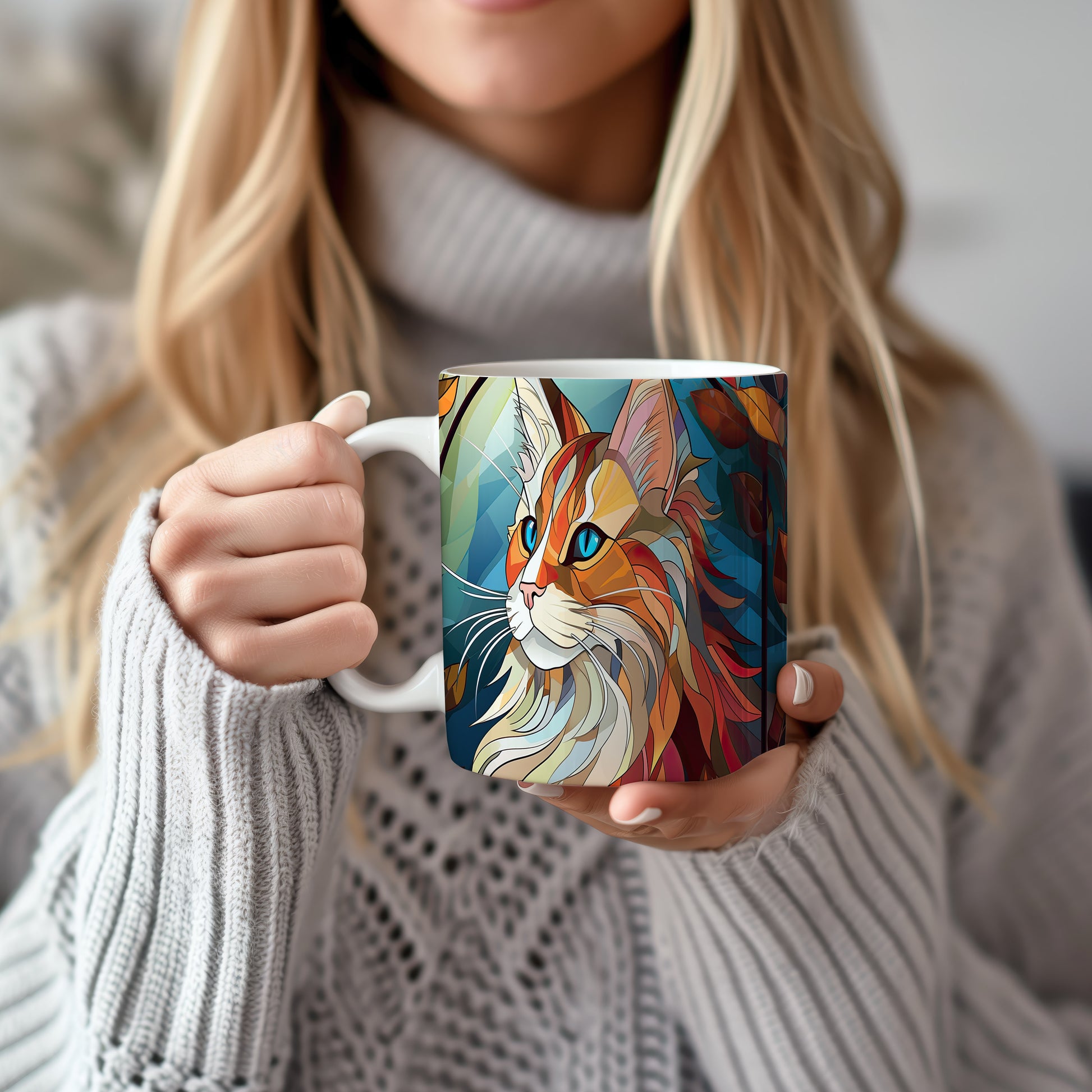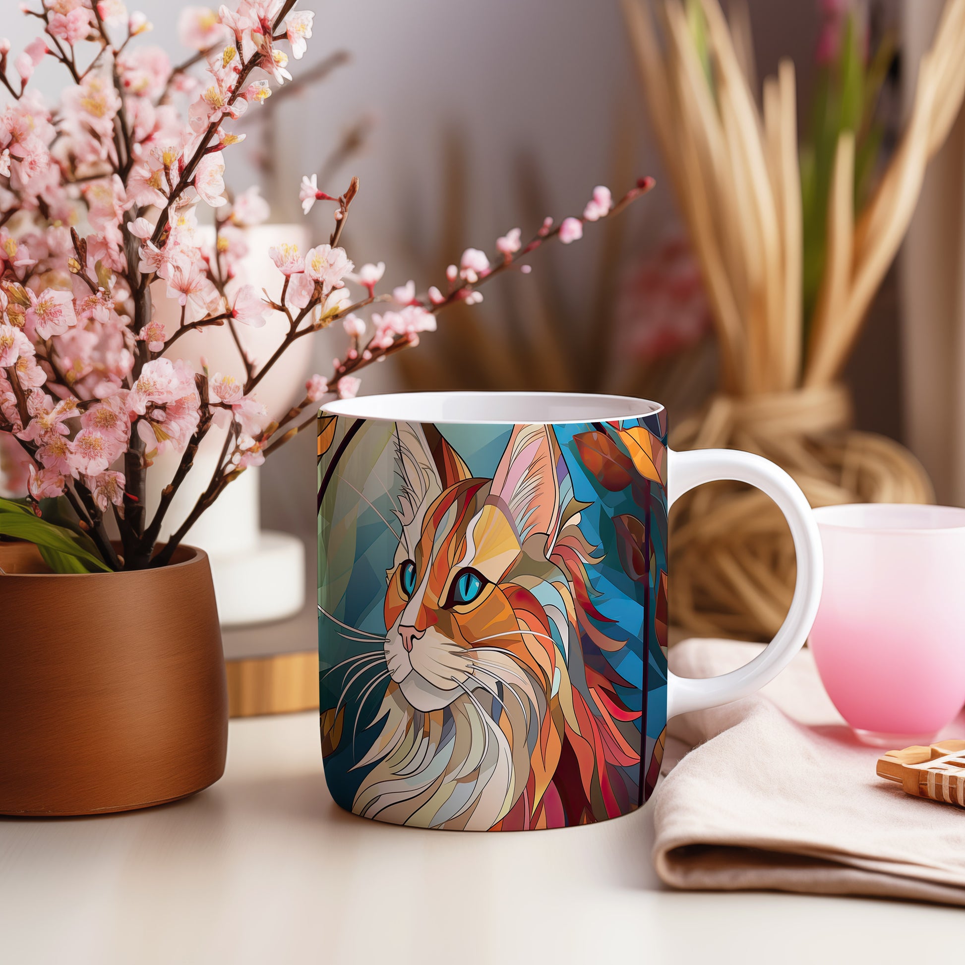 Hrnek s barevným kočkem v moderním stylu je skvělým doplňkem pro milovníky koček. Tento hrnek potěší každého, kdo ocení originální design, a je ideálním dárkem pro přátele nebo rodinu. Materiál: keramika. Objem: 330 ml. Vhodné do myčky i mikrovlnky. Užívejte si svůj oblíbený nápoj s tímto stylovým hrnkem, který dodá každému dni šmrnc.
