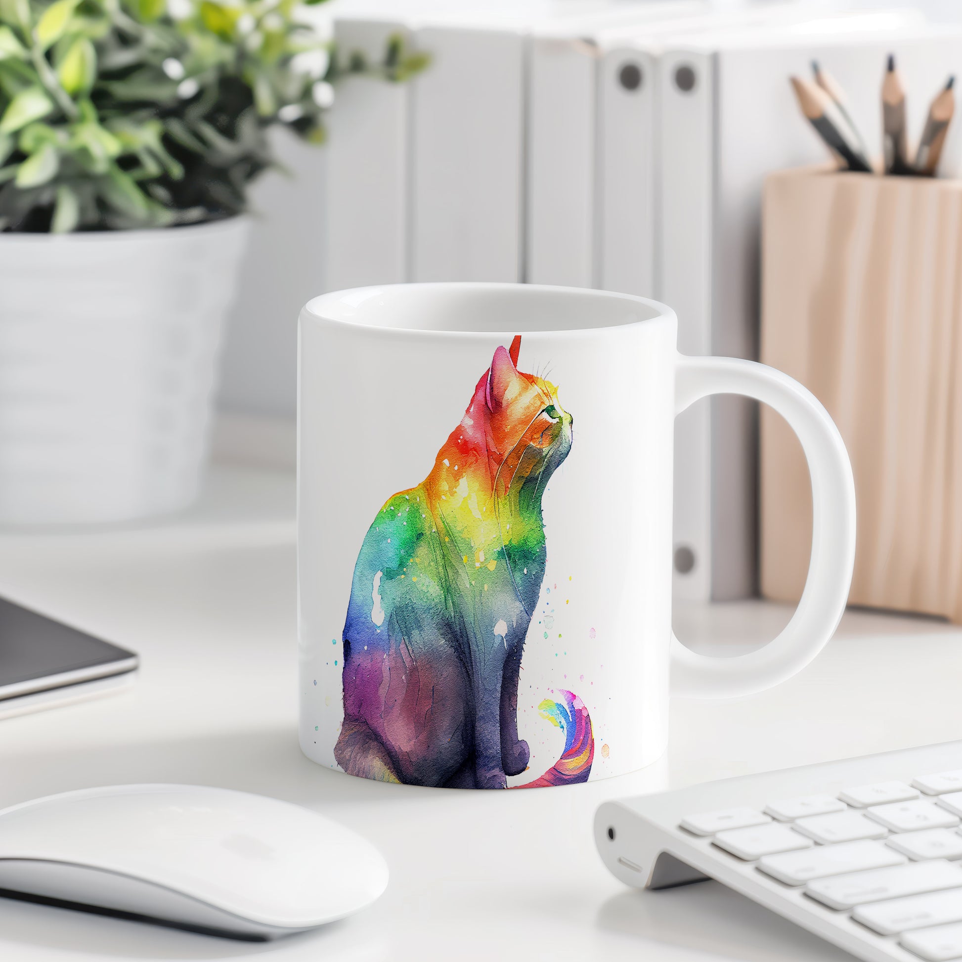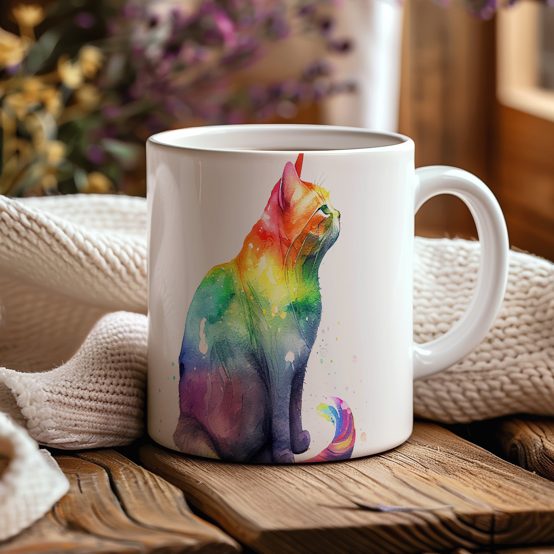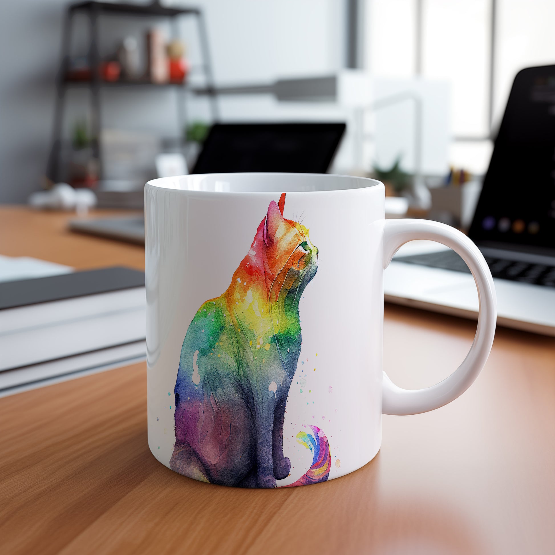 Hrnek s barevným kočkou v akvarelovém stylu – kontrastním vzhledem