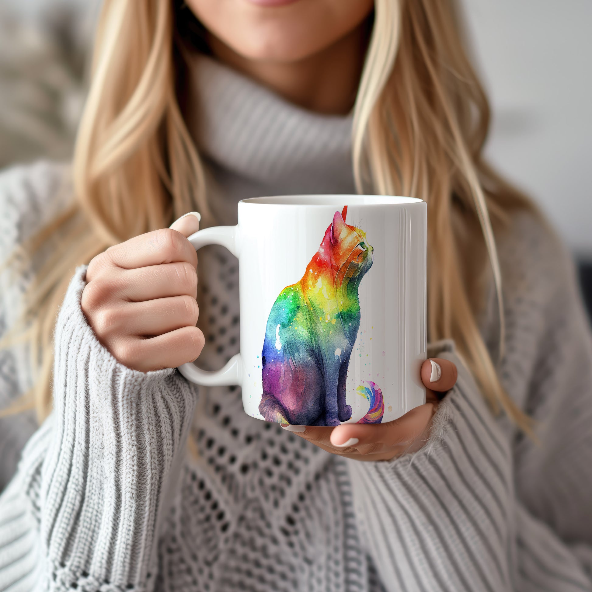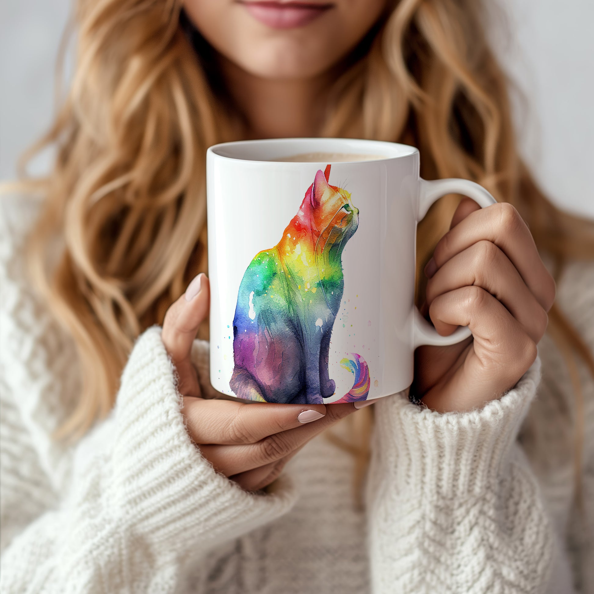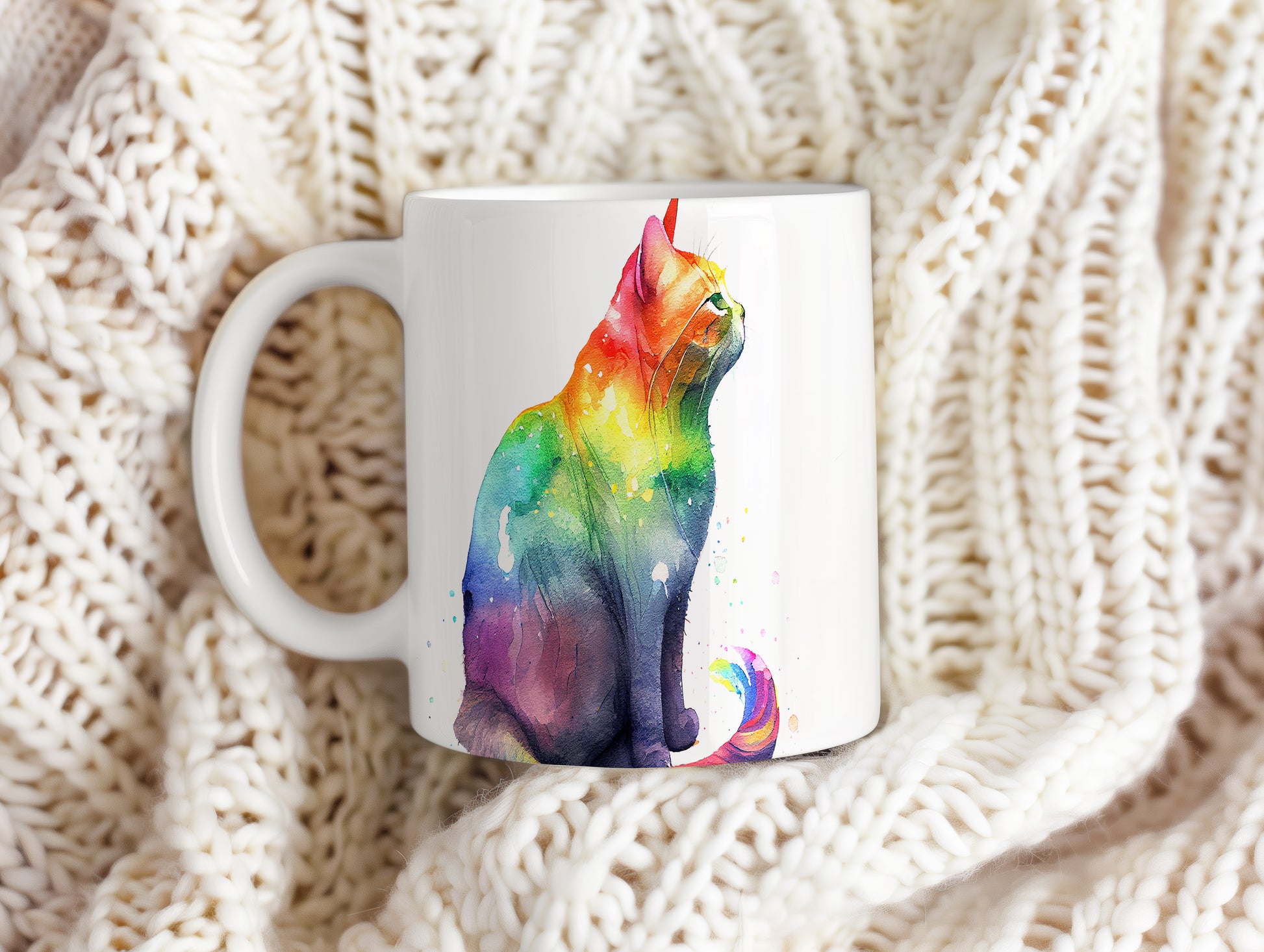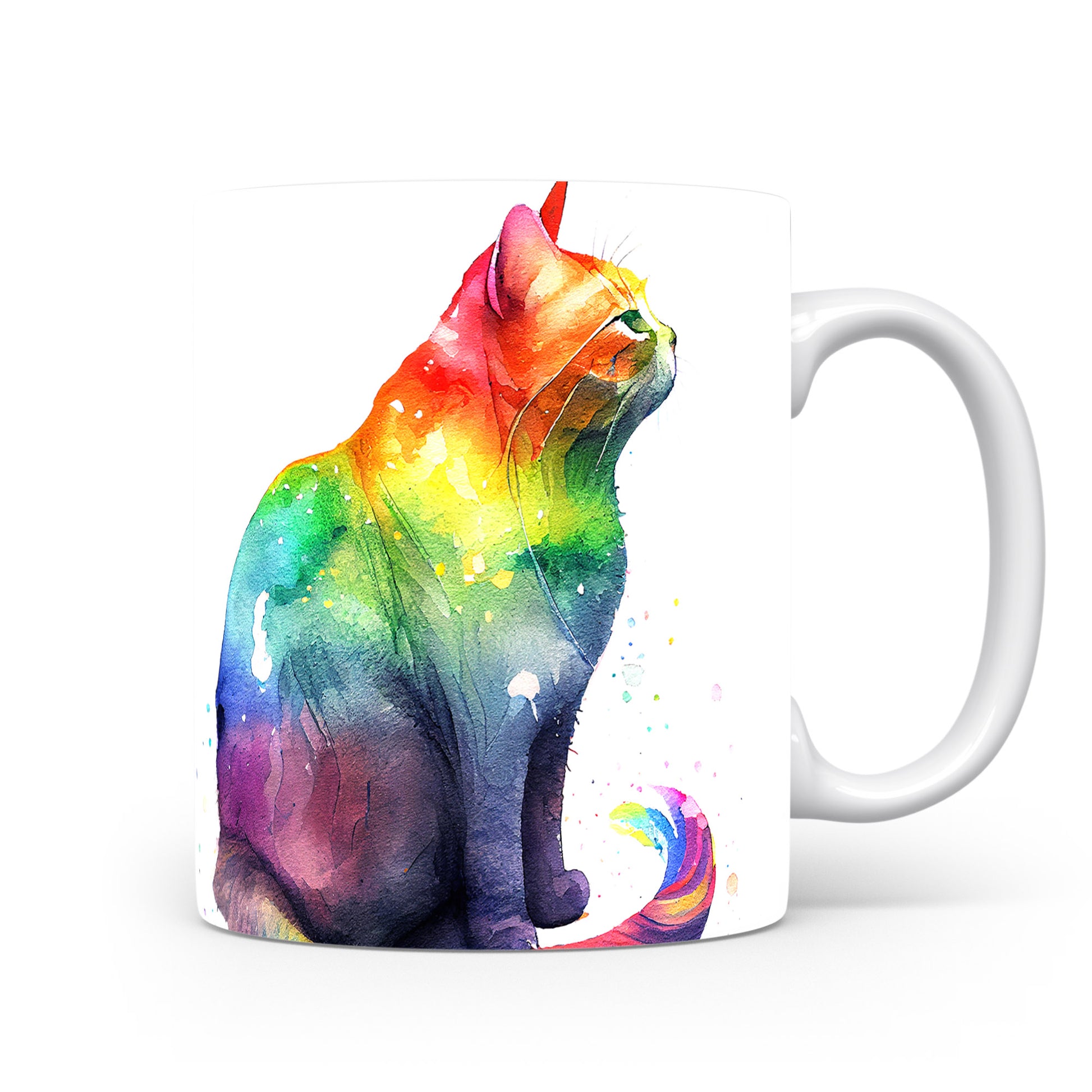 Hrnek s barevným kočkou v akvarelovém stylu – kontrastním vzhledem