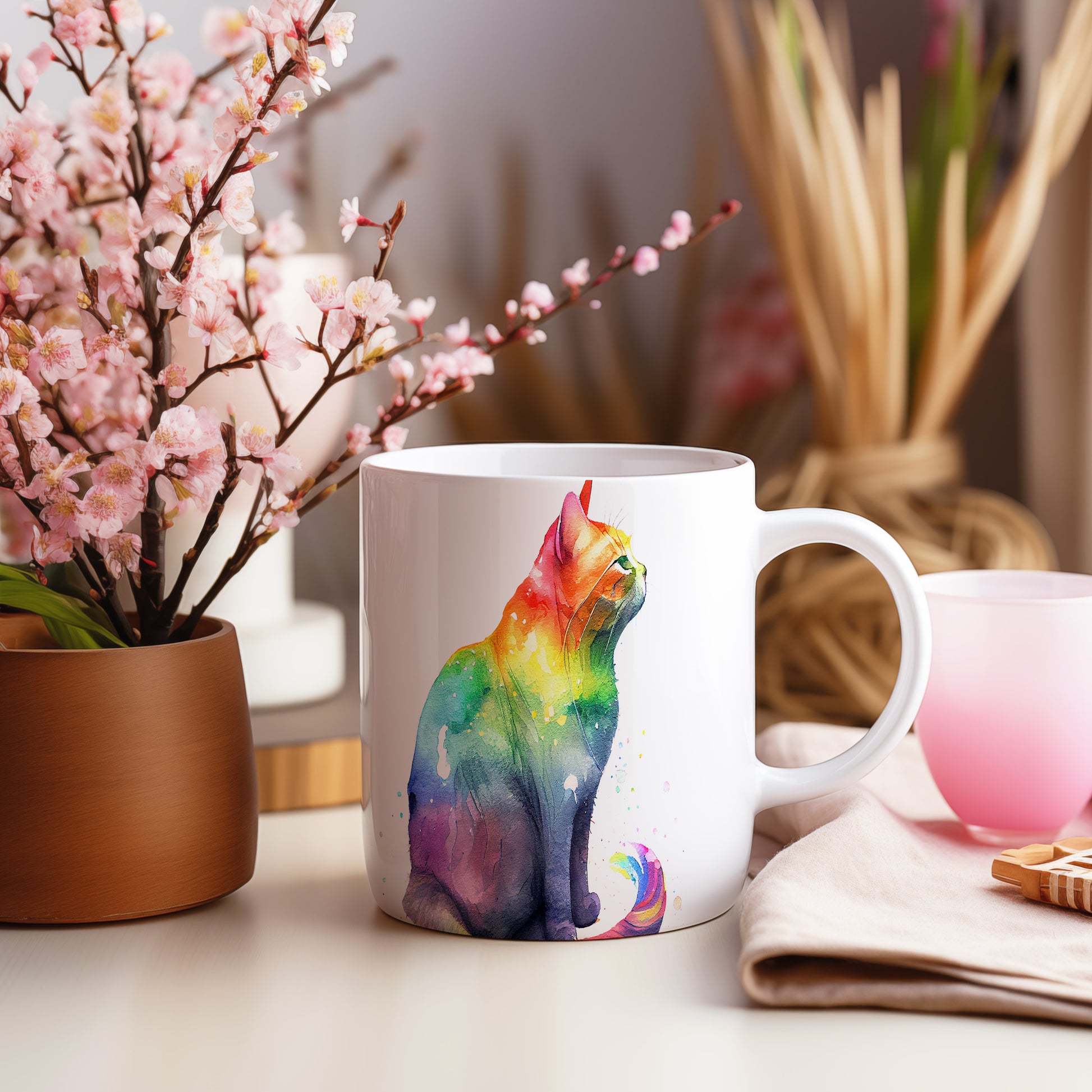 Tento keramický hrnek s motivem barevné kočky v akvarelovém stylu je skvělým doplňkem pro milovníky koček a umění. Je ideální jako dárek pro přátele nebo rodinu, kteří ocení originální design. Materiál: keramika. Objem: 330 ml. Vhodné do myčky i mikrovlnky. Používáním tohoto hrnku si užijete nejen krásný vzhled, ale i pohodlné pití vašeho oblíbeného nápoje.