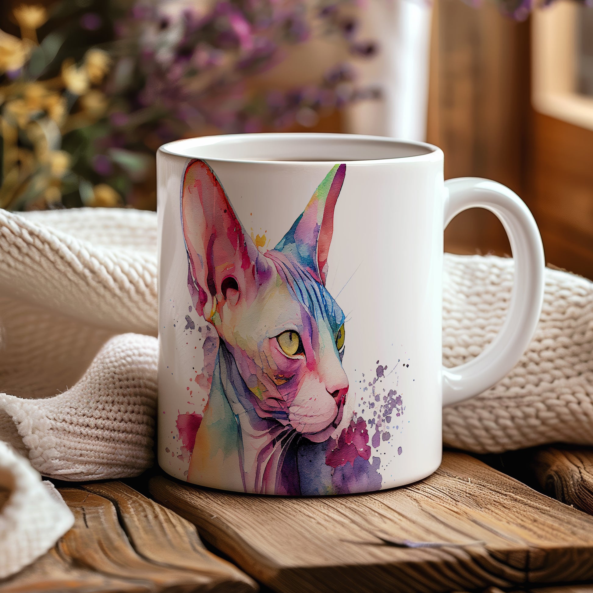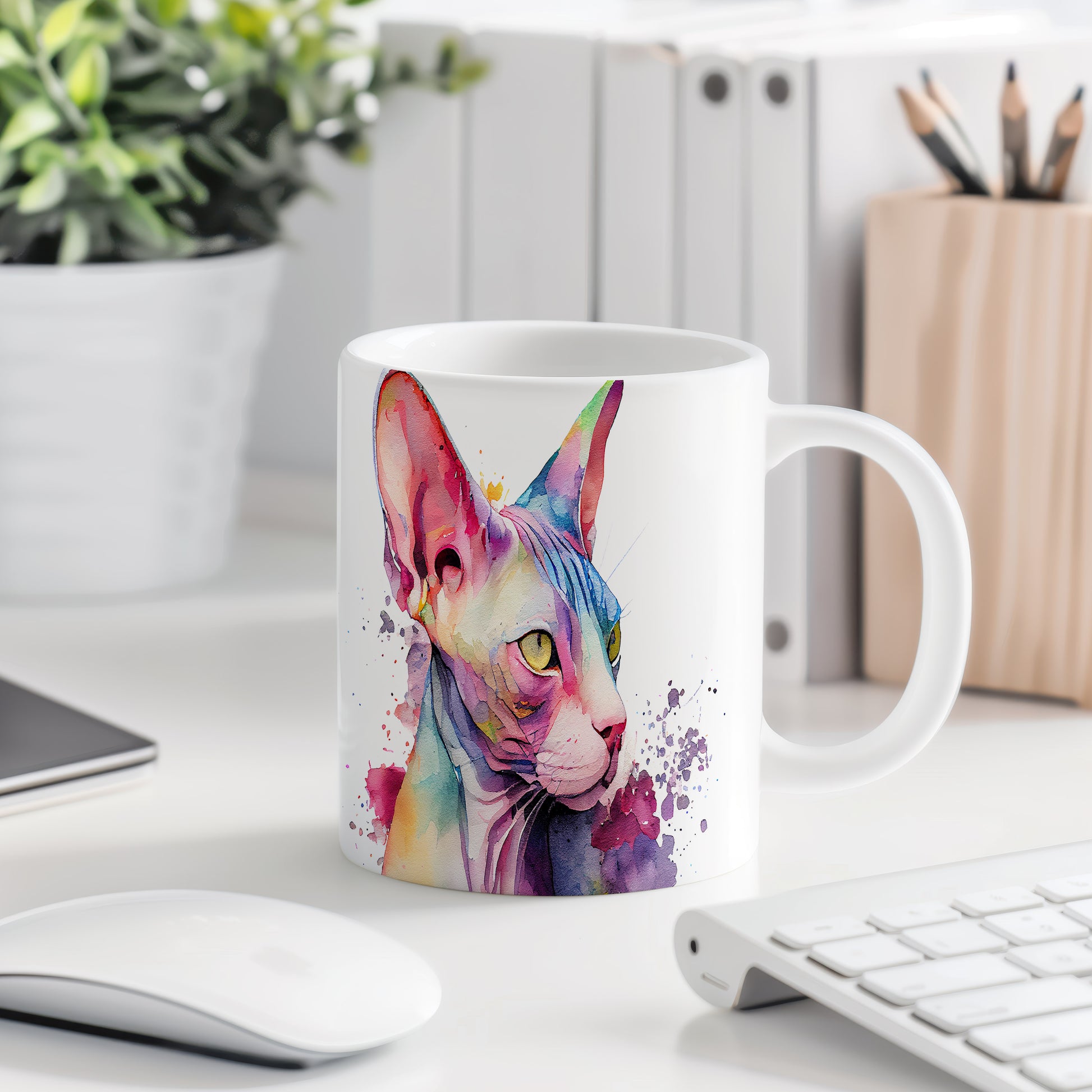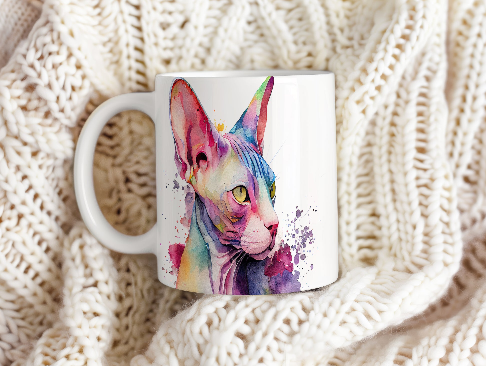 Hrnek s barevným kočkou v akvarelovém stylu – modrými detaily