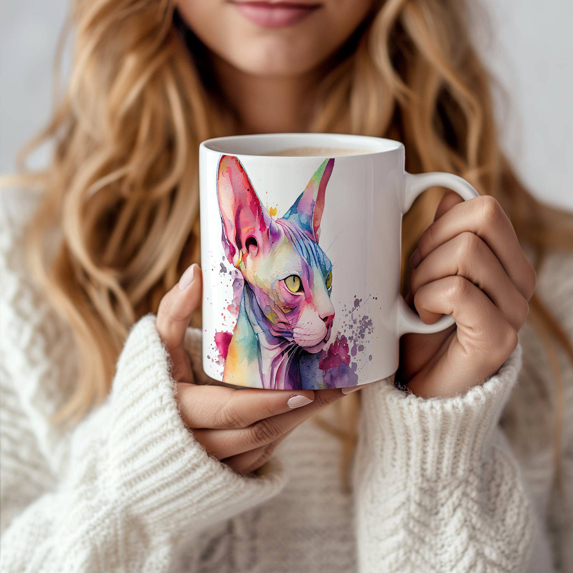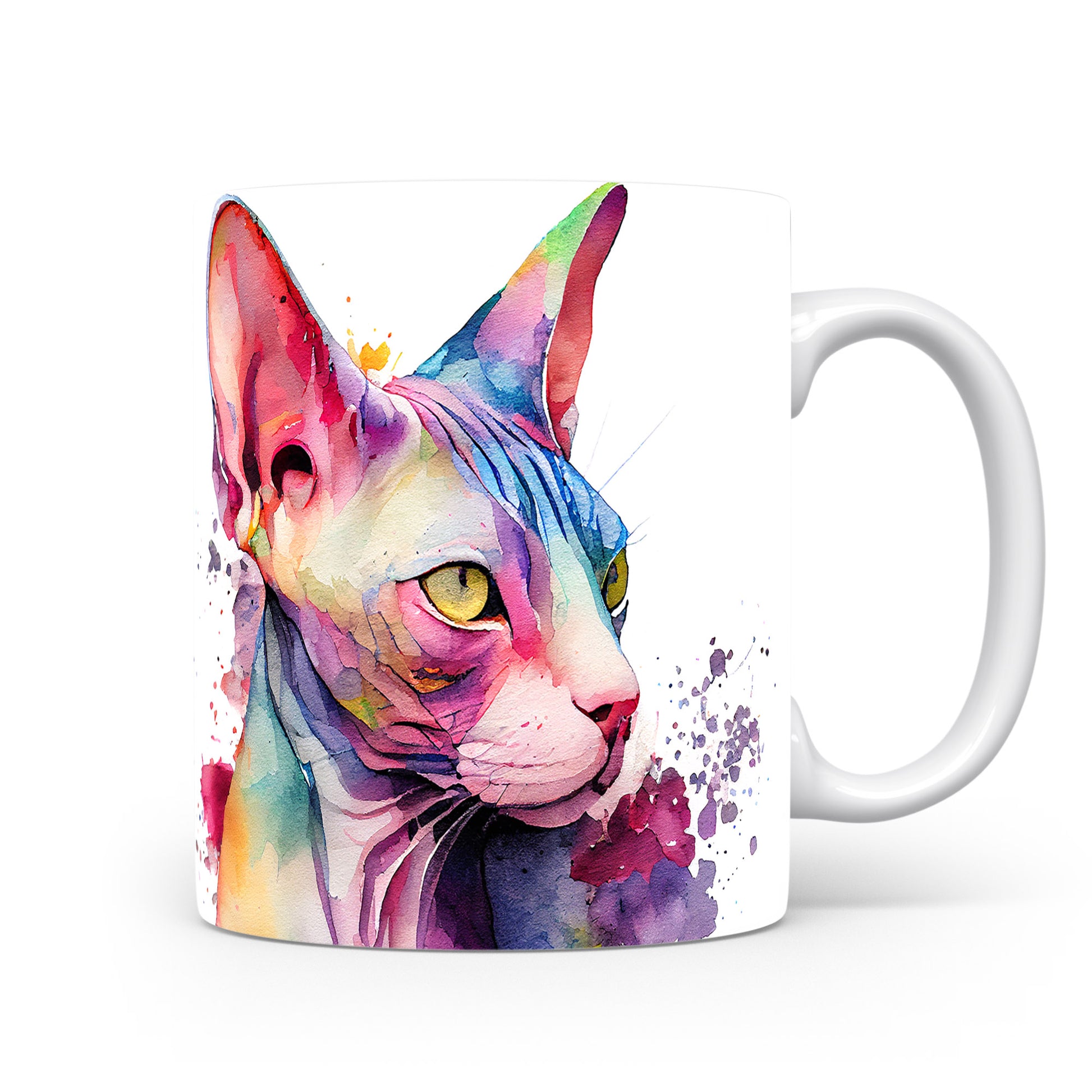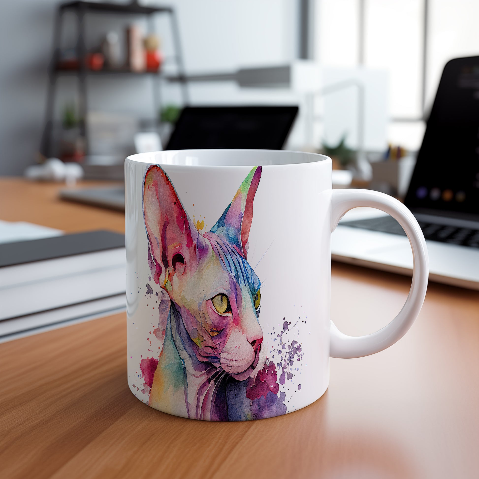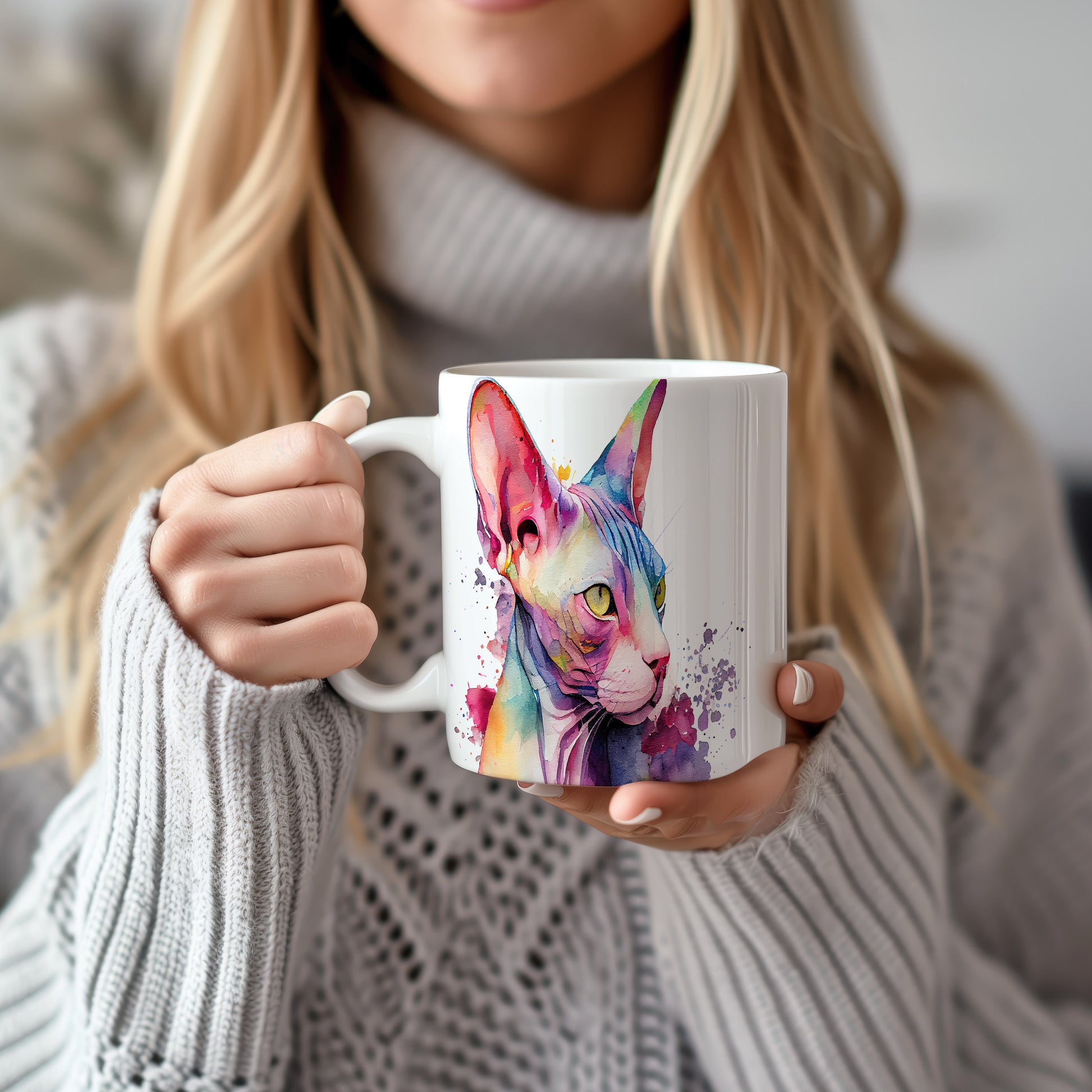 Hrnek s barevným kočkou v akvarelovém stylu – modrými detaily